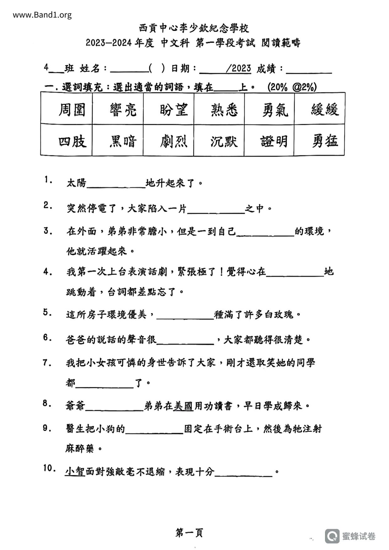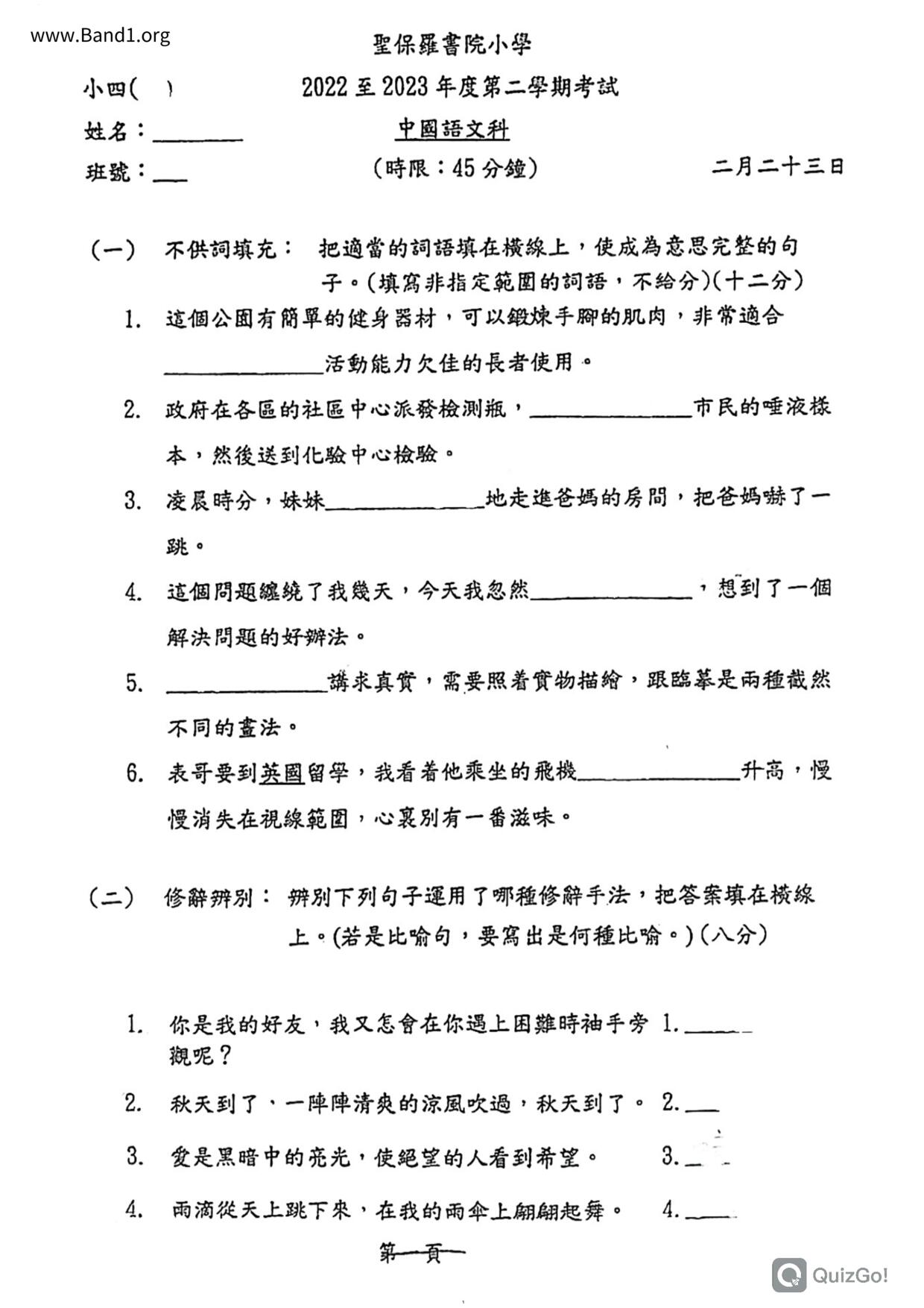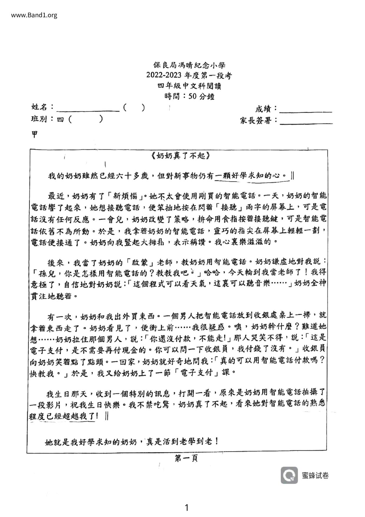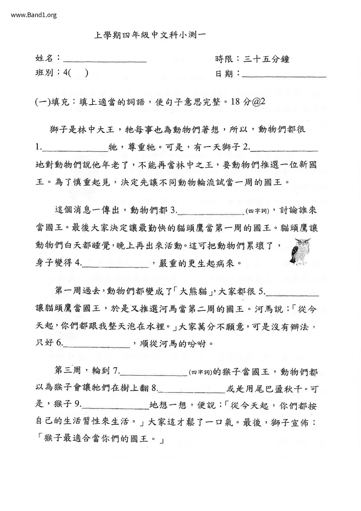 小四 中文 香港九龍塘基督教中華宣道會陳元喜小學