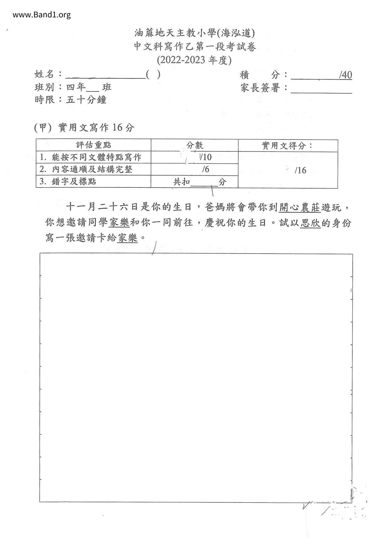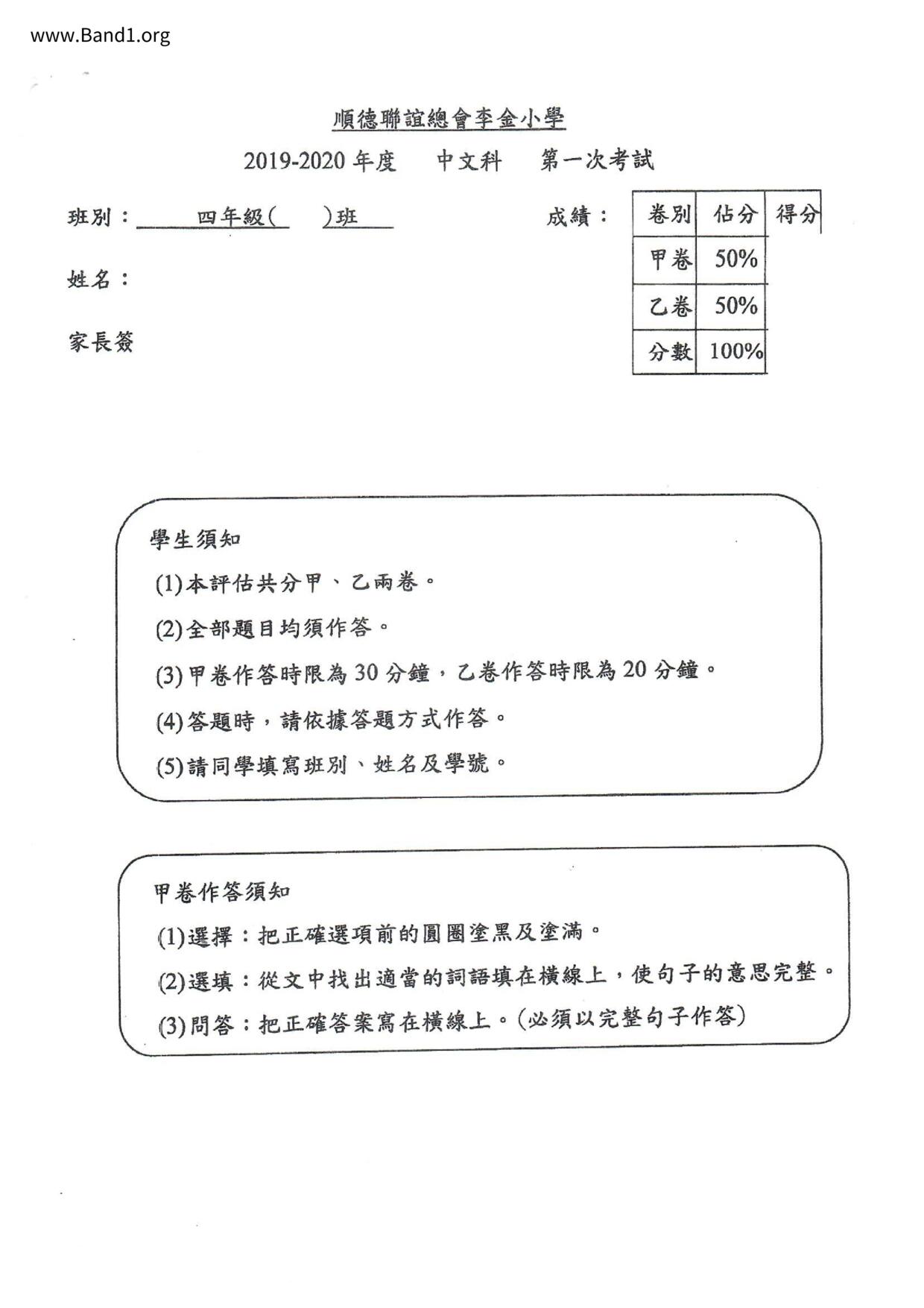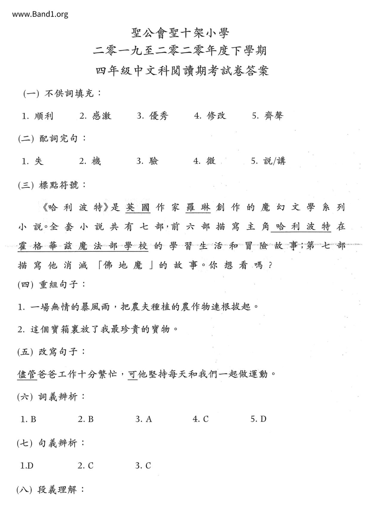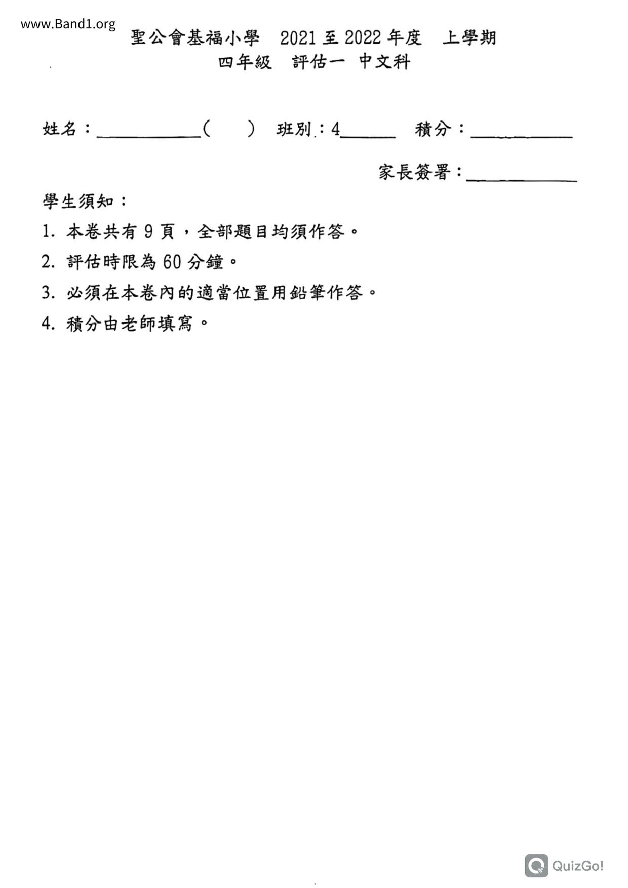 小四 中文 中華基督教會灣仔堂基道小學(九龍城)