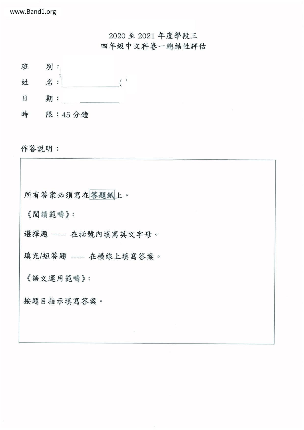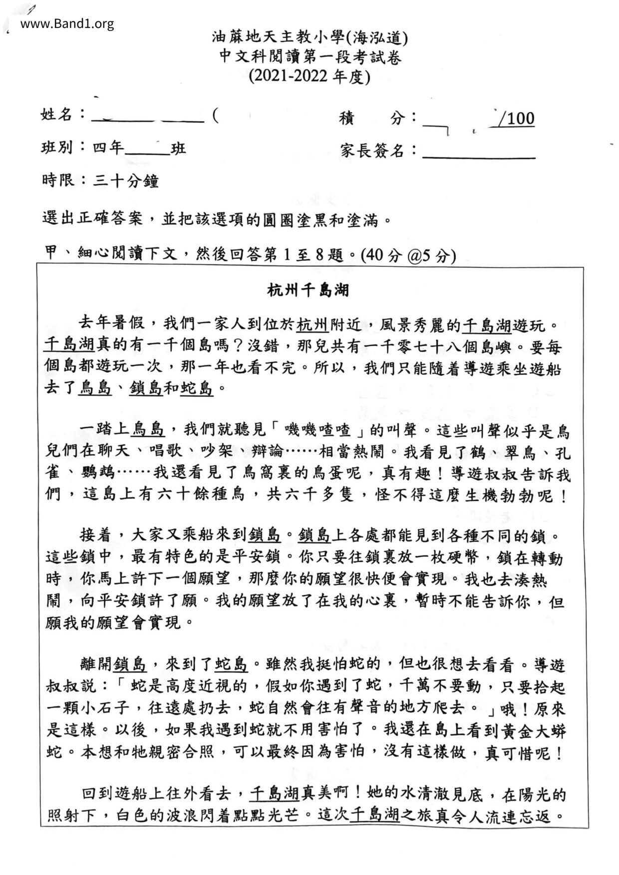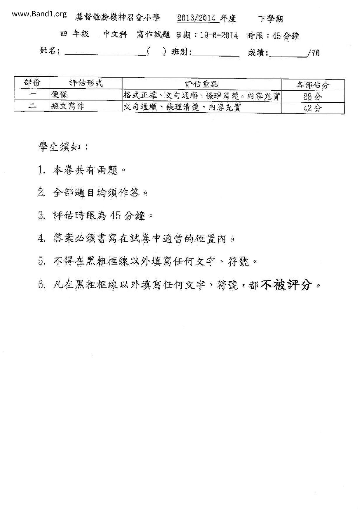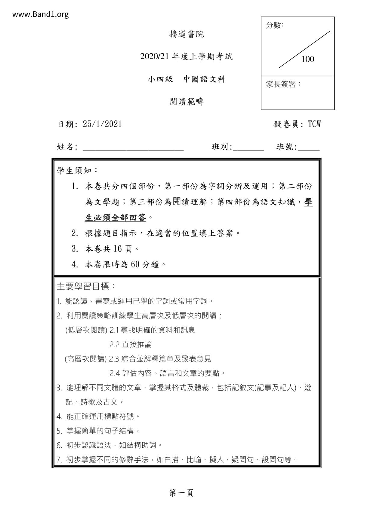 小四 中文 中華基督教會灣仔堂基道小學(九龍城)