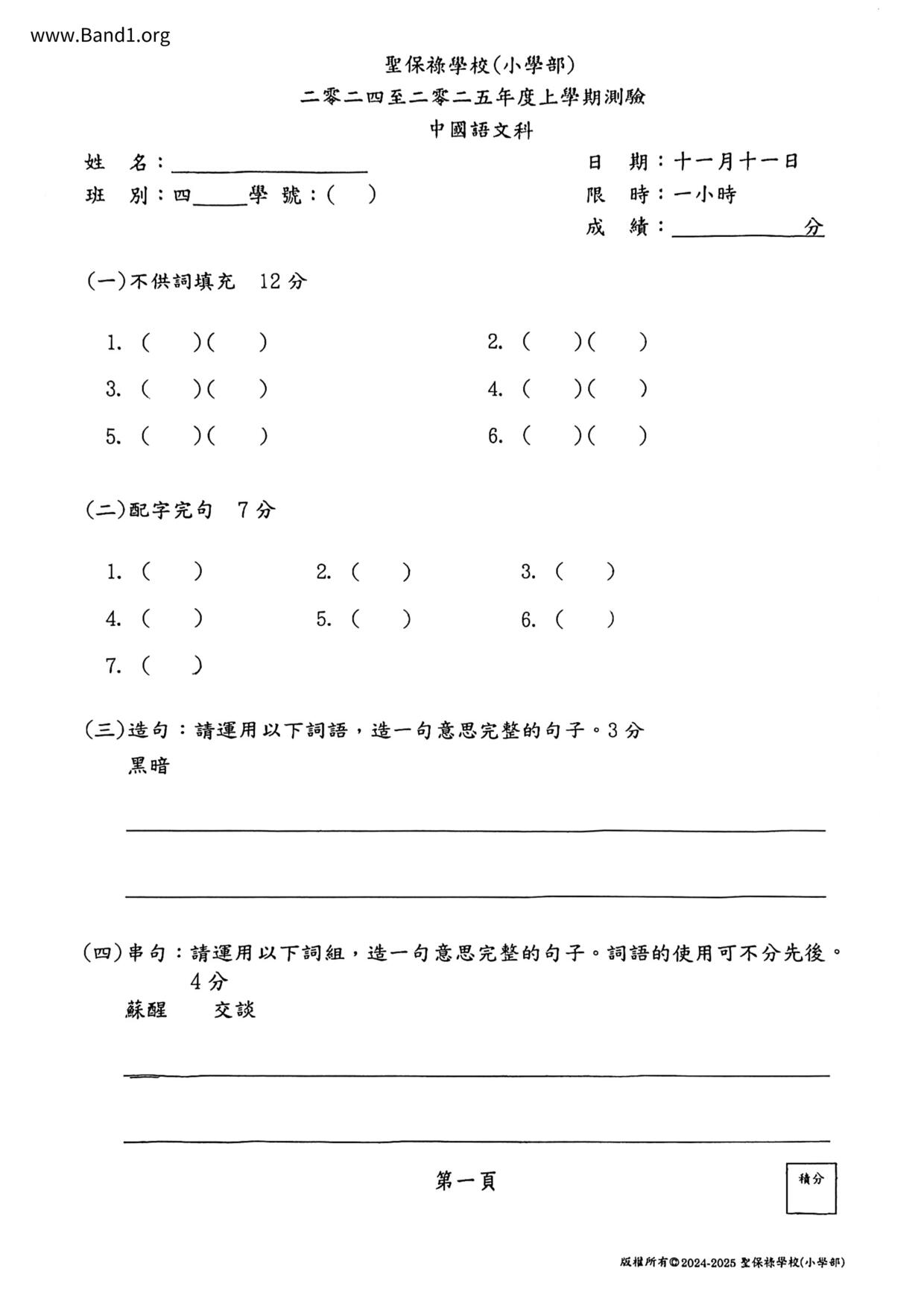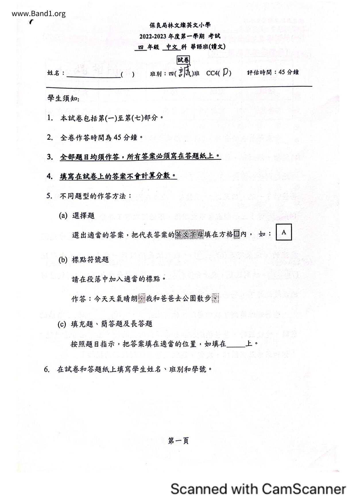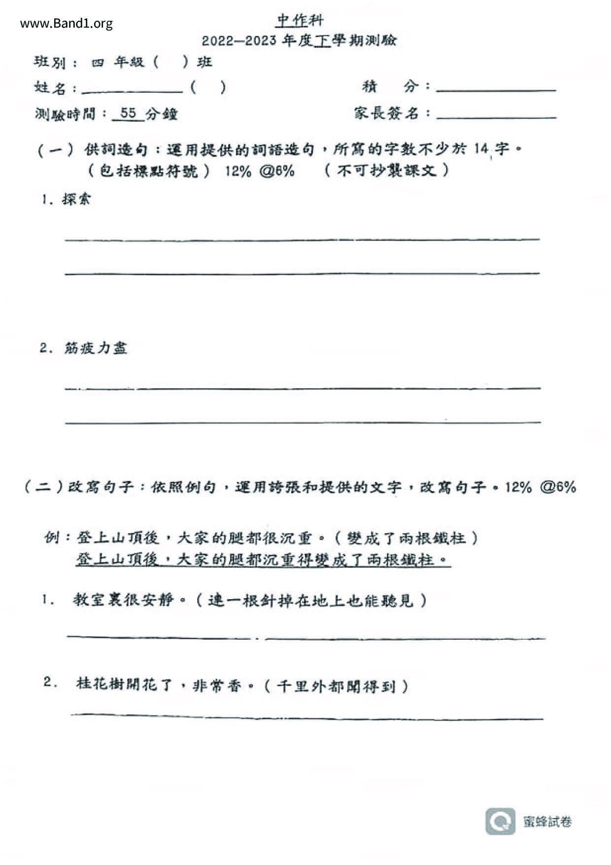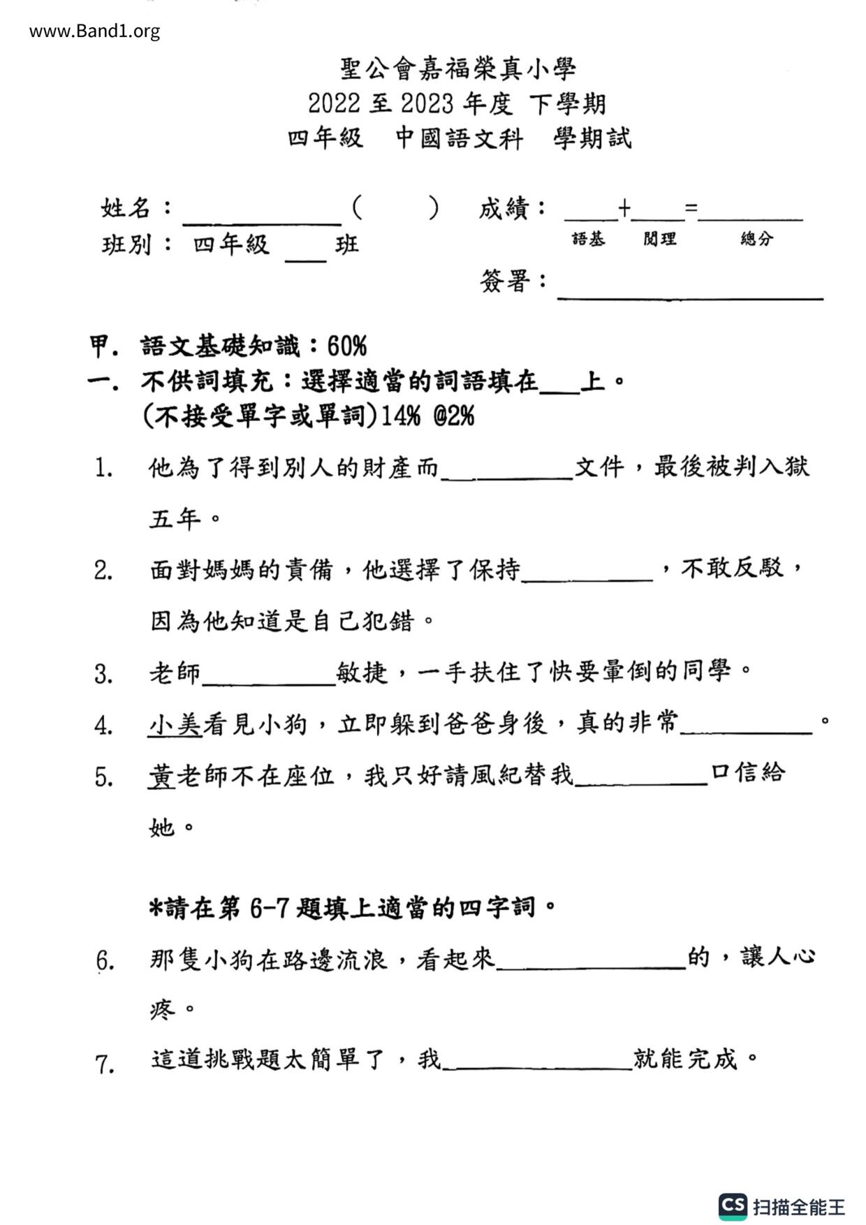 小四 中文 中華基督教會灣仔堂基道小學(九龍城)