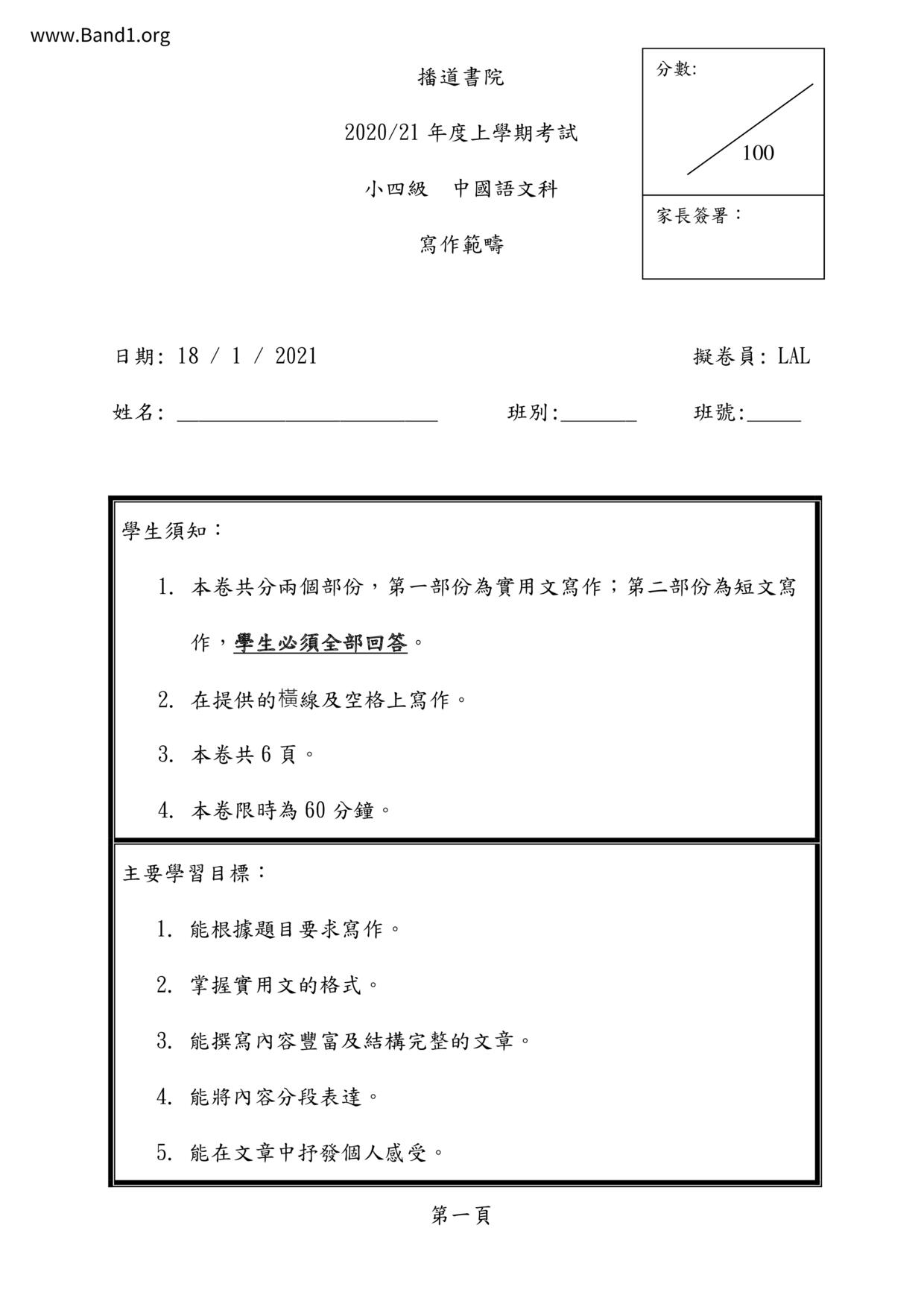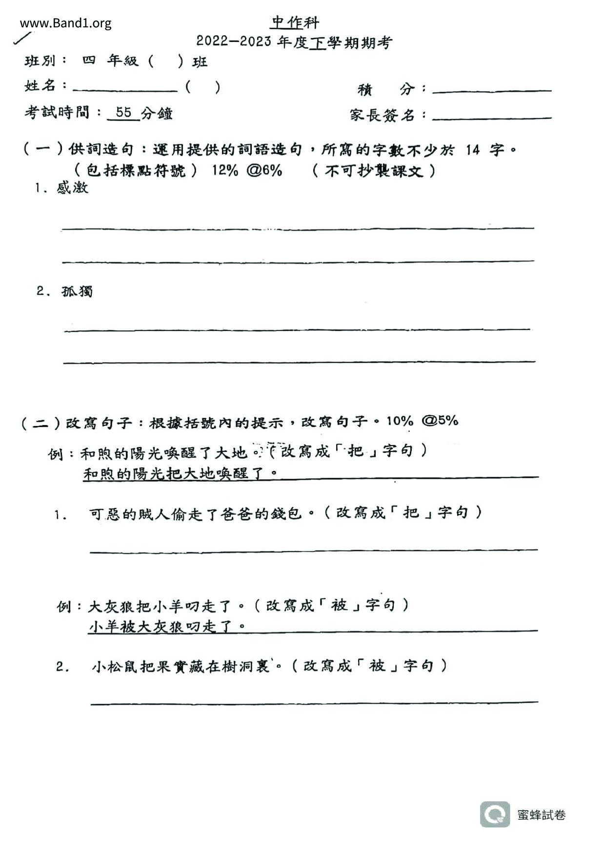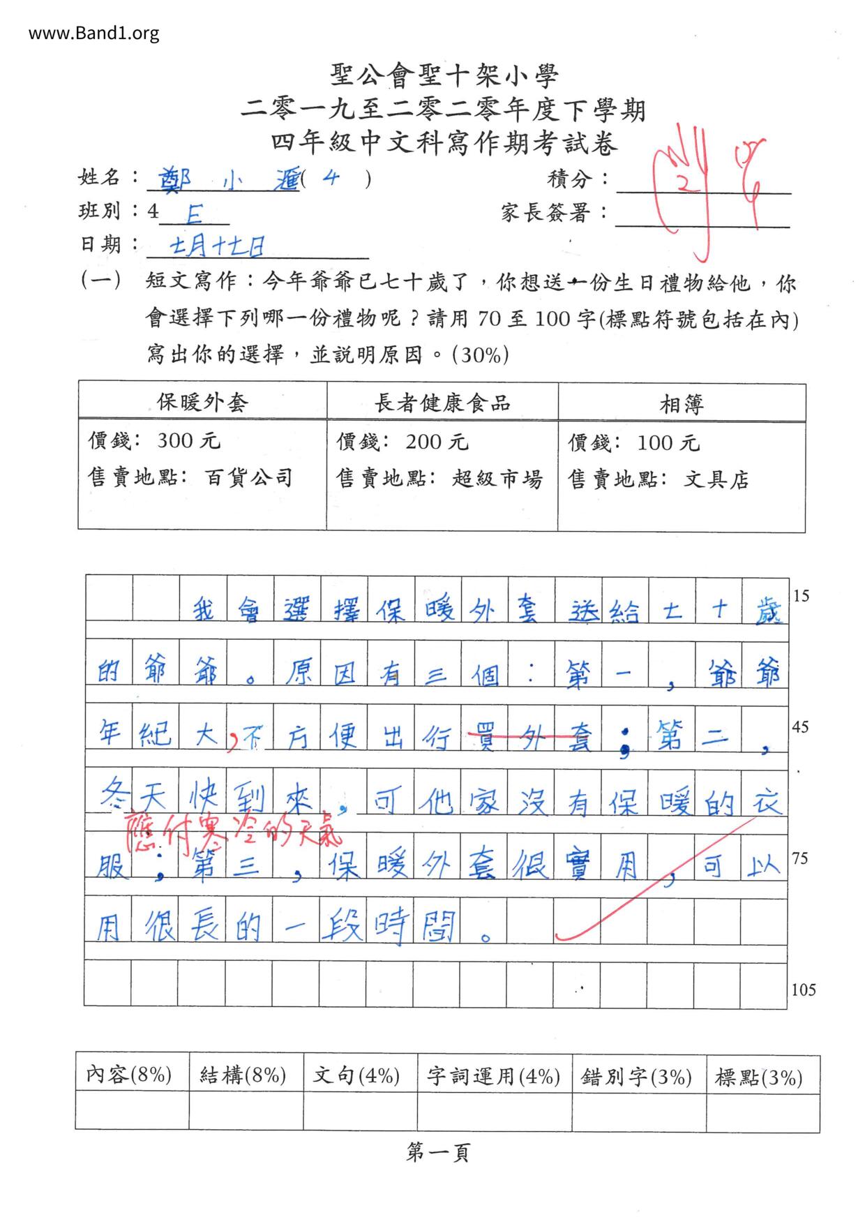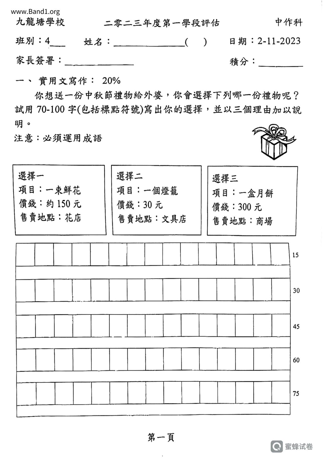小四 中文 中華基督教會灣仔堂基道小學(九龍城)