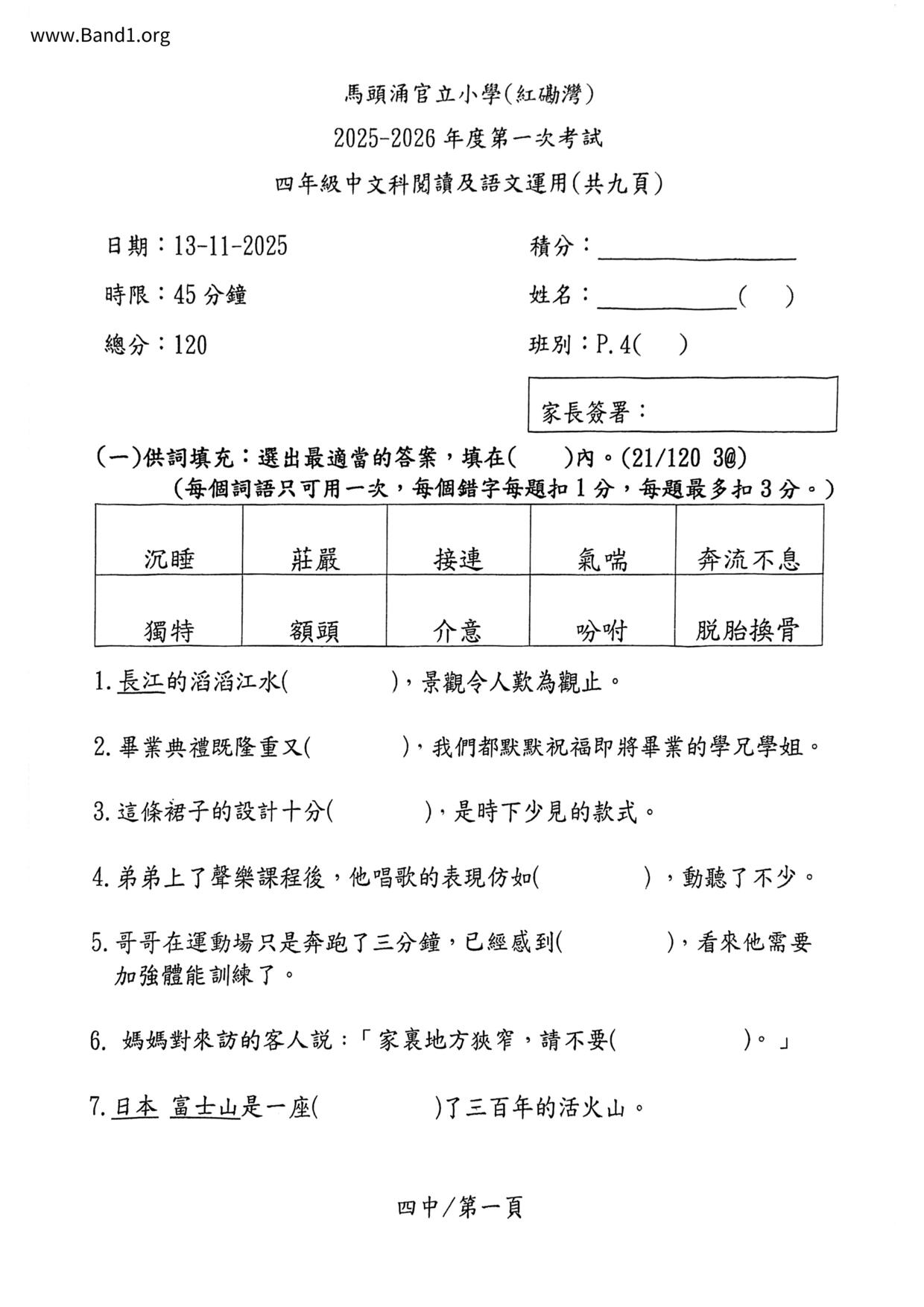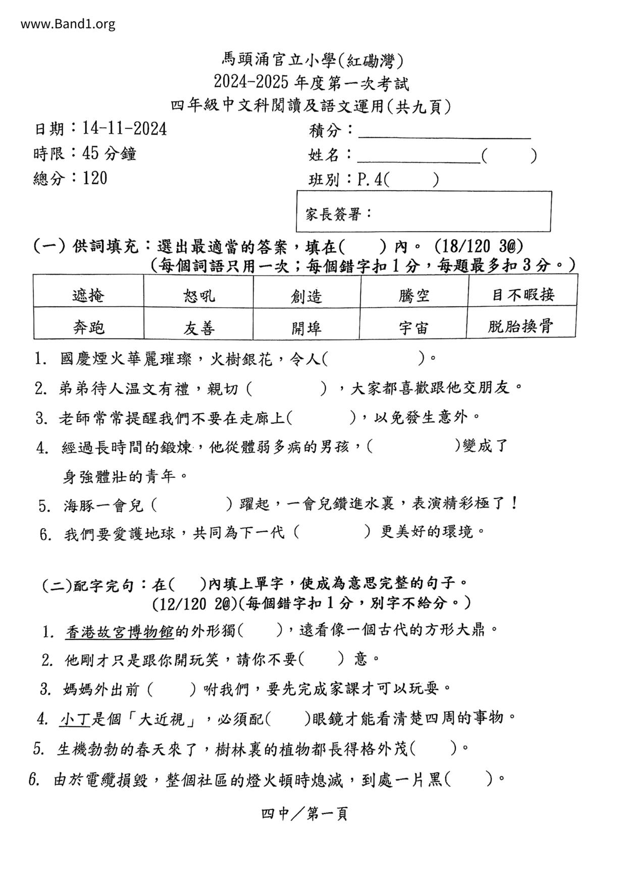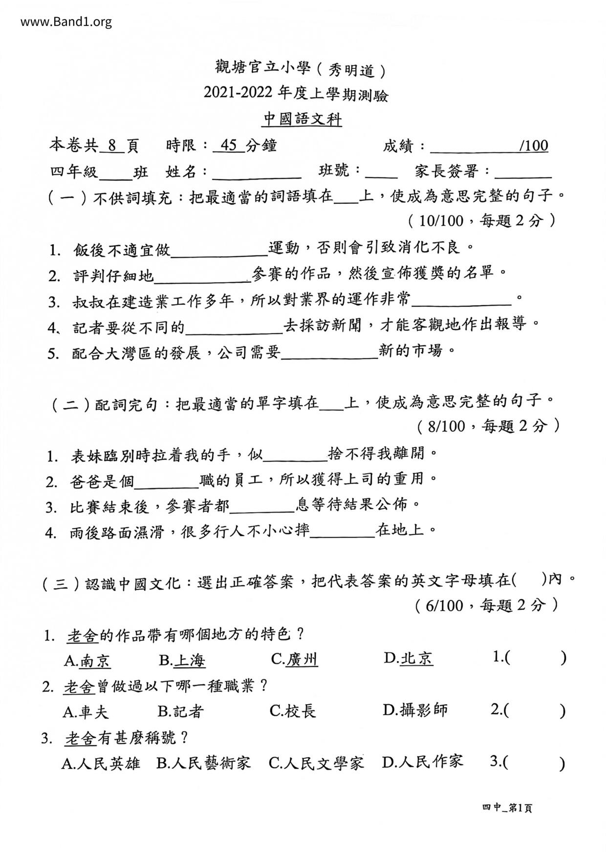 小四 中文 馬頭涌官立小學(紅磡灣)