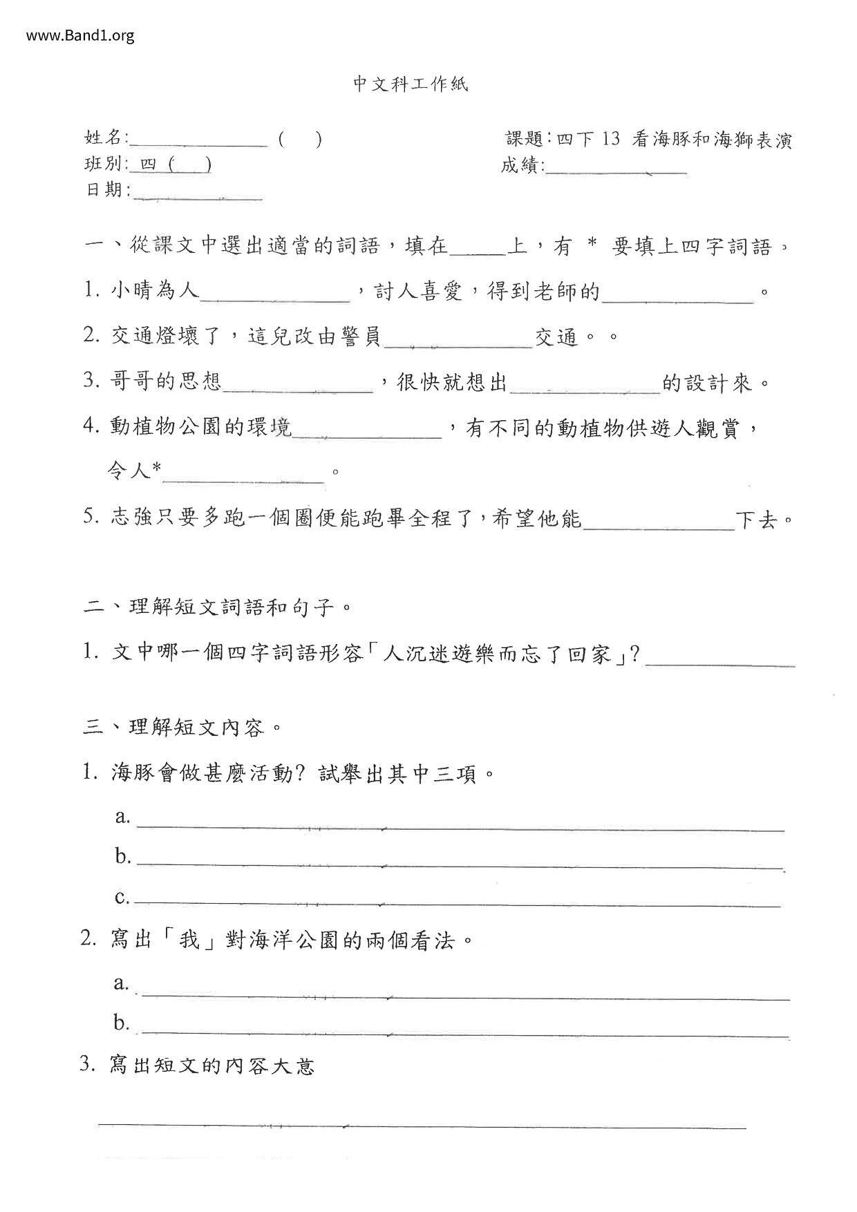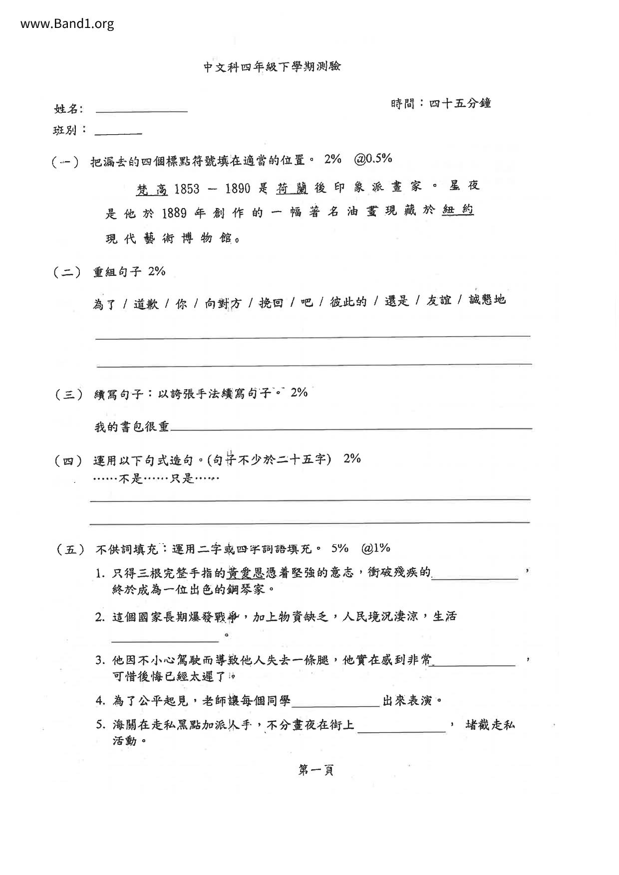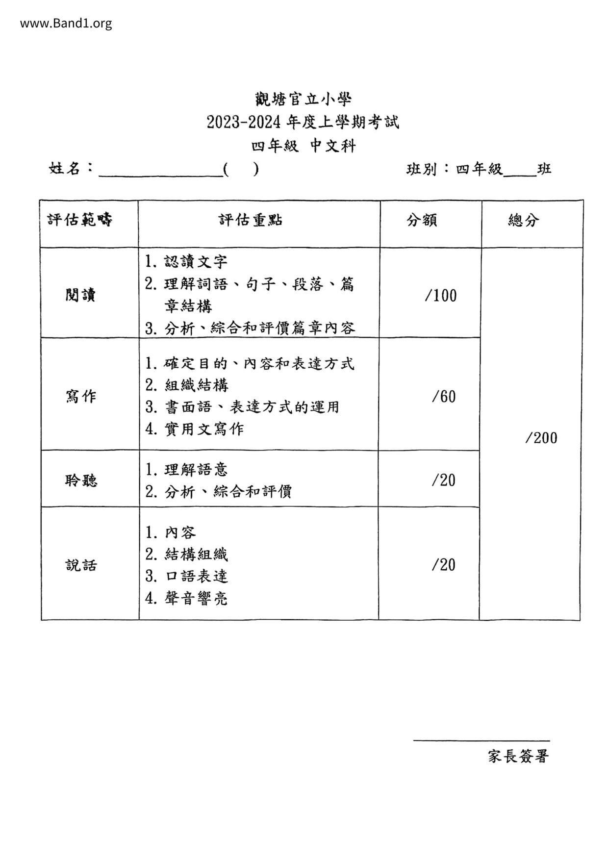 小四 中文 馬頭涌官立小學(紅磡灣)