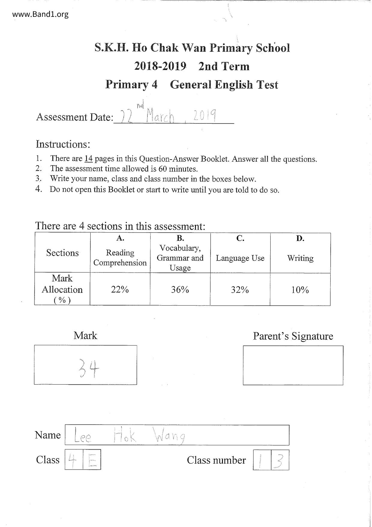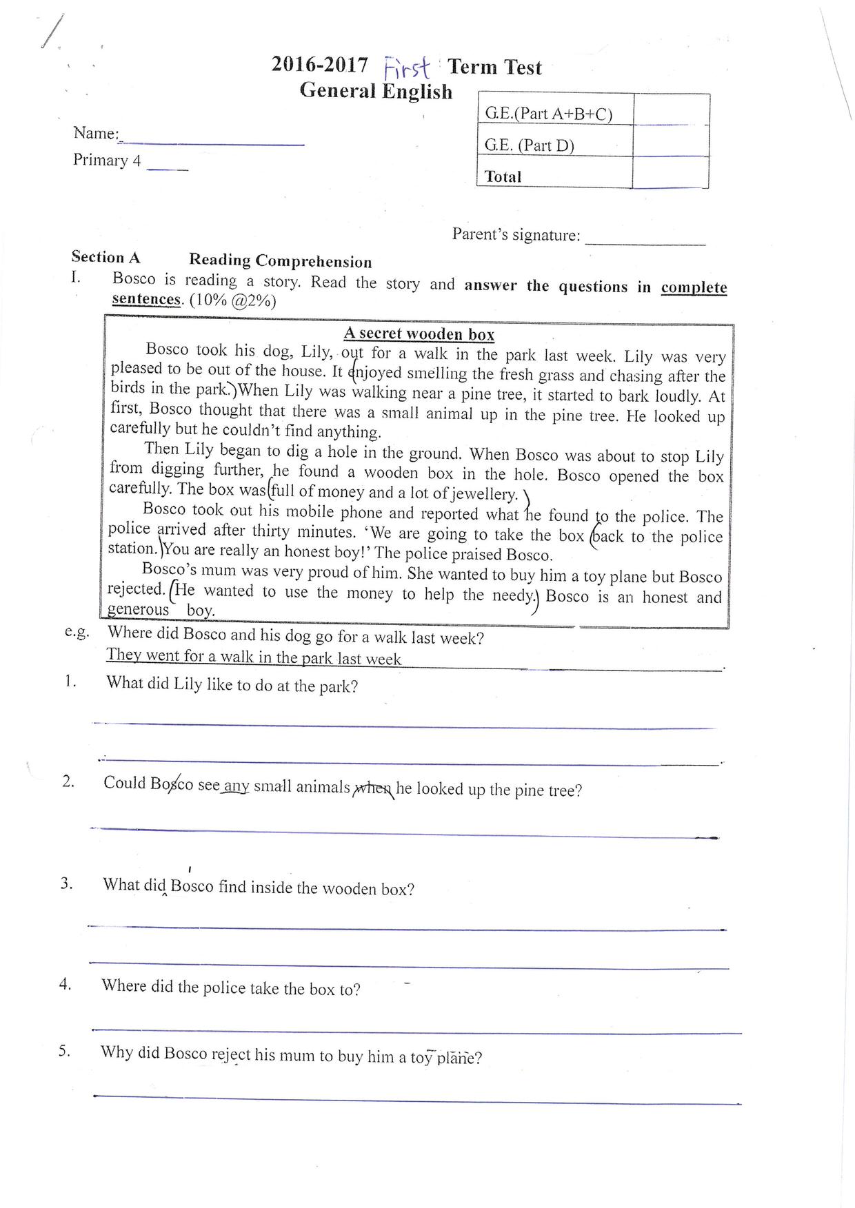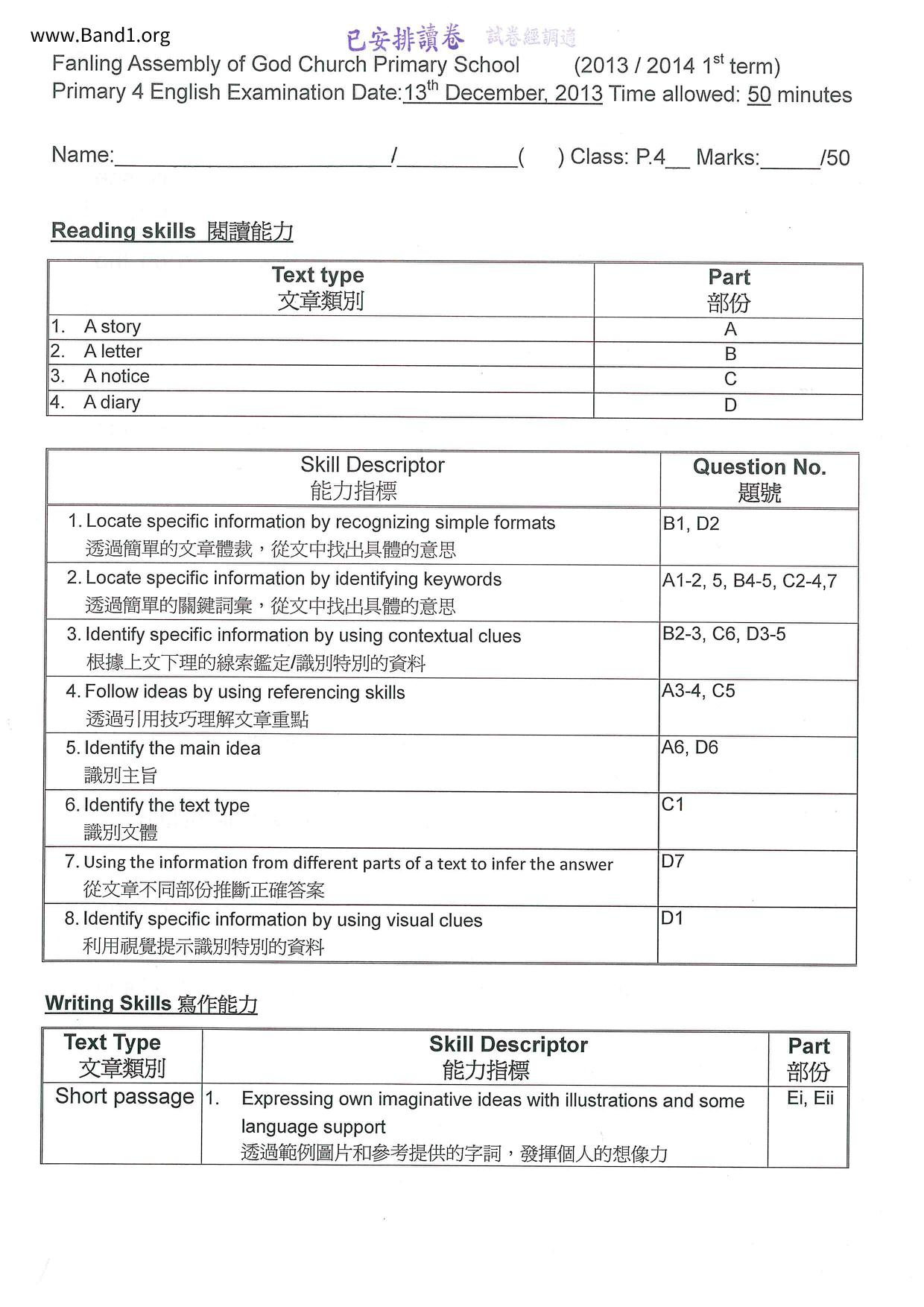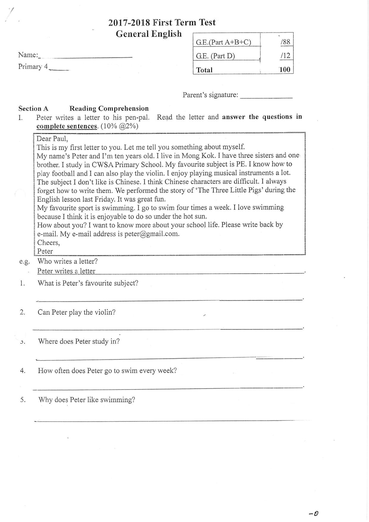 小四 英文 香港九龍塘基督教中華宣道會陳元喜小學