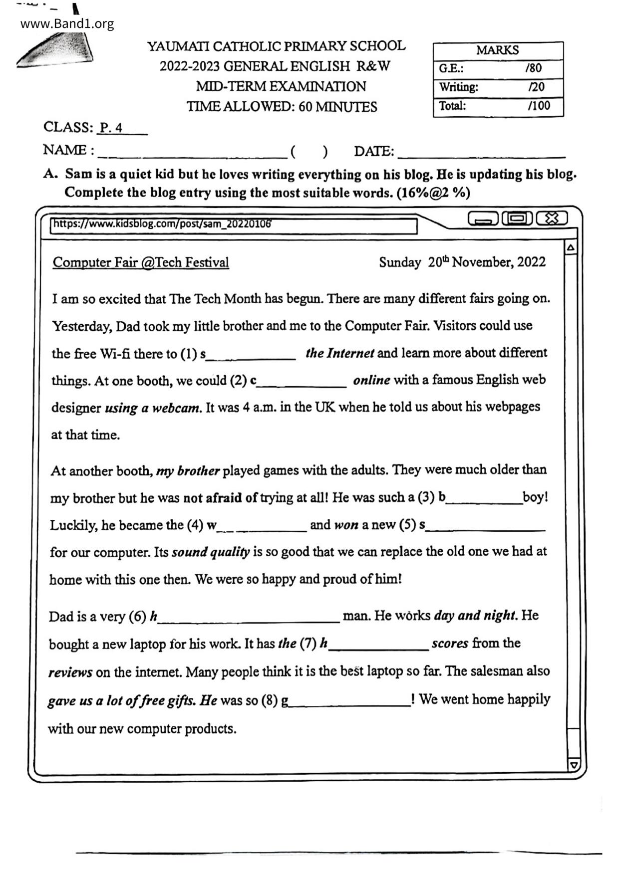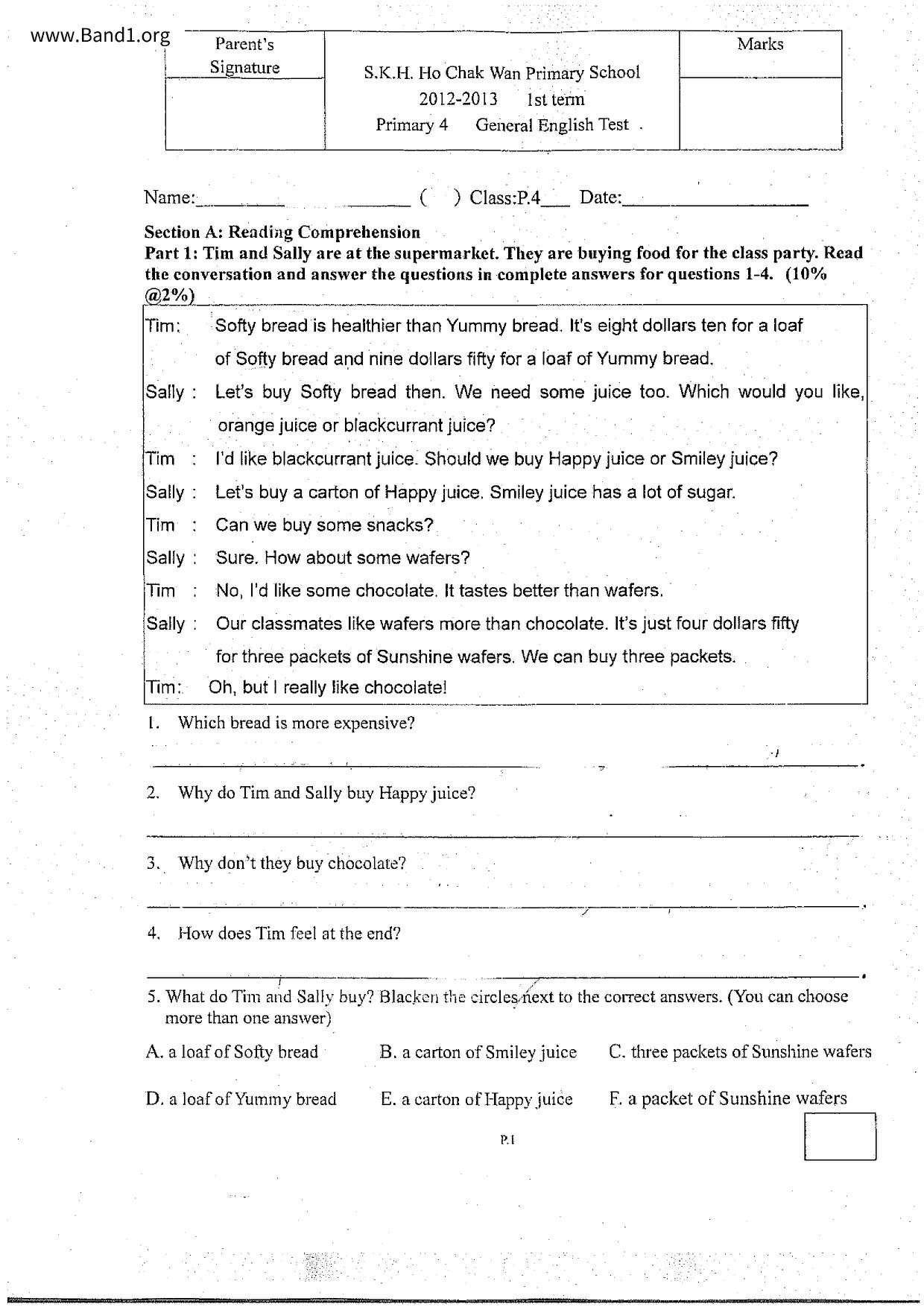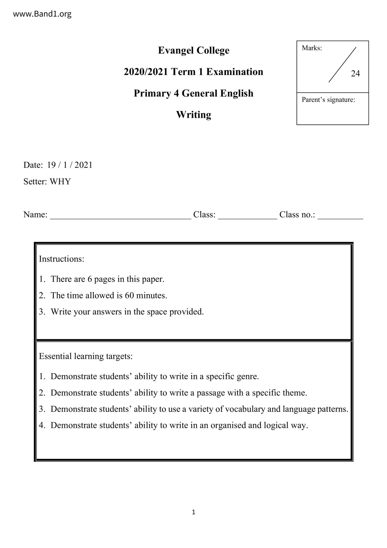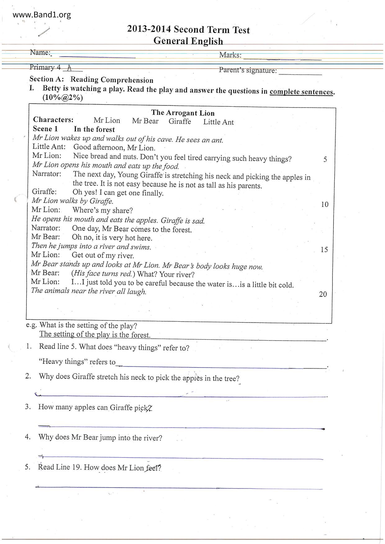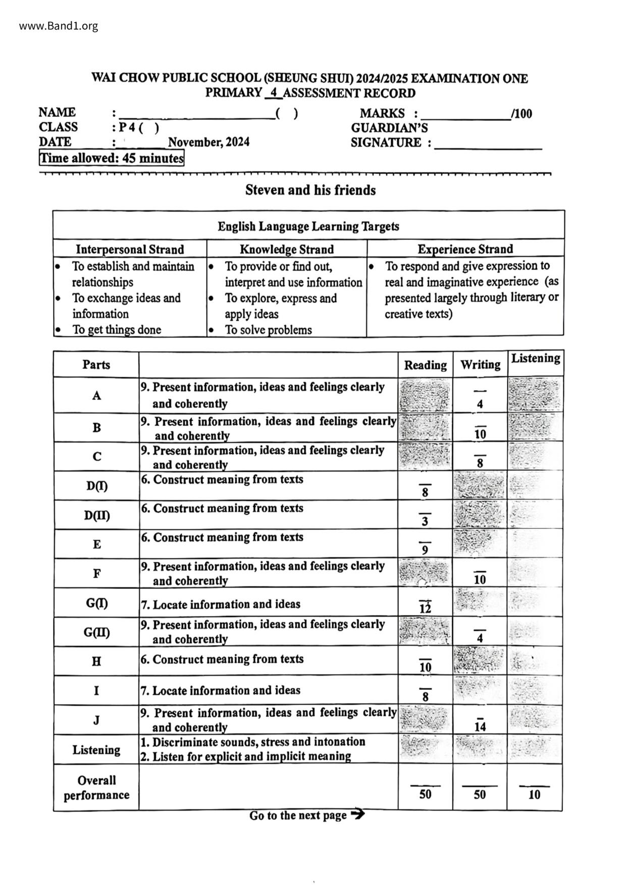 小四 英文 香港九龍塘基督教中華宣道會陳元喜小學