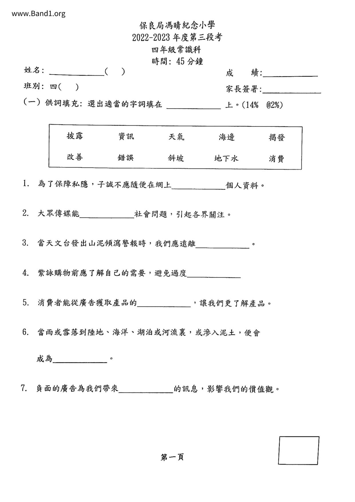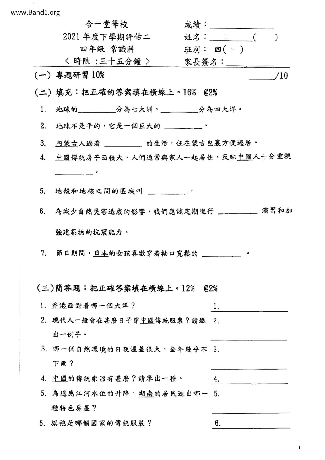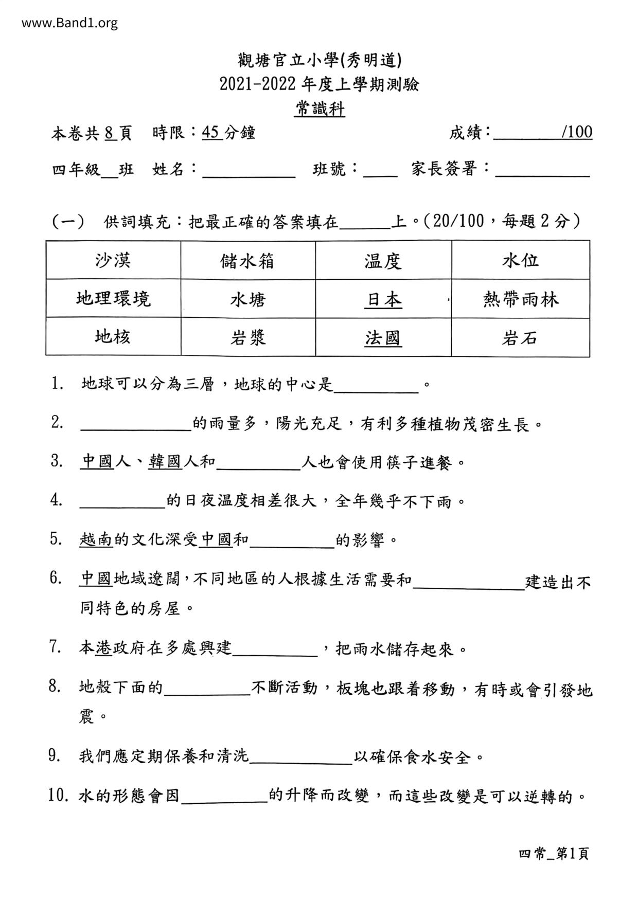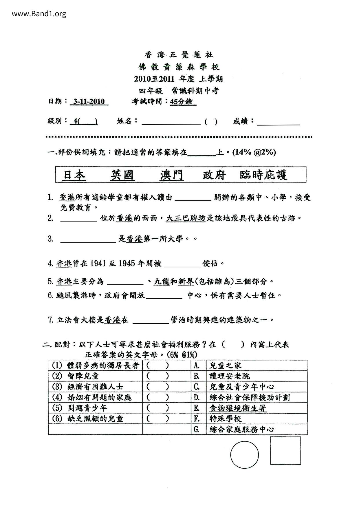 小四 常識 香海正覺蓮社佛教正覺蓮社學校