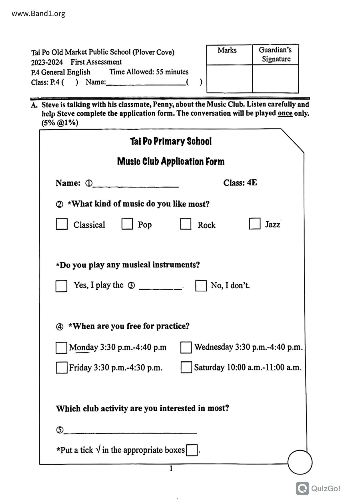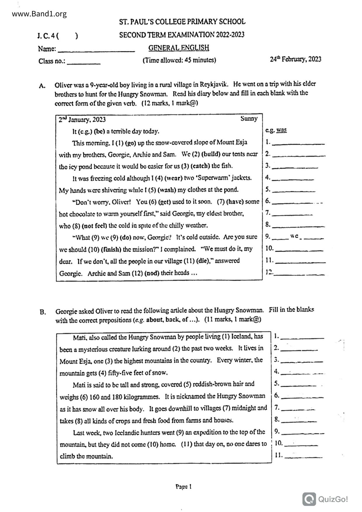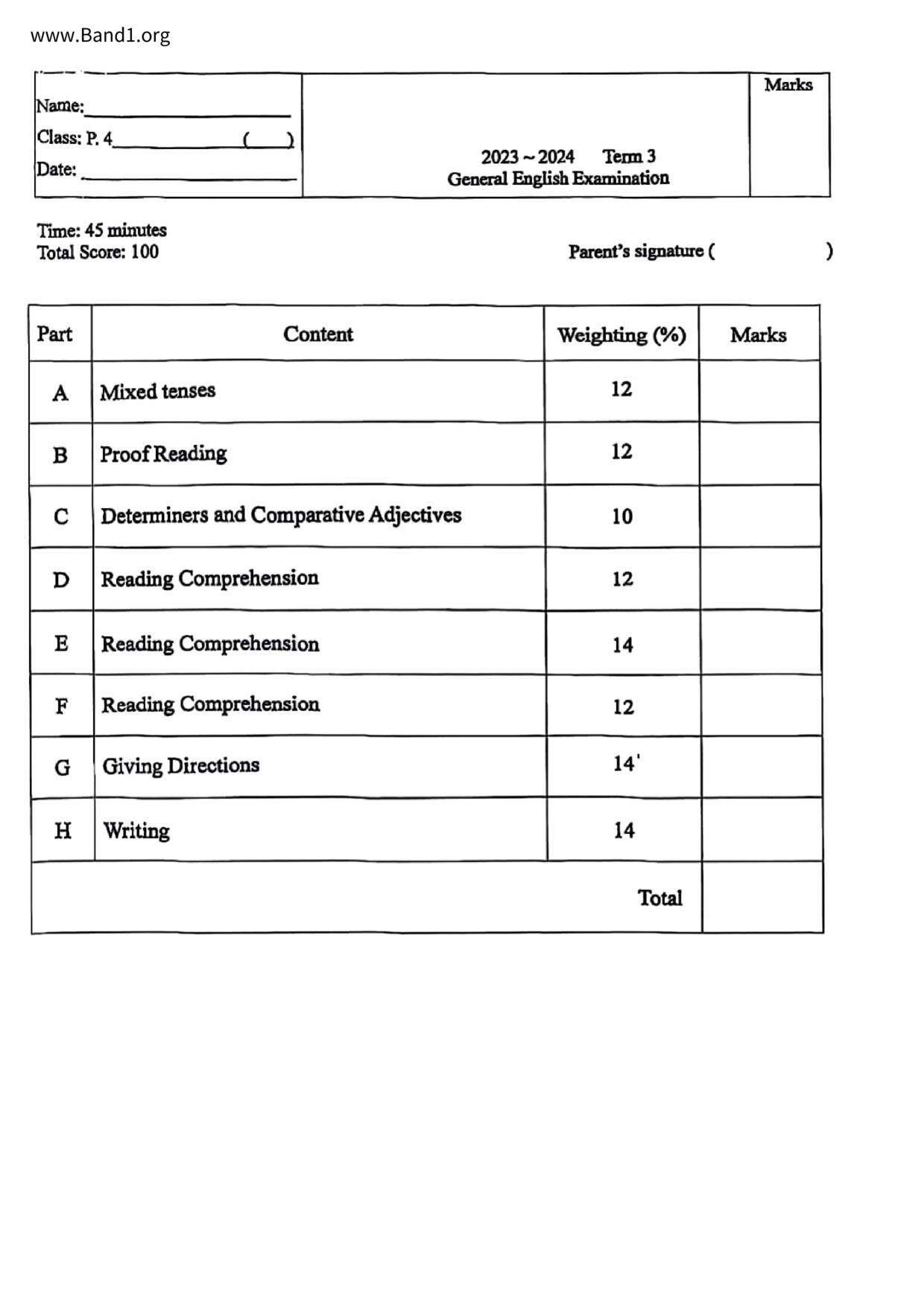 小四 英文 大埔舊墟公立學校(寶湖道)