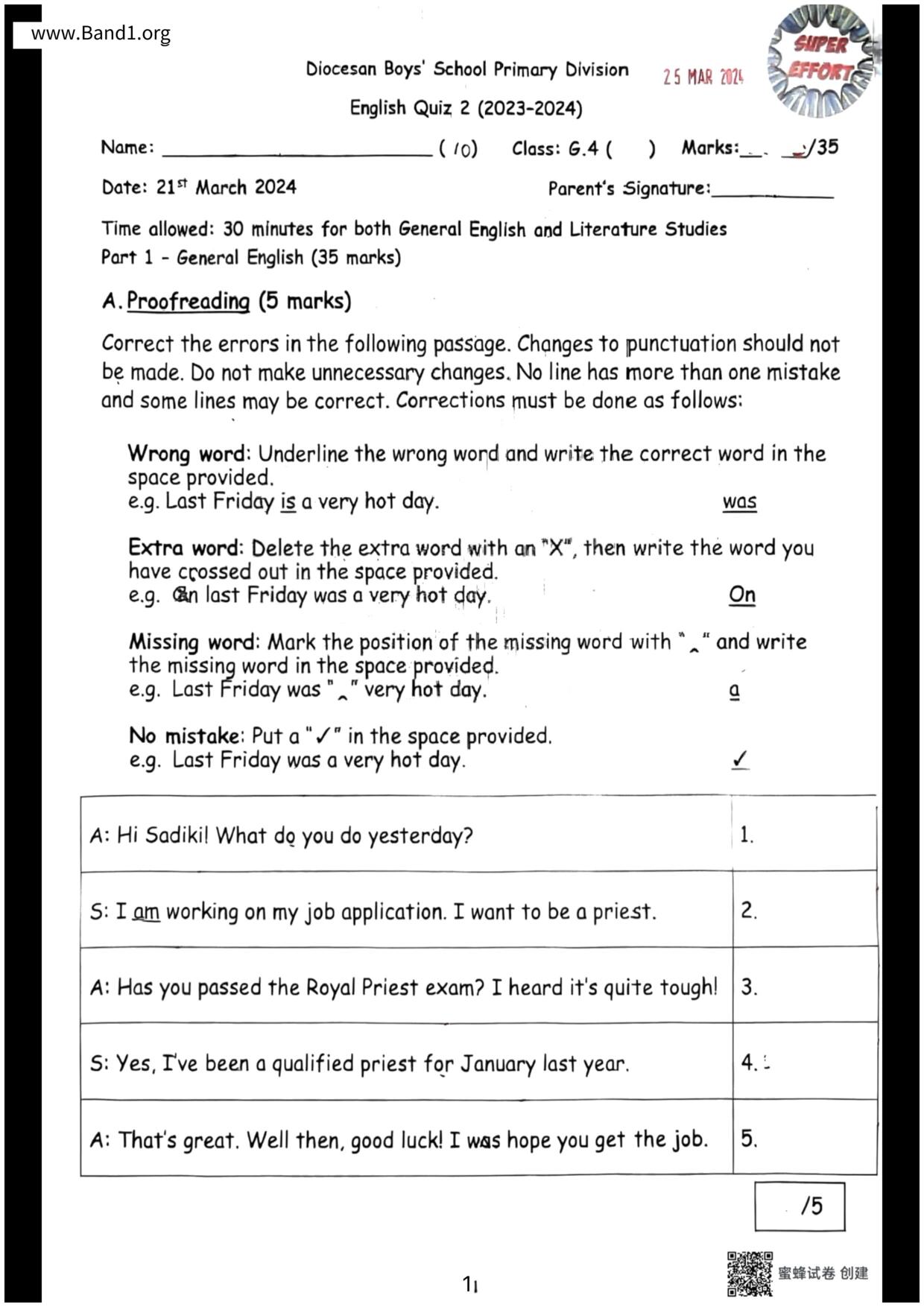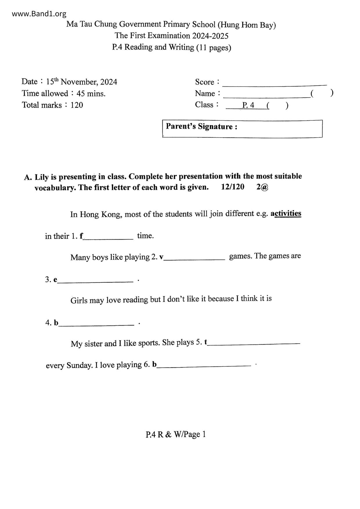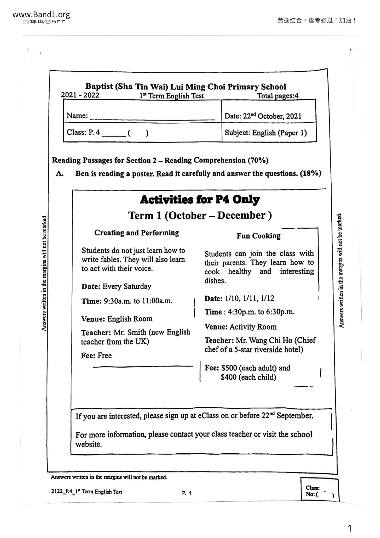 小四 英文 馬頭涌官立小學(紅磡灣)