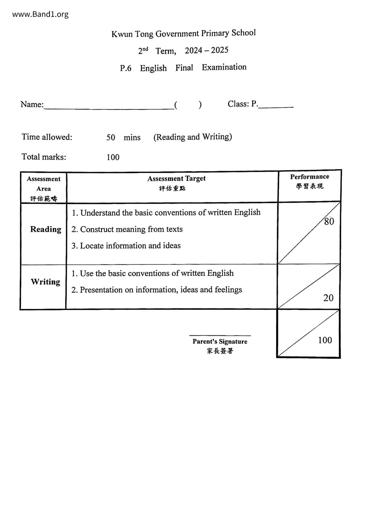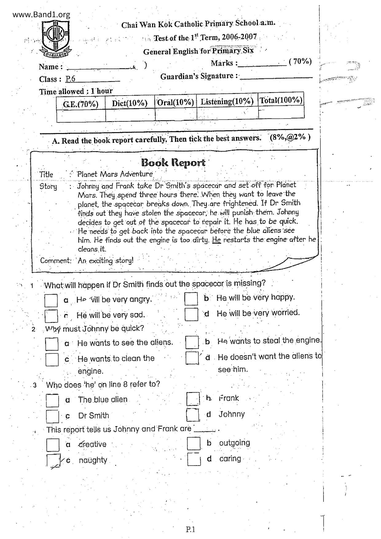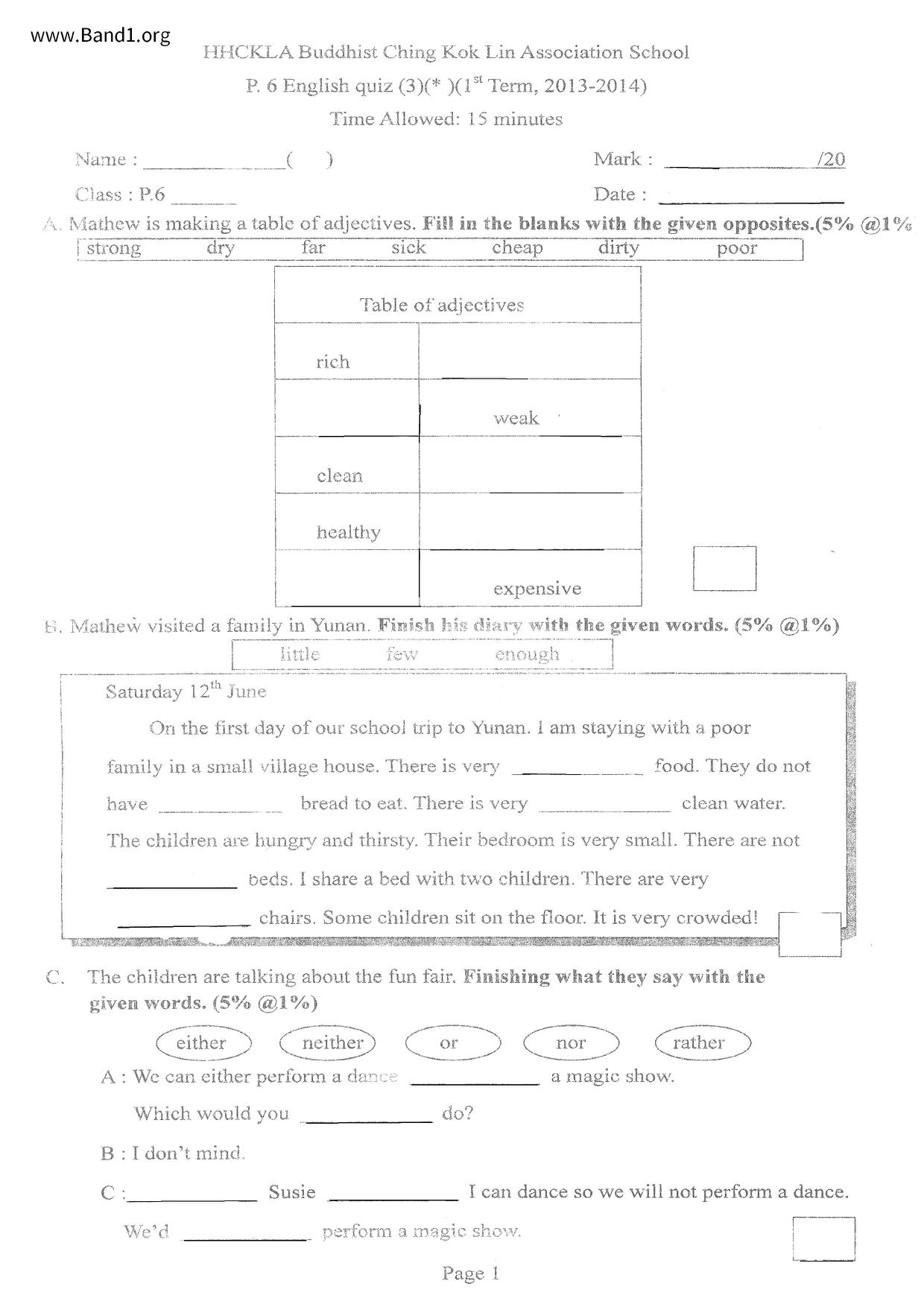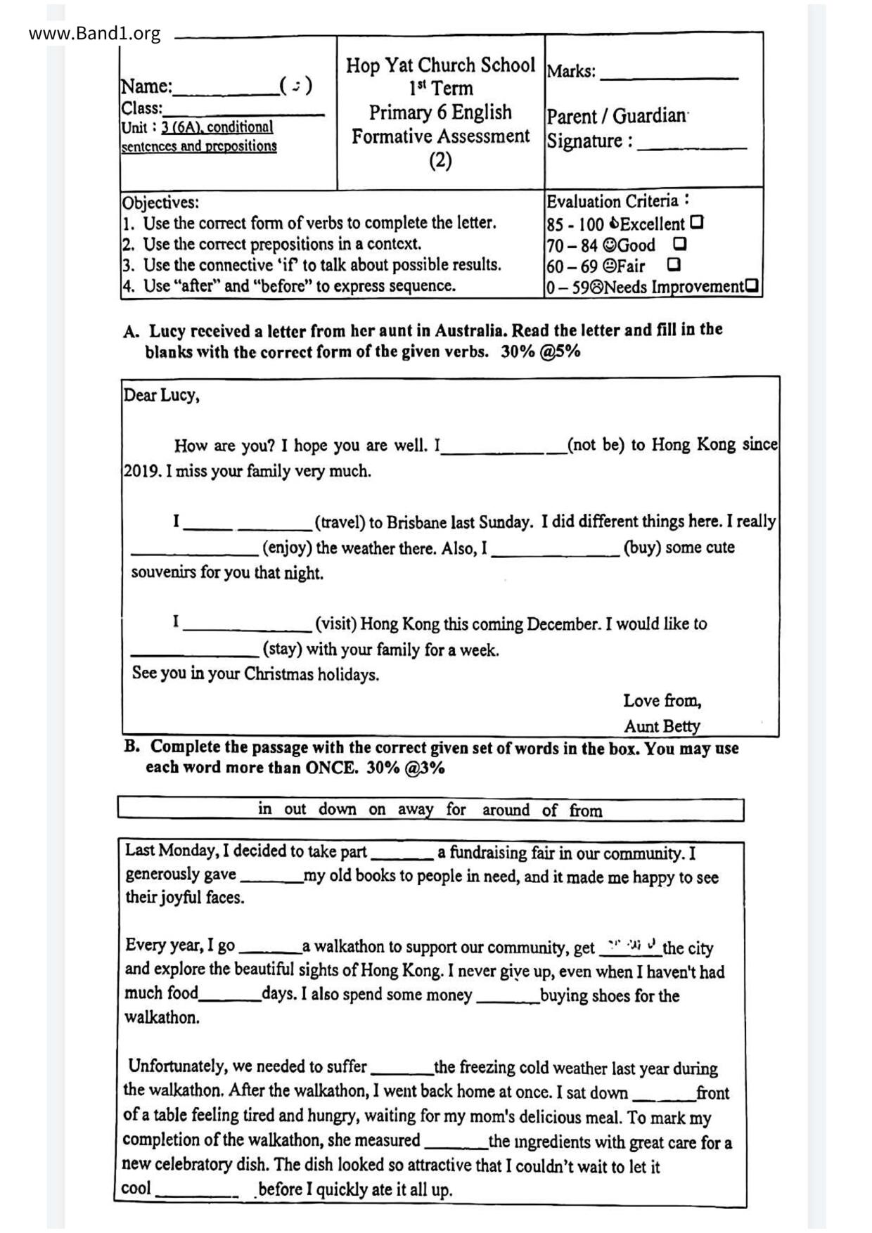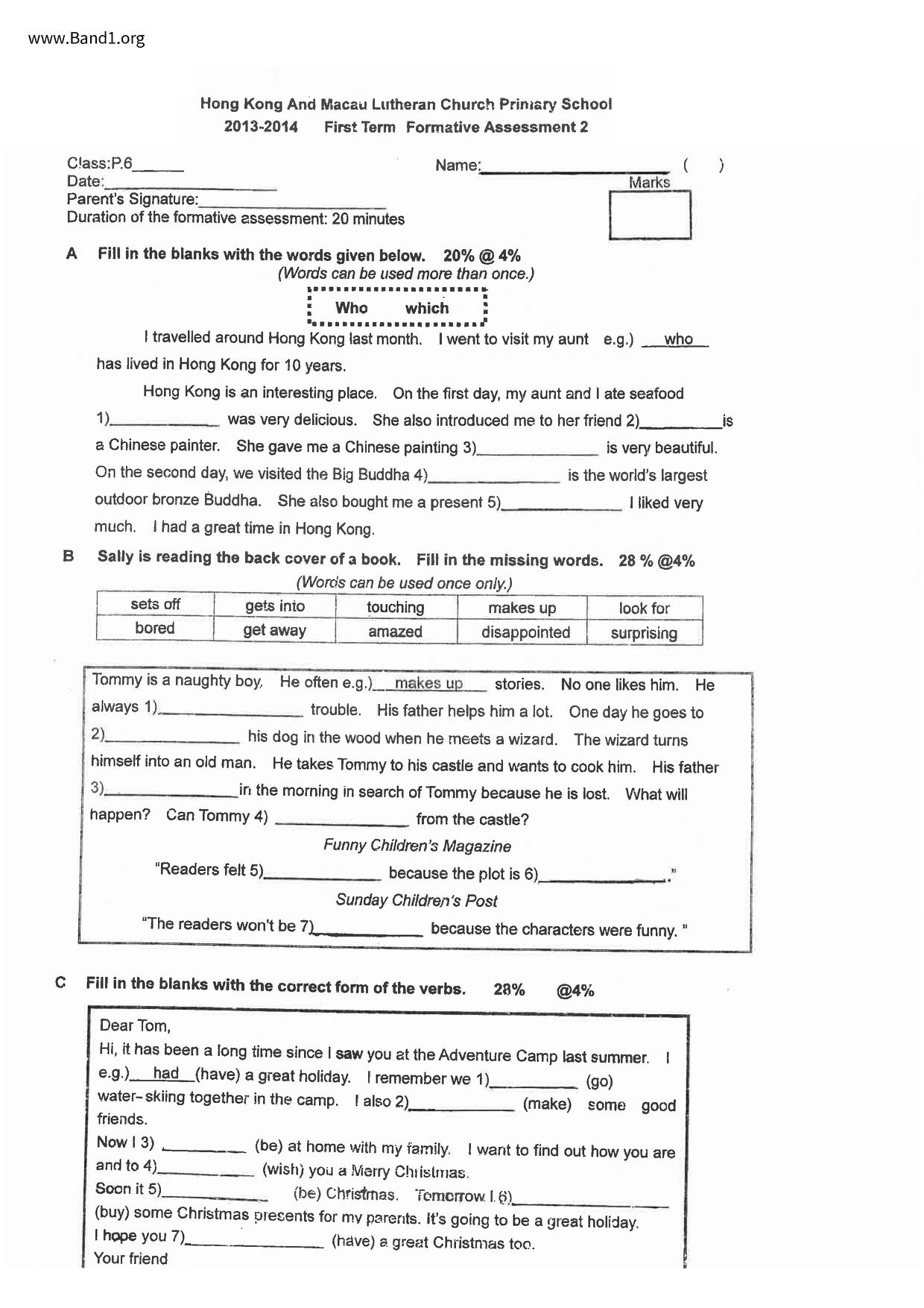 小六 英文 路德會聖馬太學校(秀茂坪)
