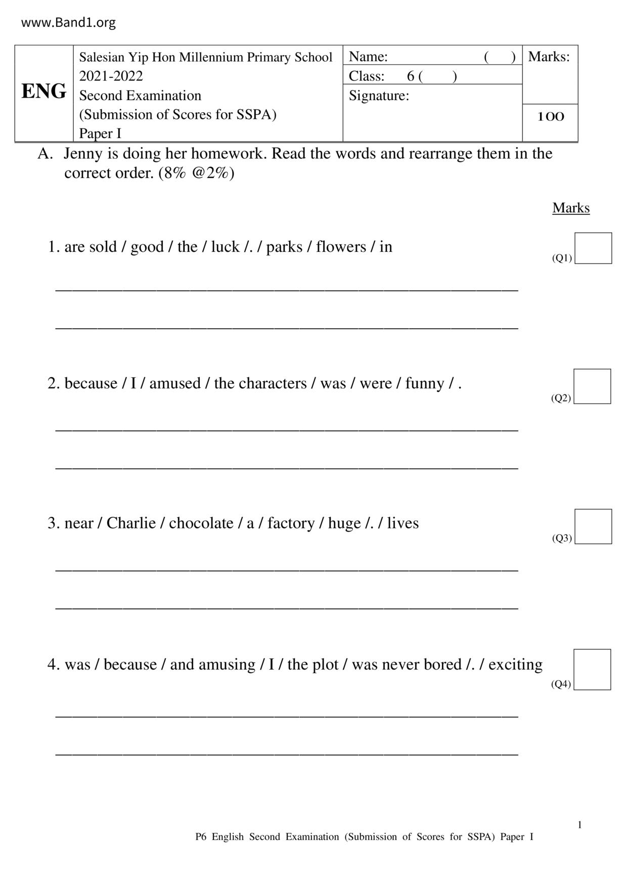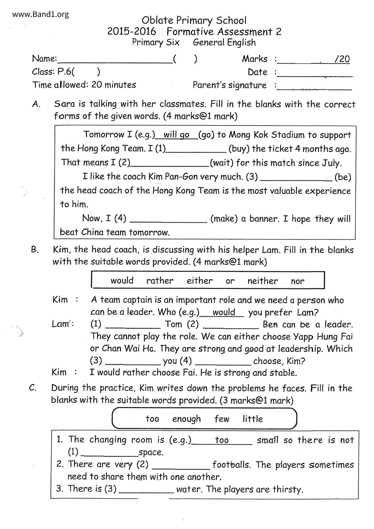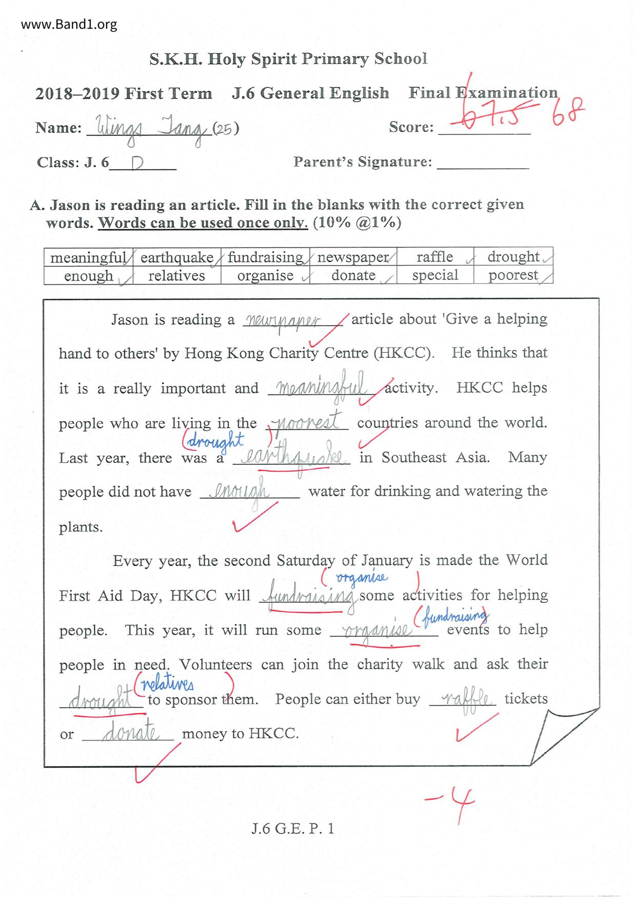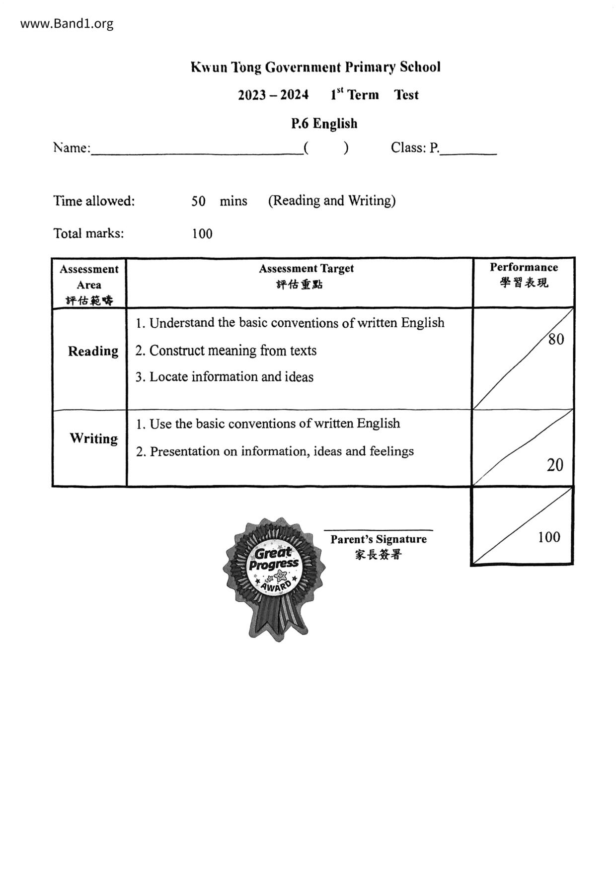 小六 英文 路德會聖馬太學校(秀茂坪)
