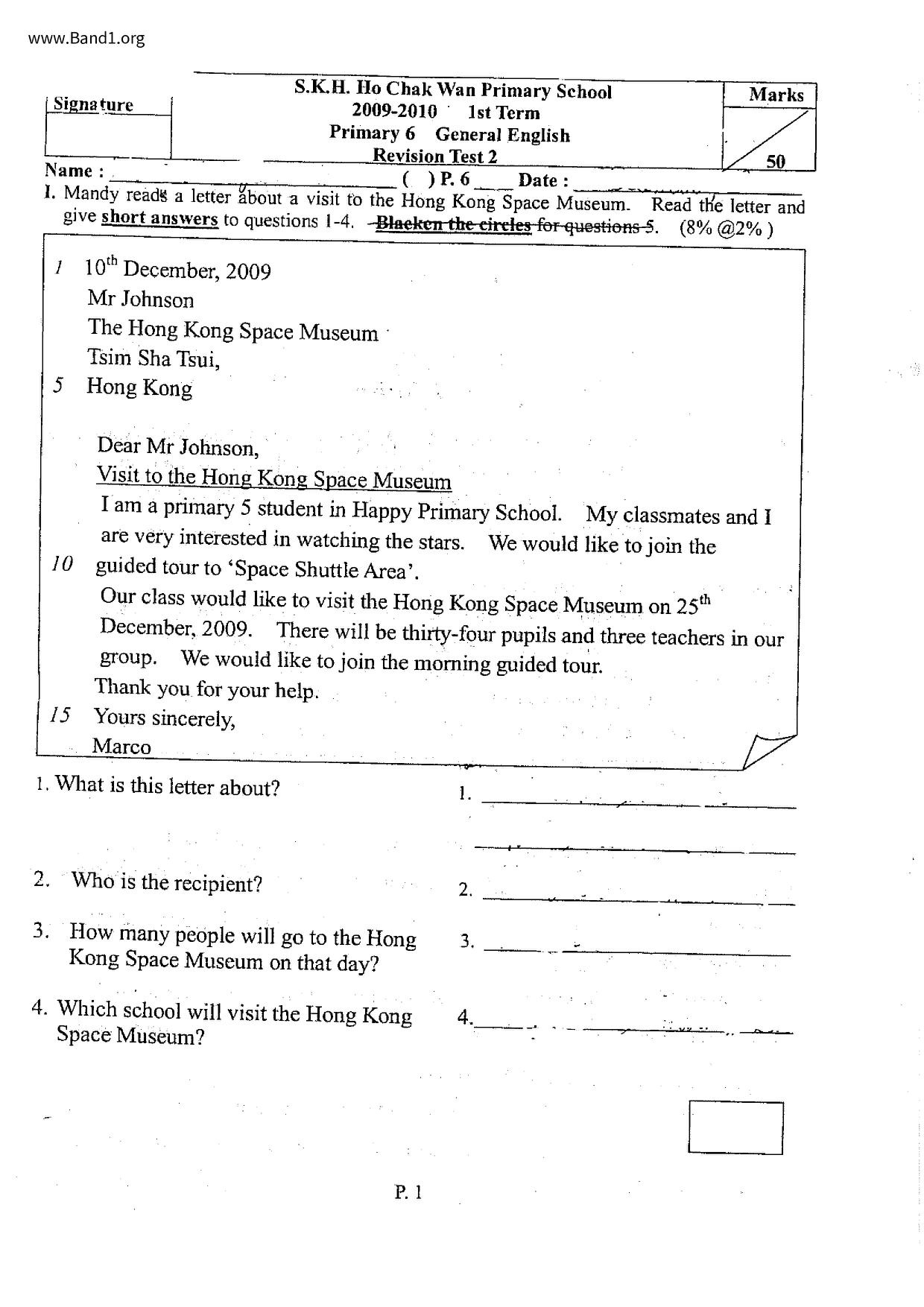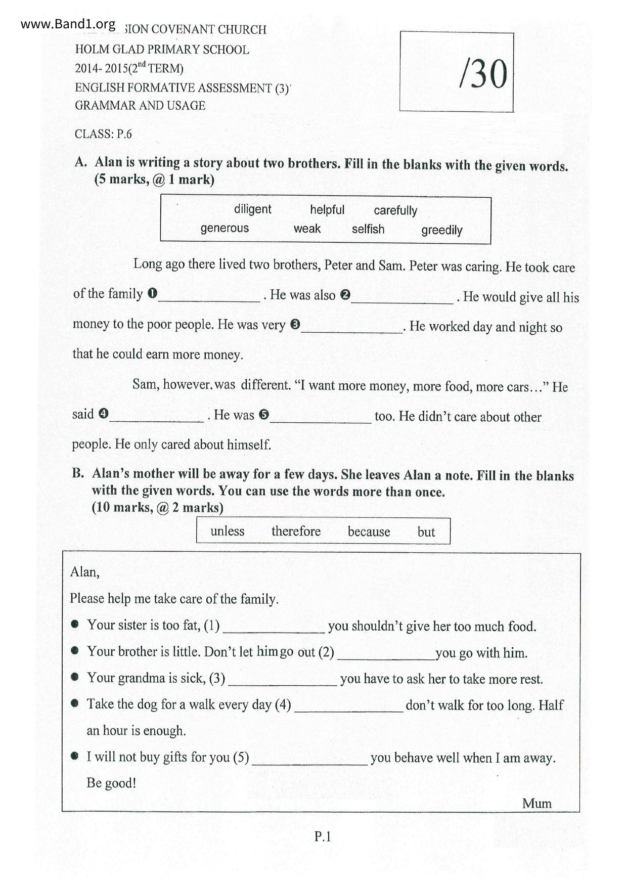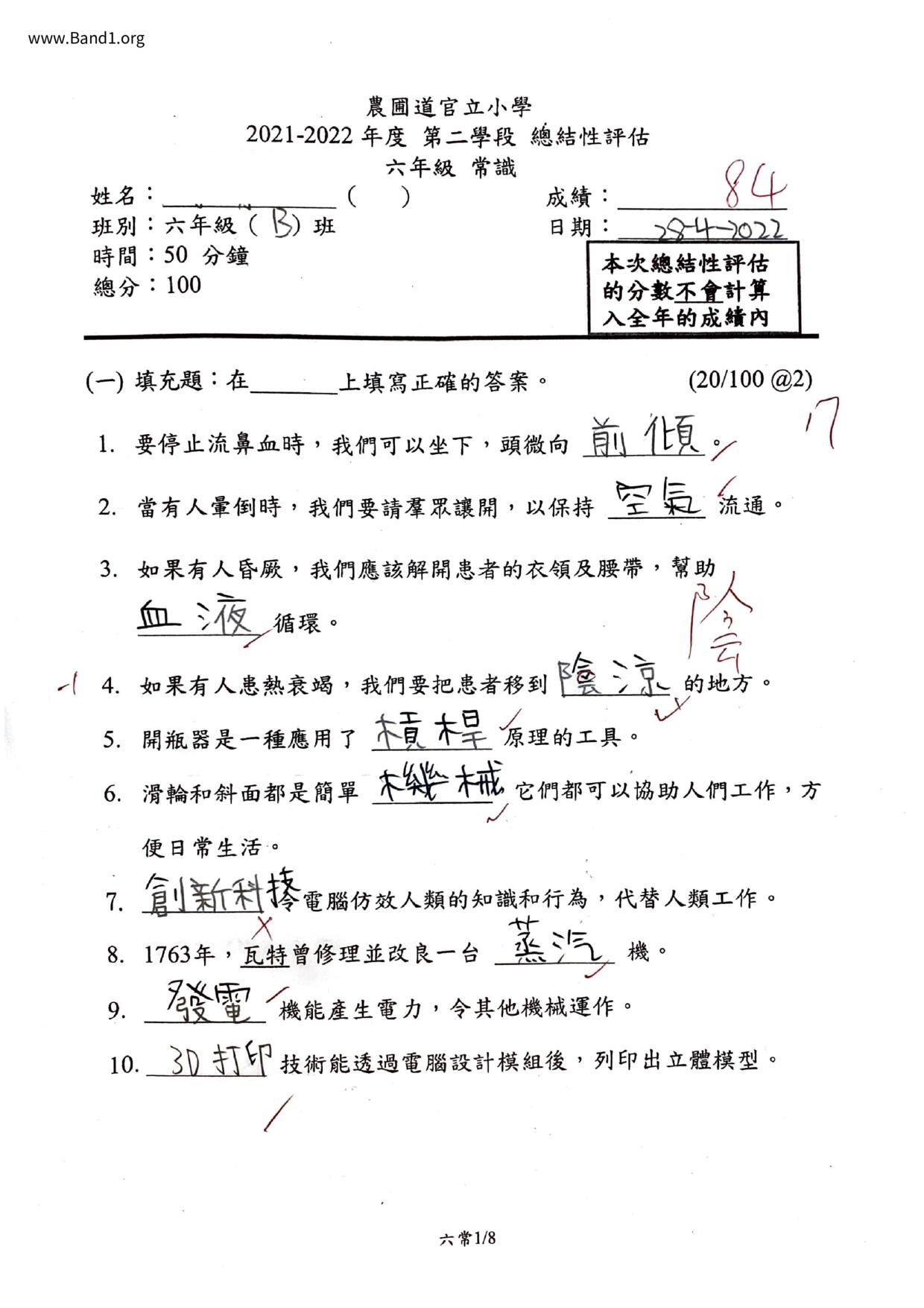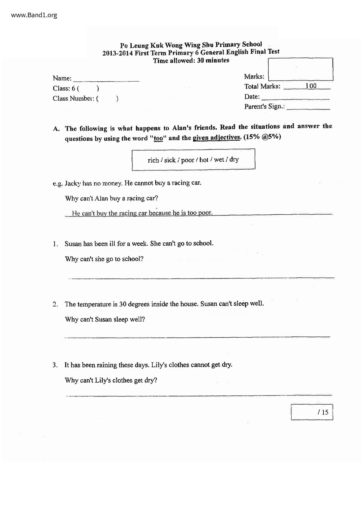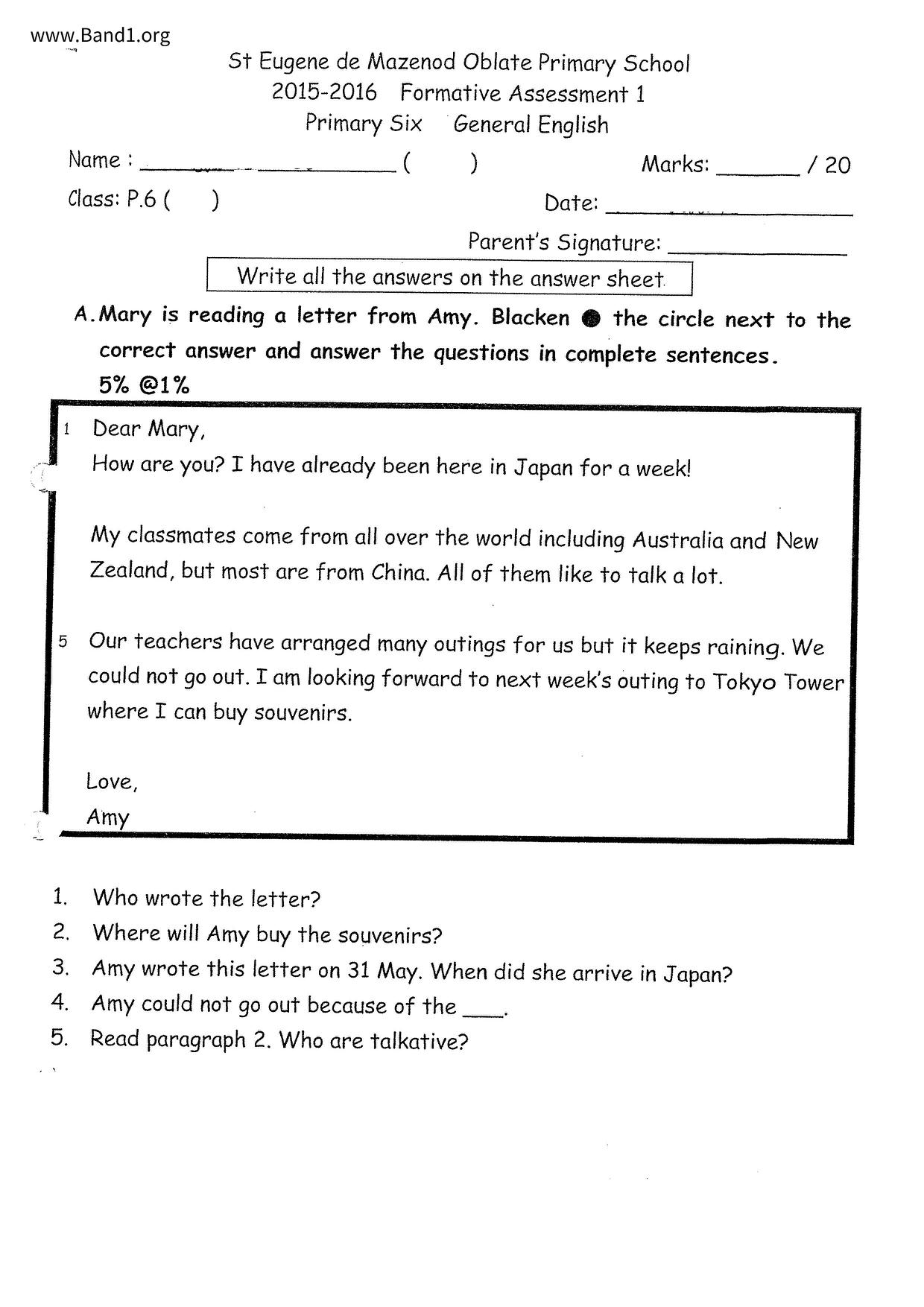 小六 英文 路德會聖馬太學校(秀茂坪)