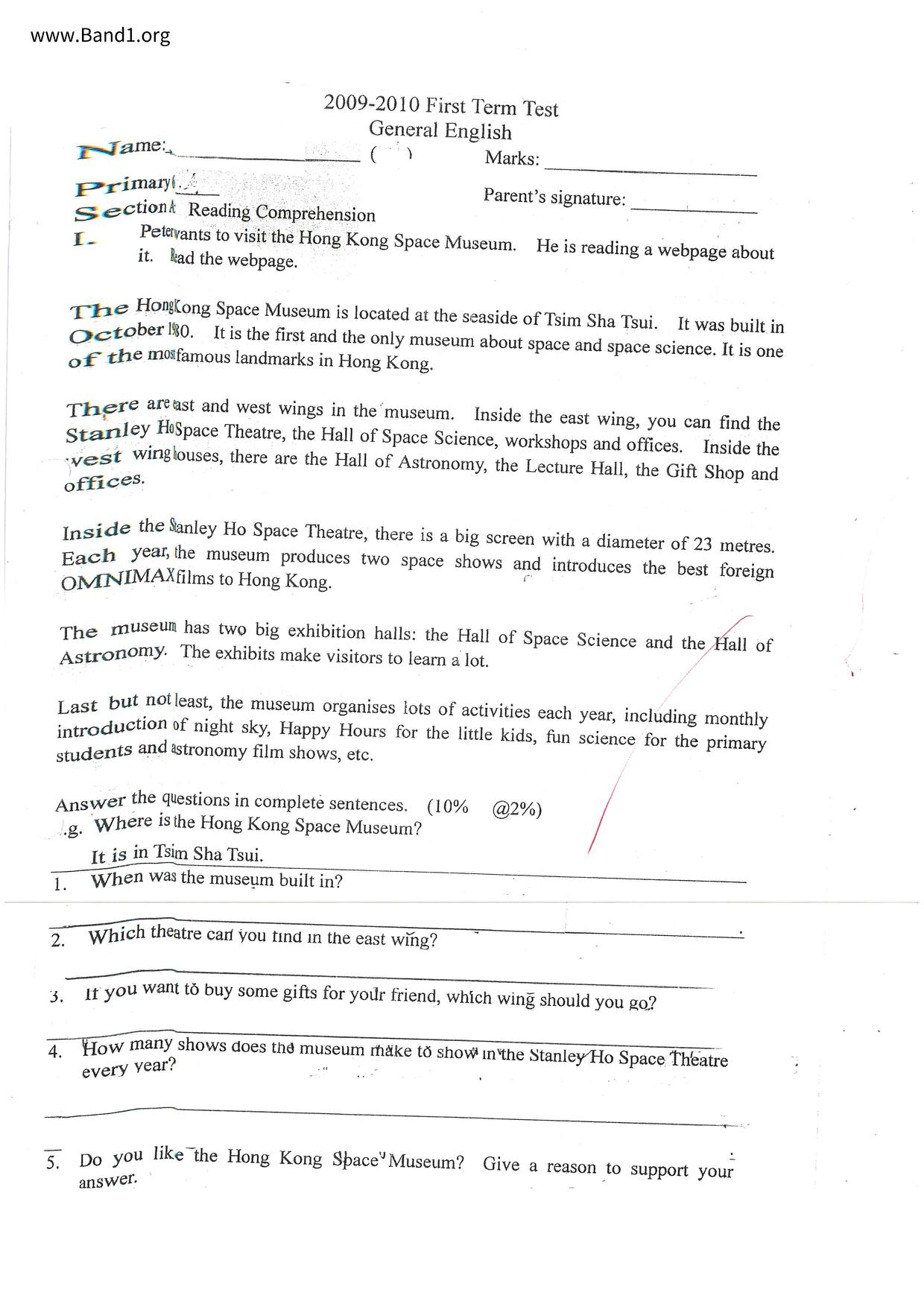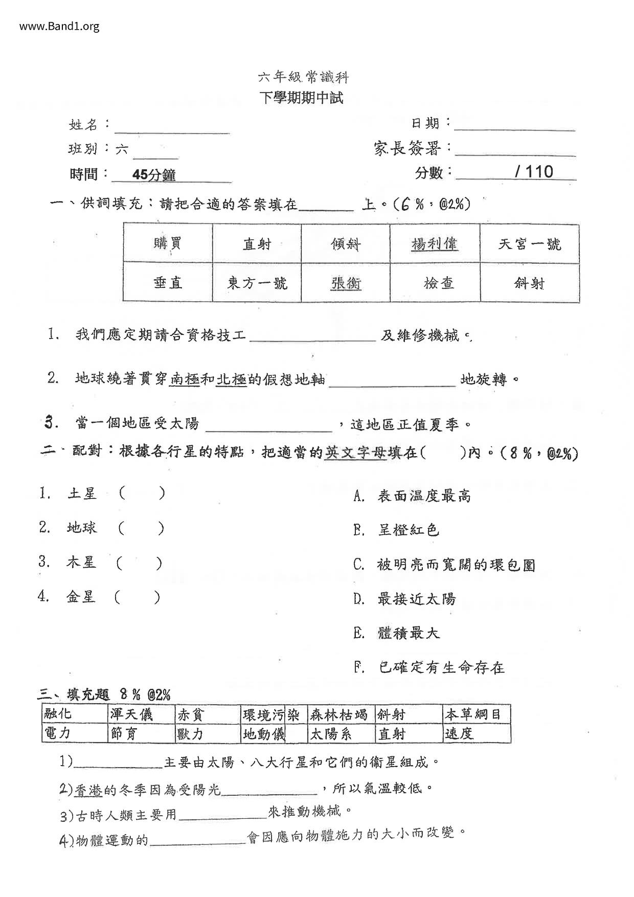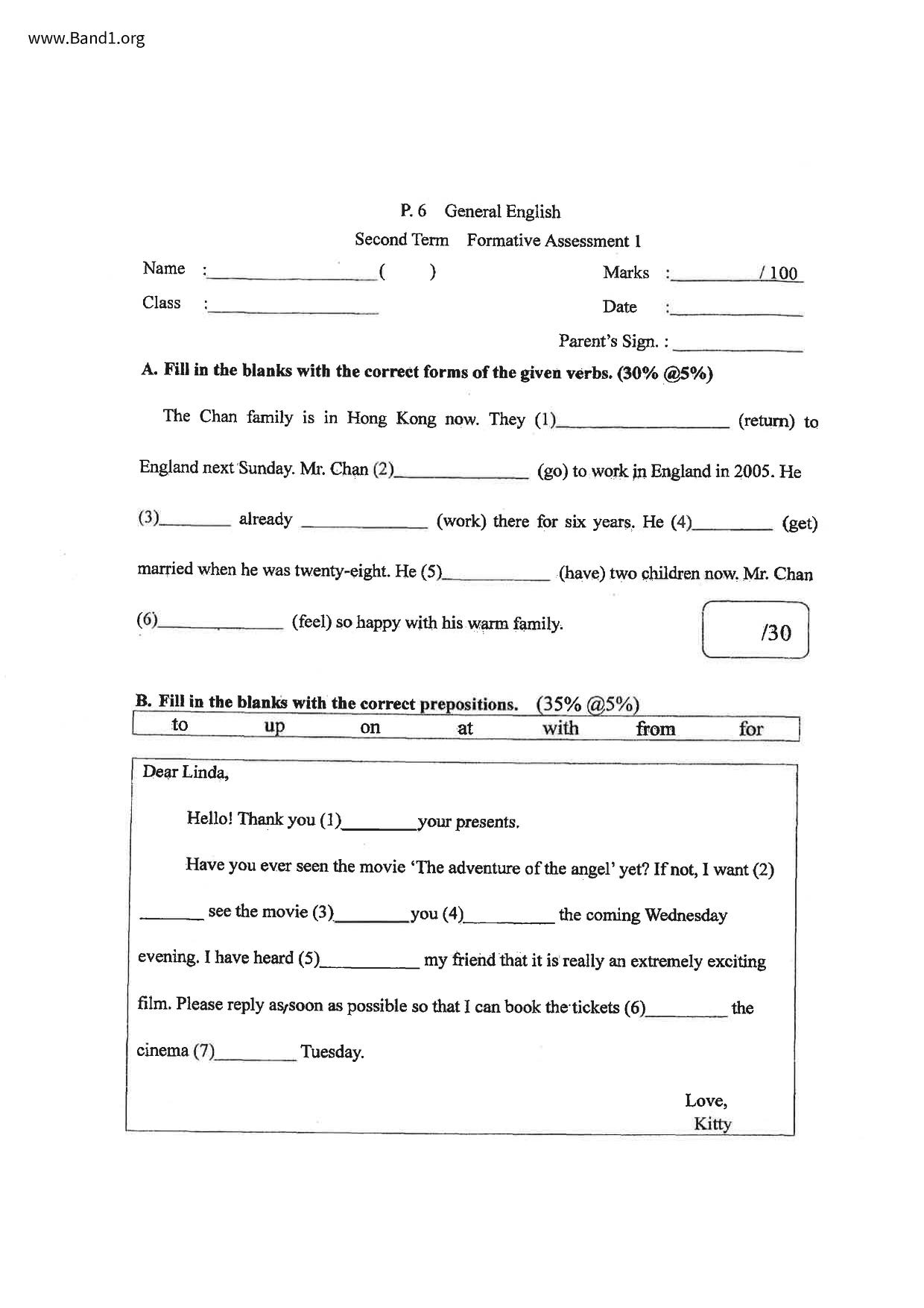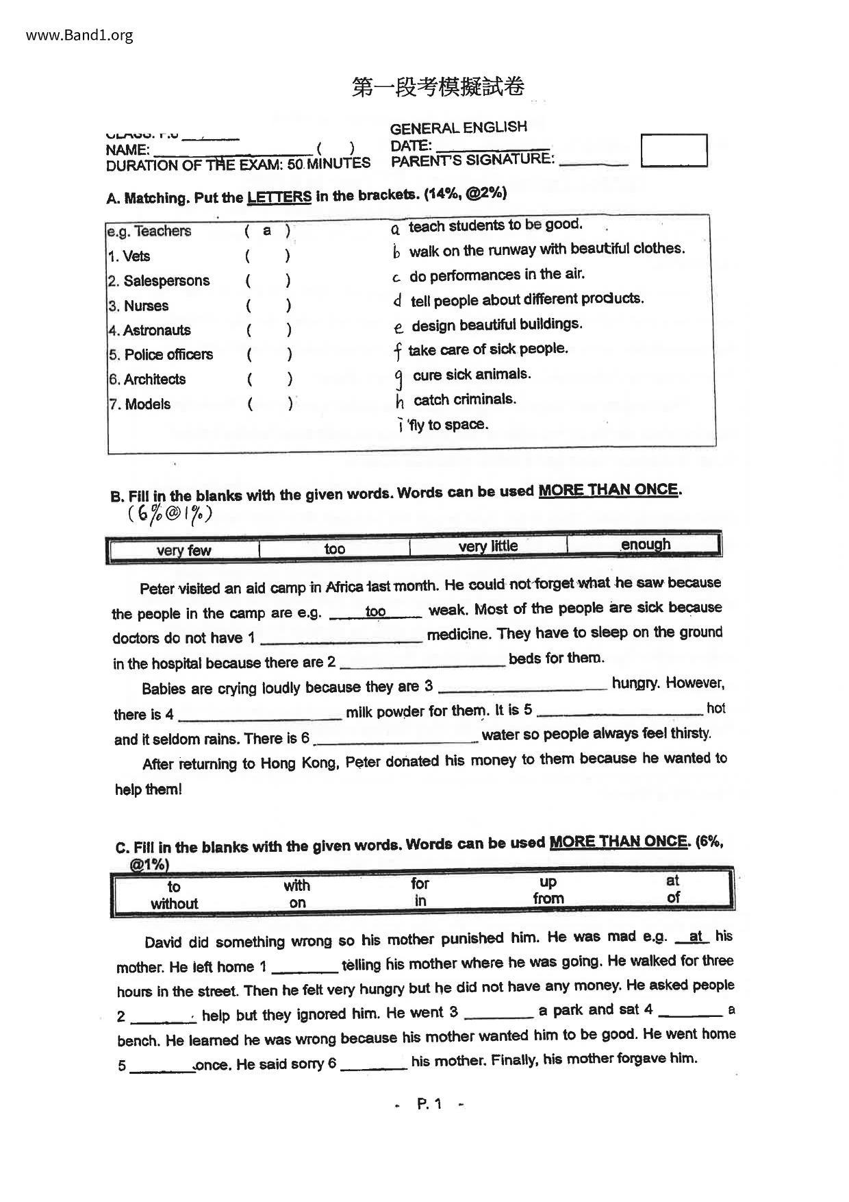 小六 英文 路德會聖馬太學校(秀茂坪)