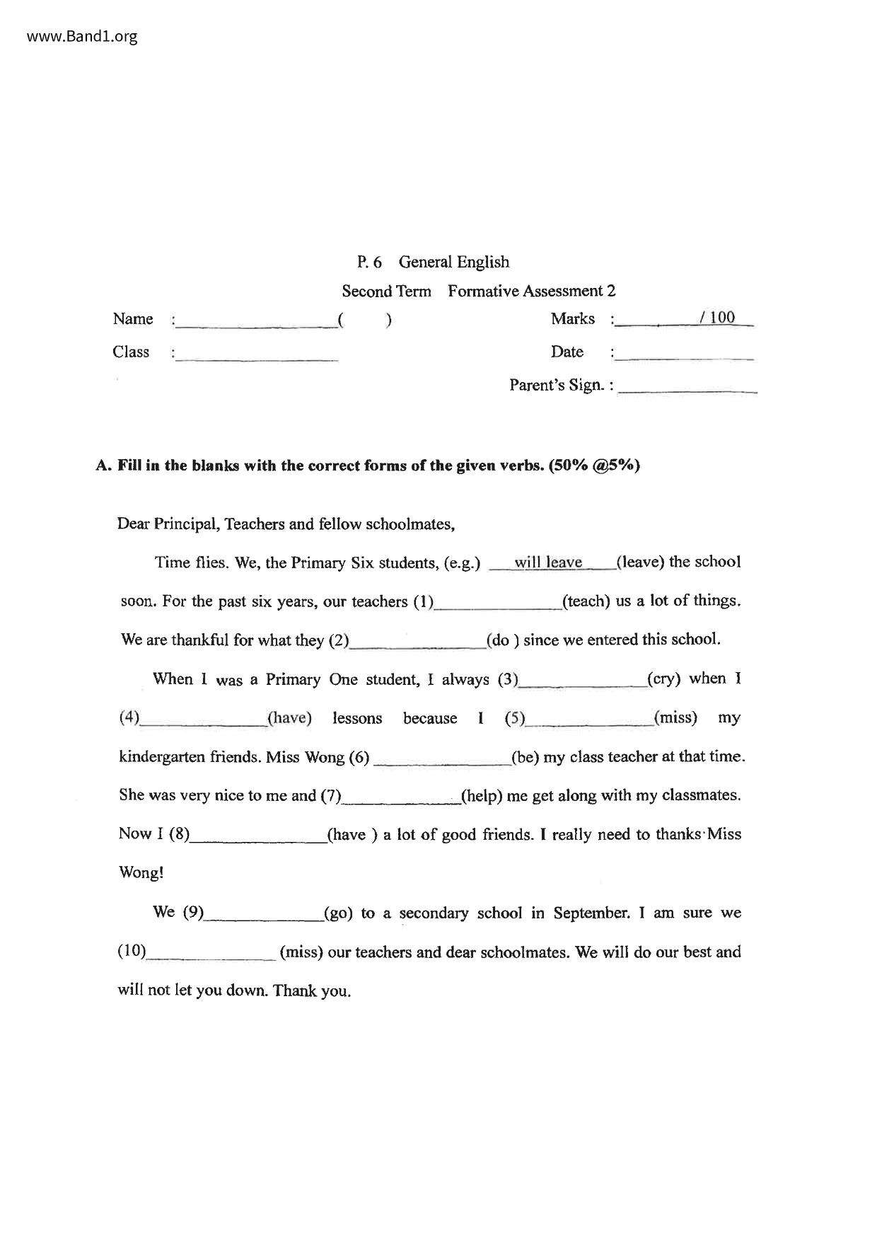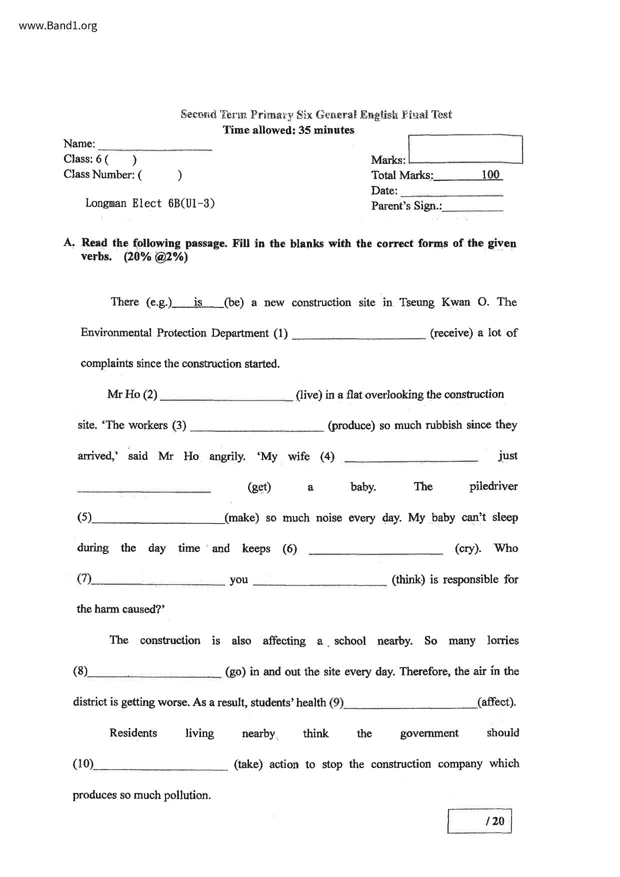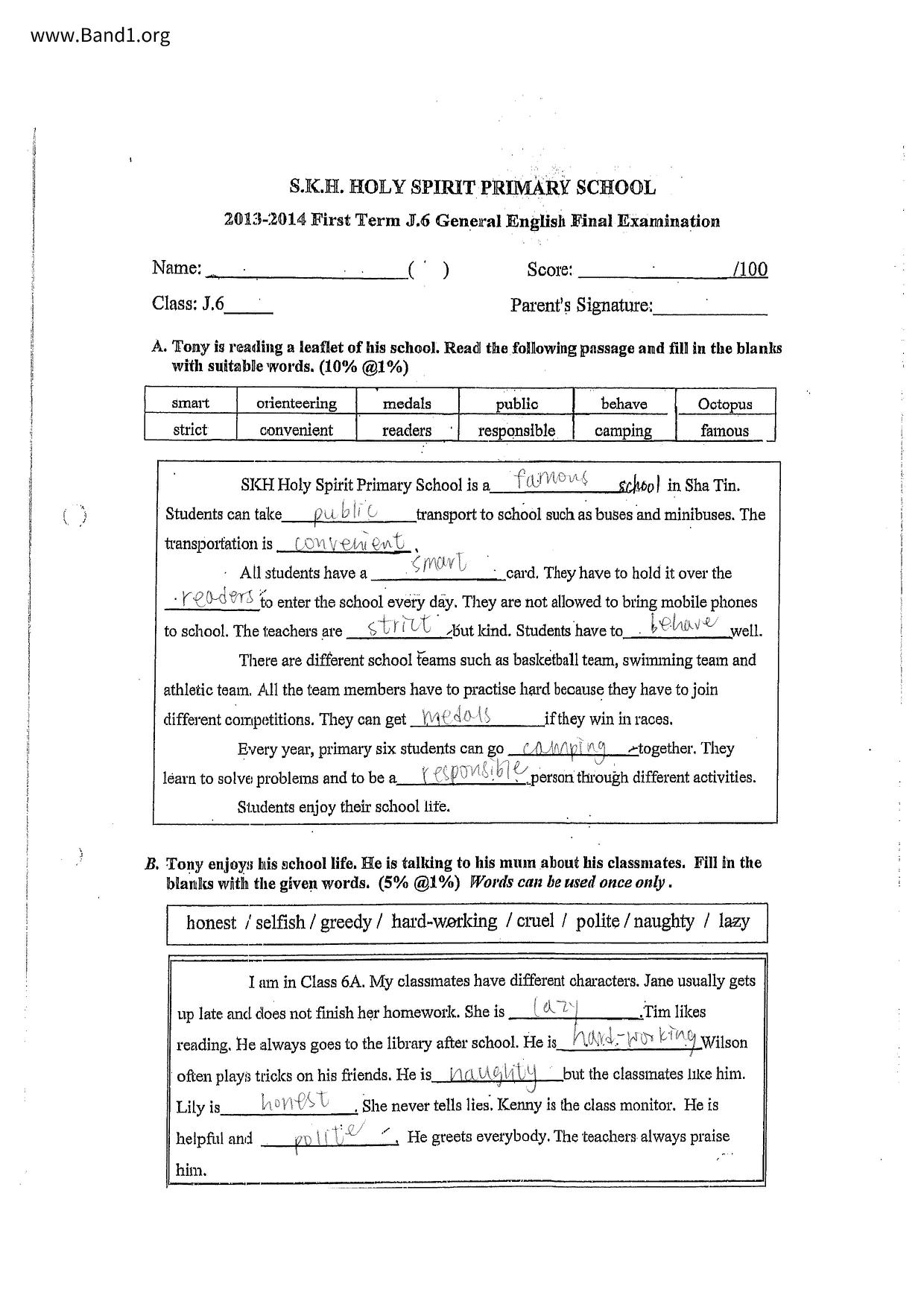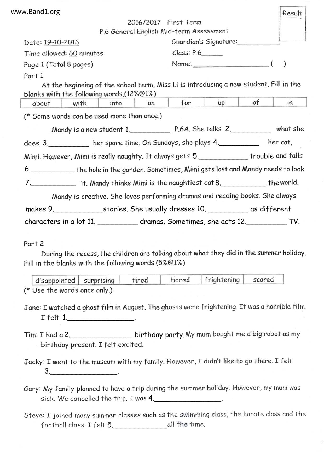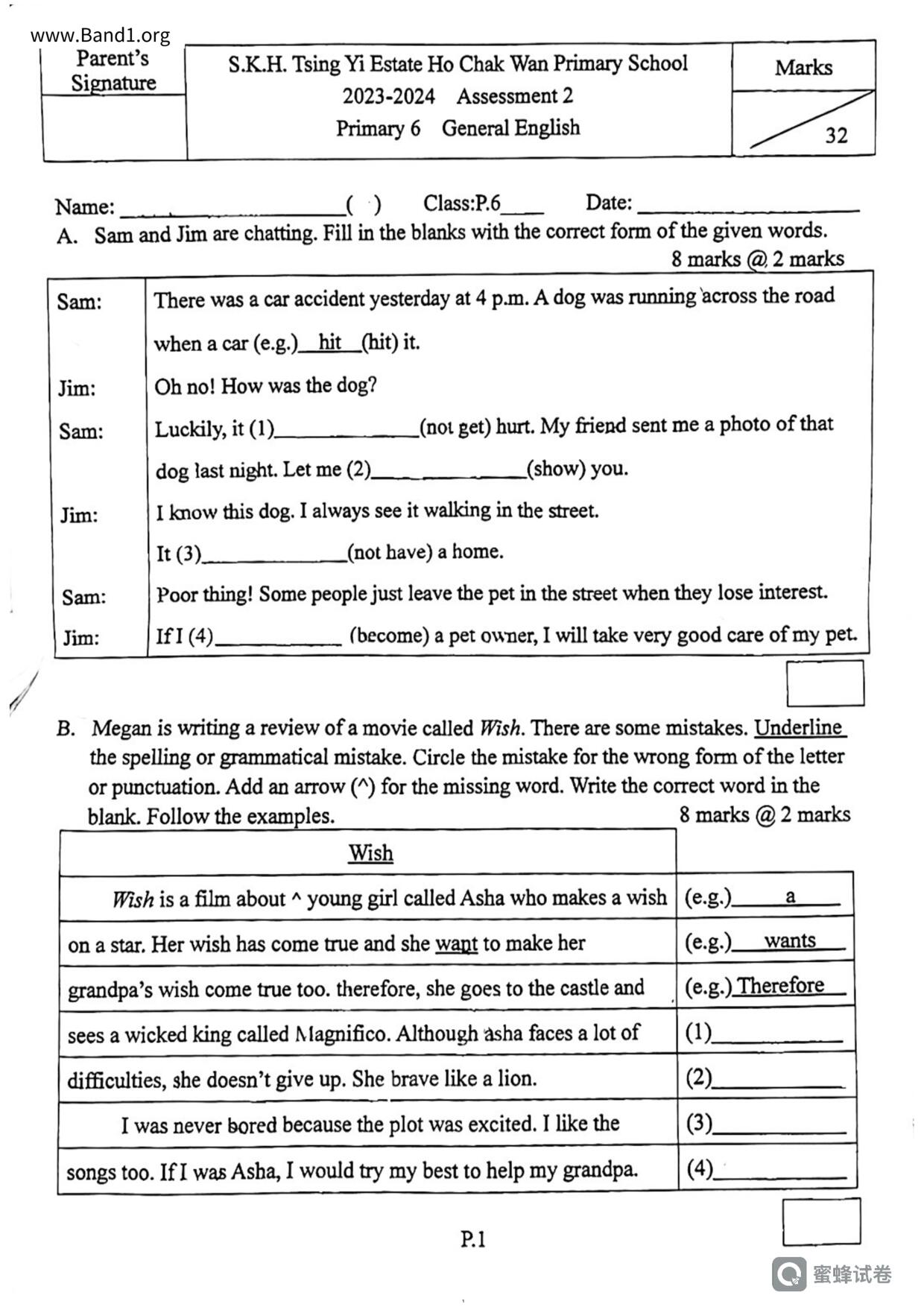 小六 英文 路德會聖馬太學校(秀茂坪)