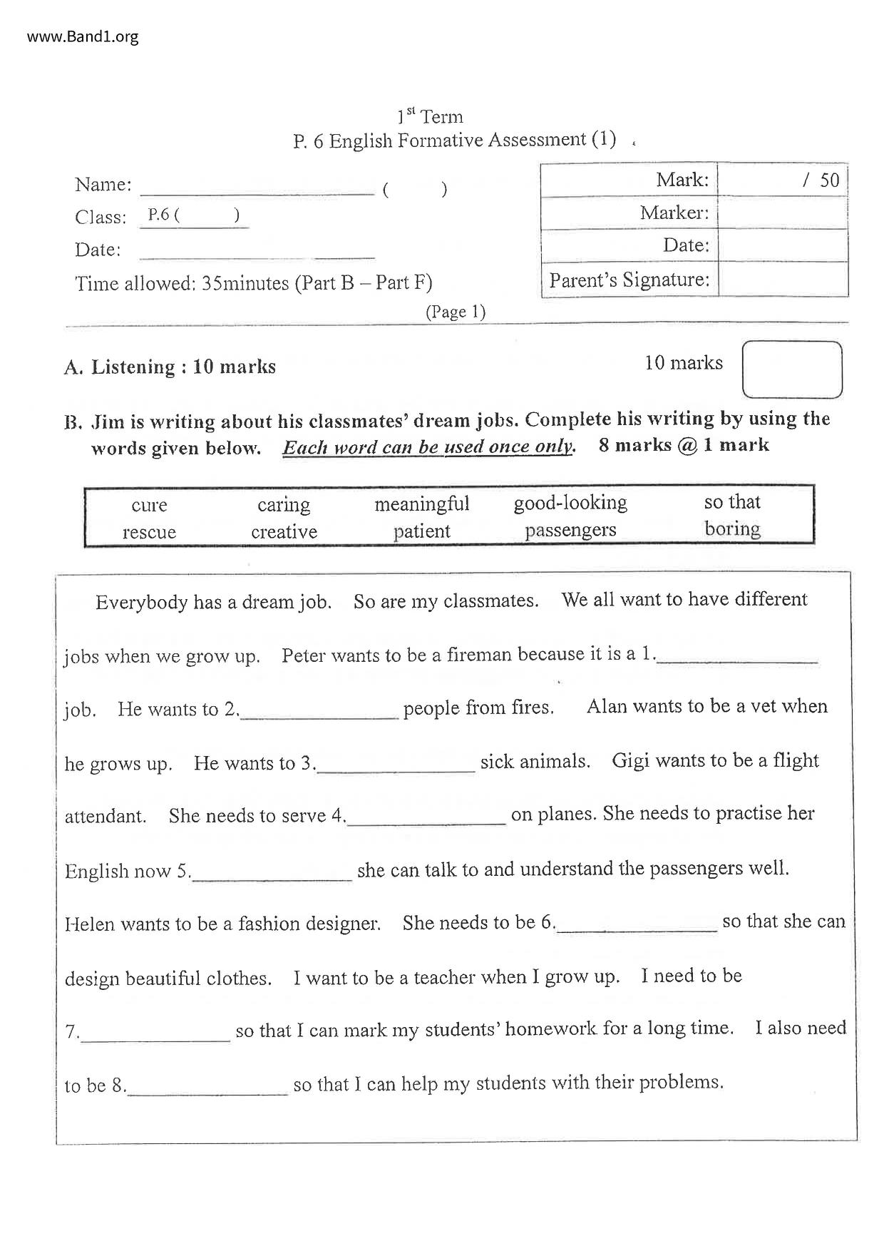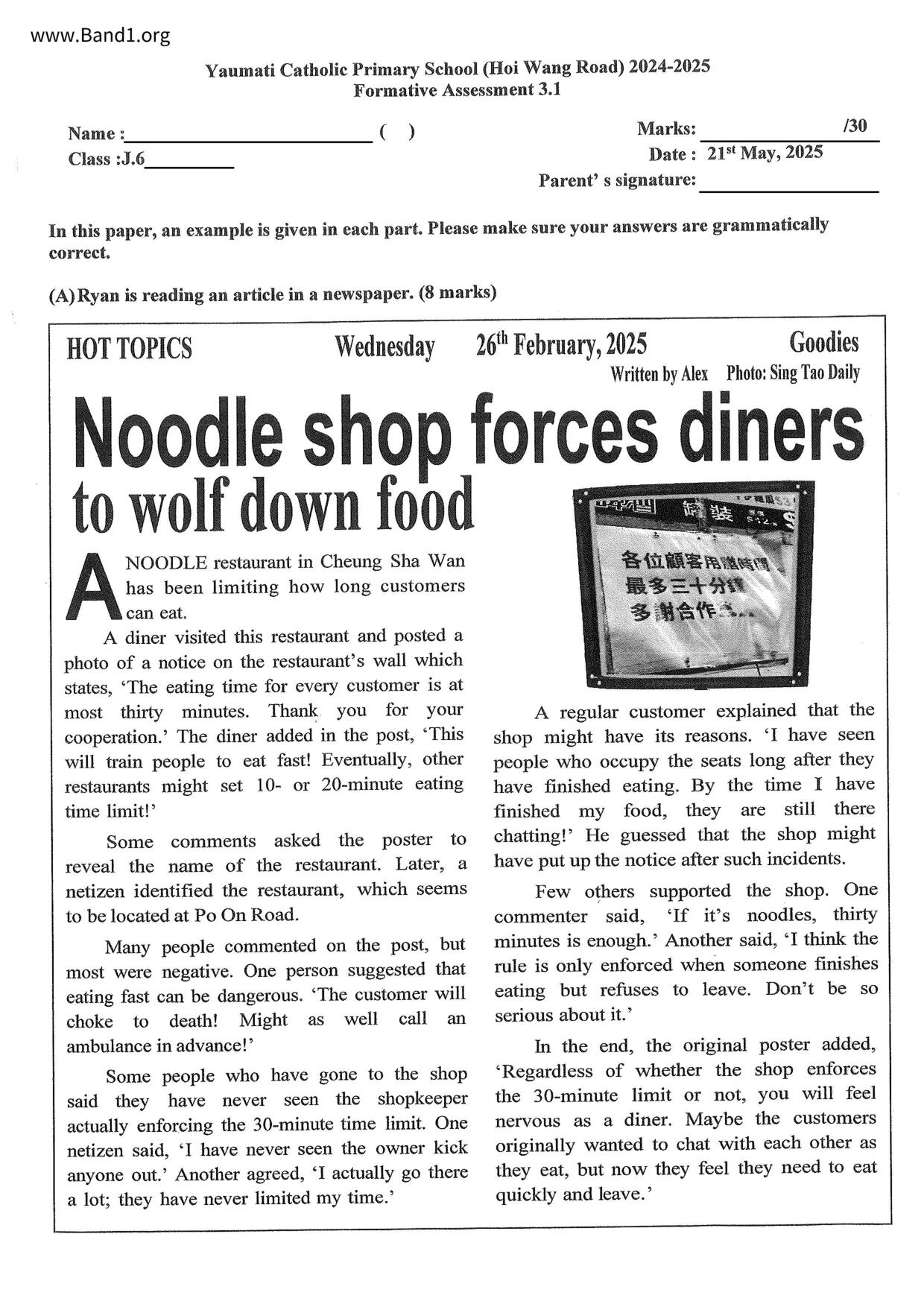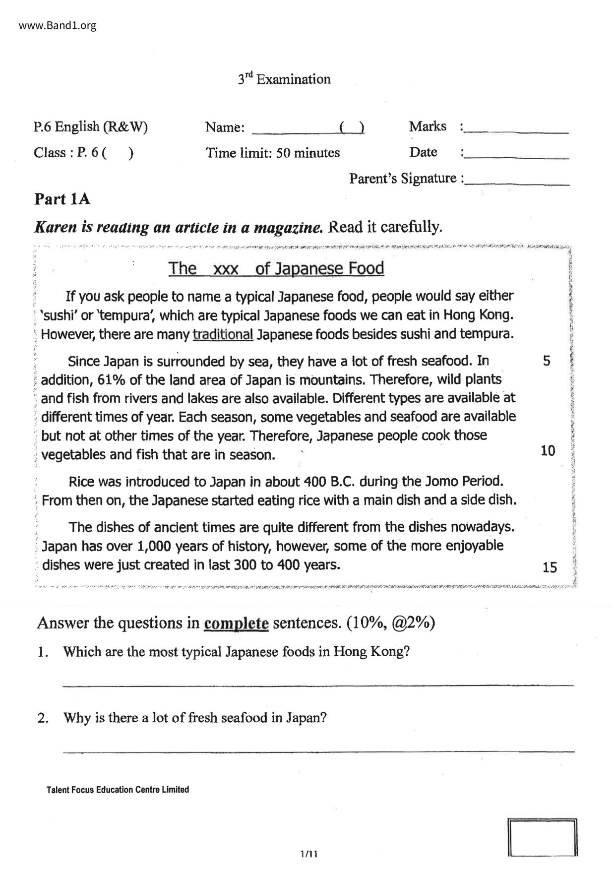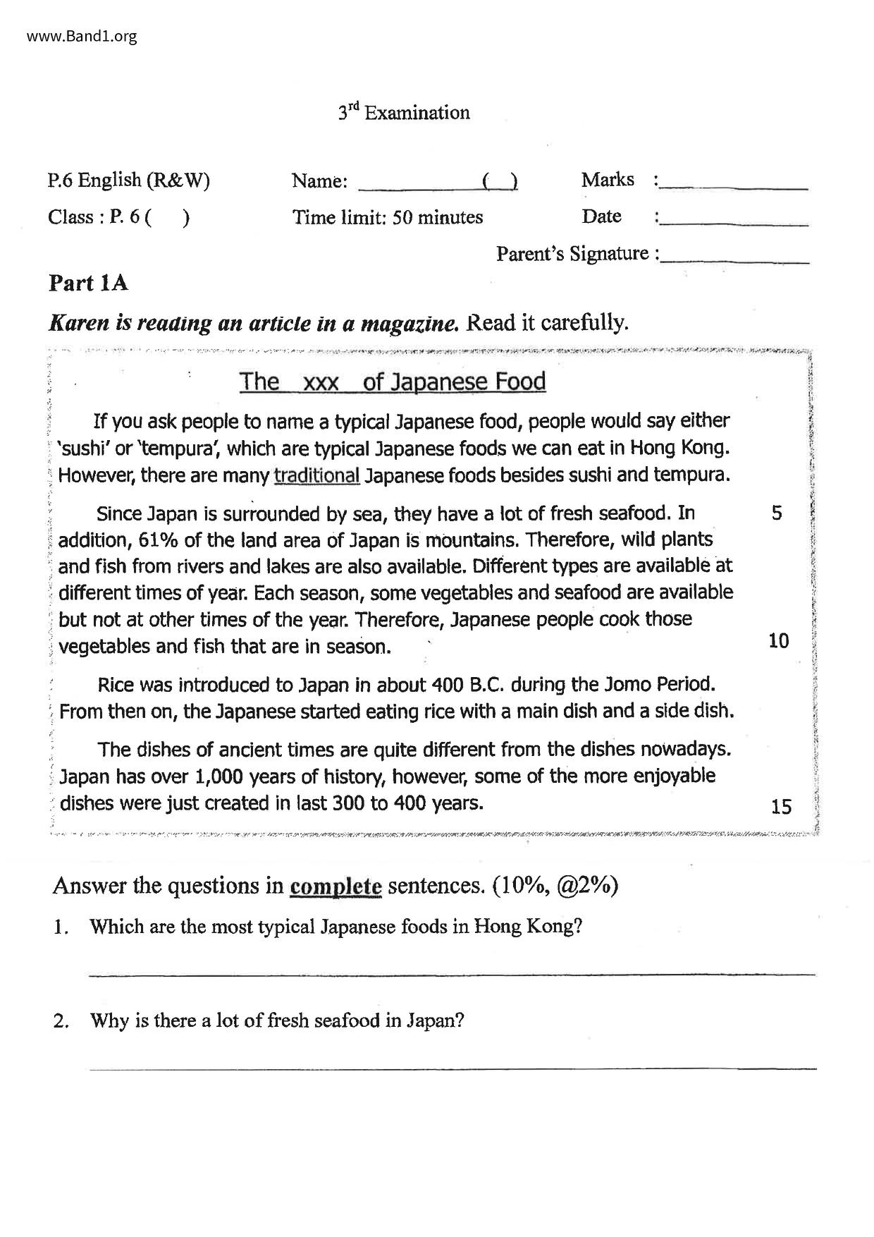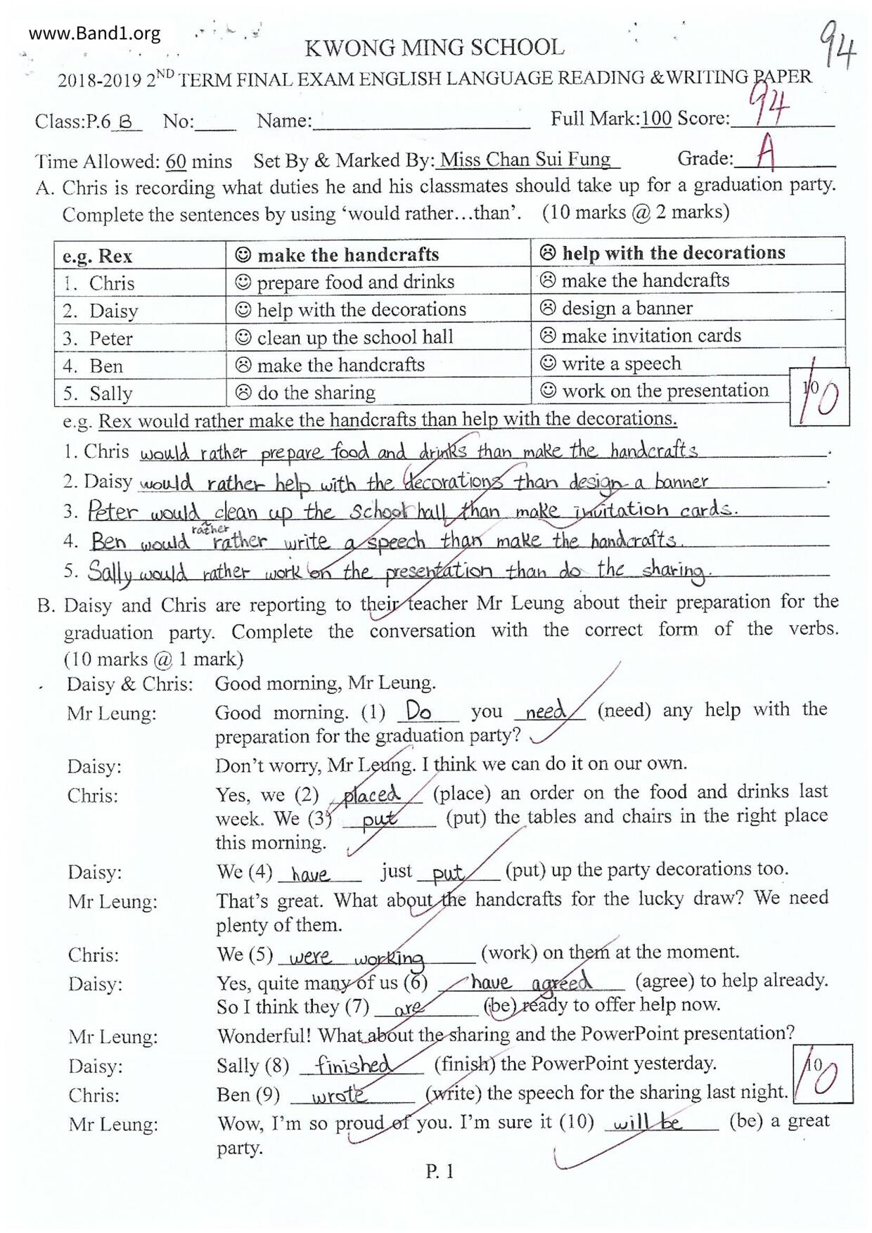 小六 英文 路德會聖馬太學校(秀茂坪)