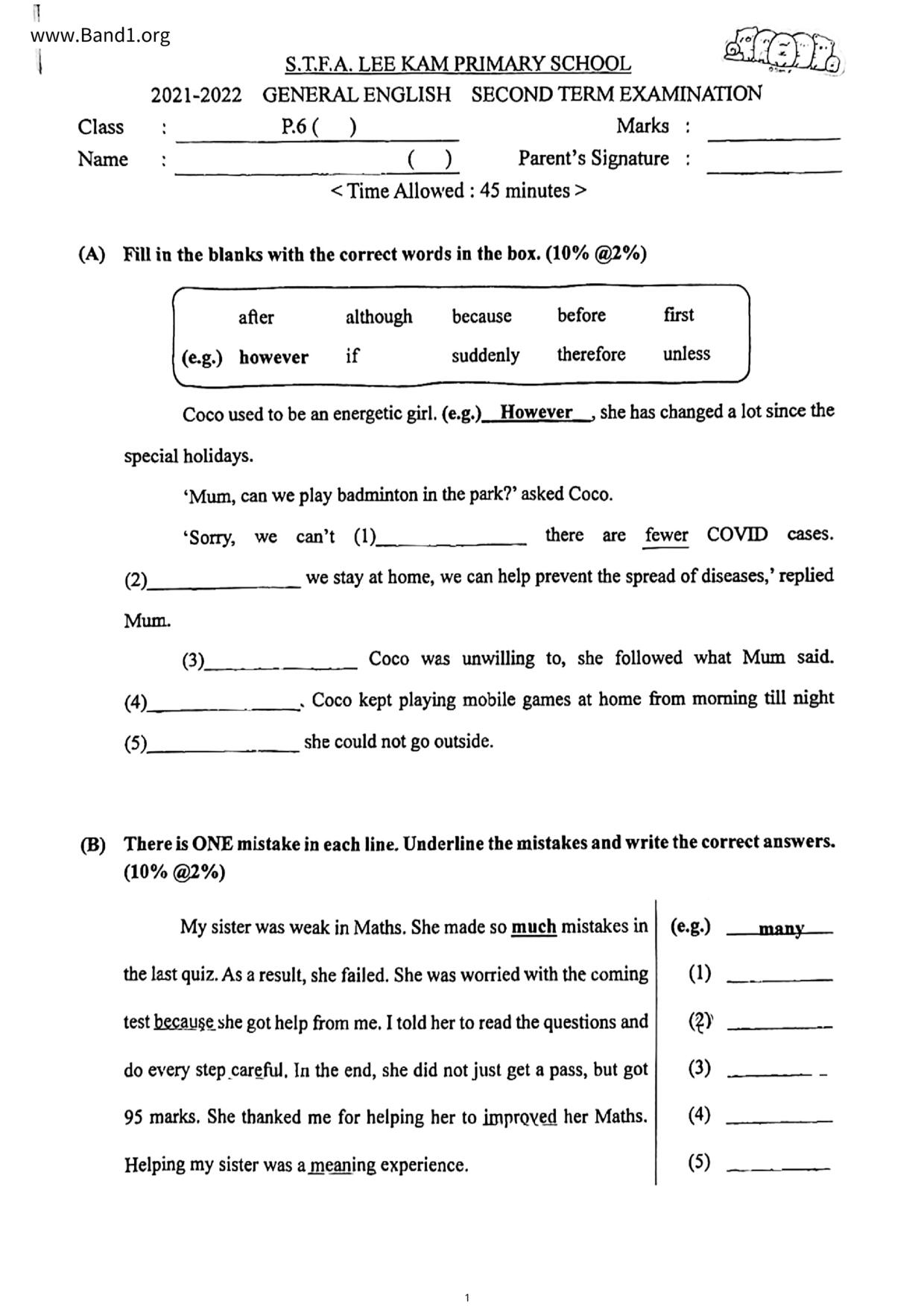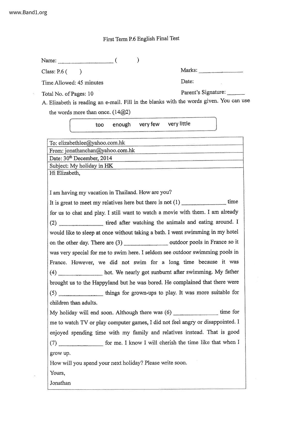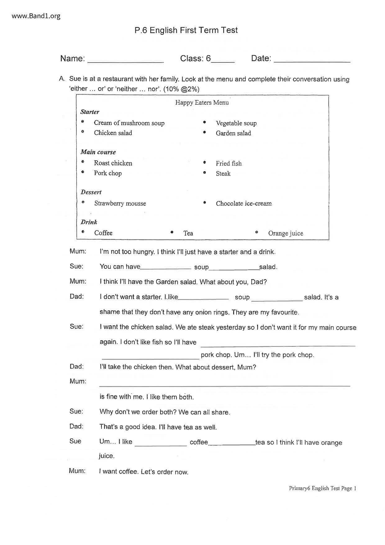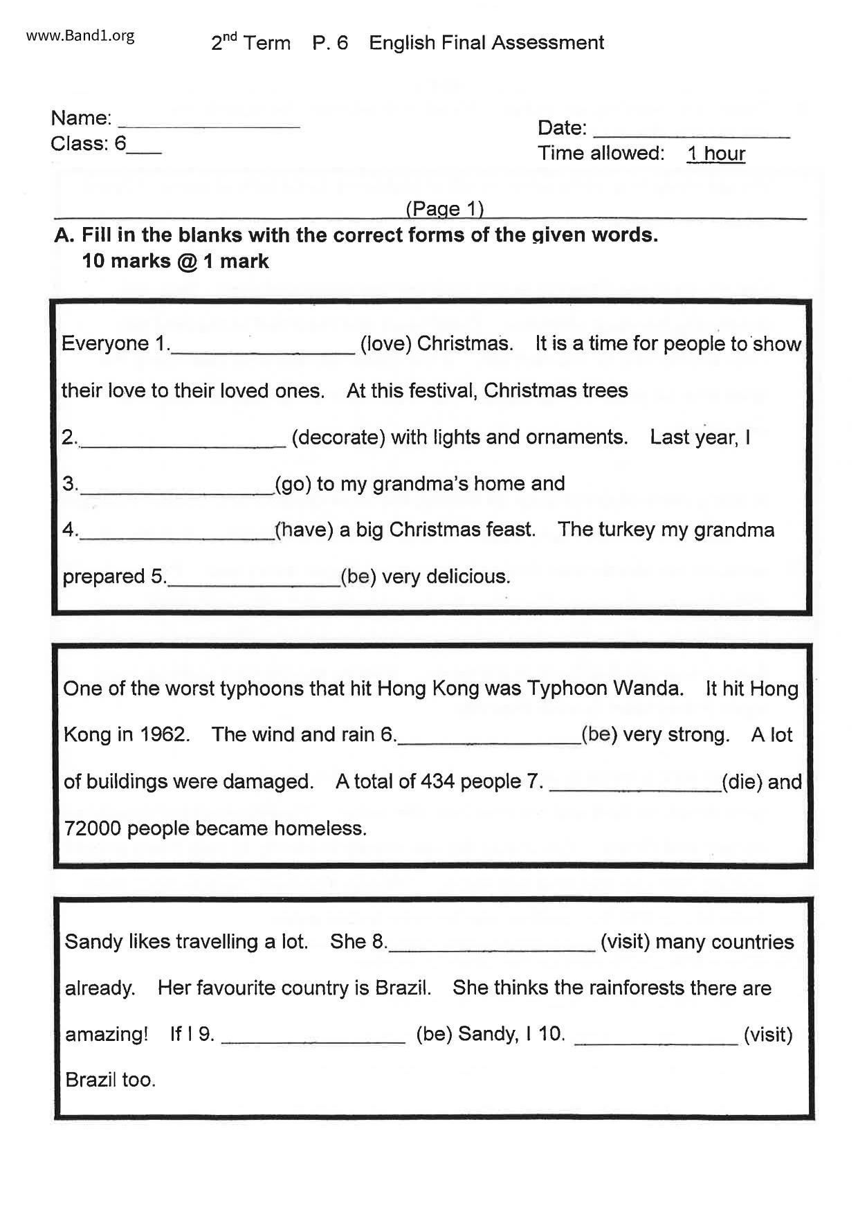 小六 英文 路德會聖馬太學校(秀茂坪)