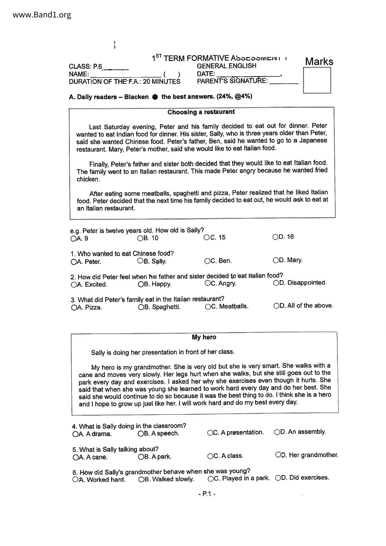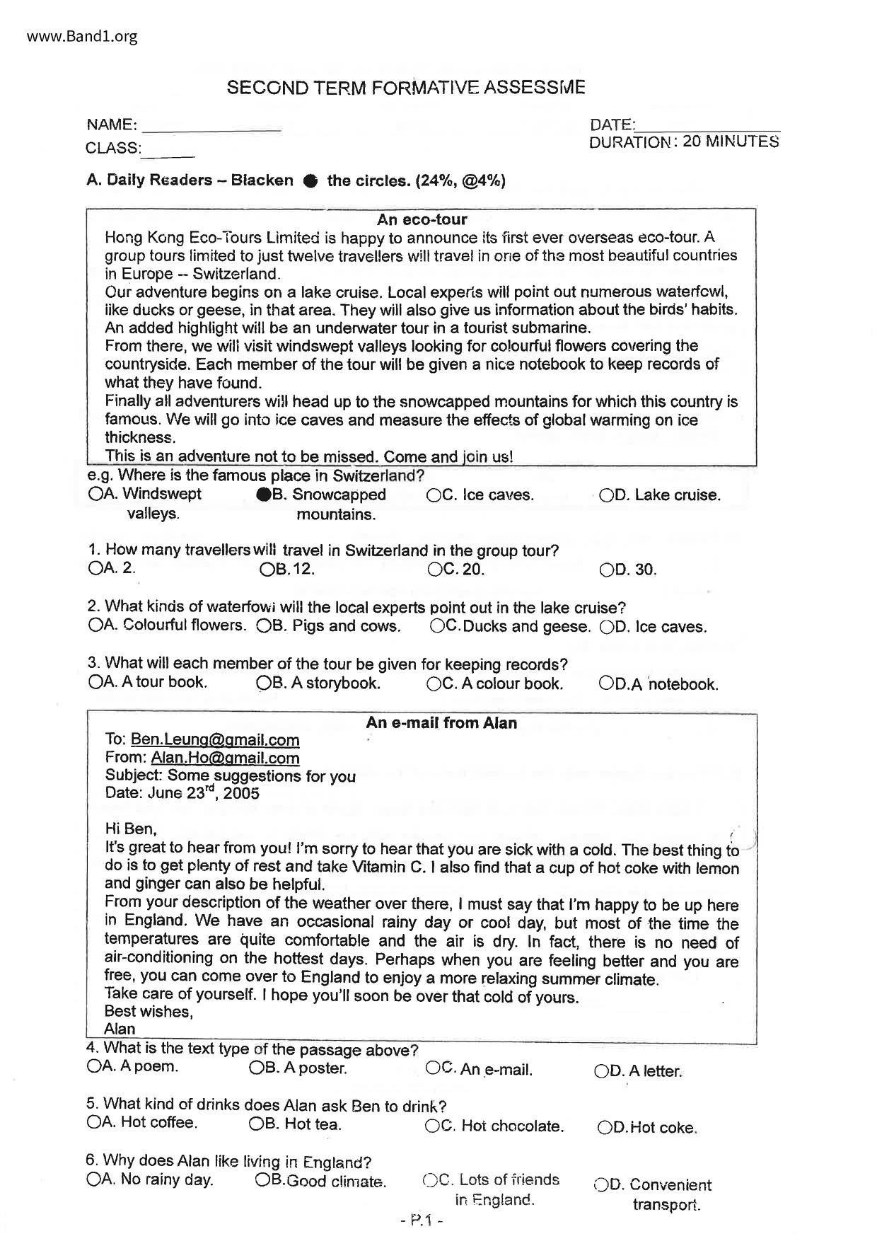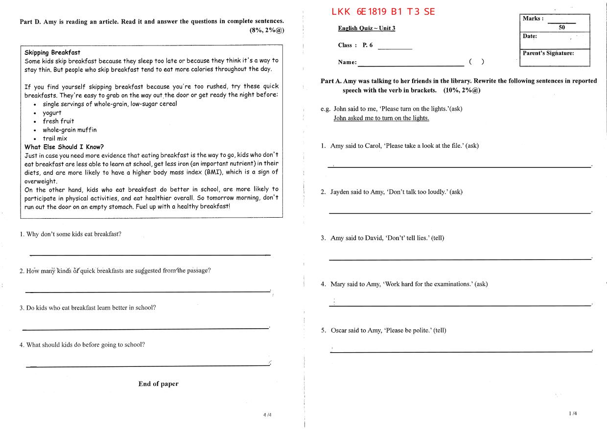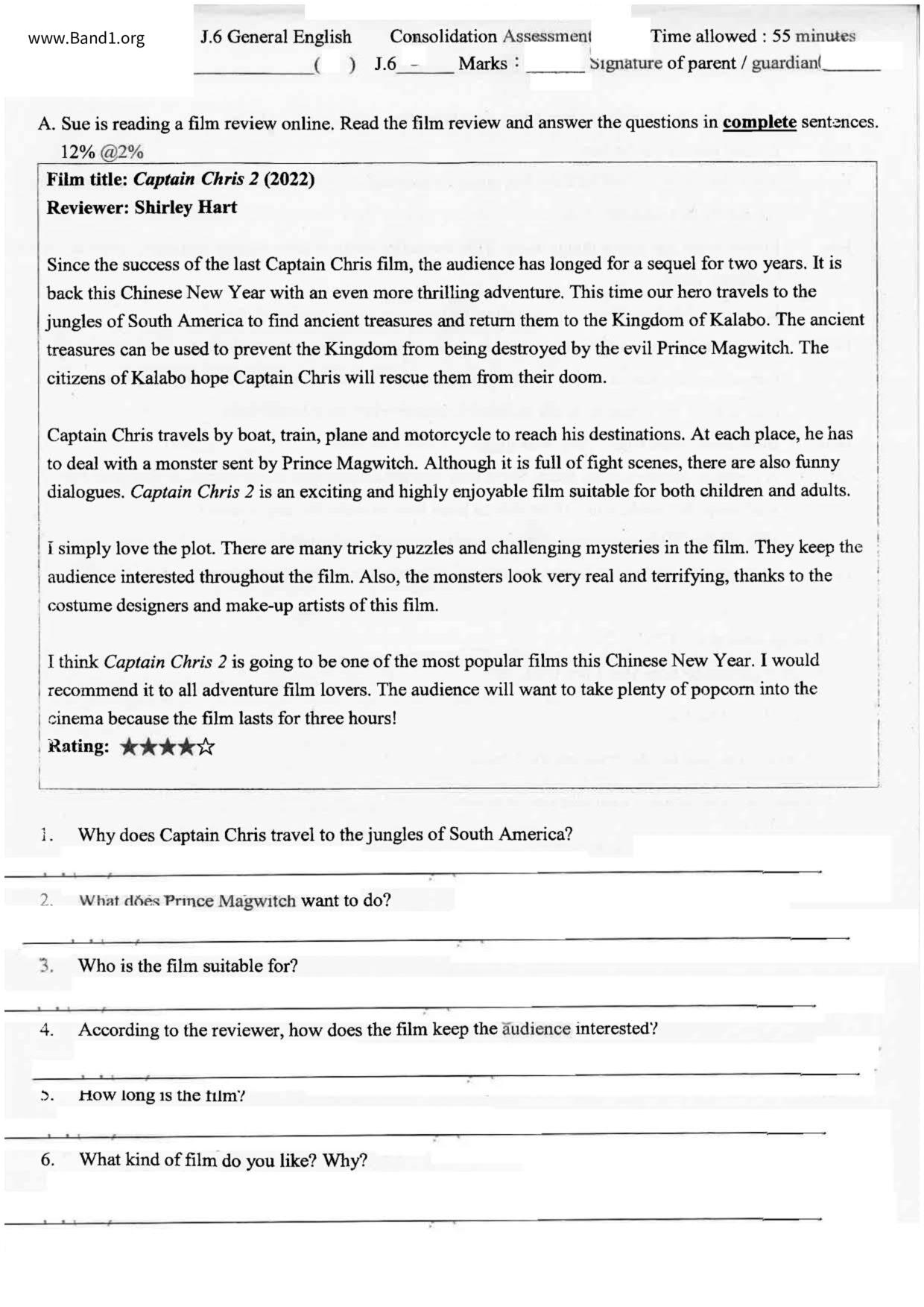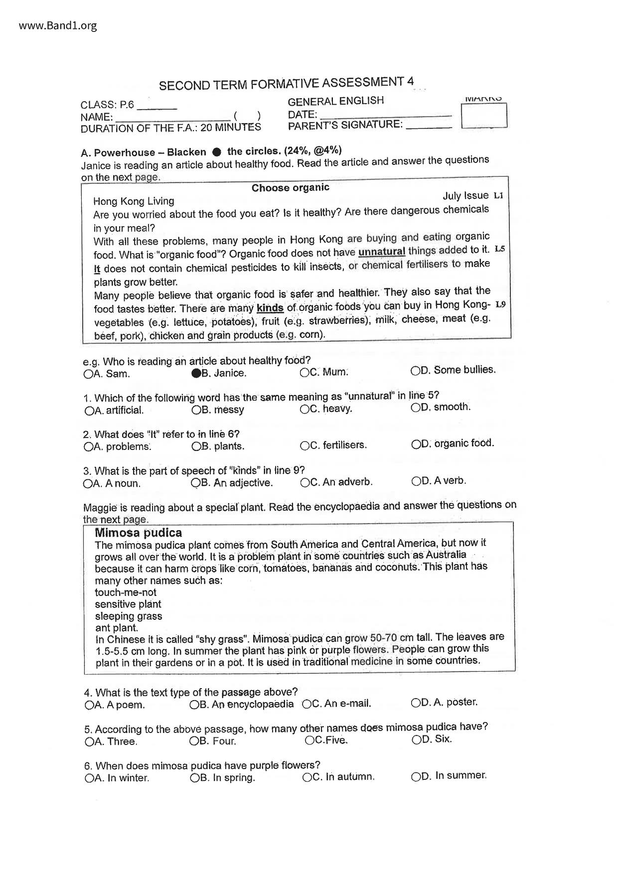 小六 英文 路德會聖馬太學校(秀茂坪)