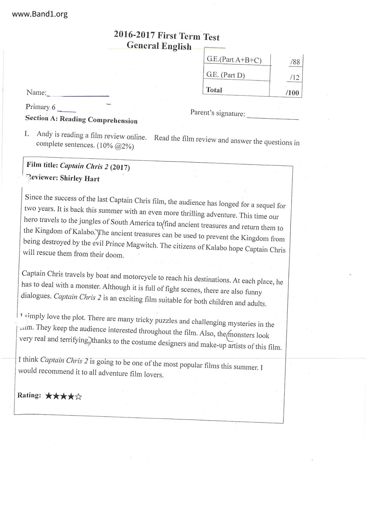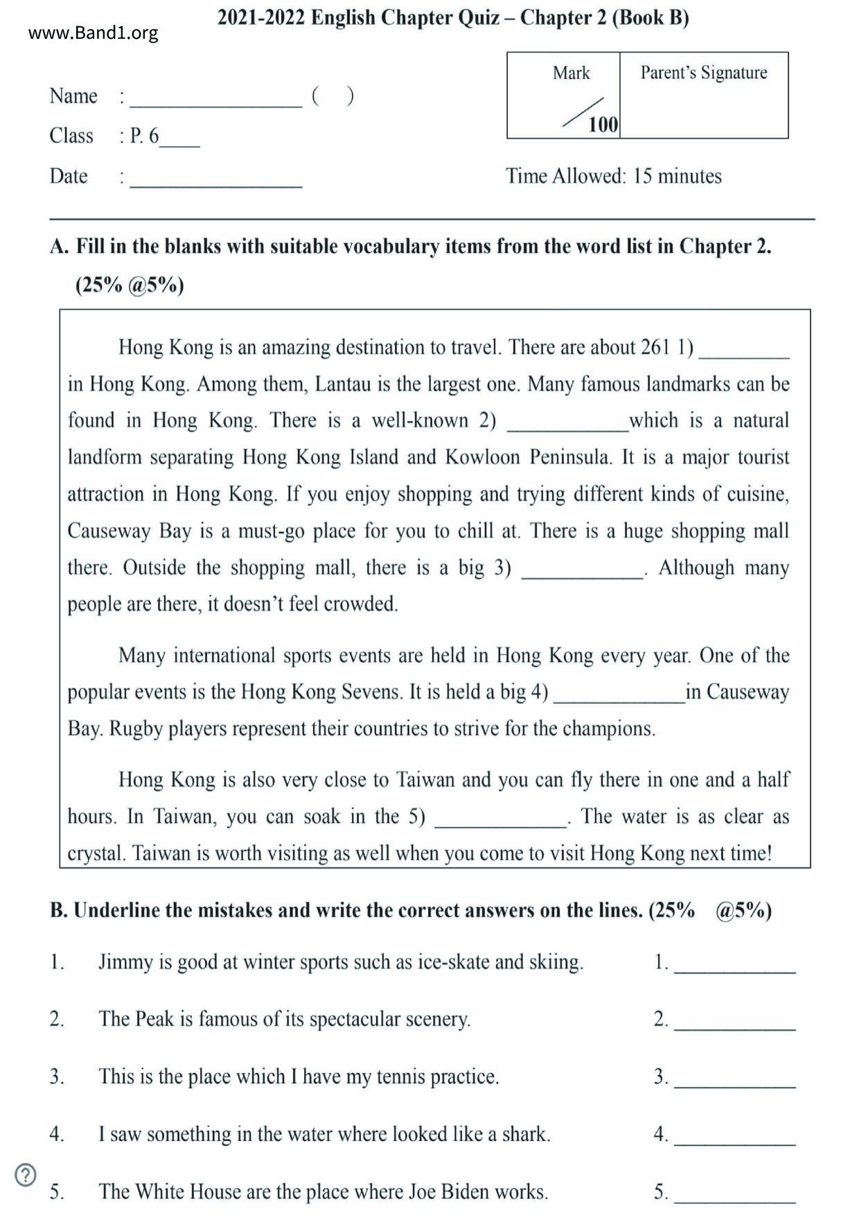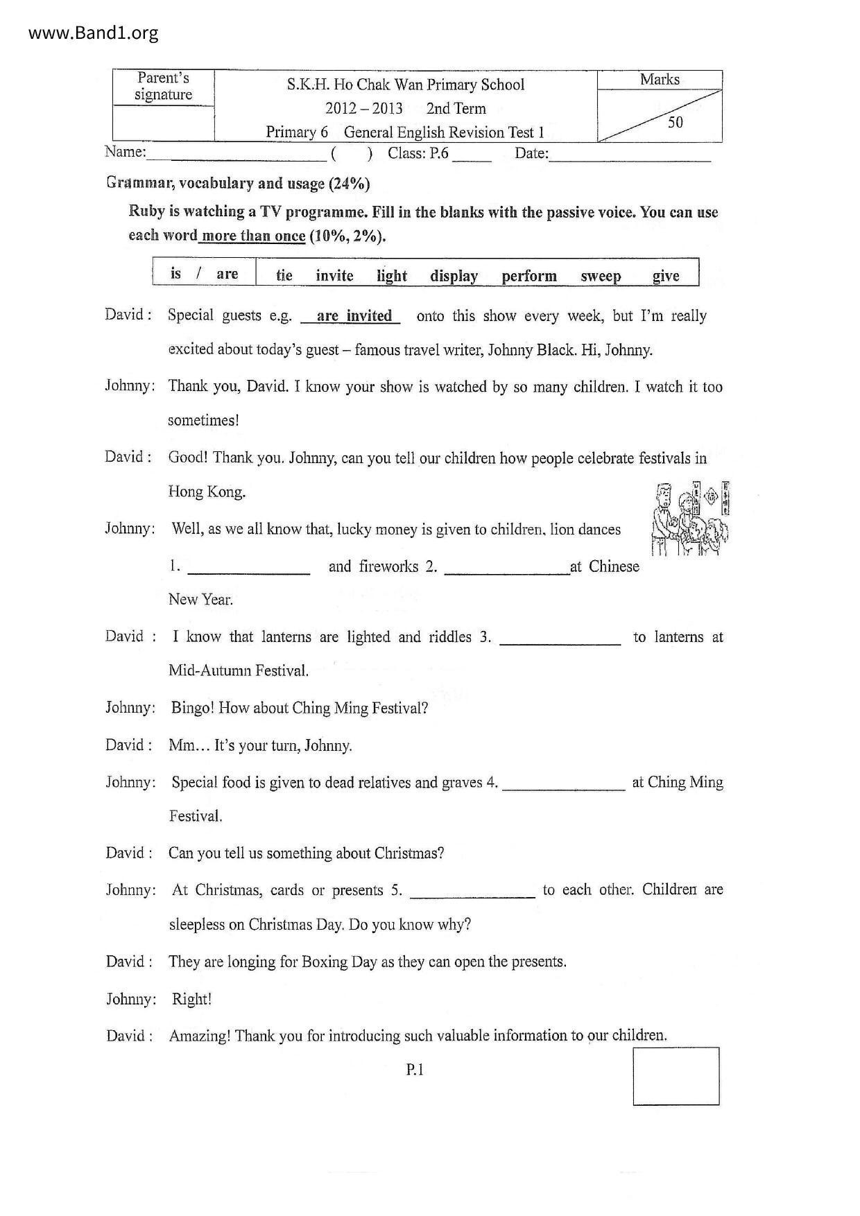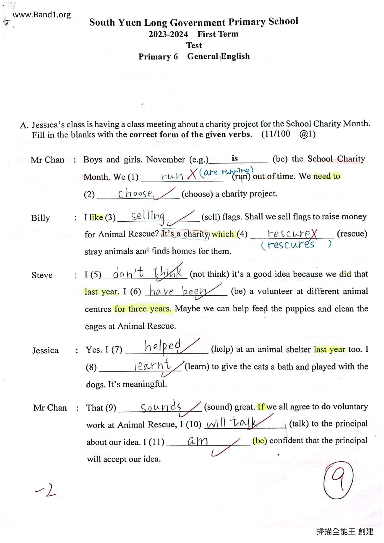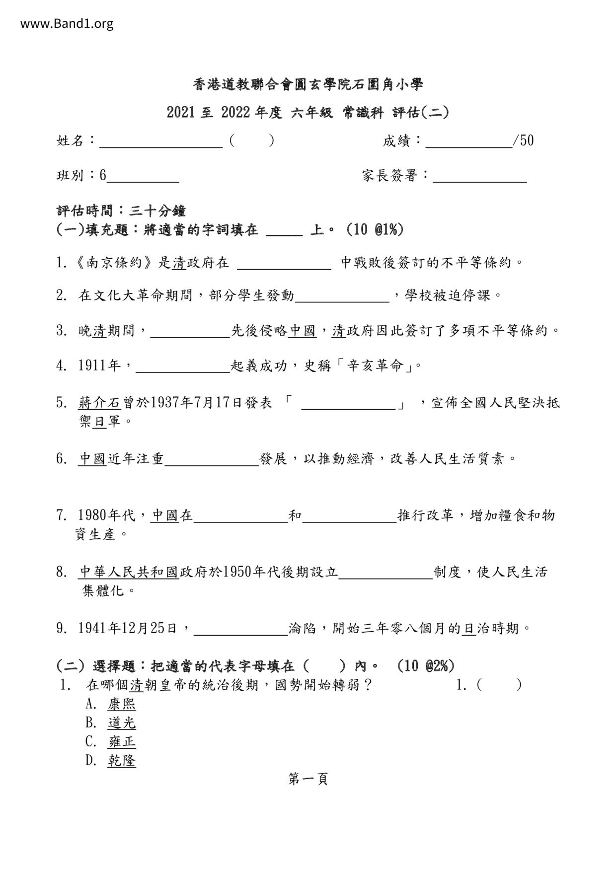 小六 英文 中華基督教會灣仔堂基道小學(九龍城)