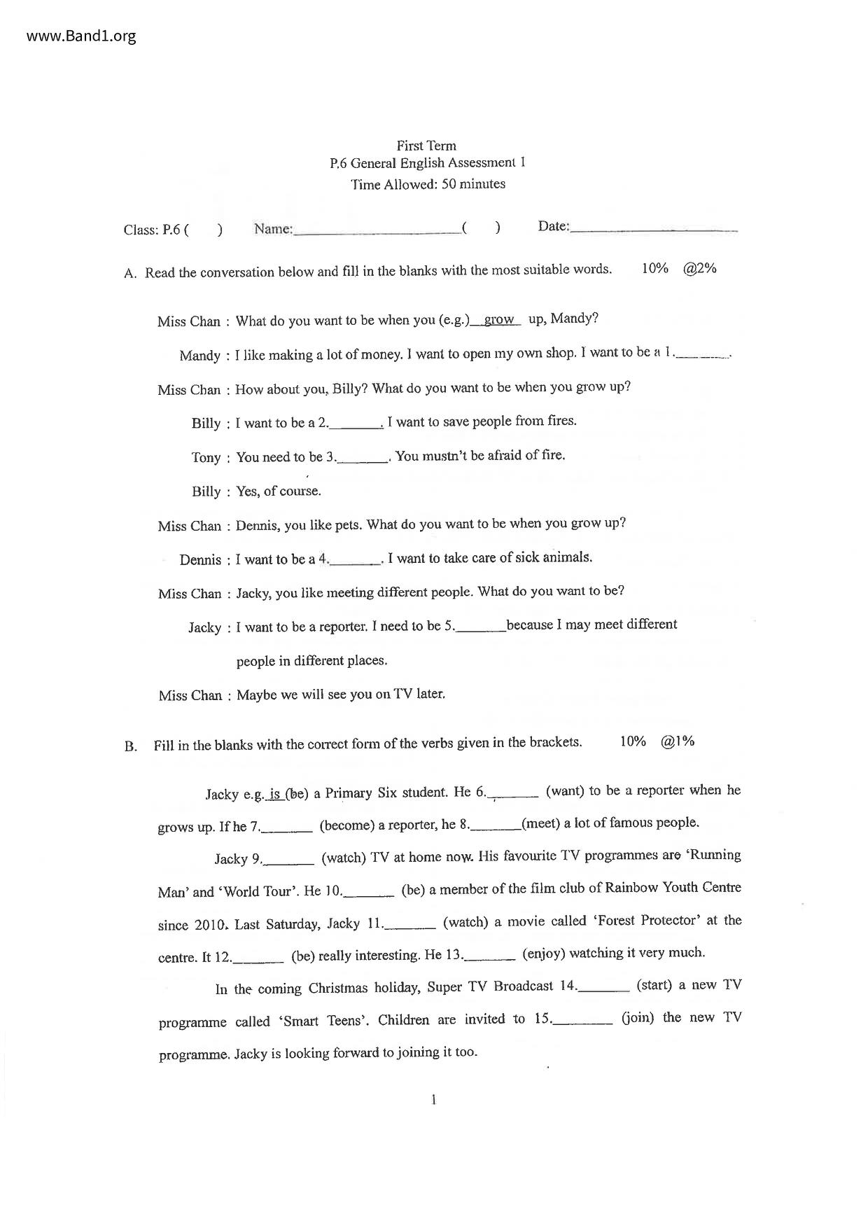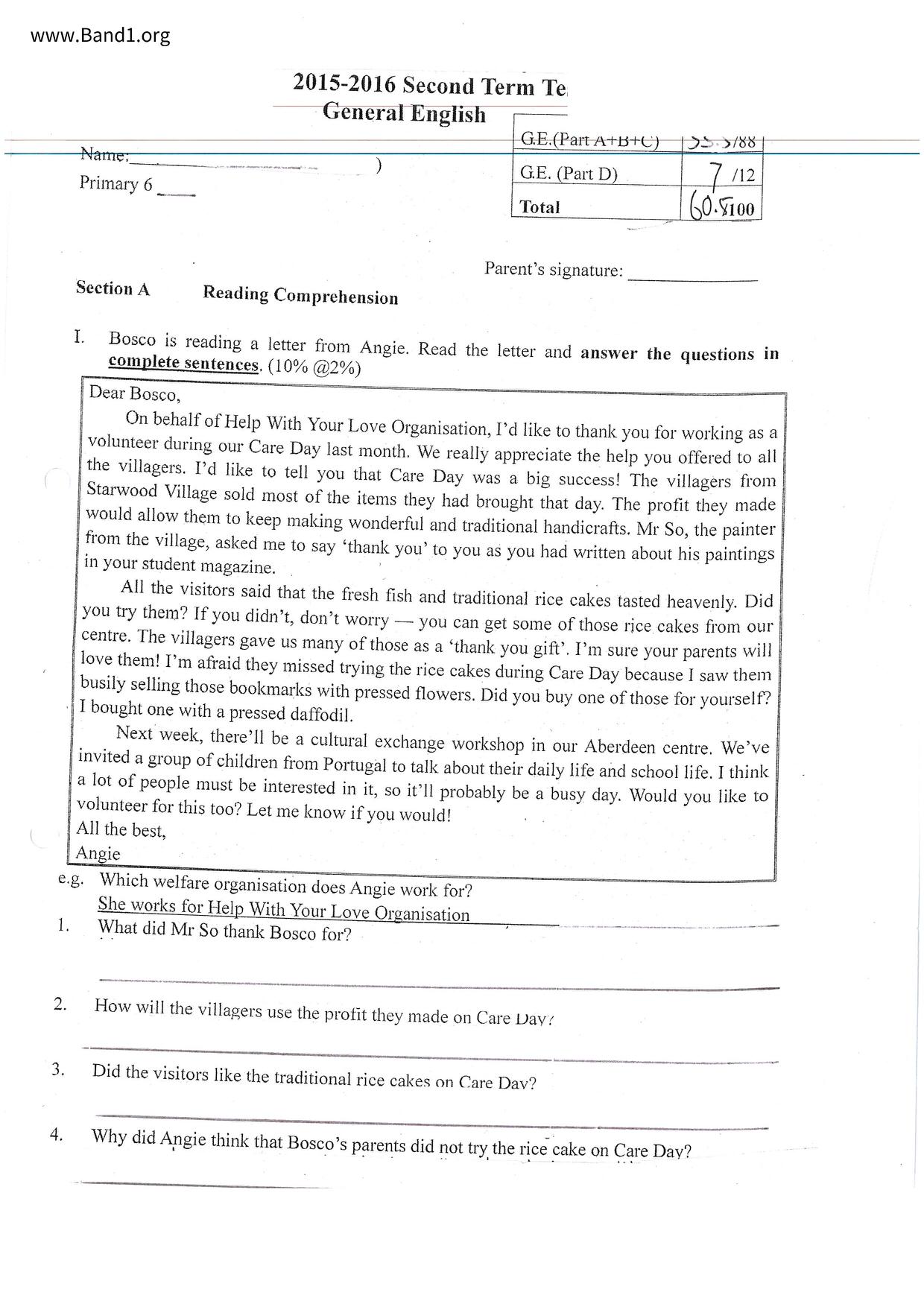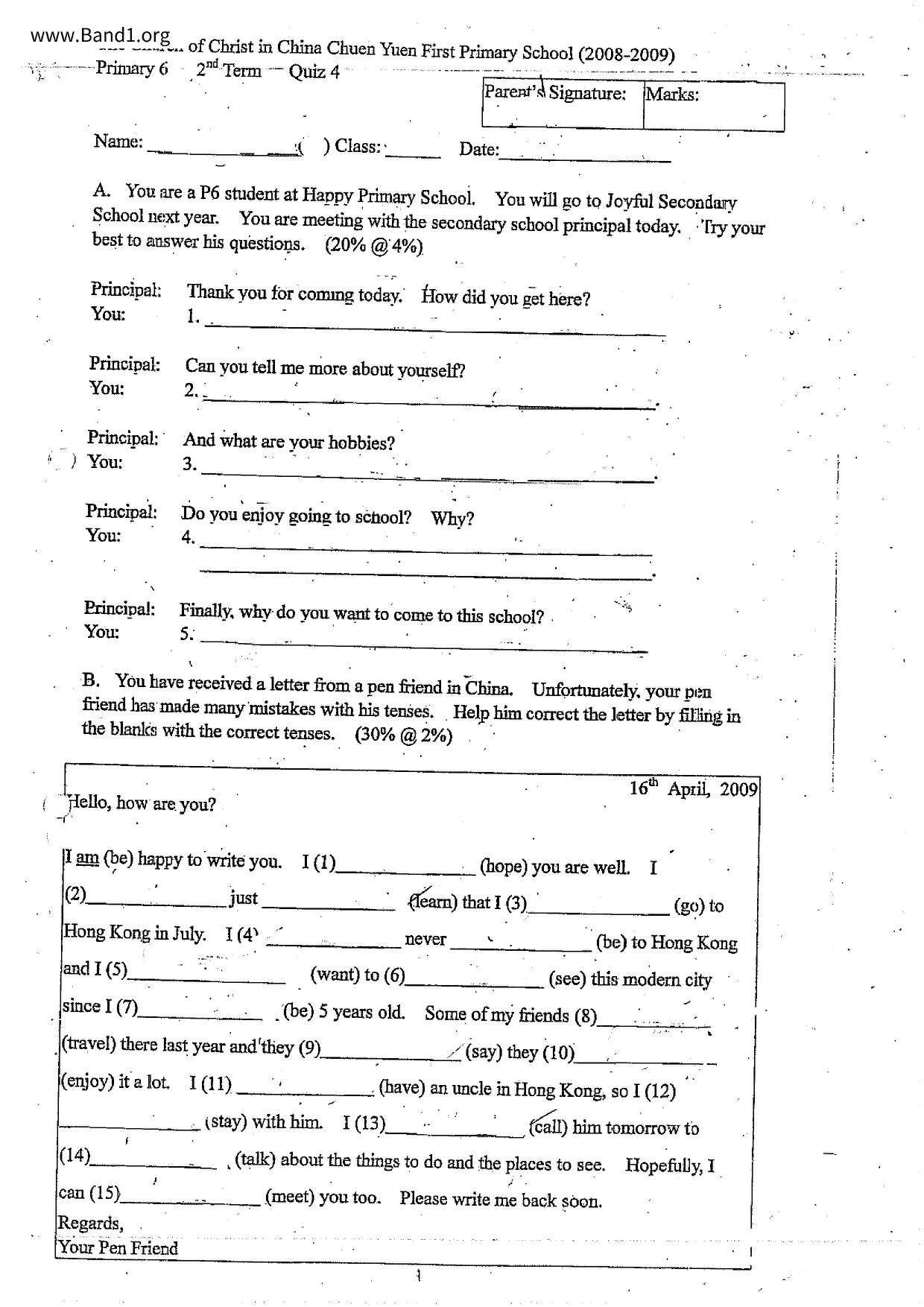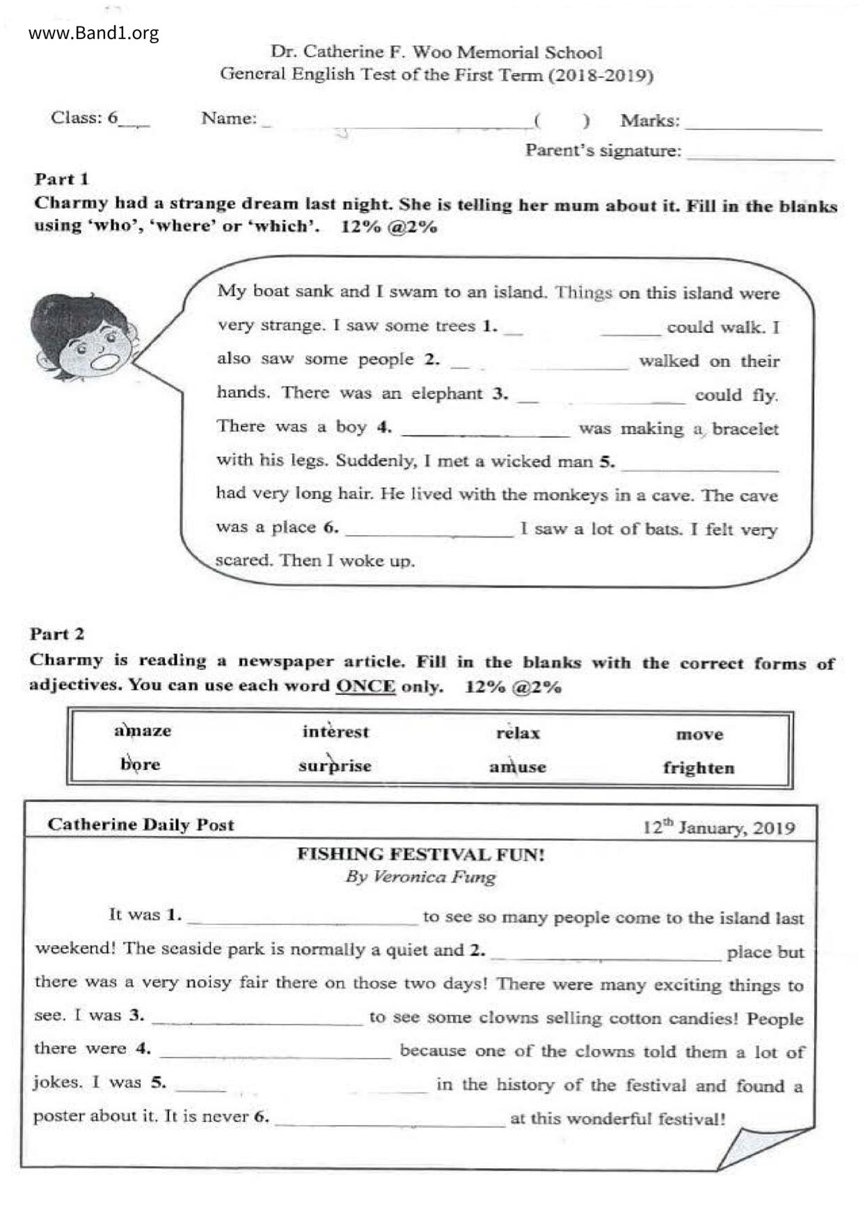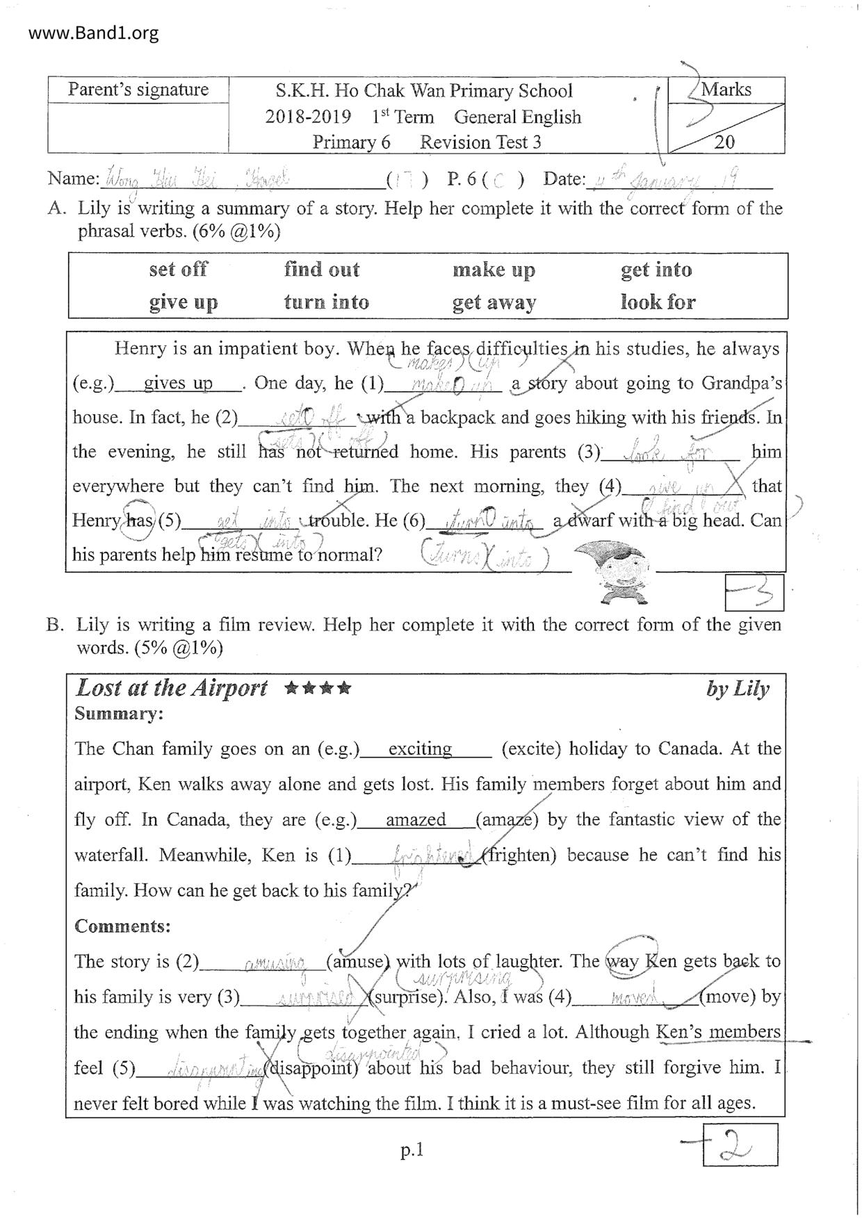 小六 英文 中華基督教會灣仔堂基道小學(九龍城)