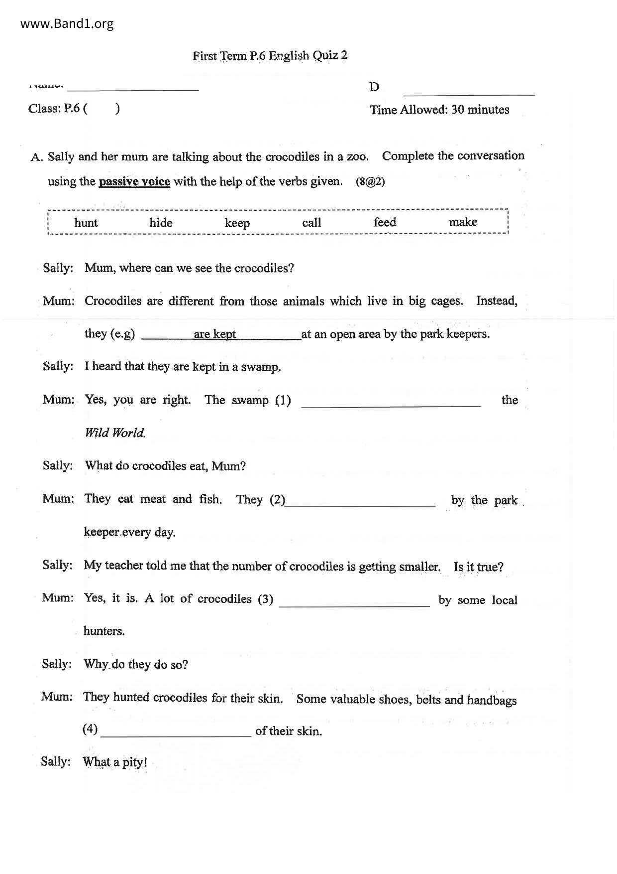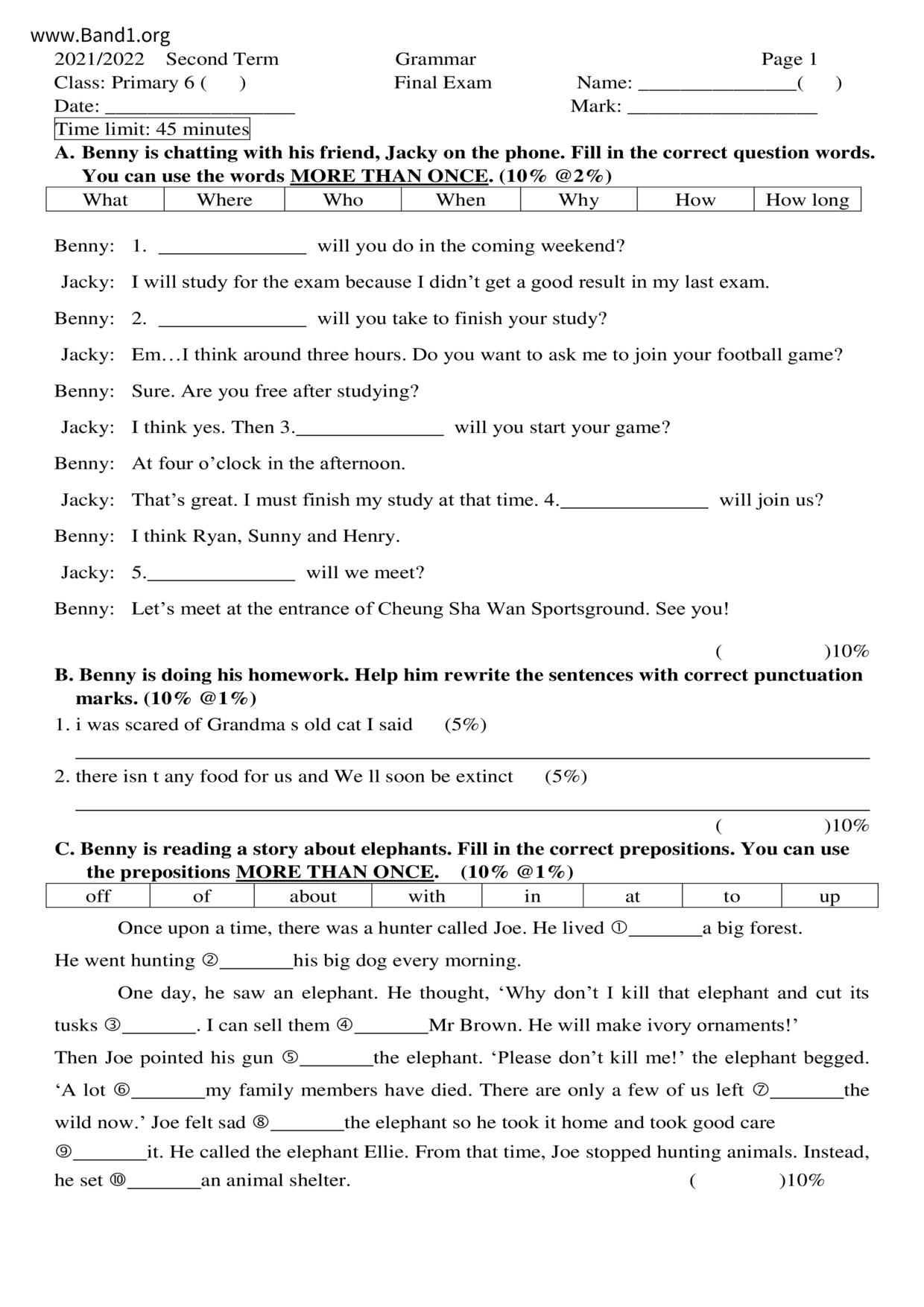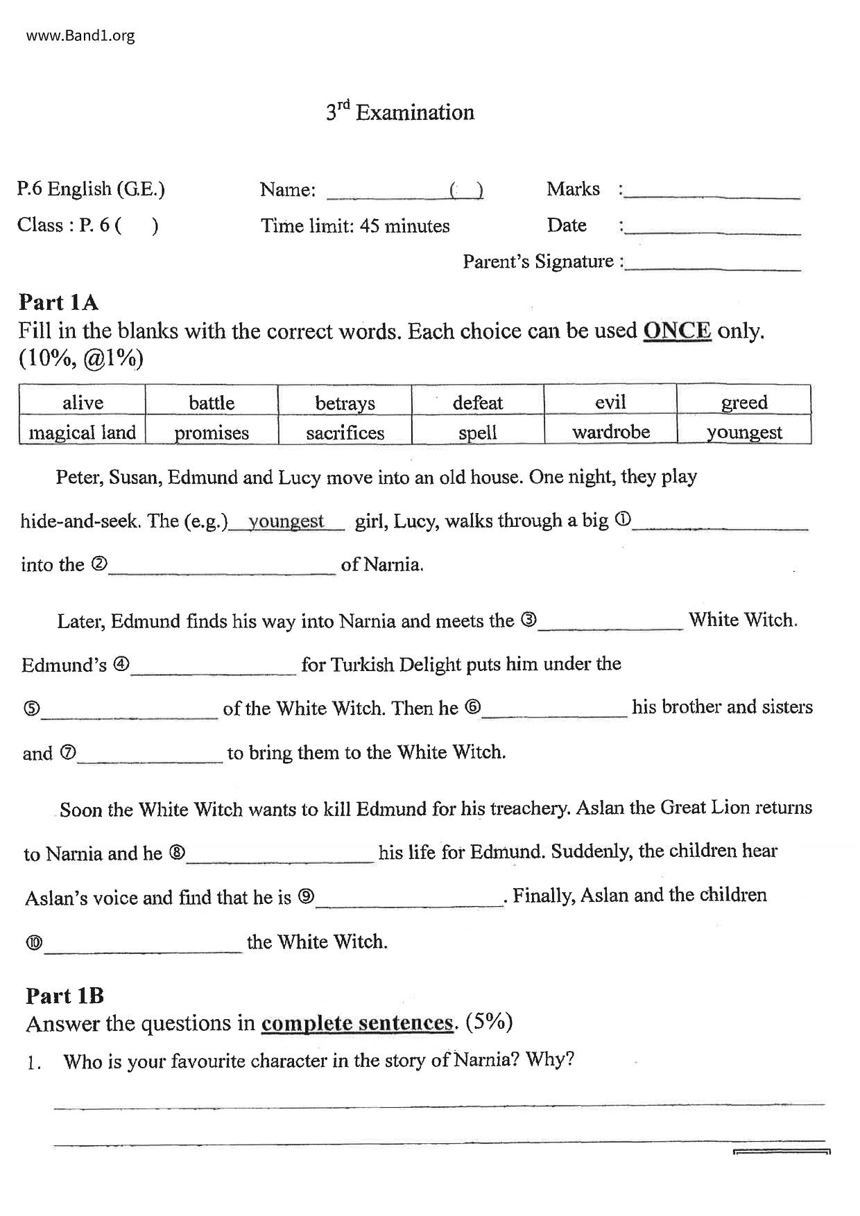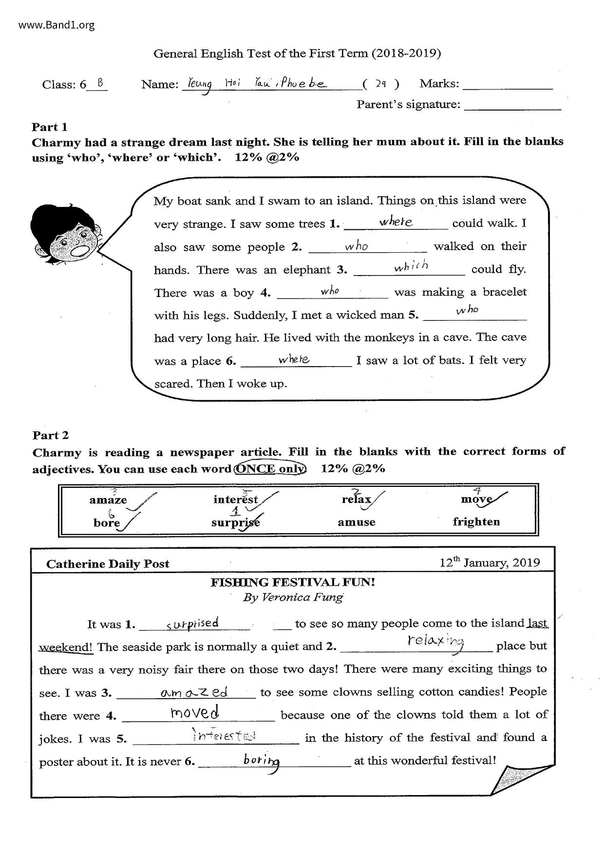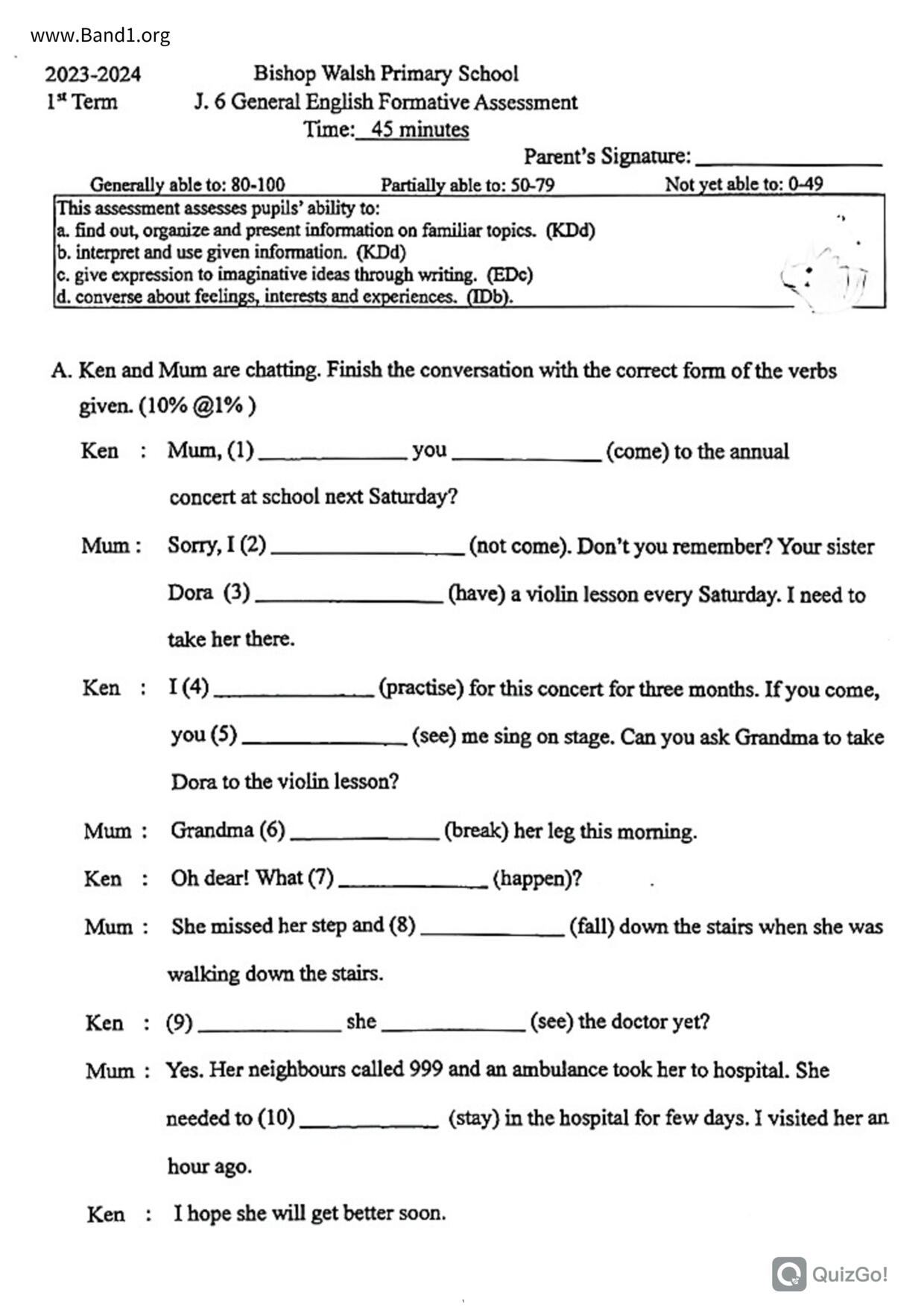 小六 英文 中華基督教會灣仔堂基道小學(九龍城)