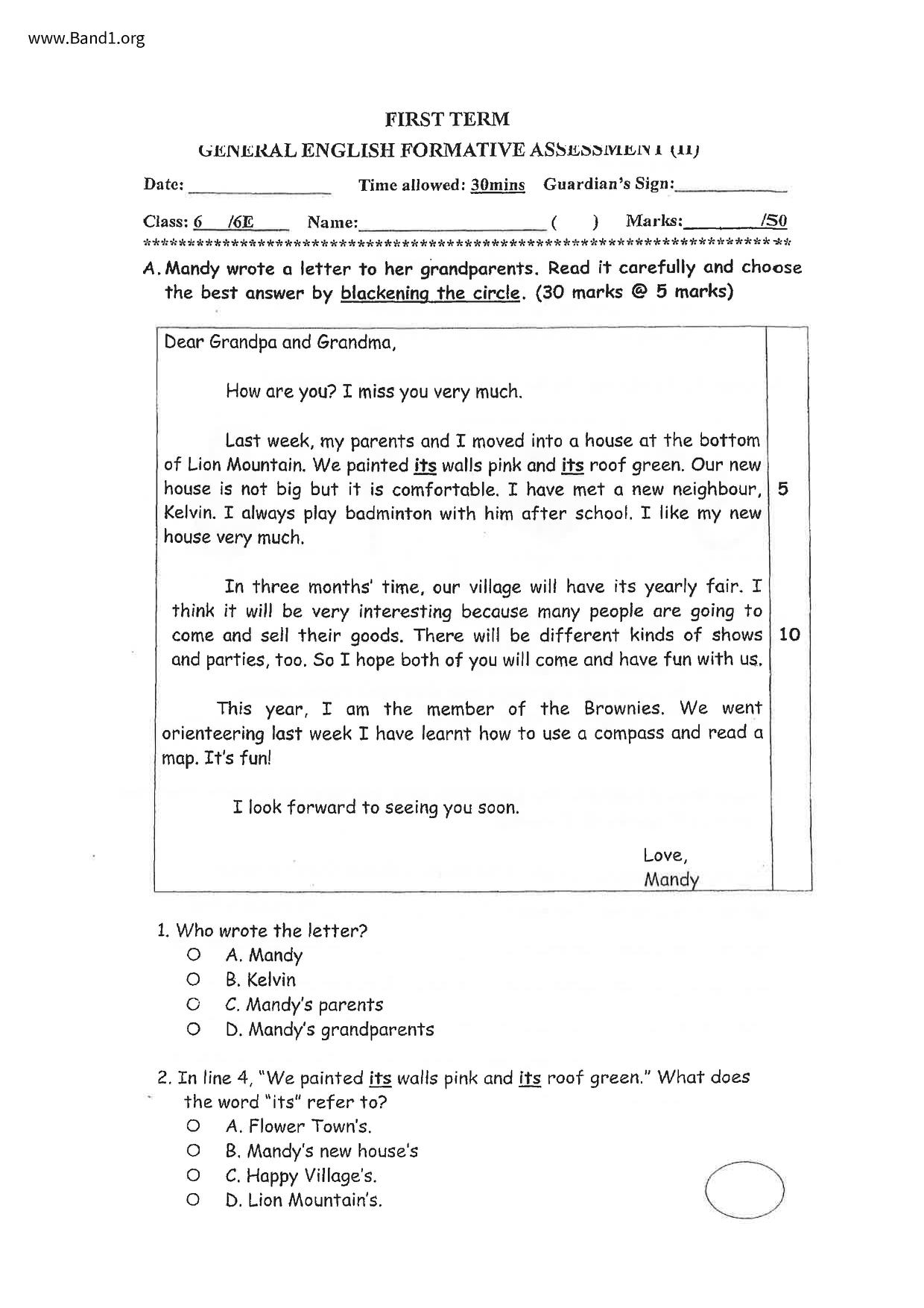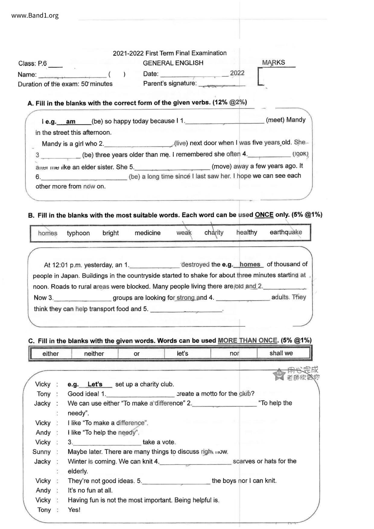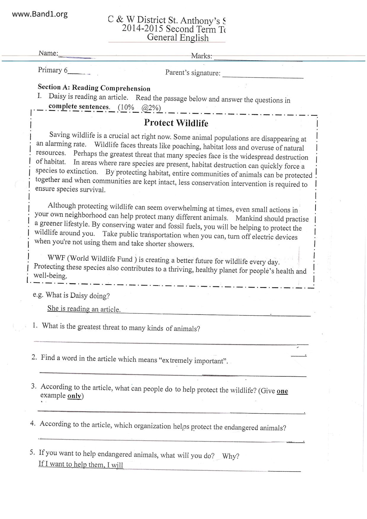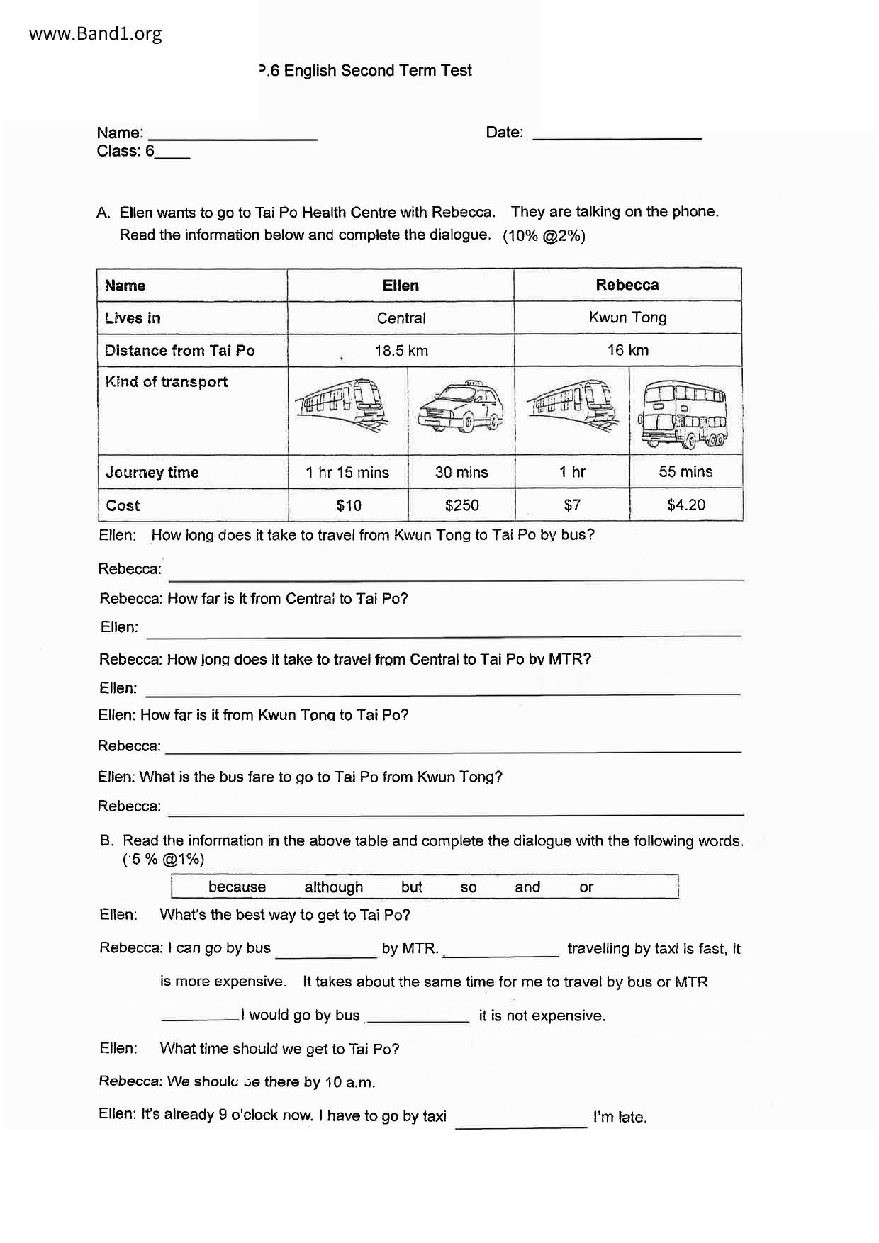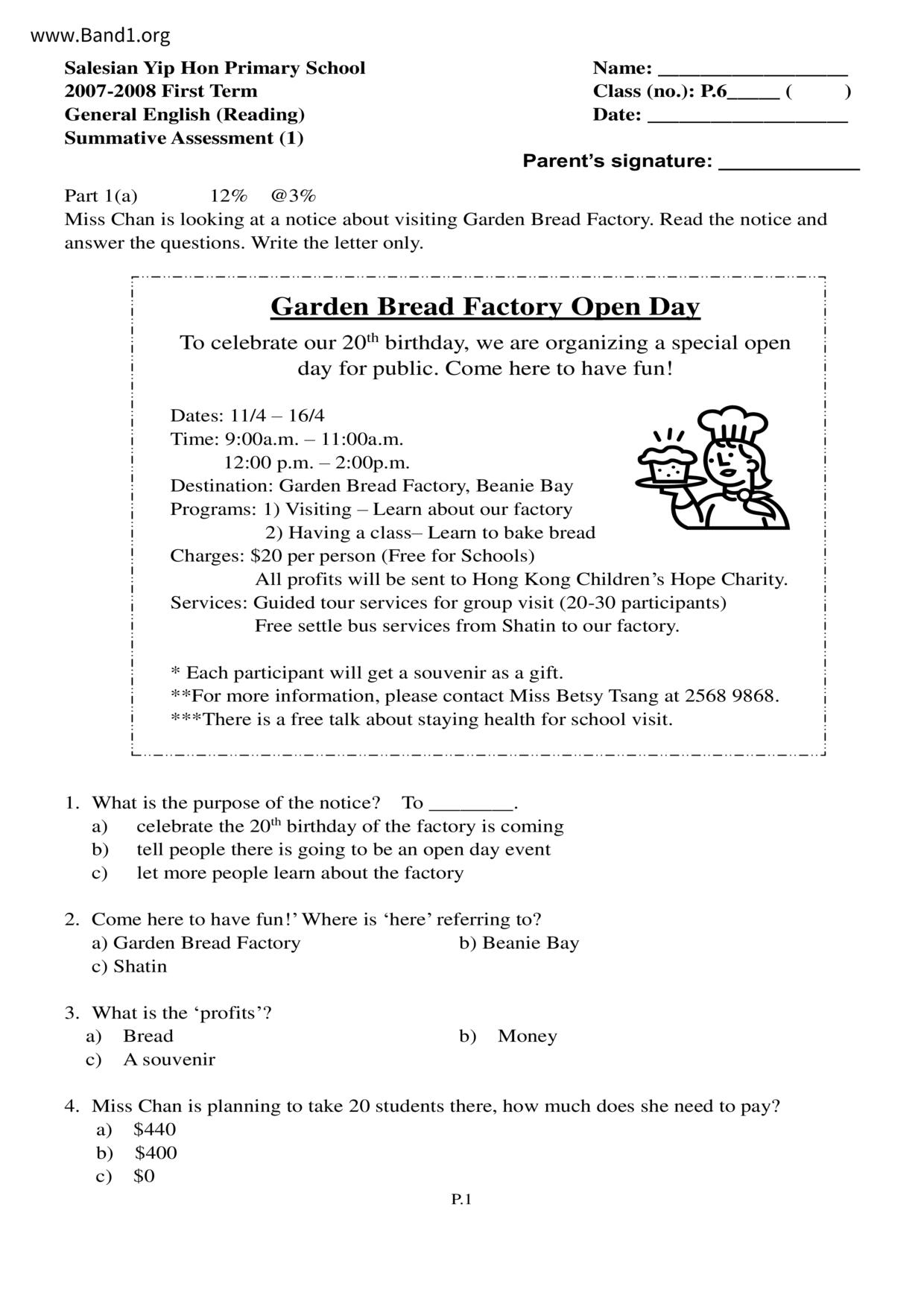 小六 英文 中華基督教會灣仔堂基道小學(九龍城)