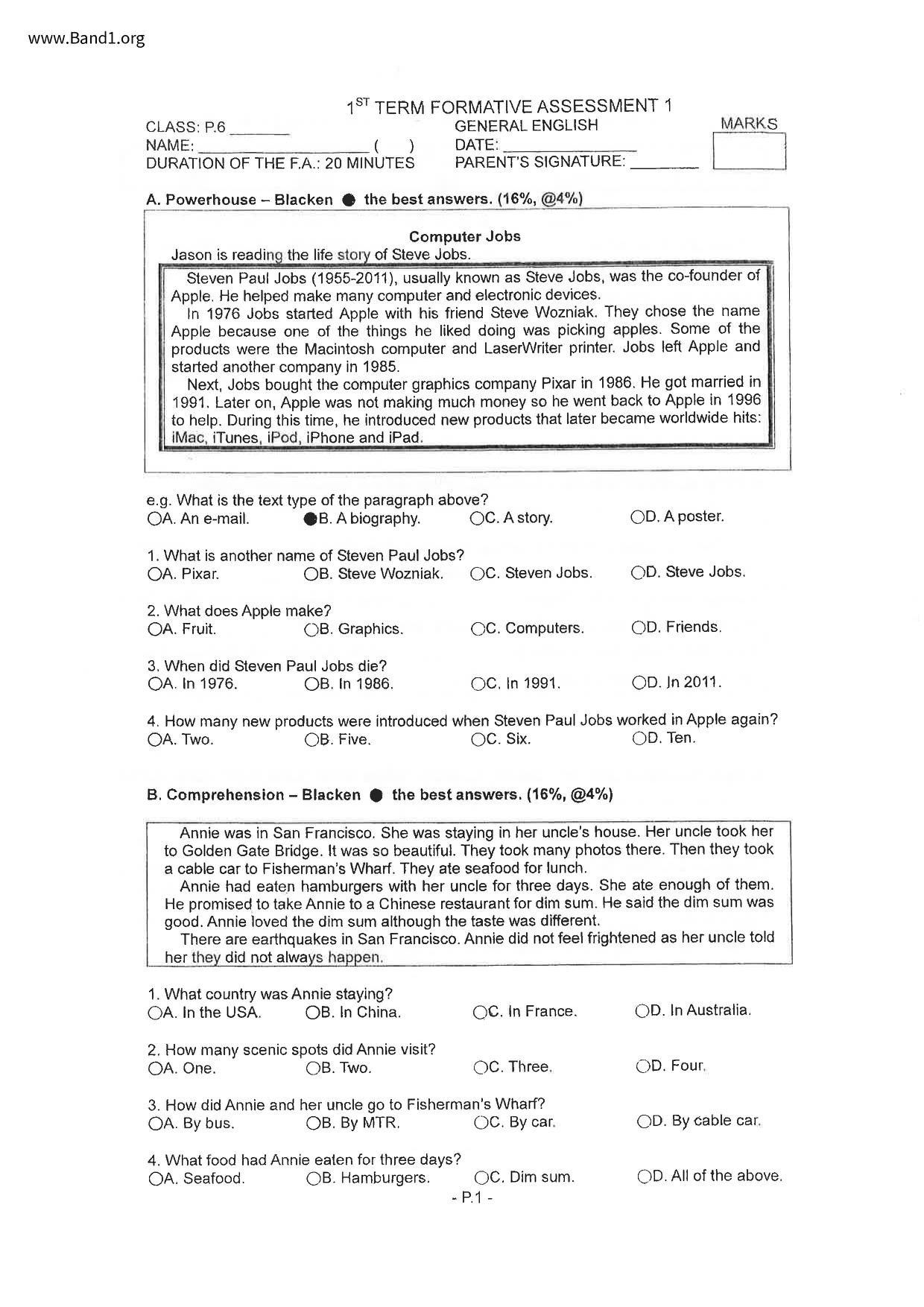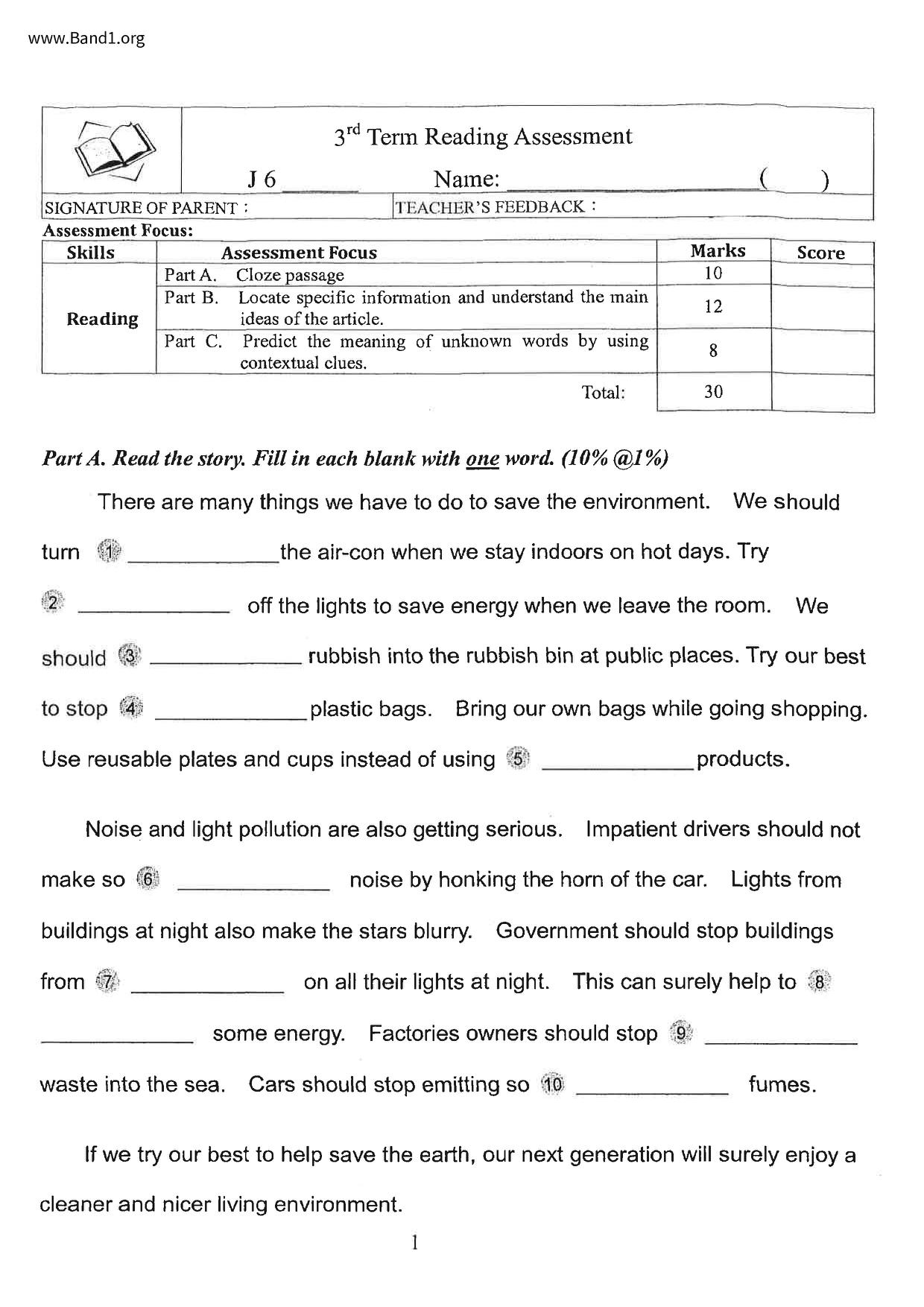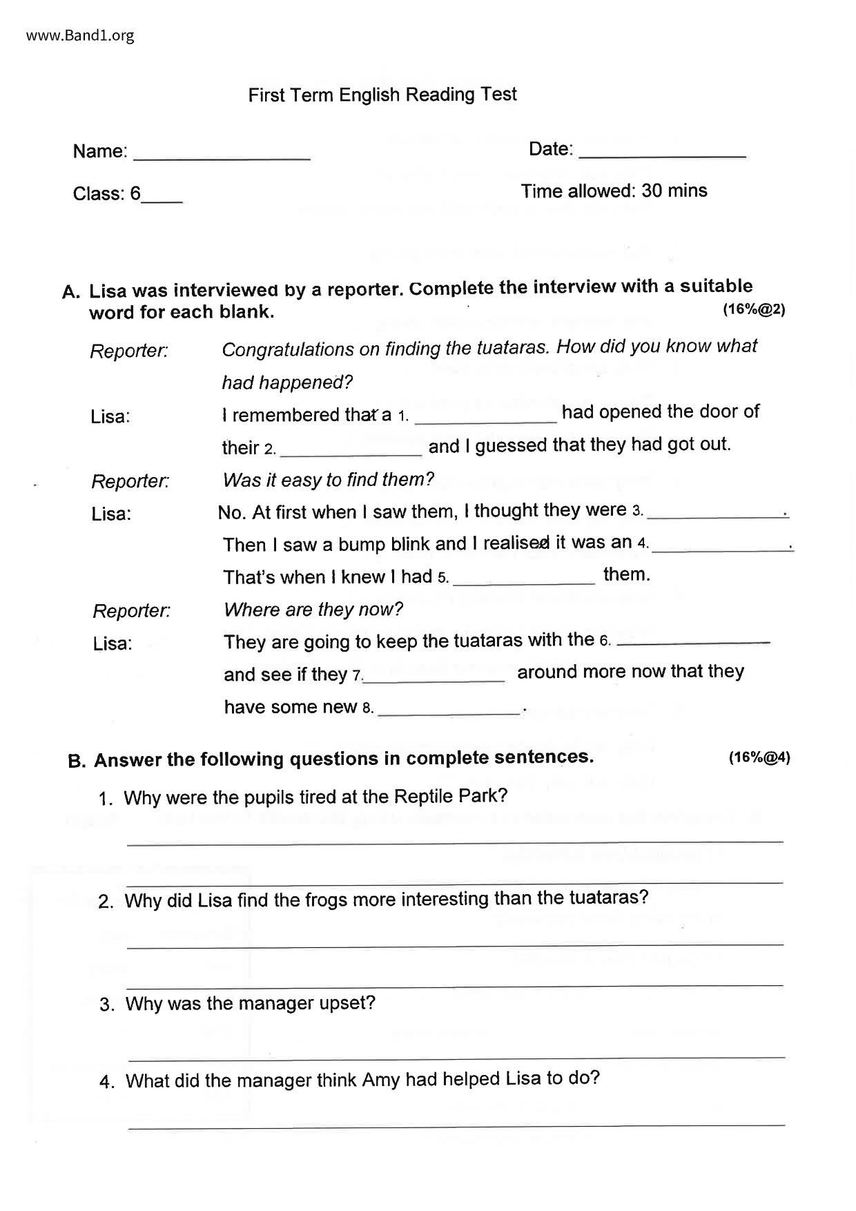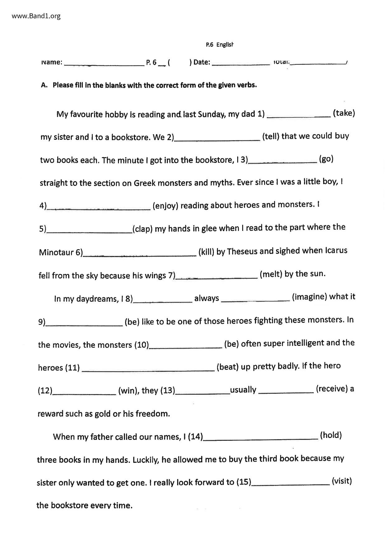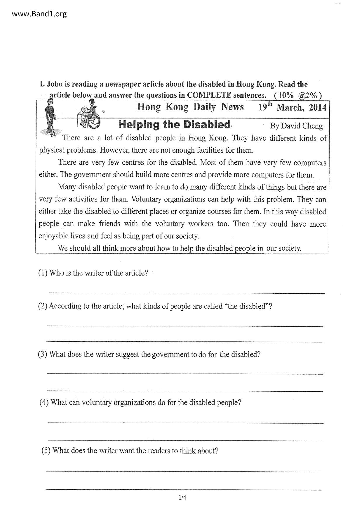 小六 英文 中華基督教會灣仔堂基道小學(九龍城)