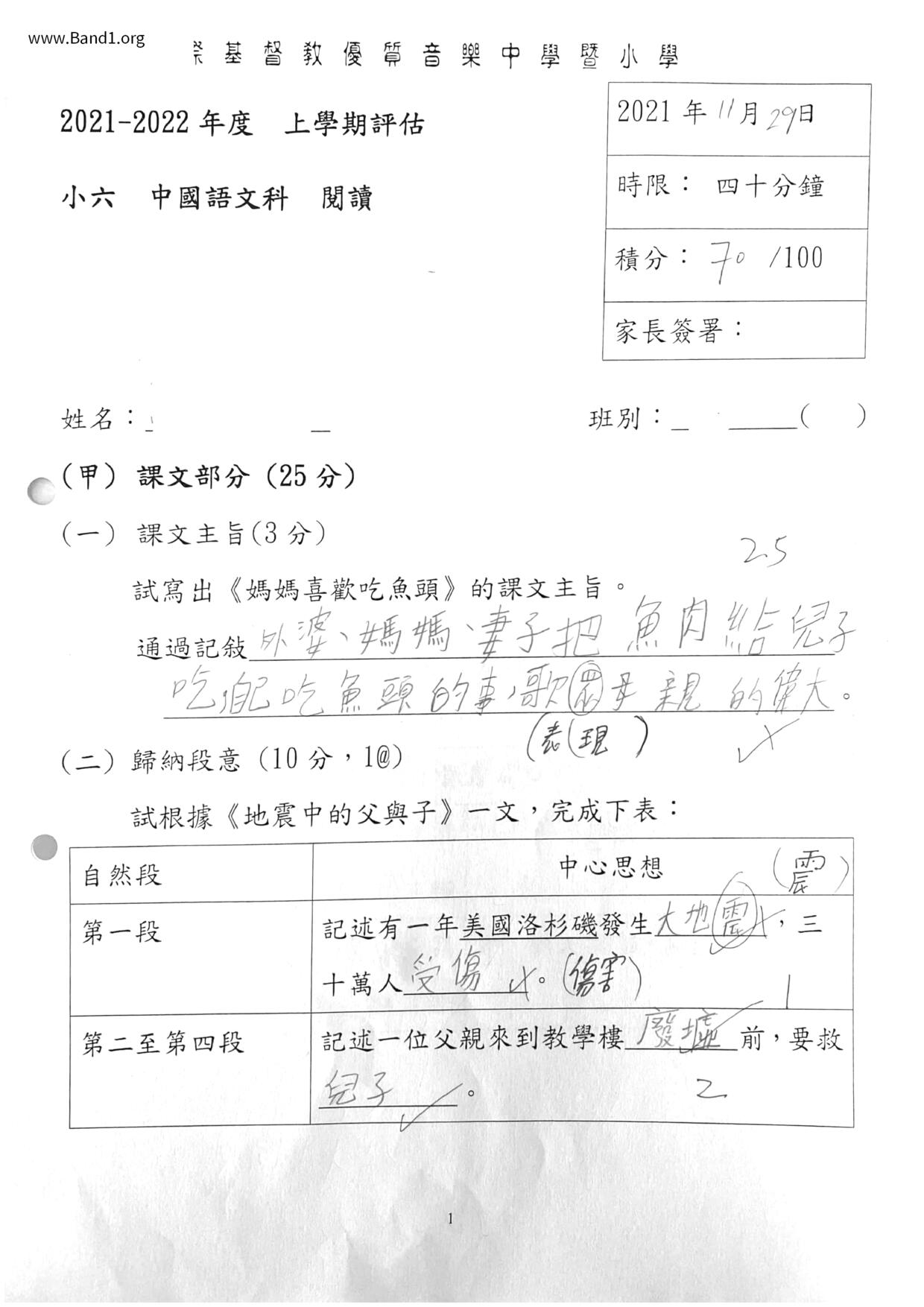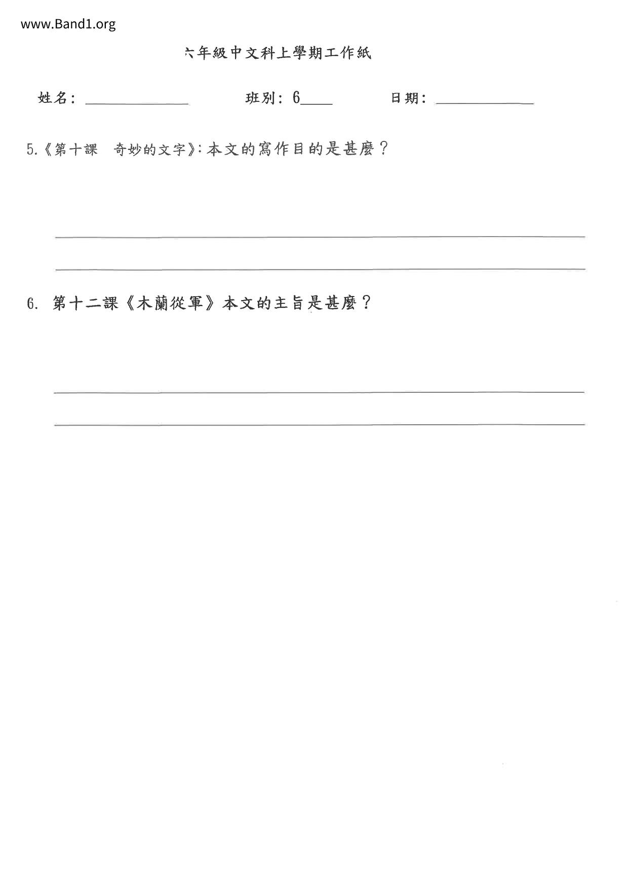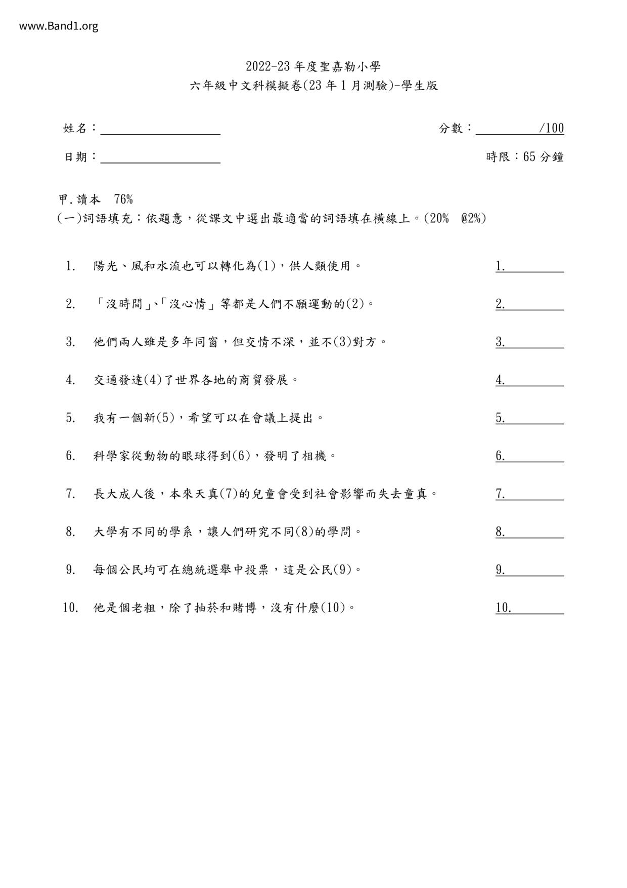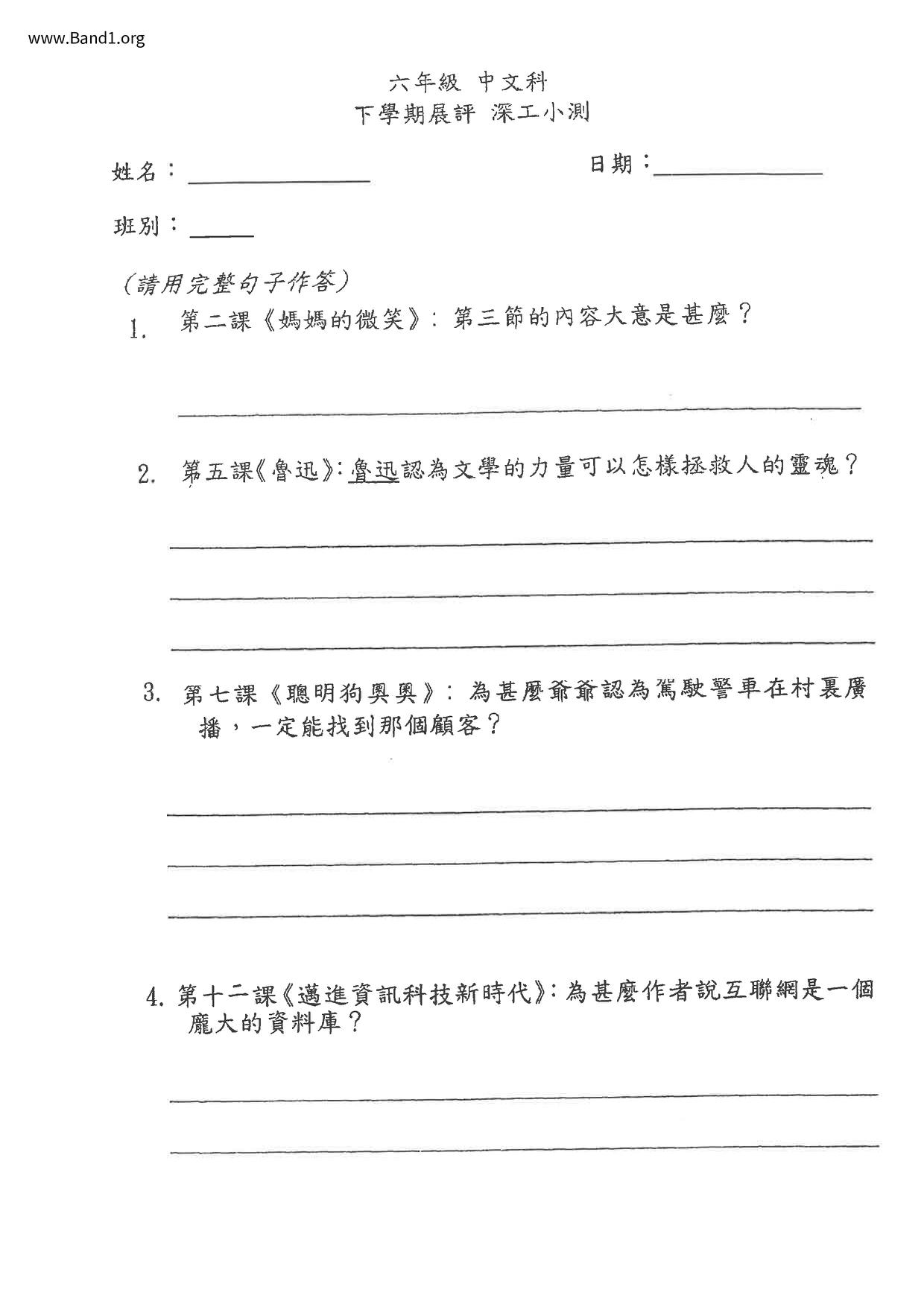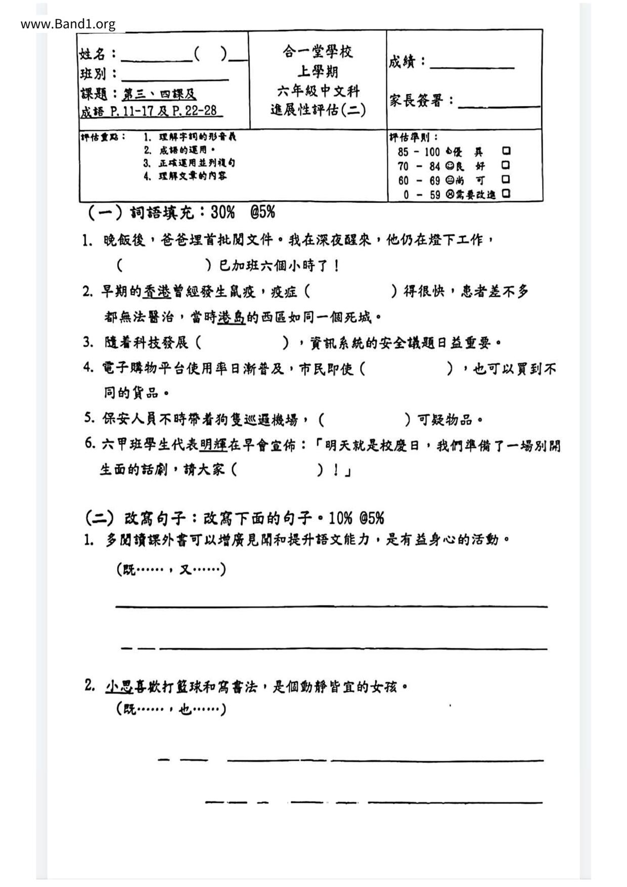 小六 中文 中華基督教會灣仔堂基道小學(九龍城)
