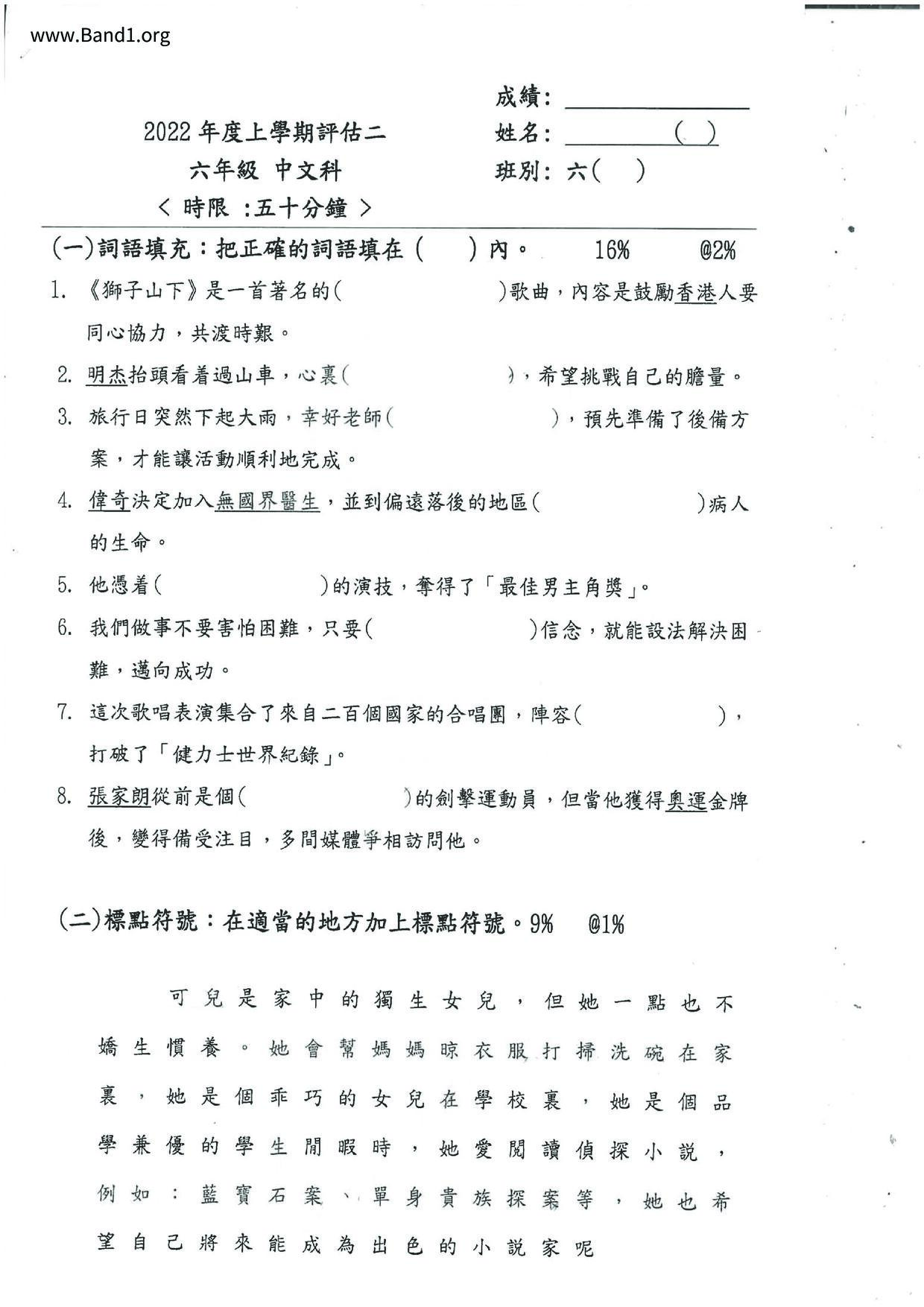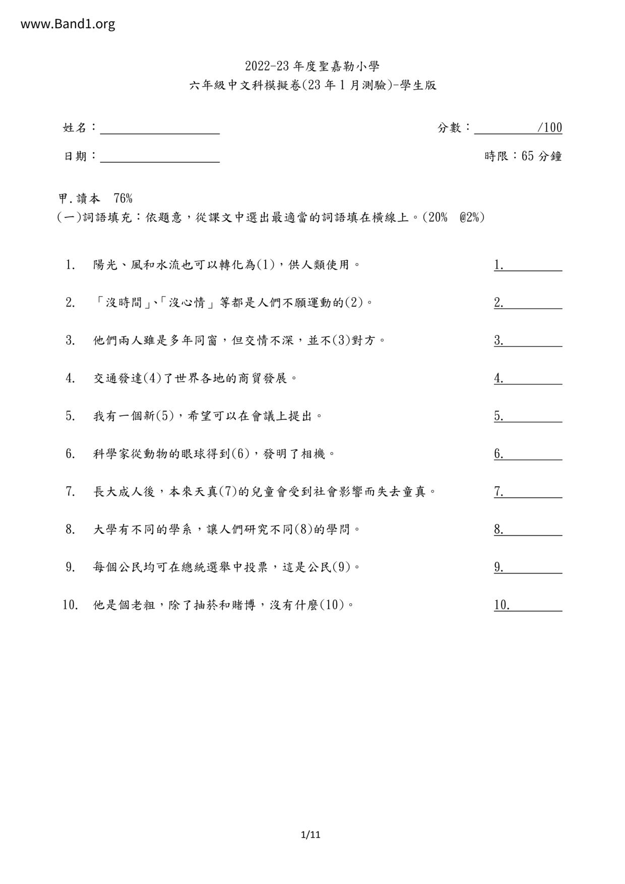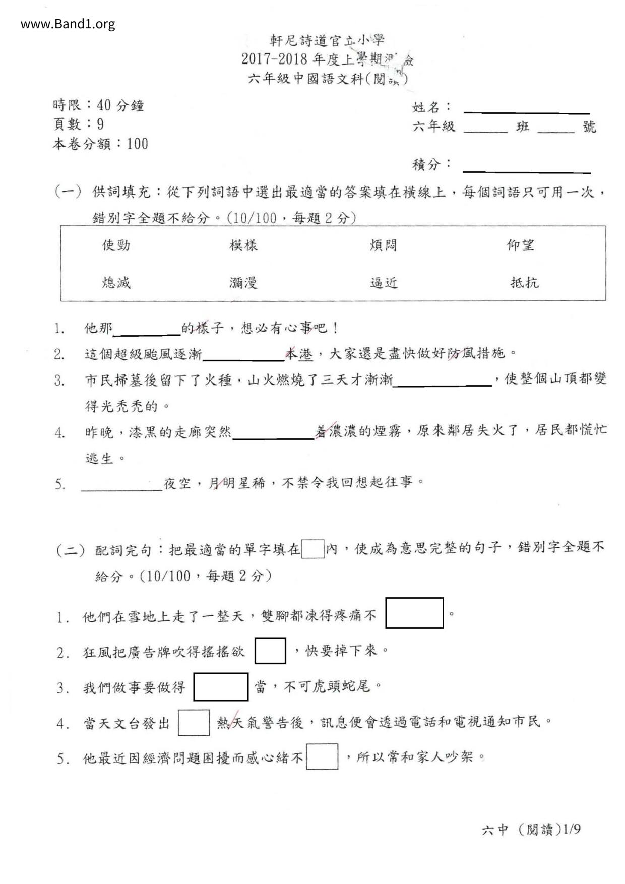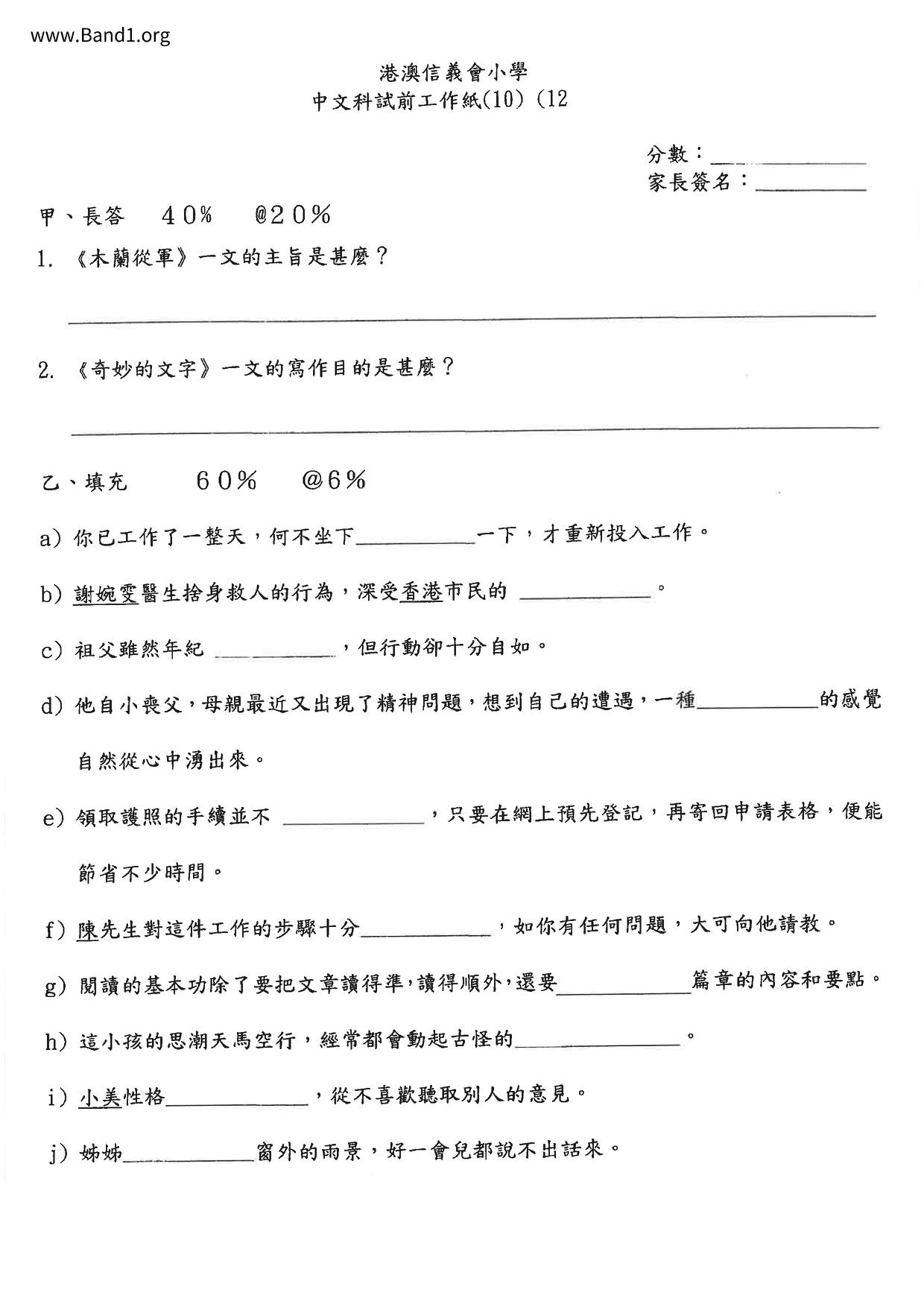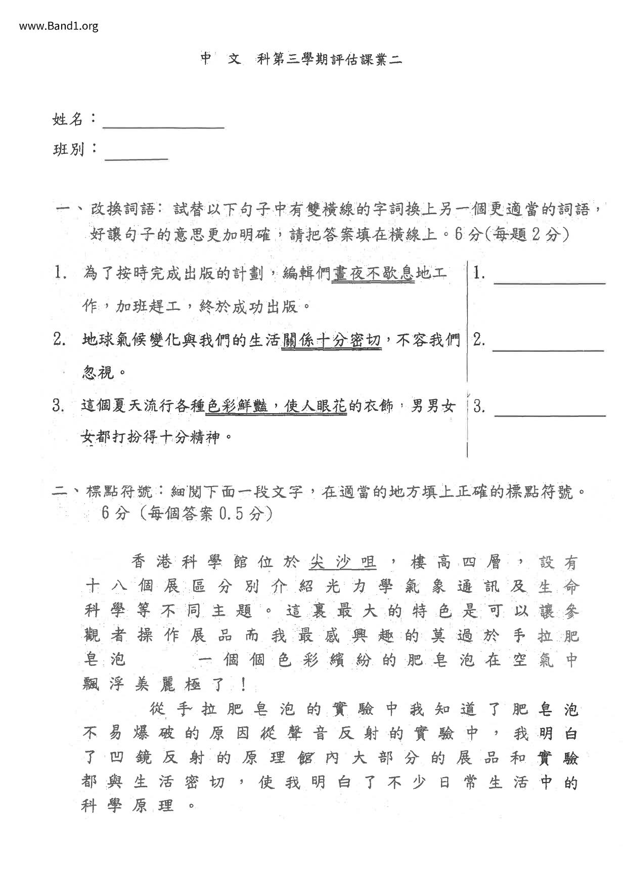 小六 中文 中華基督教會灣仔堂基道小學(九龍城)
