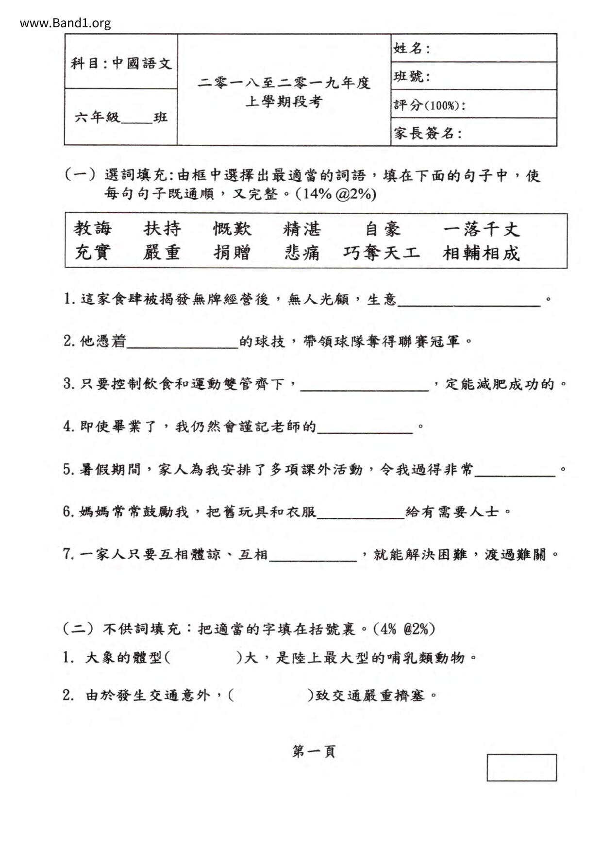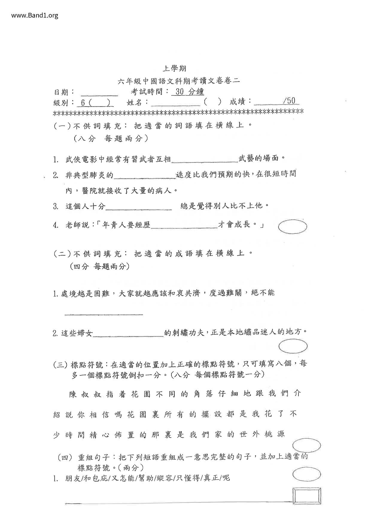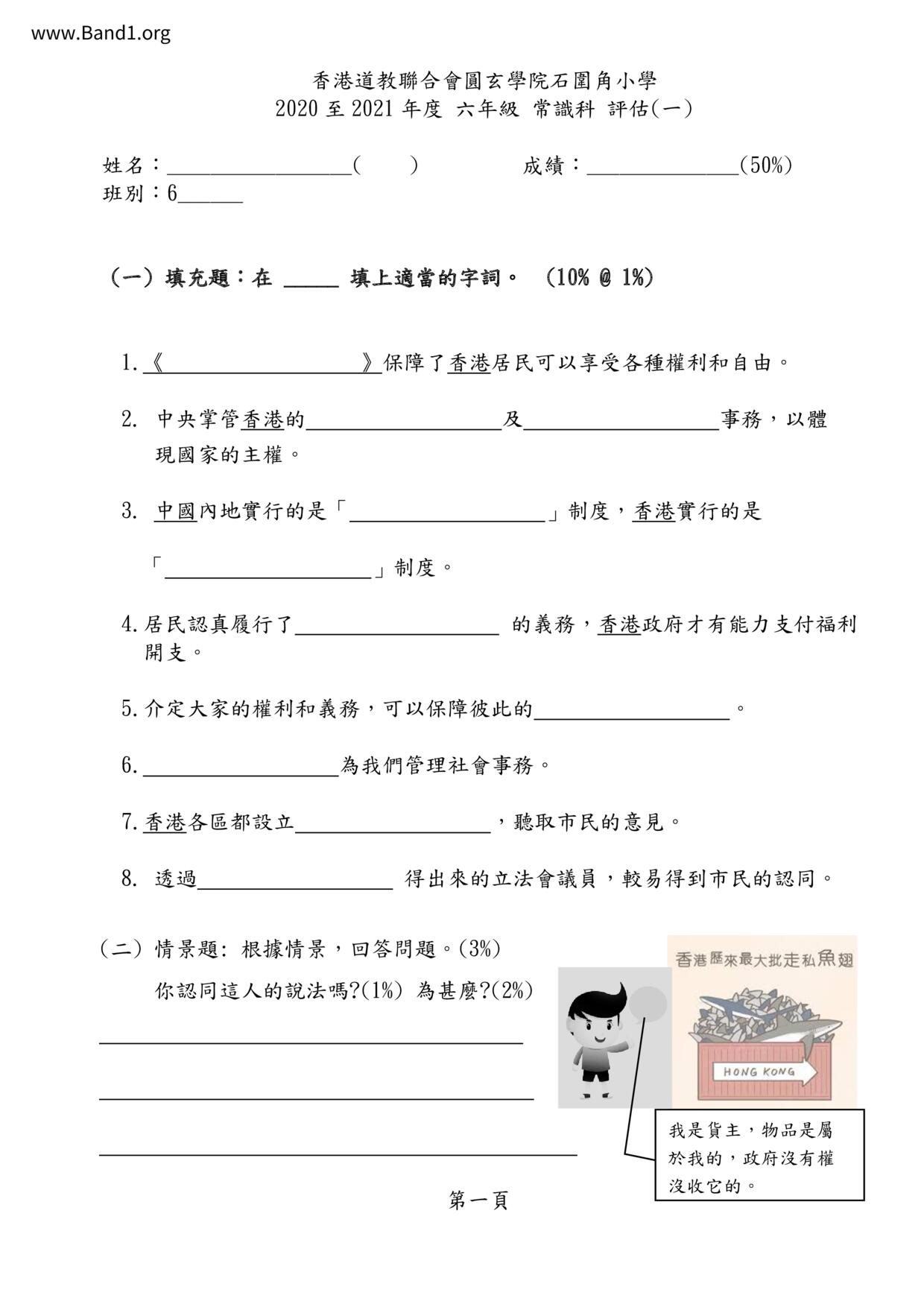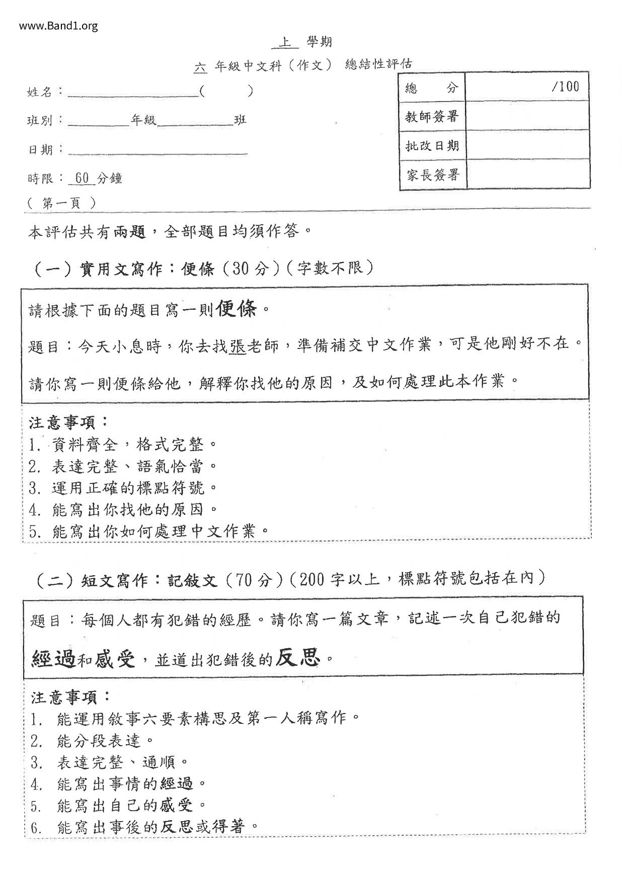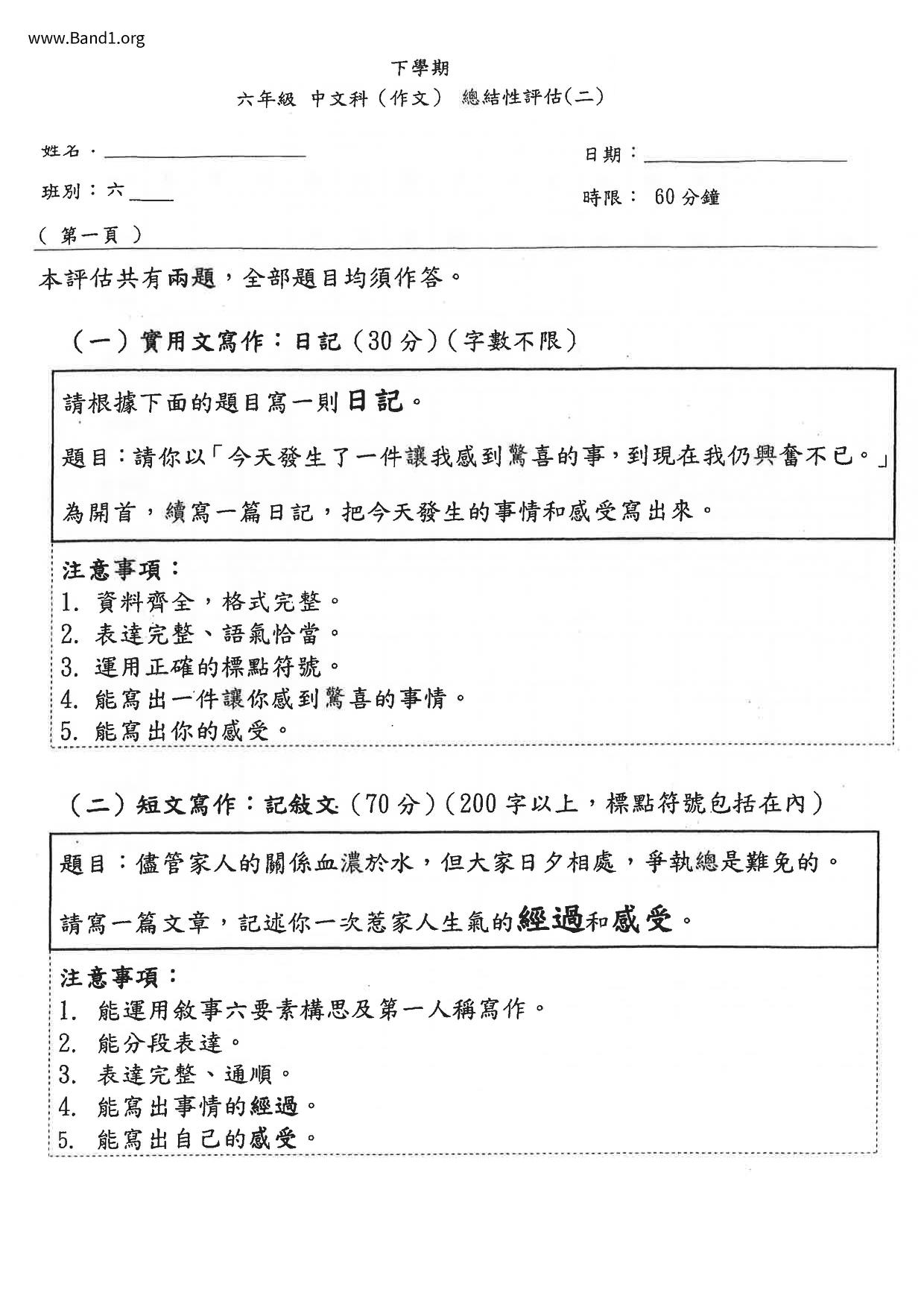 小六 中文 中華基督教會灣仔堂基道小學(九龍城)