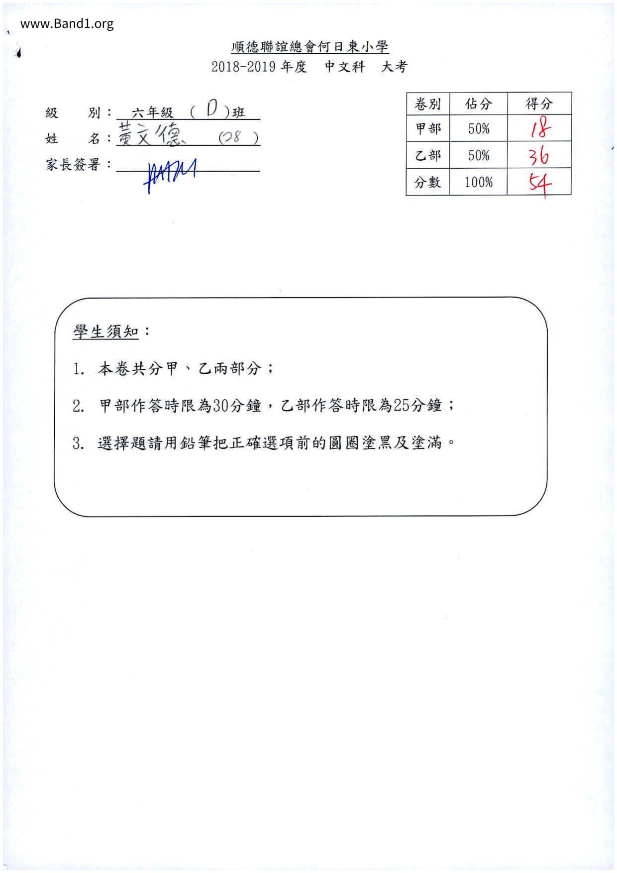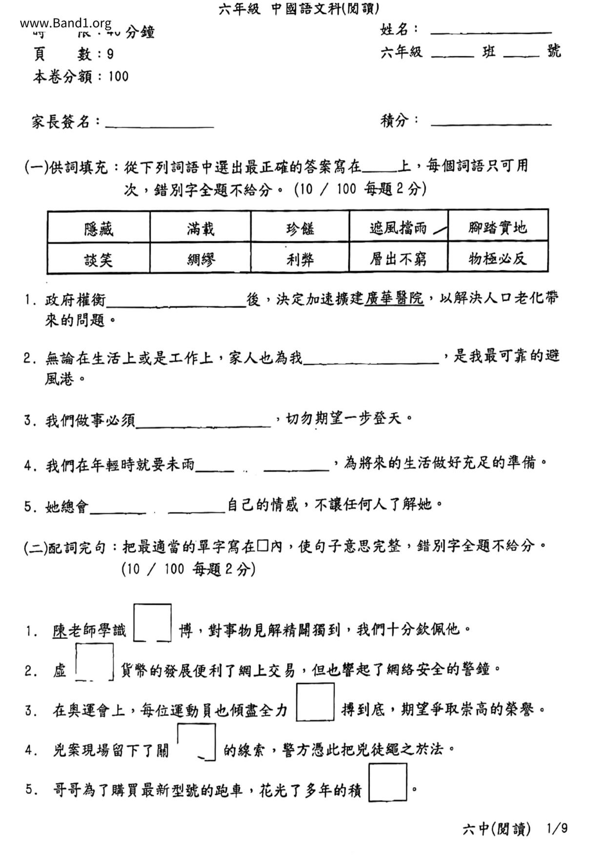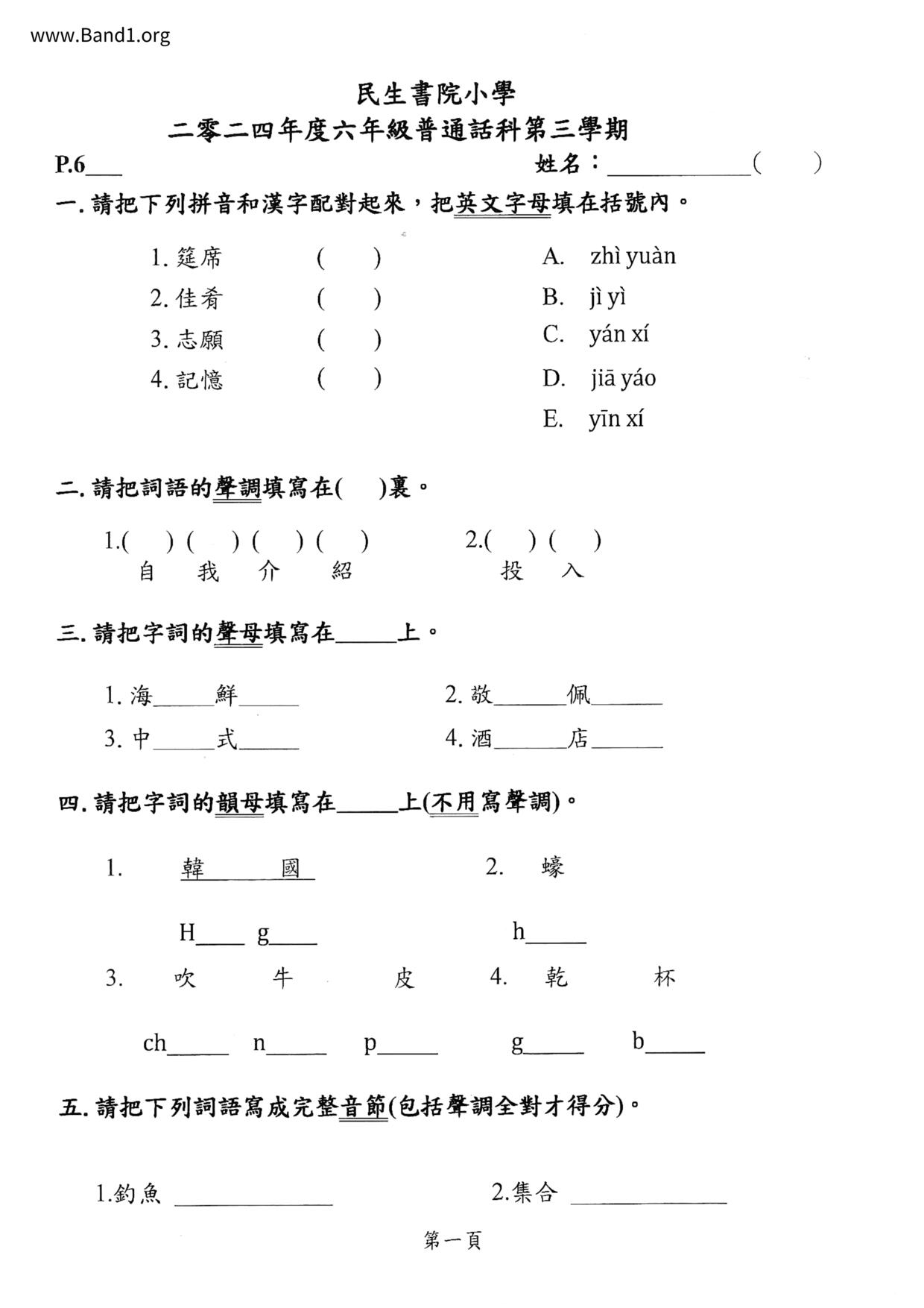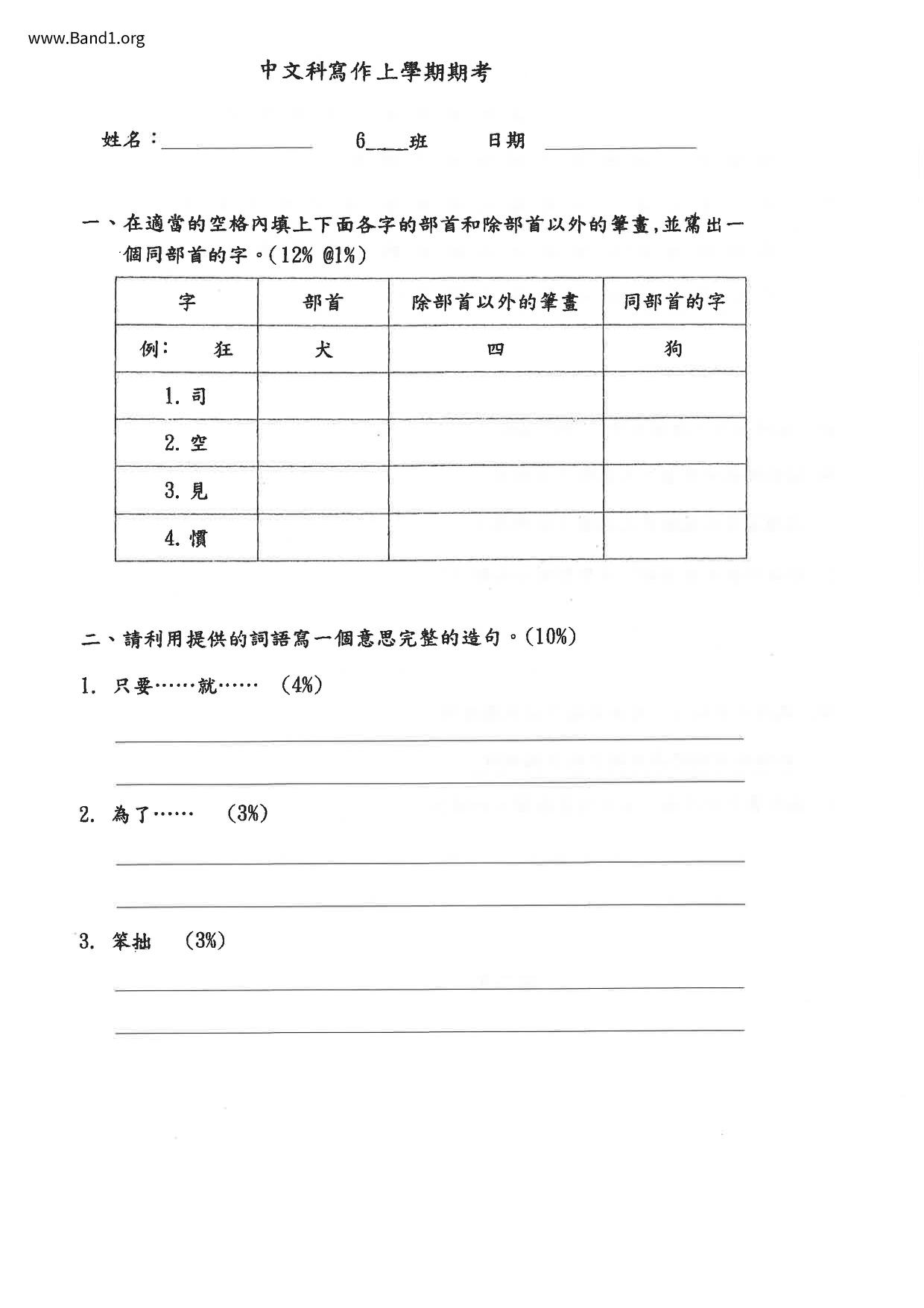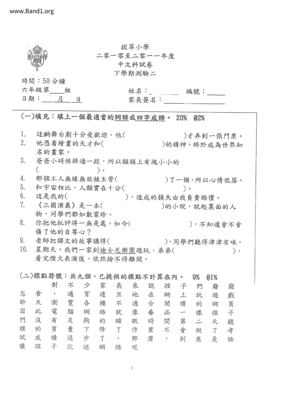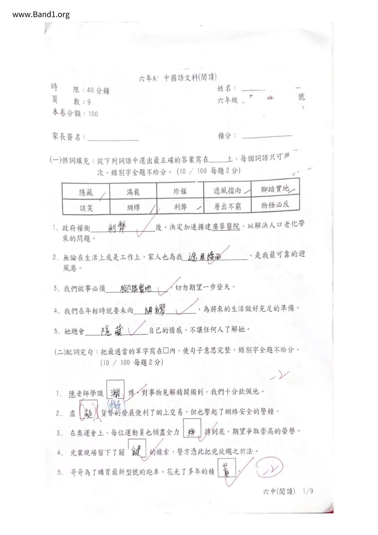 小六 中文 中華基督教會灣仔堂基道小學(九龍城)