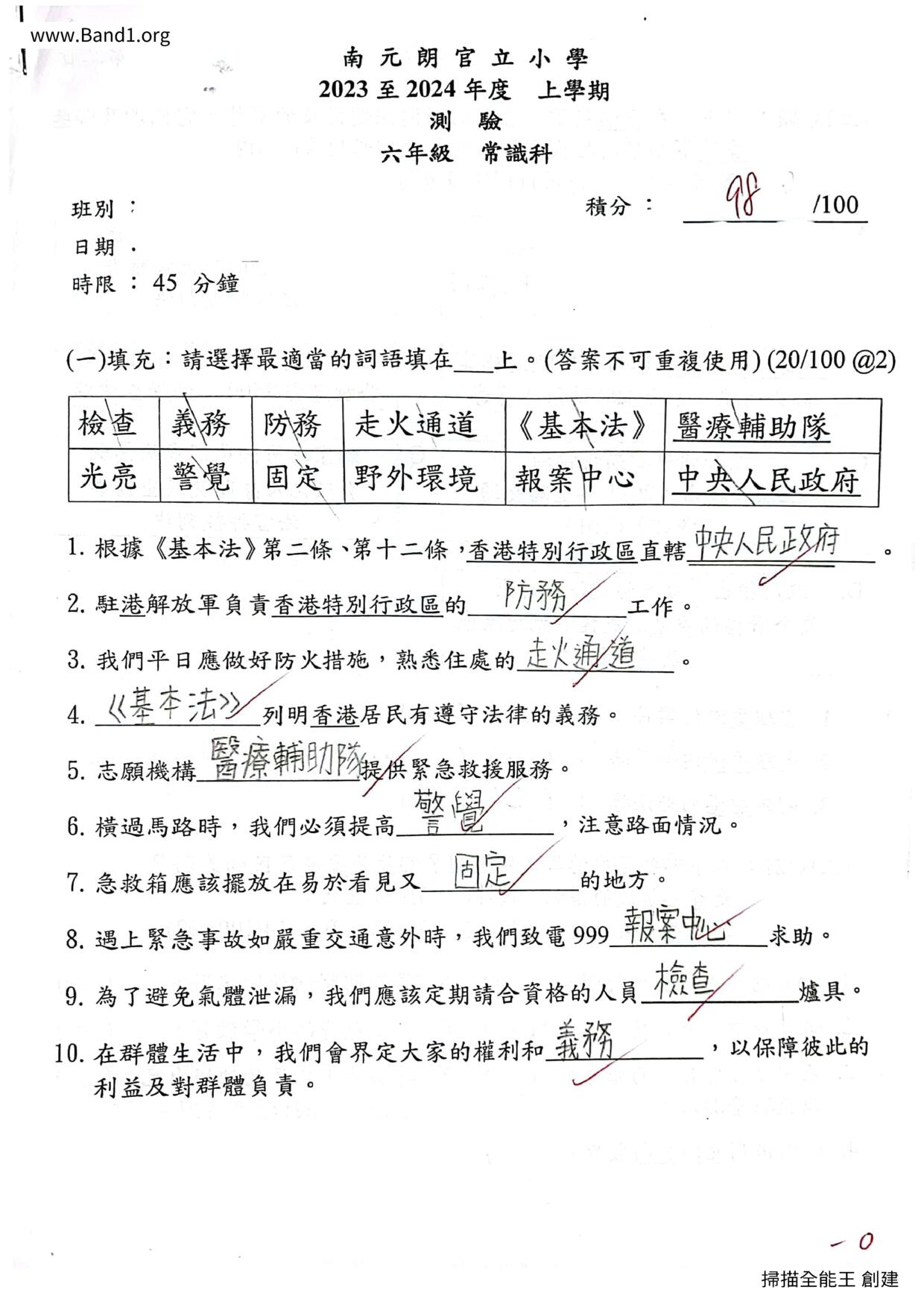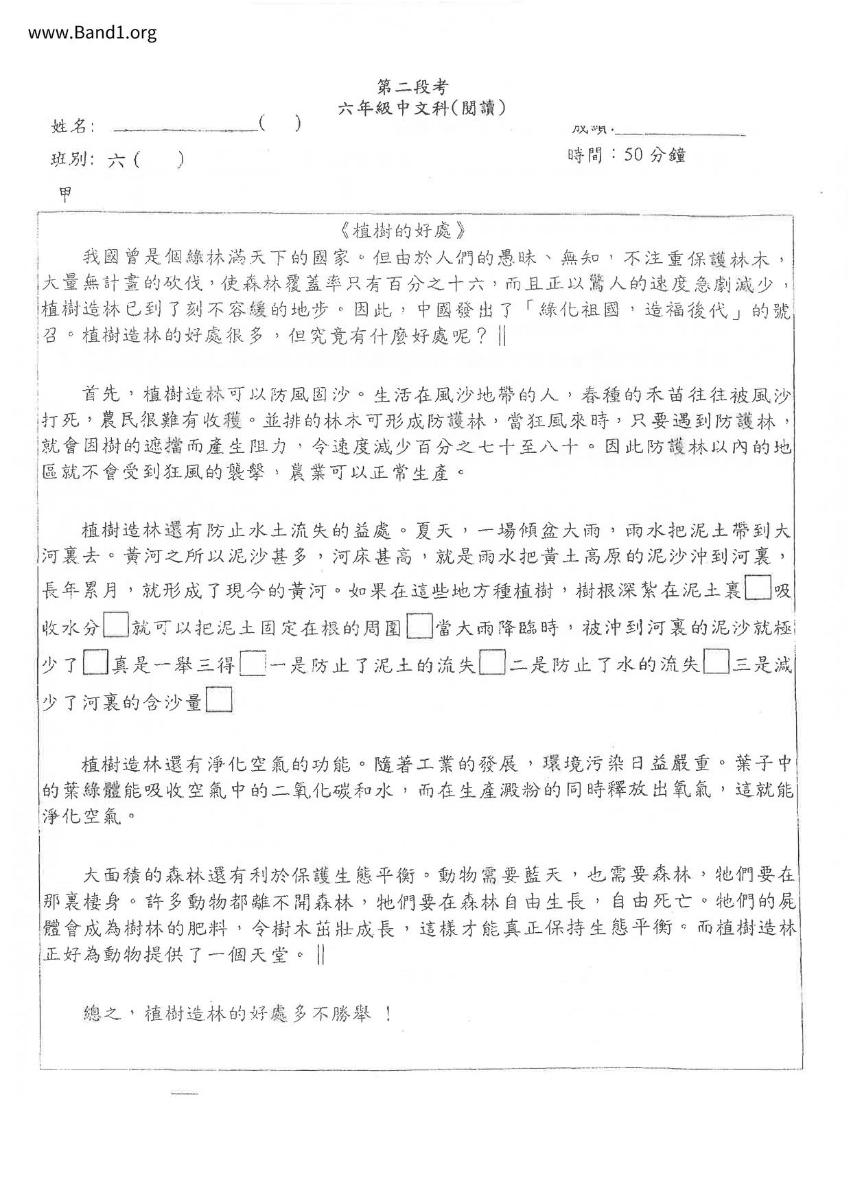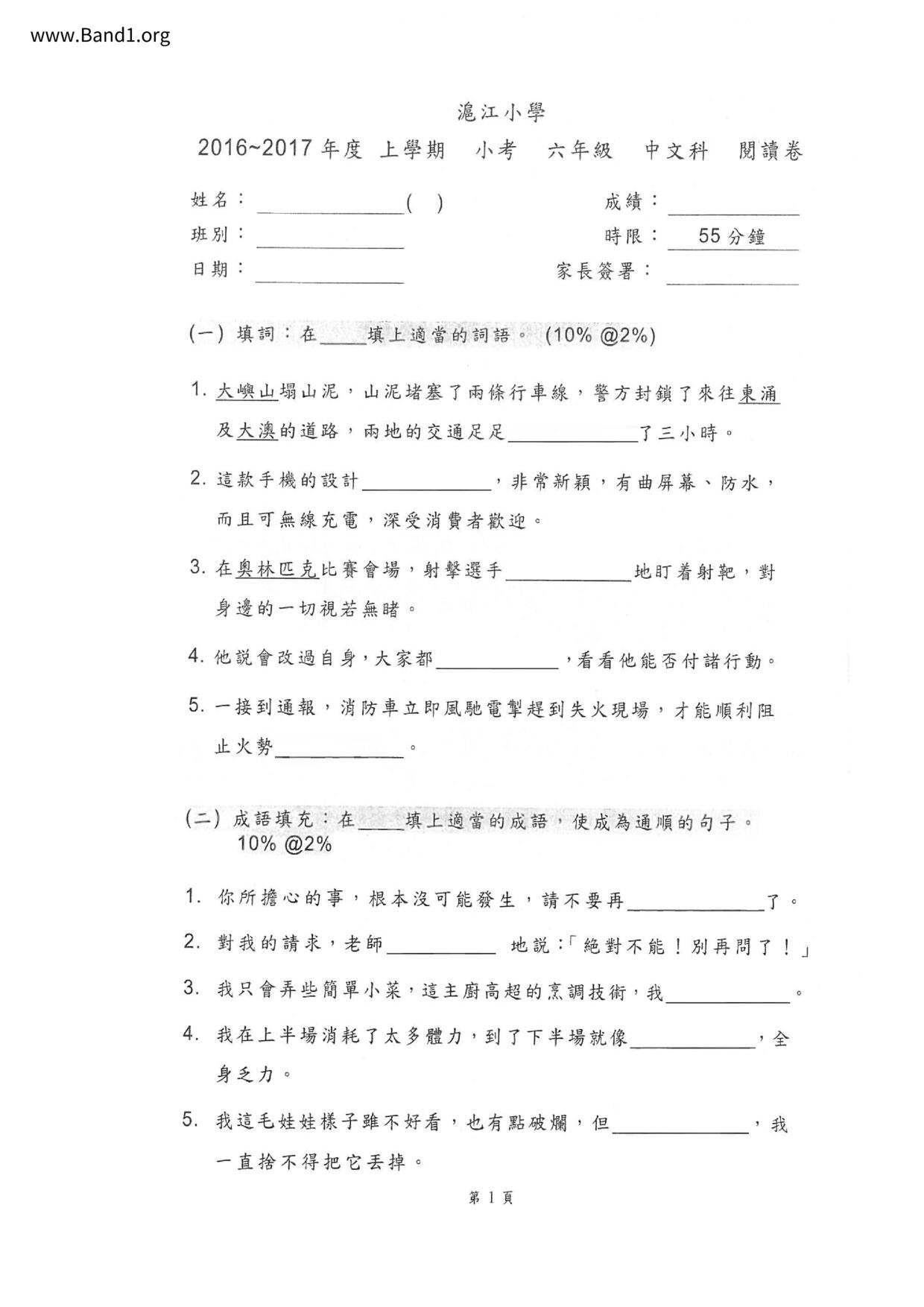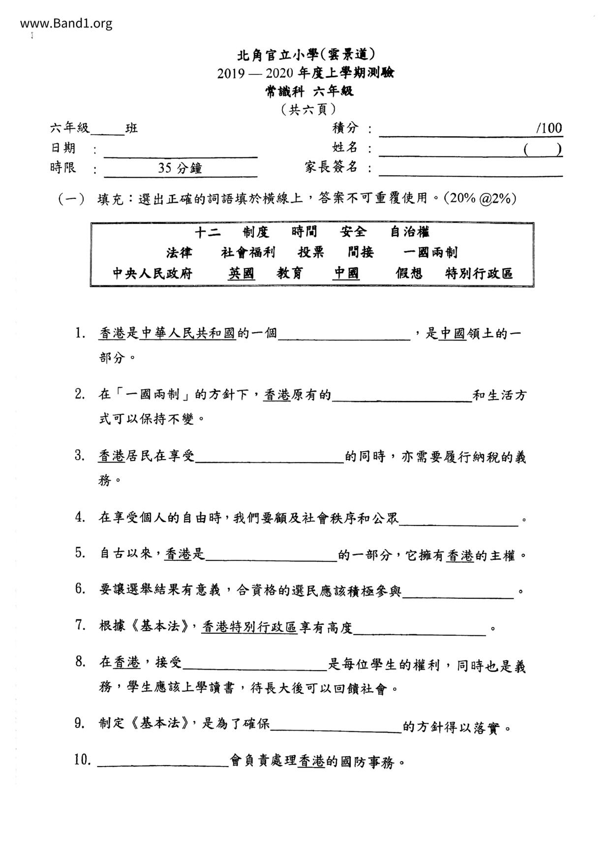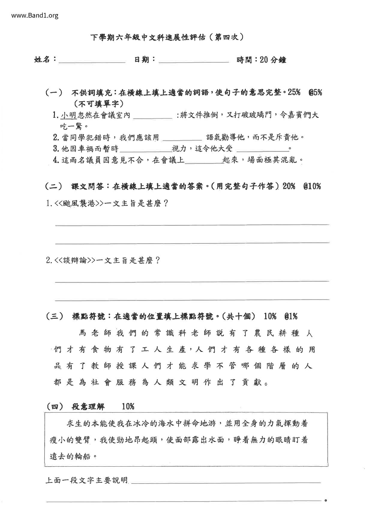 小六 中文 中華基督教會灣仔堂基道小學(九龍城)