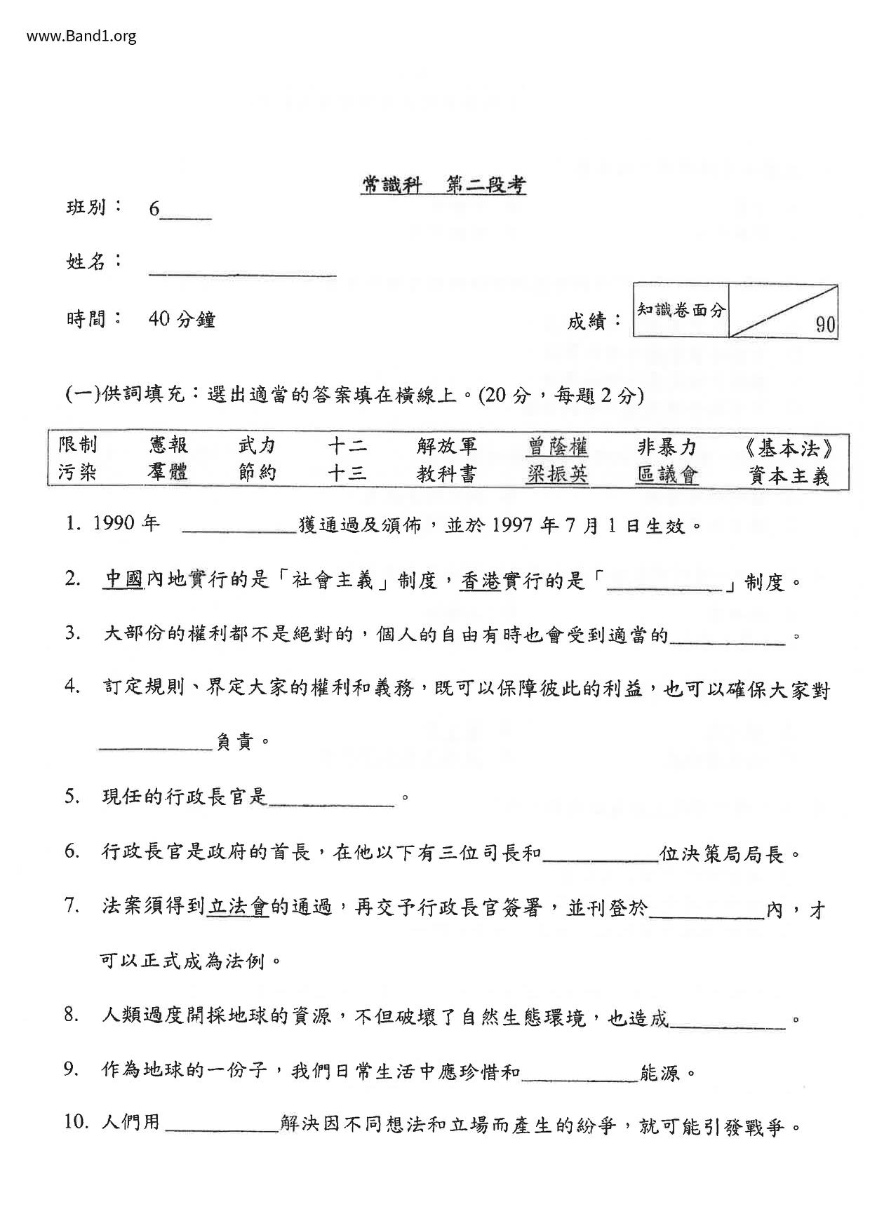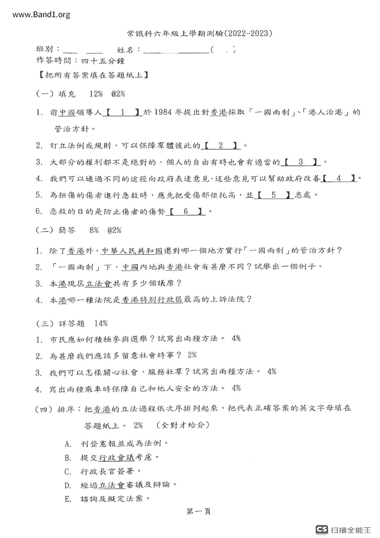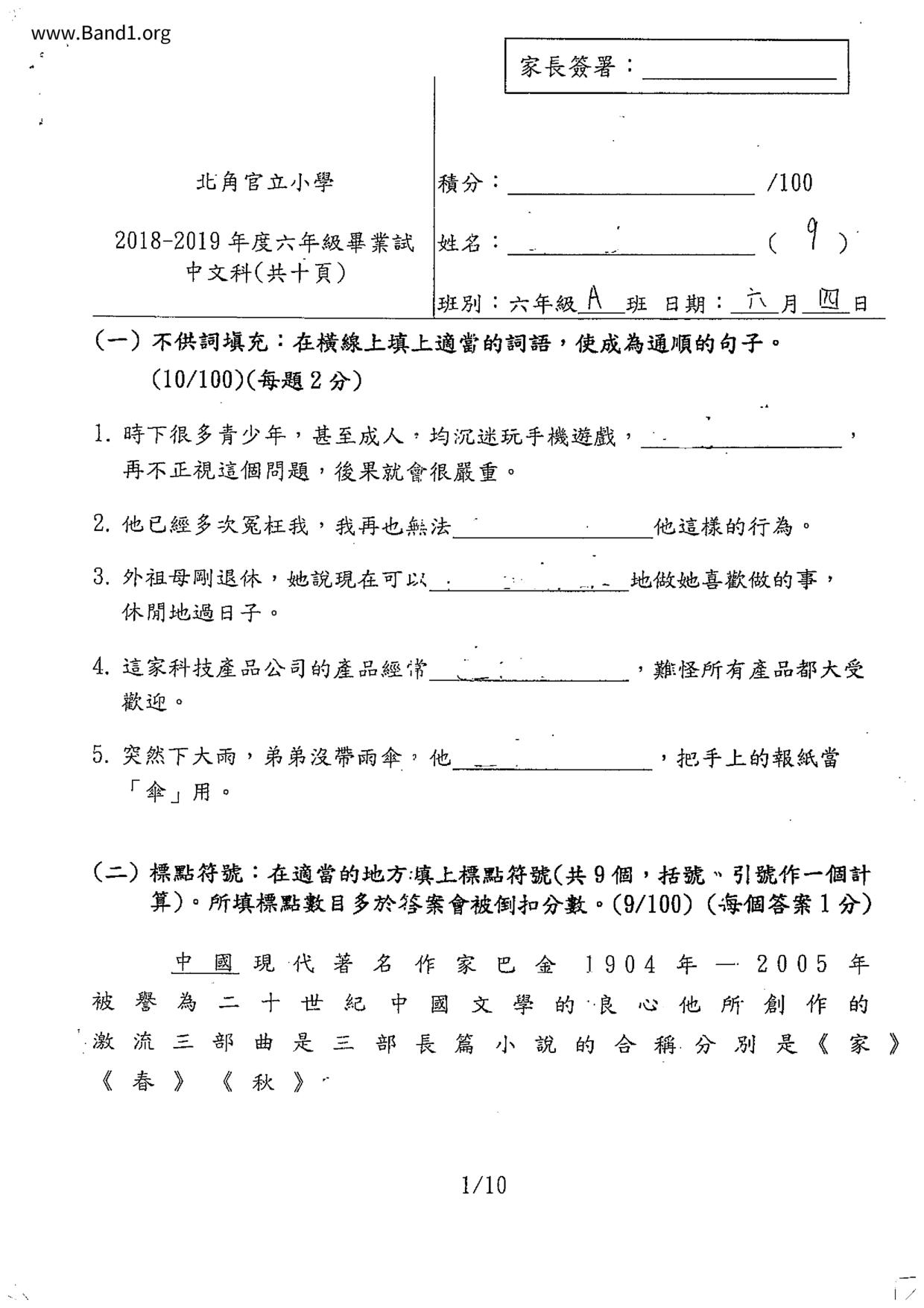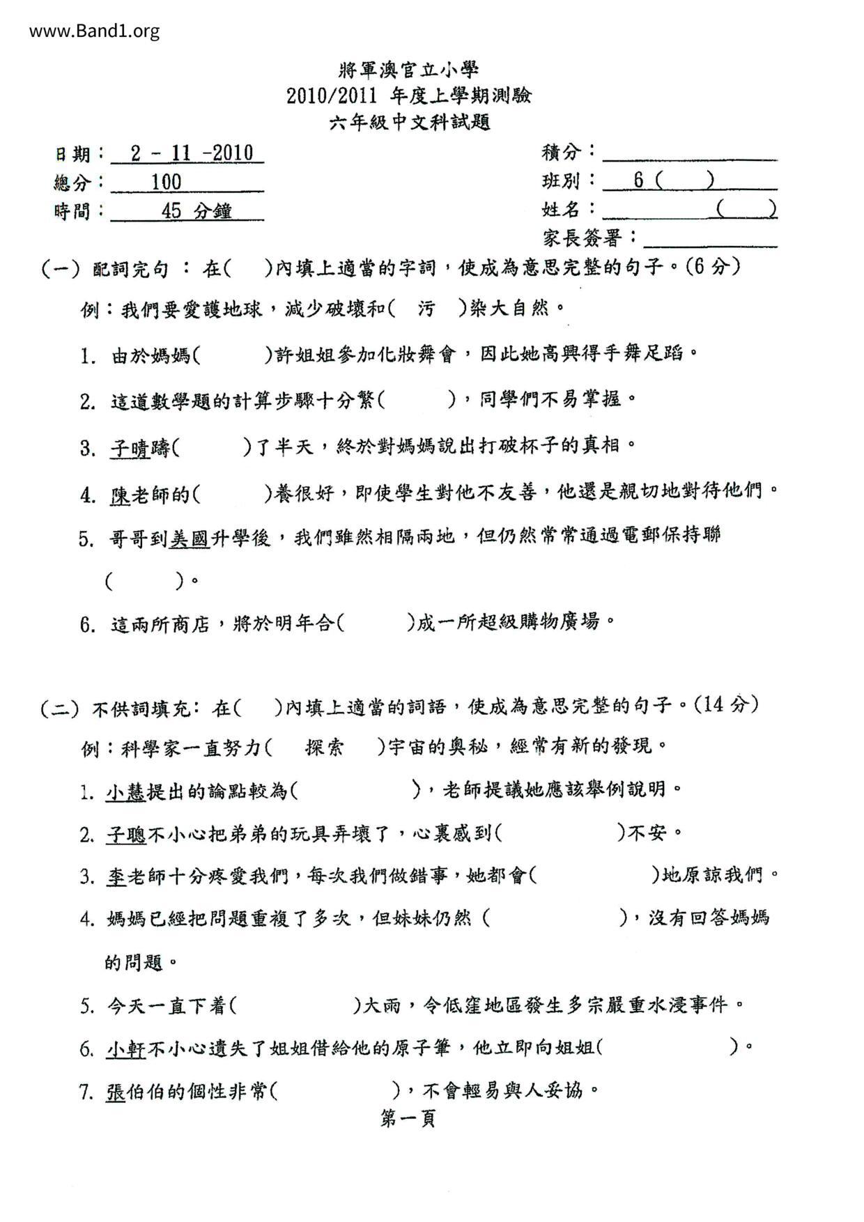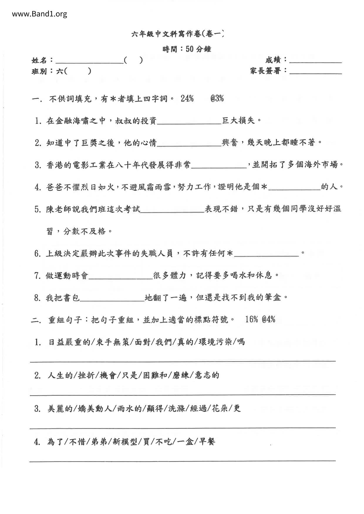 小六 中文 中華基督教會灣仔堂基道小學(九龍城)
