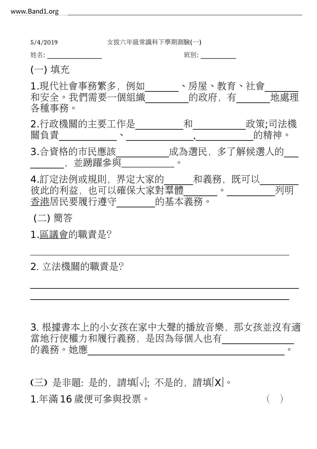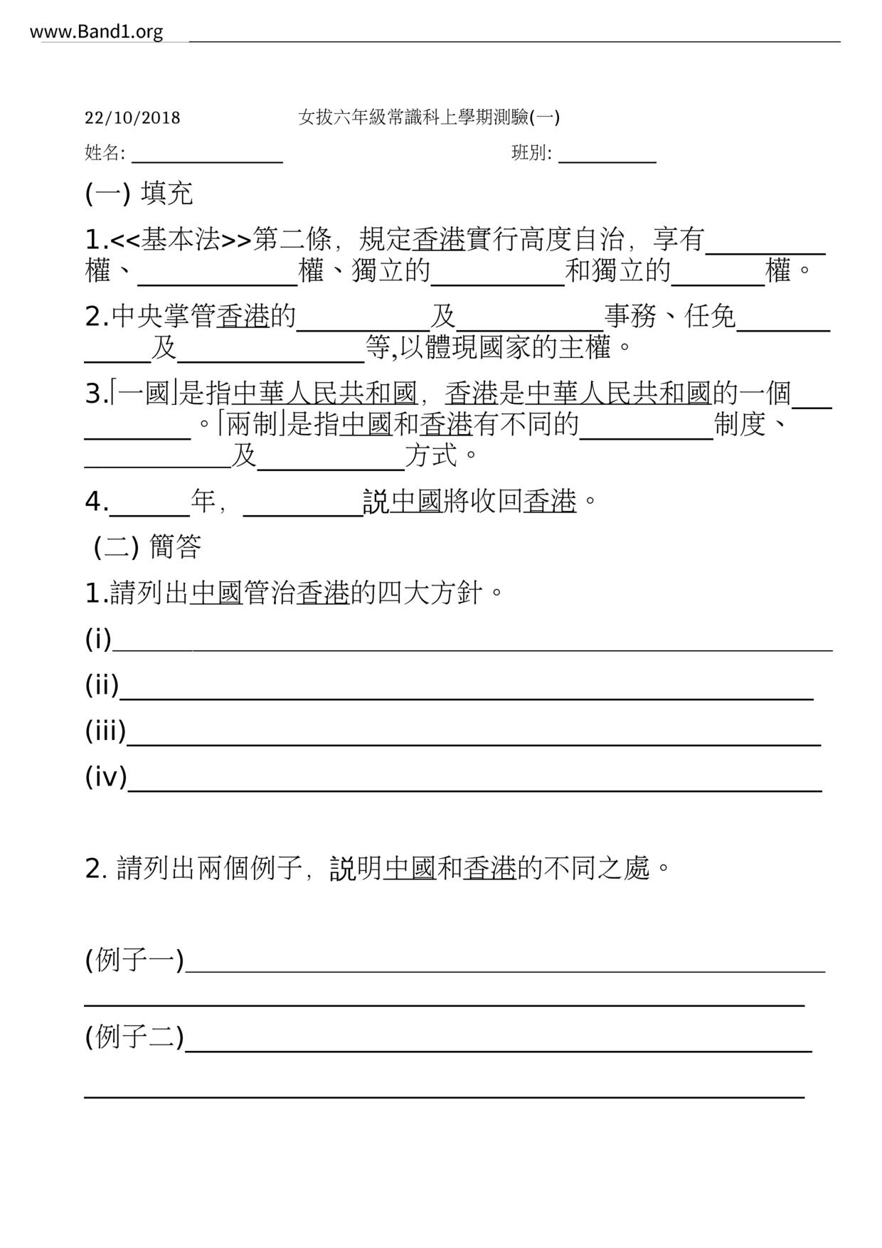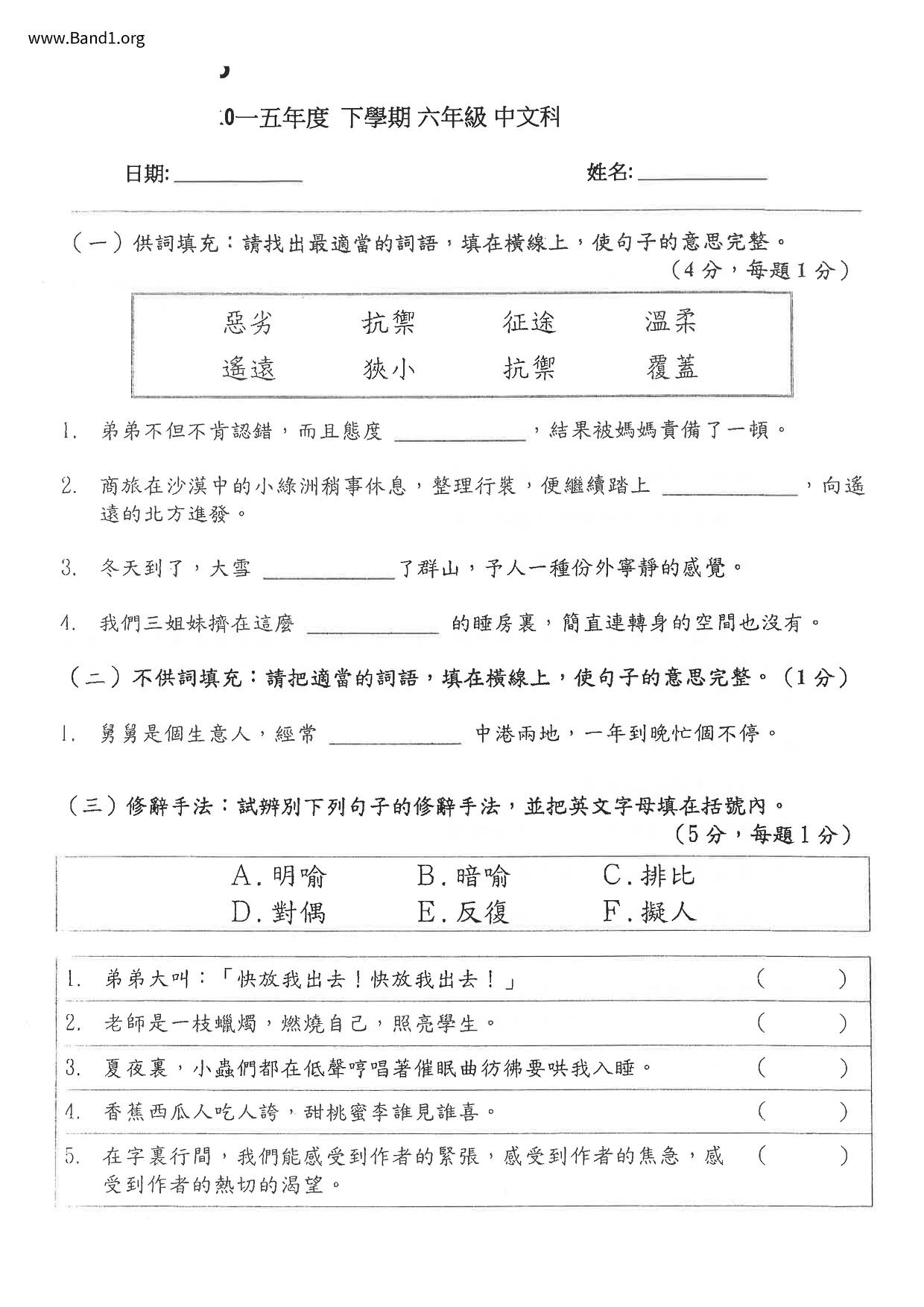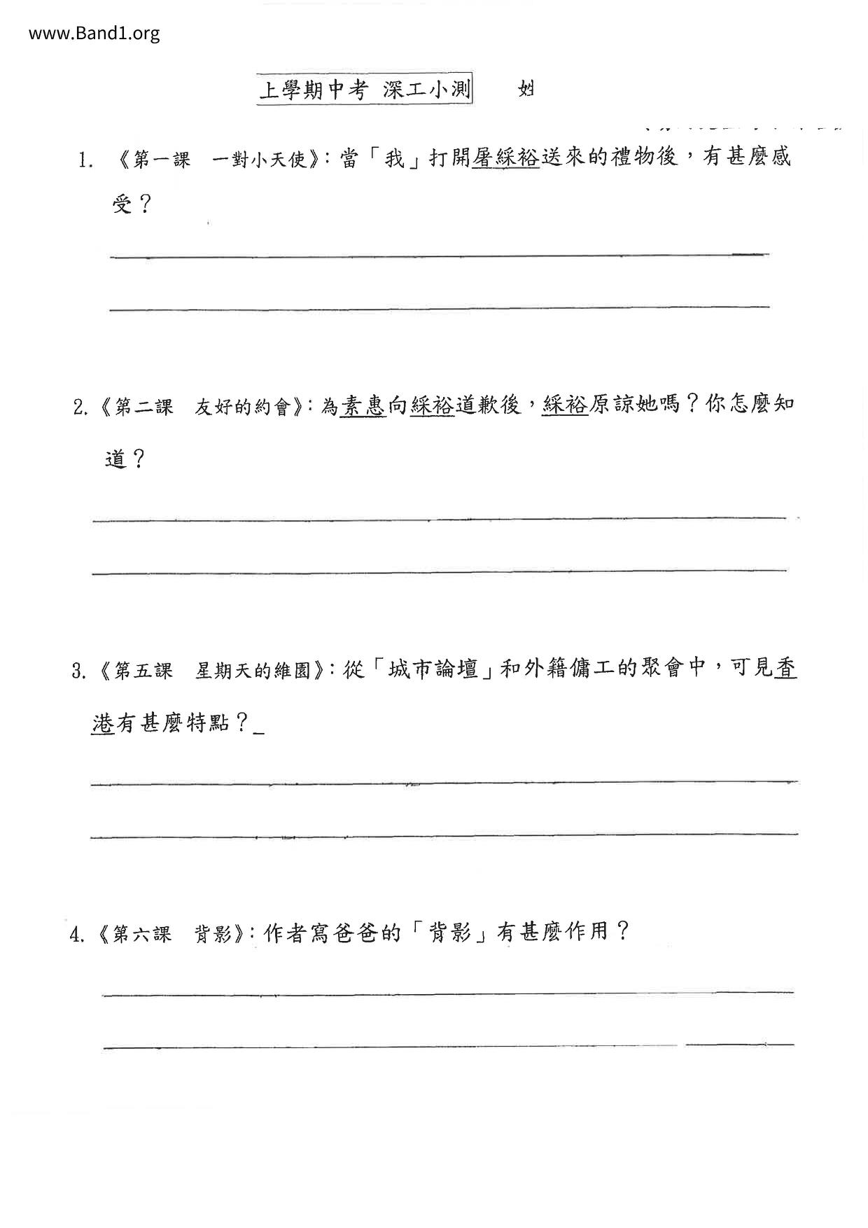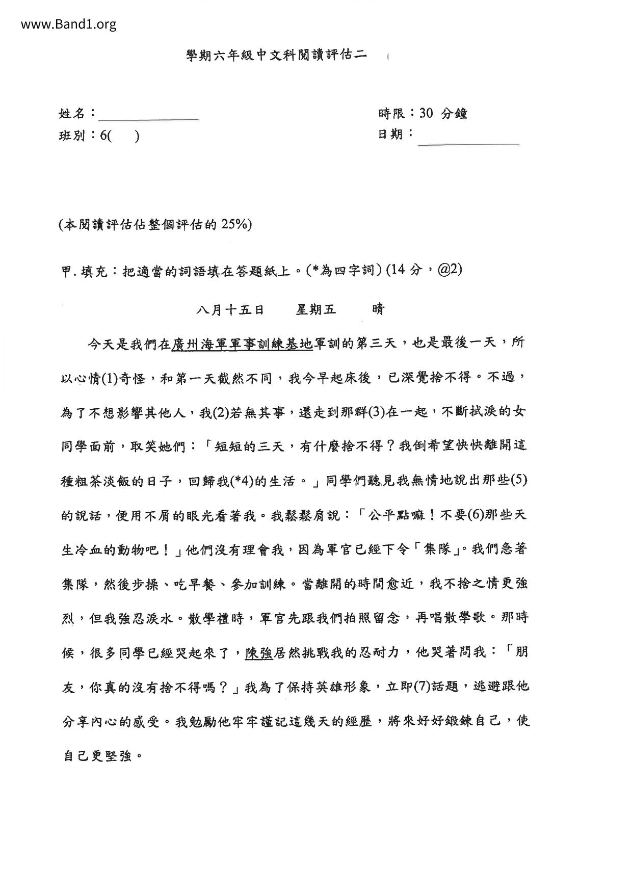 小六 中文 香港紅十字會雅麗珊郡主學校