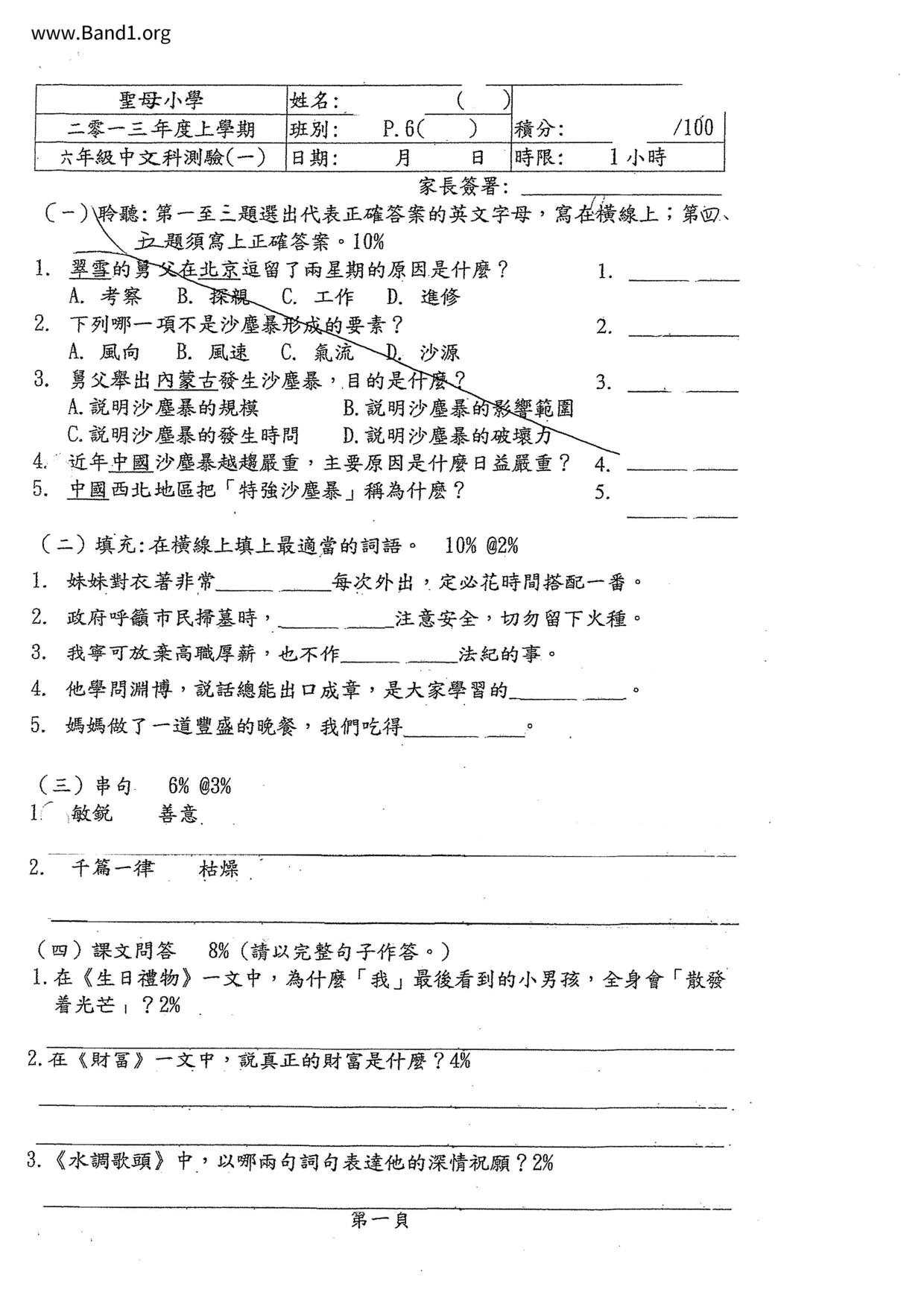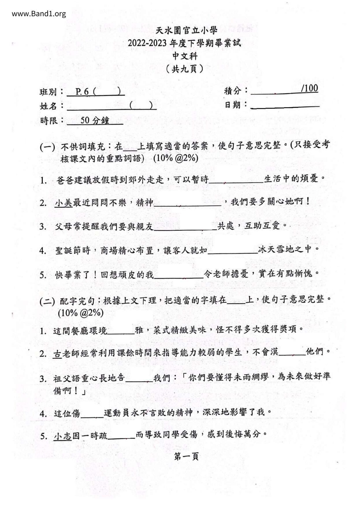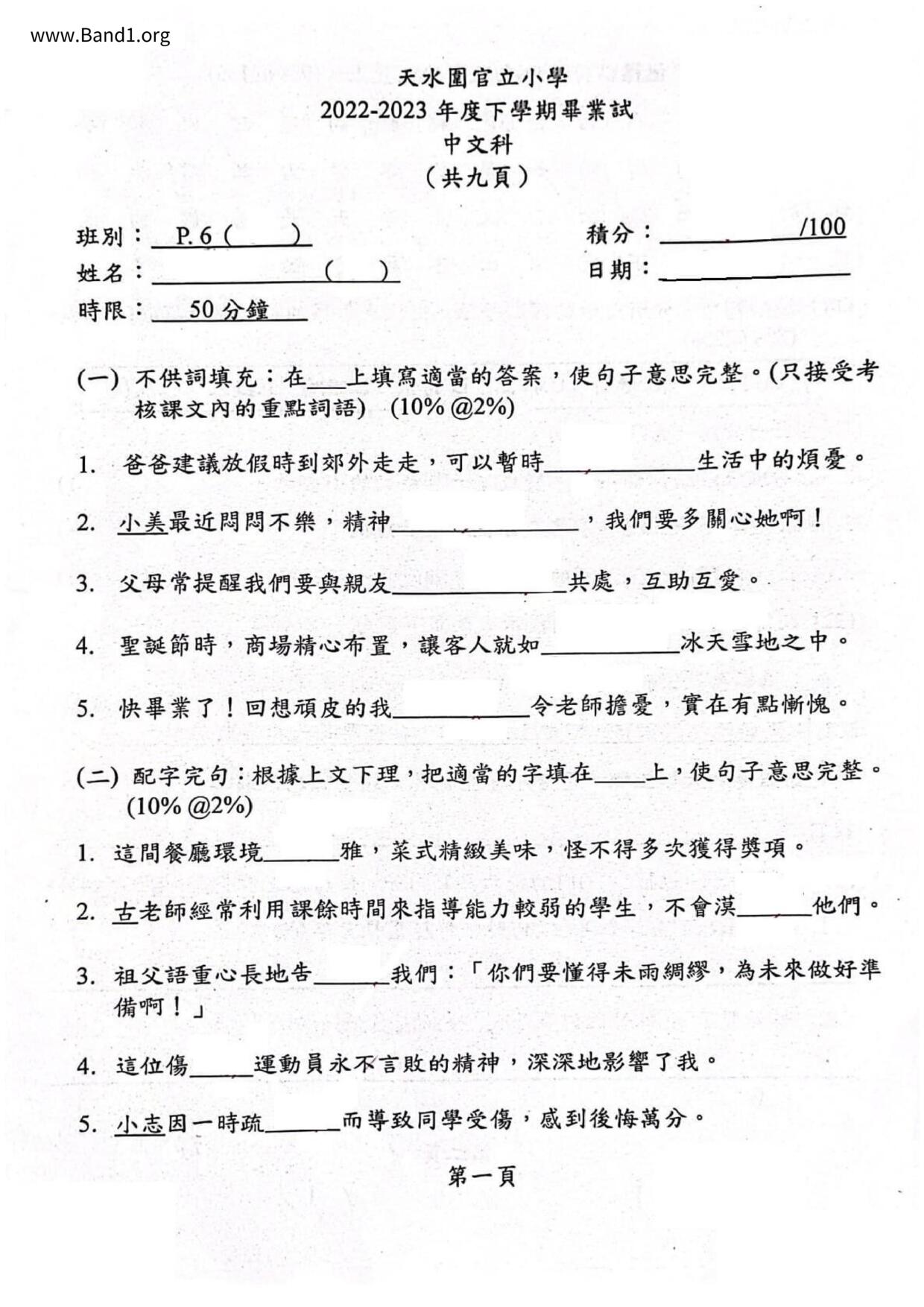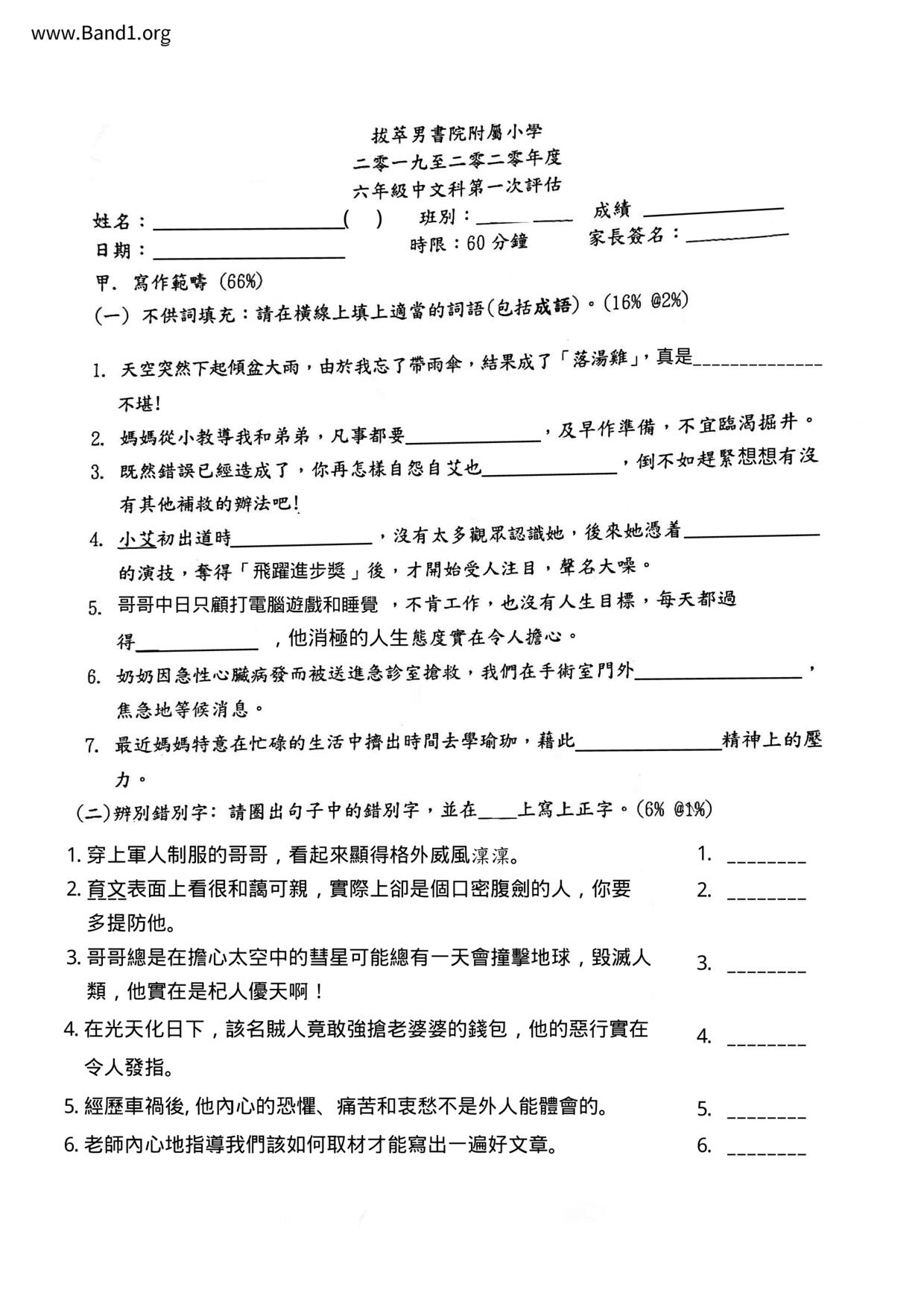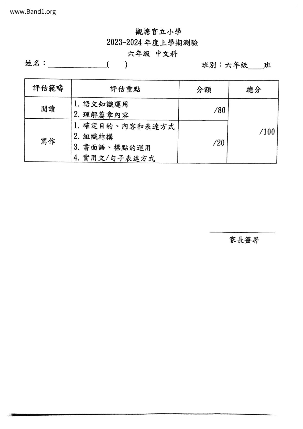 小六 中文 聖博德天主教小學(蒲崗村道)