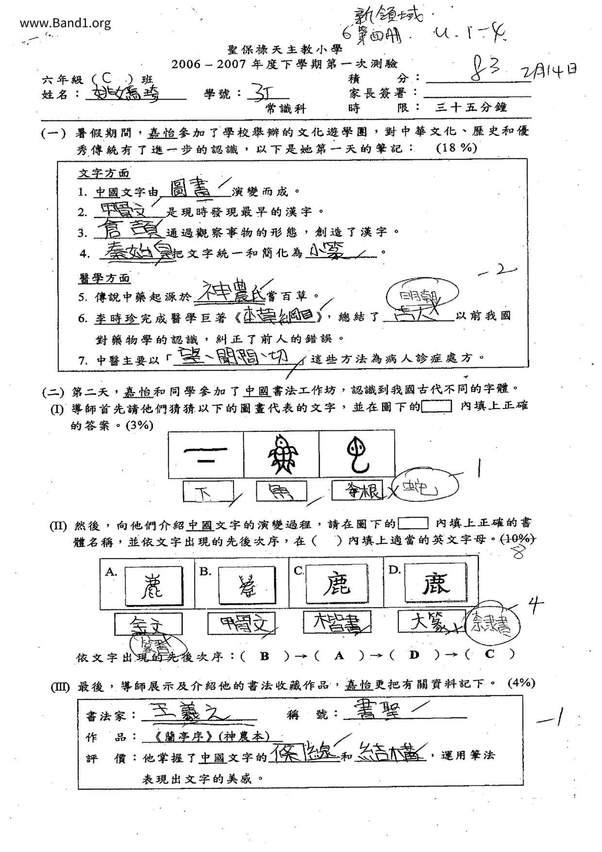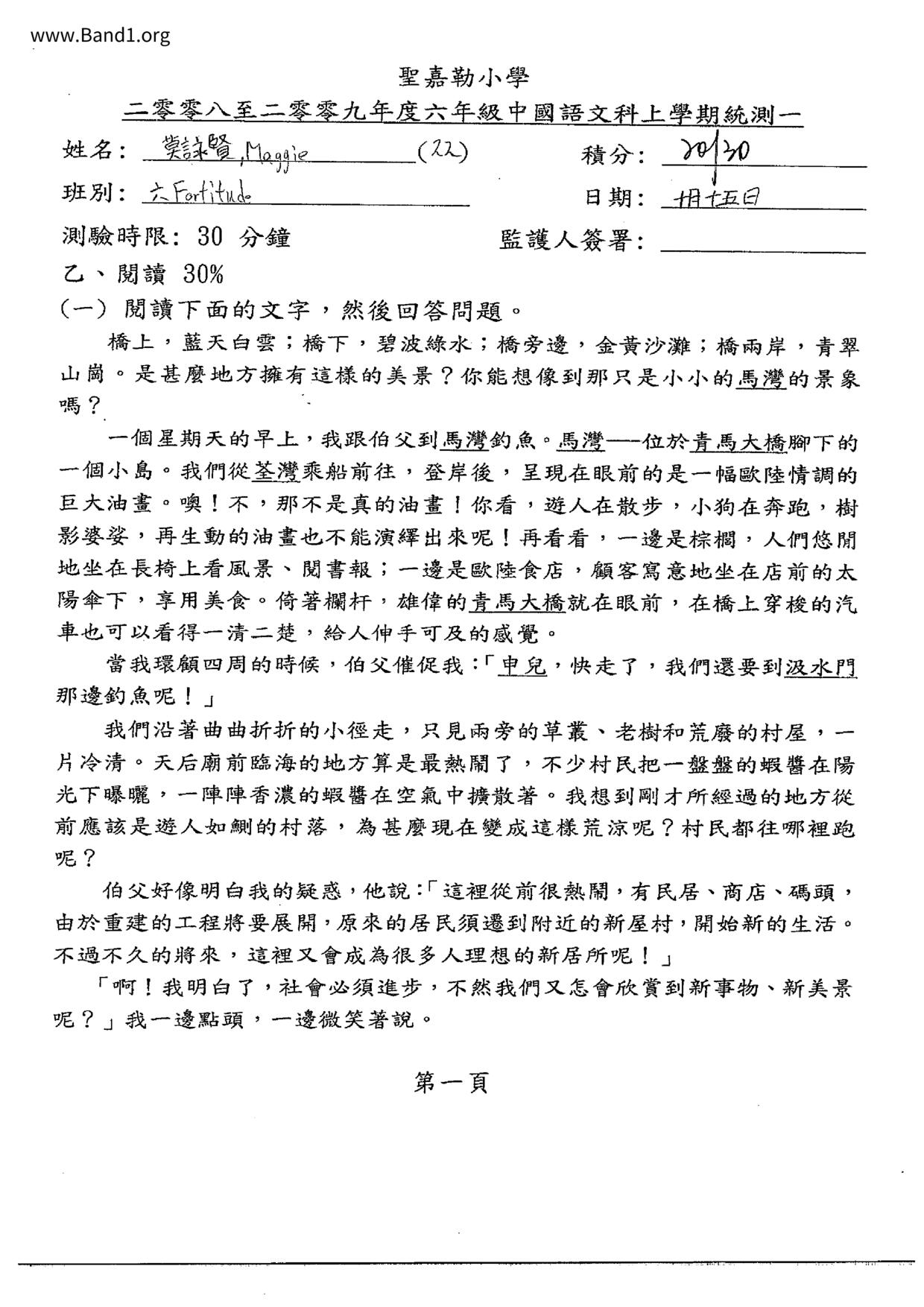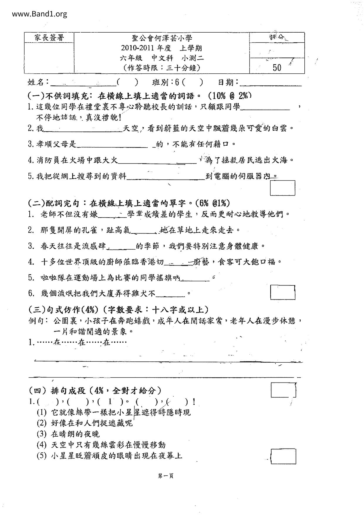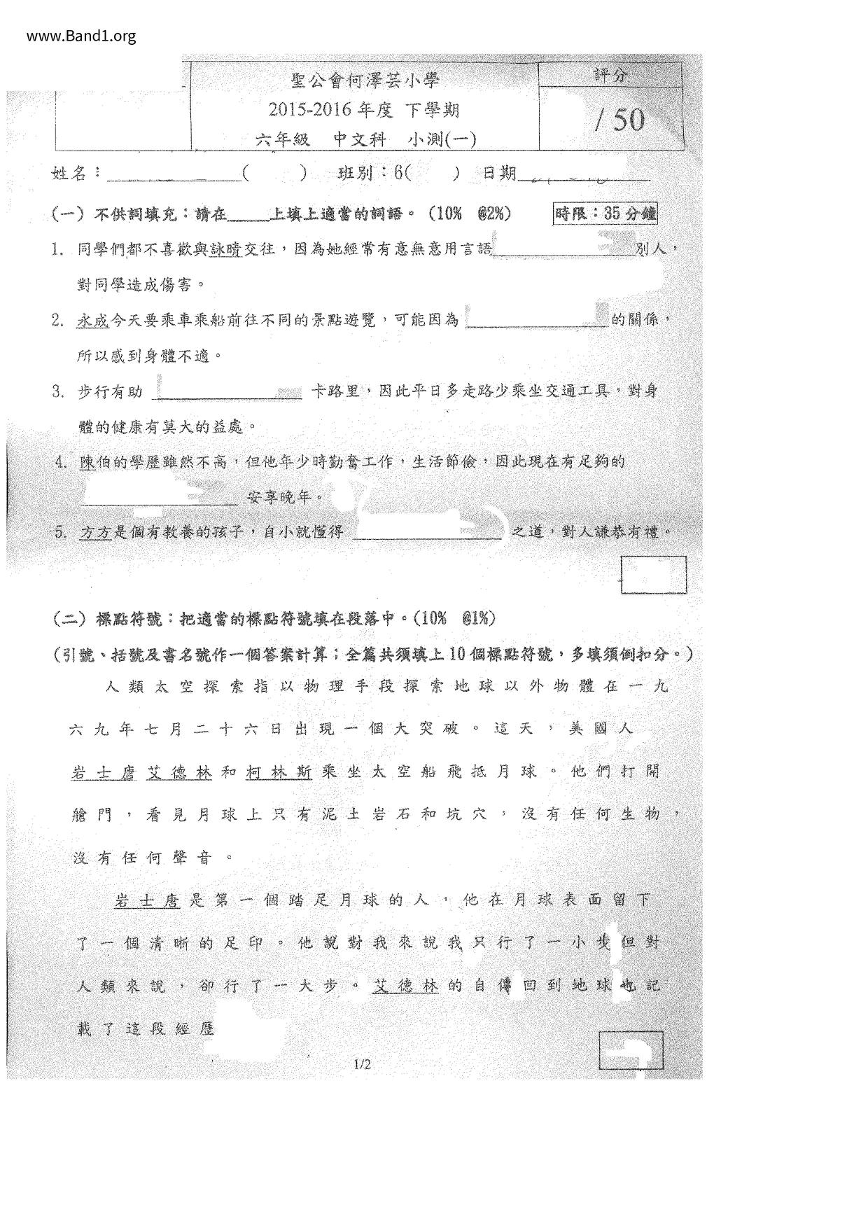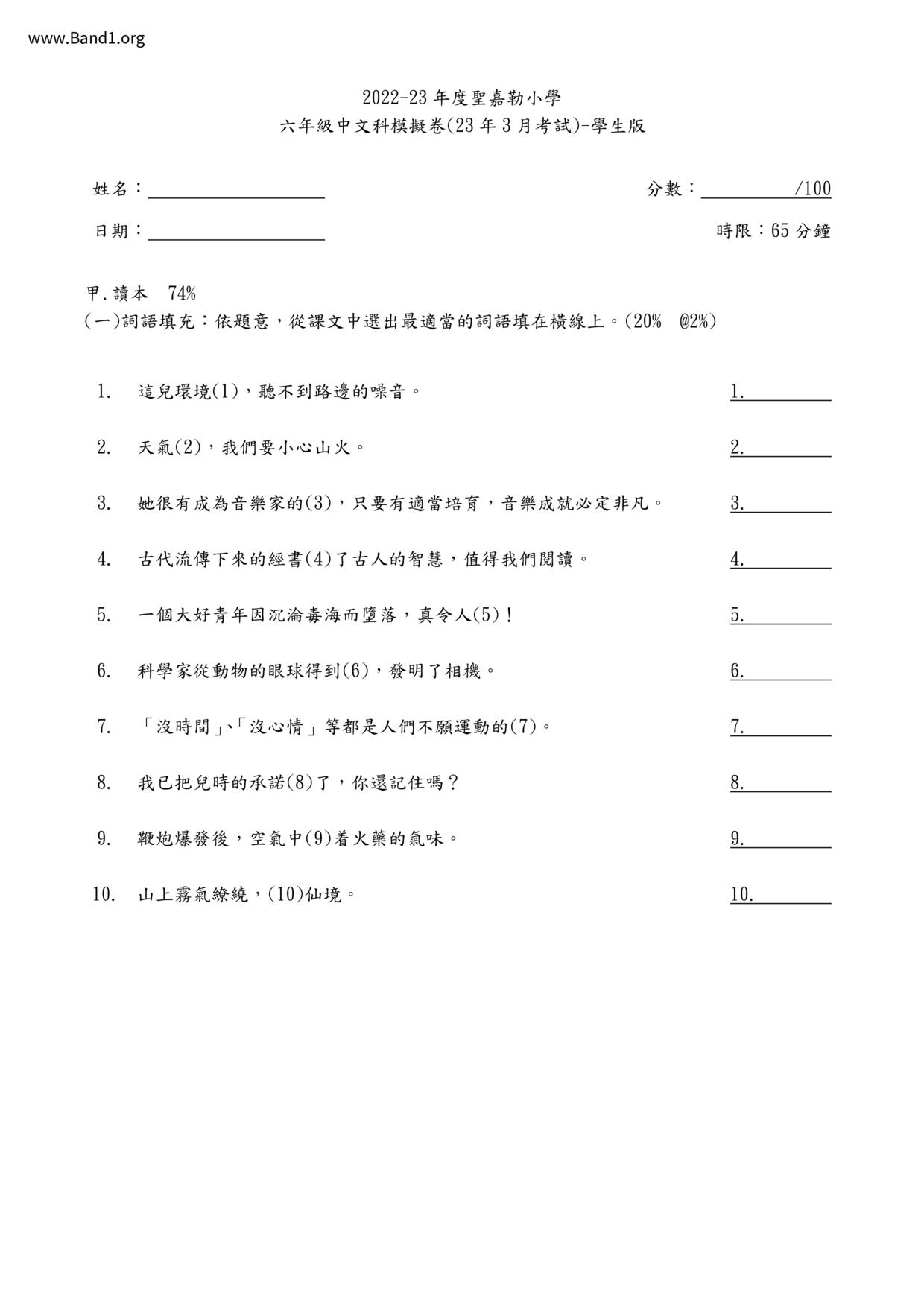 小六 中文 聖博德天主教小學(蒲崗村道)