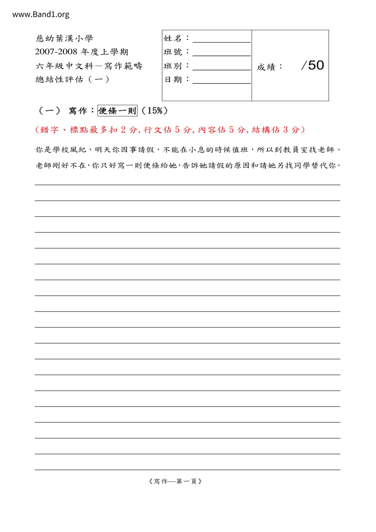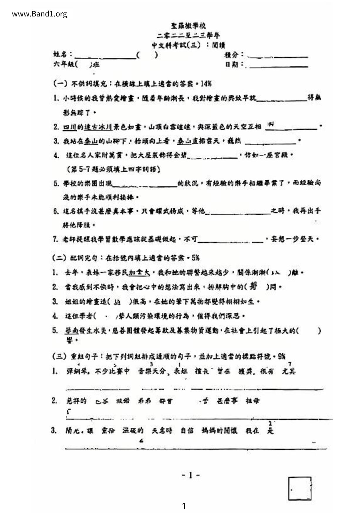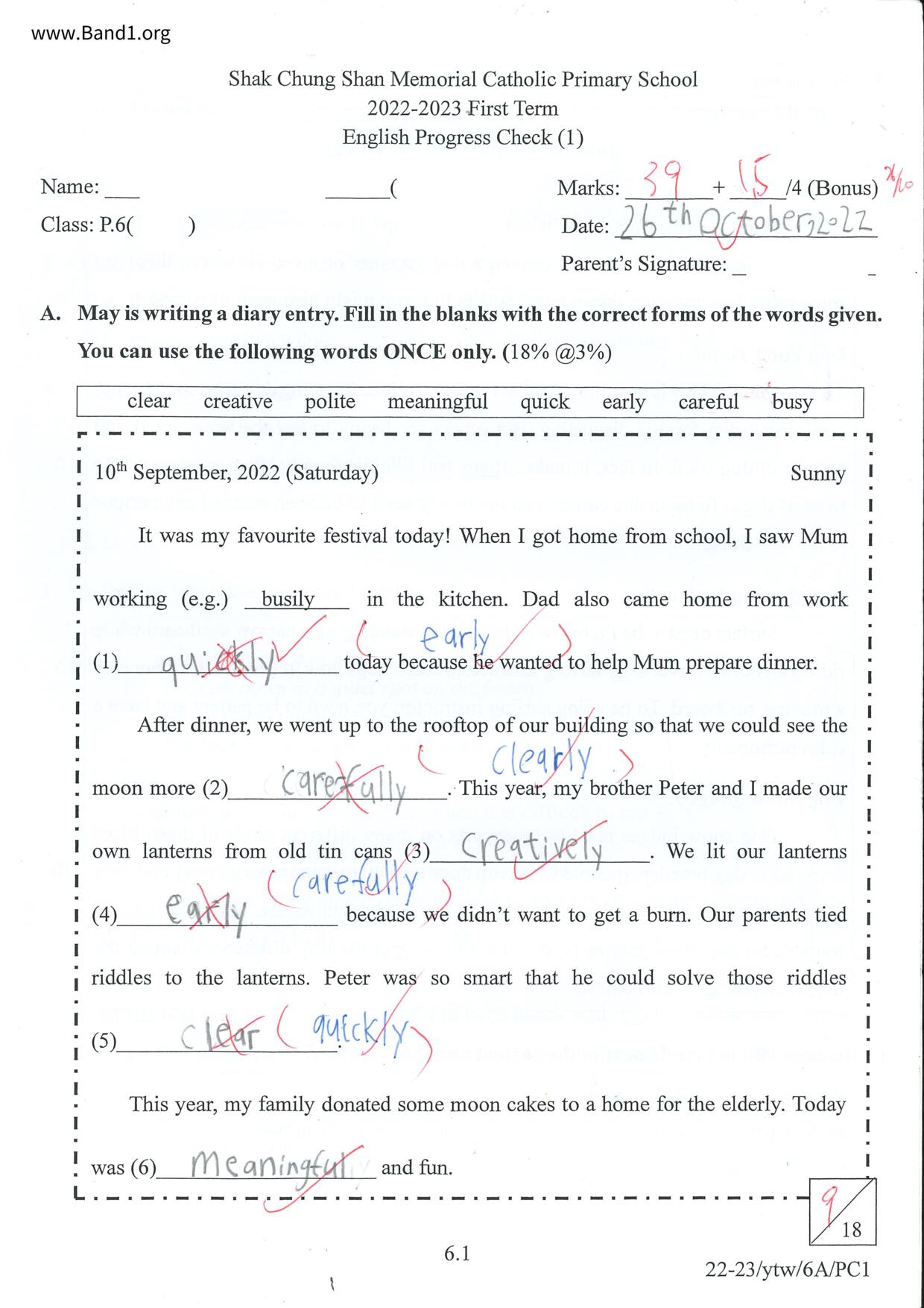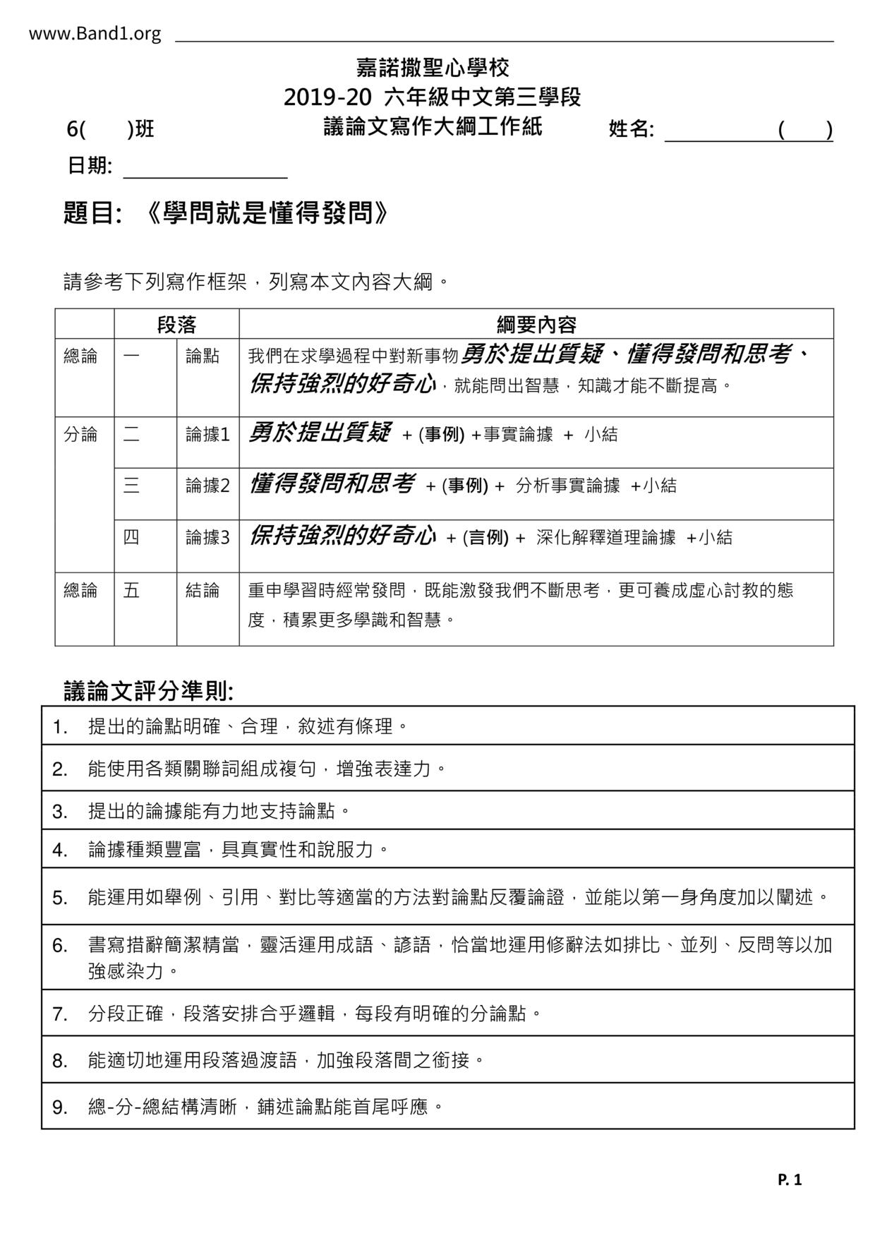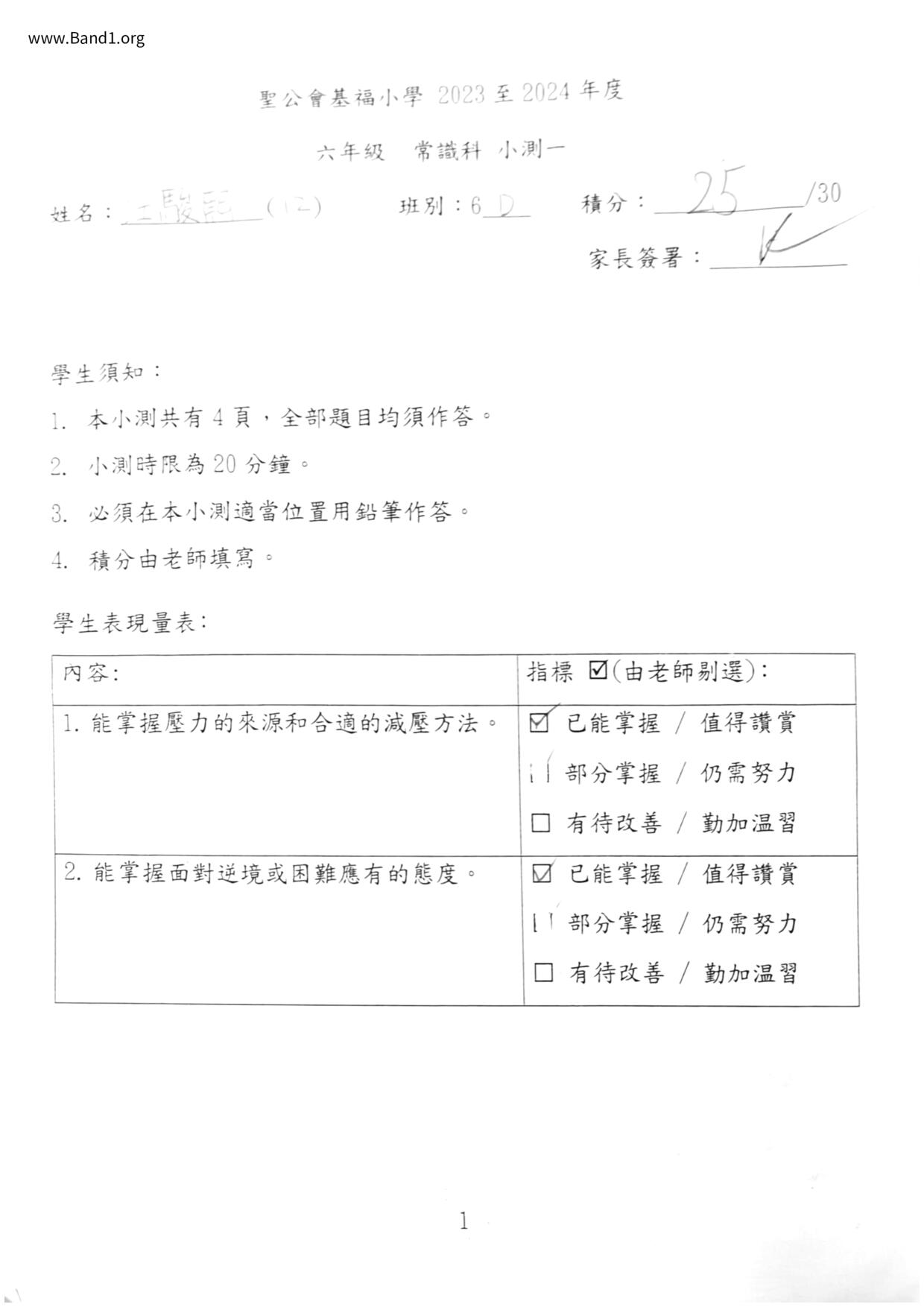 小六 中文 聖博德天主教小學(蒲崗村道)