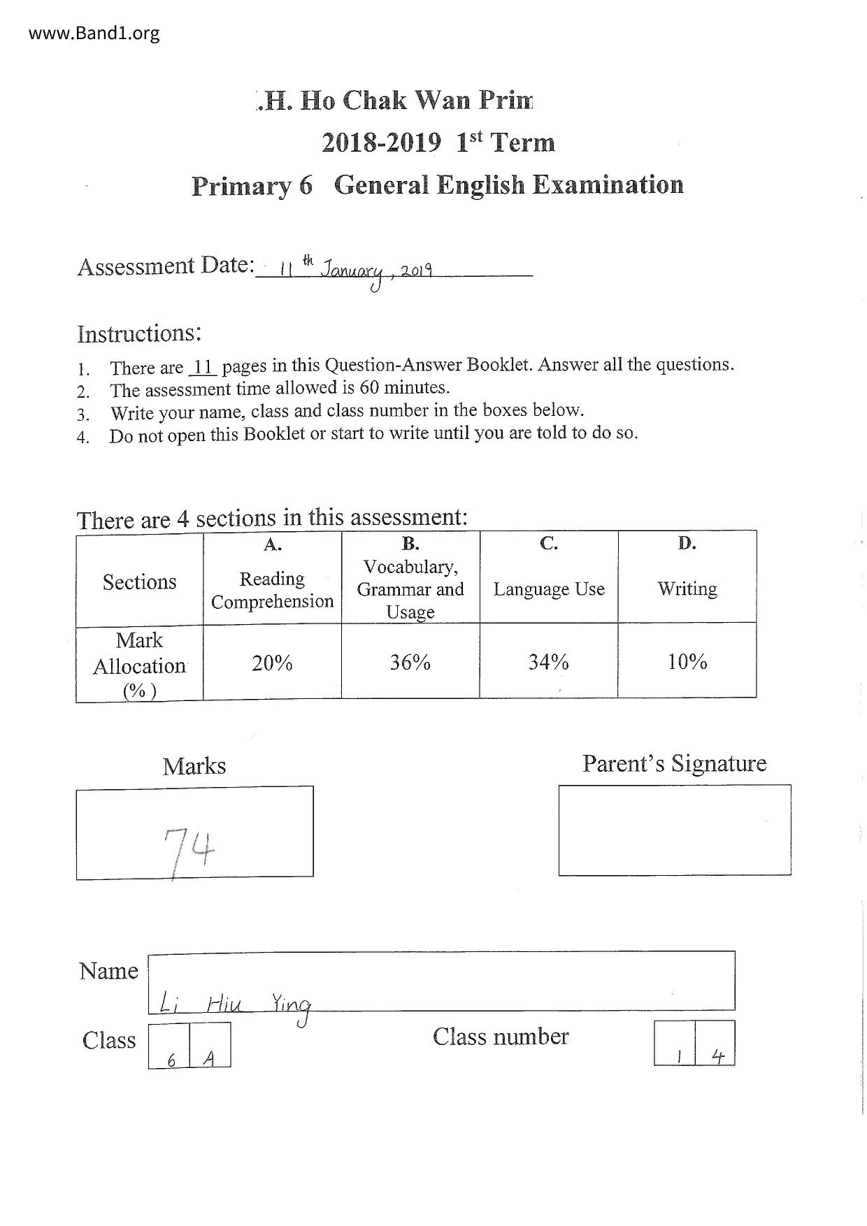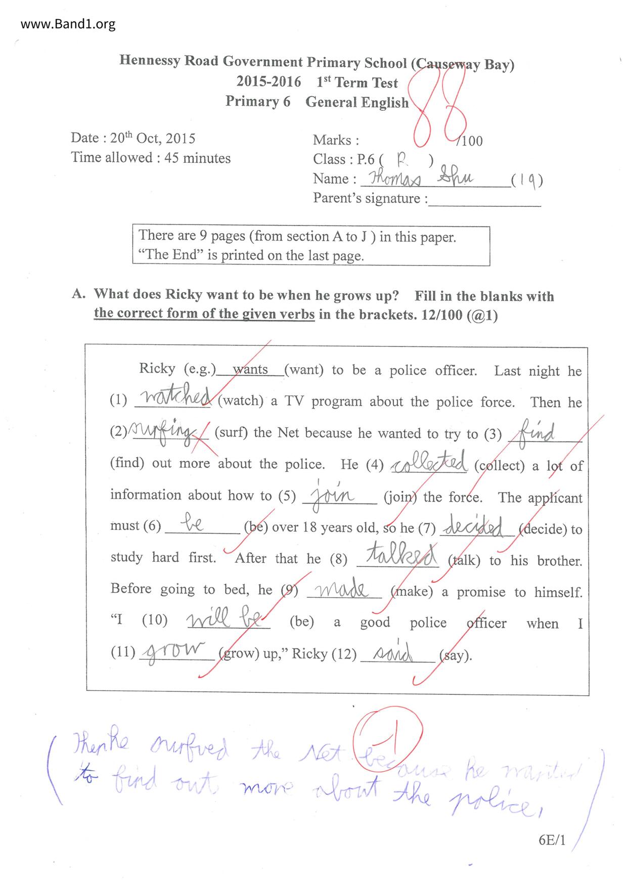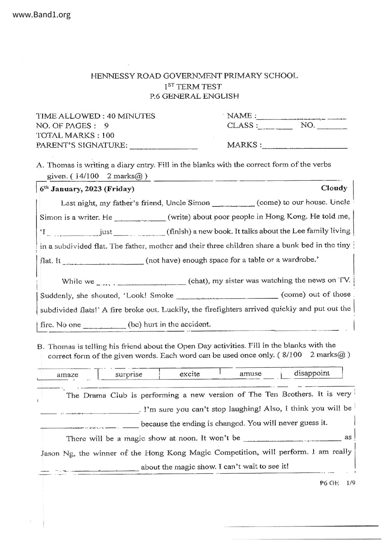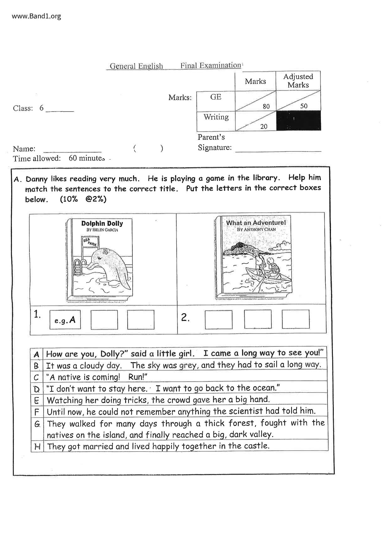小六 英文 軒尼詩道官立小學(銅鑼灣)