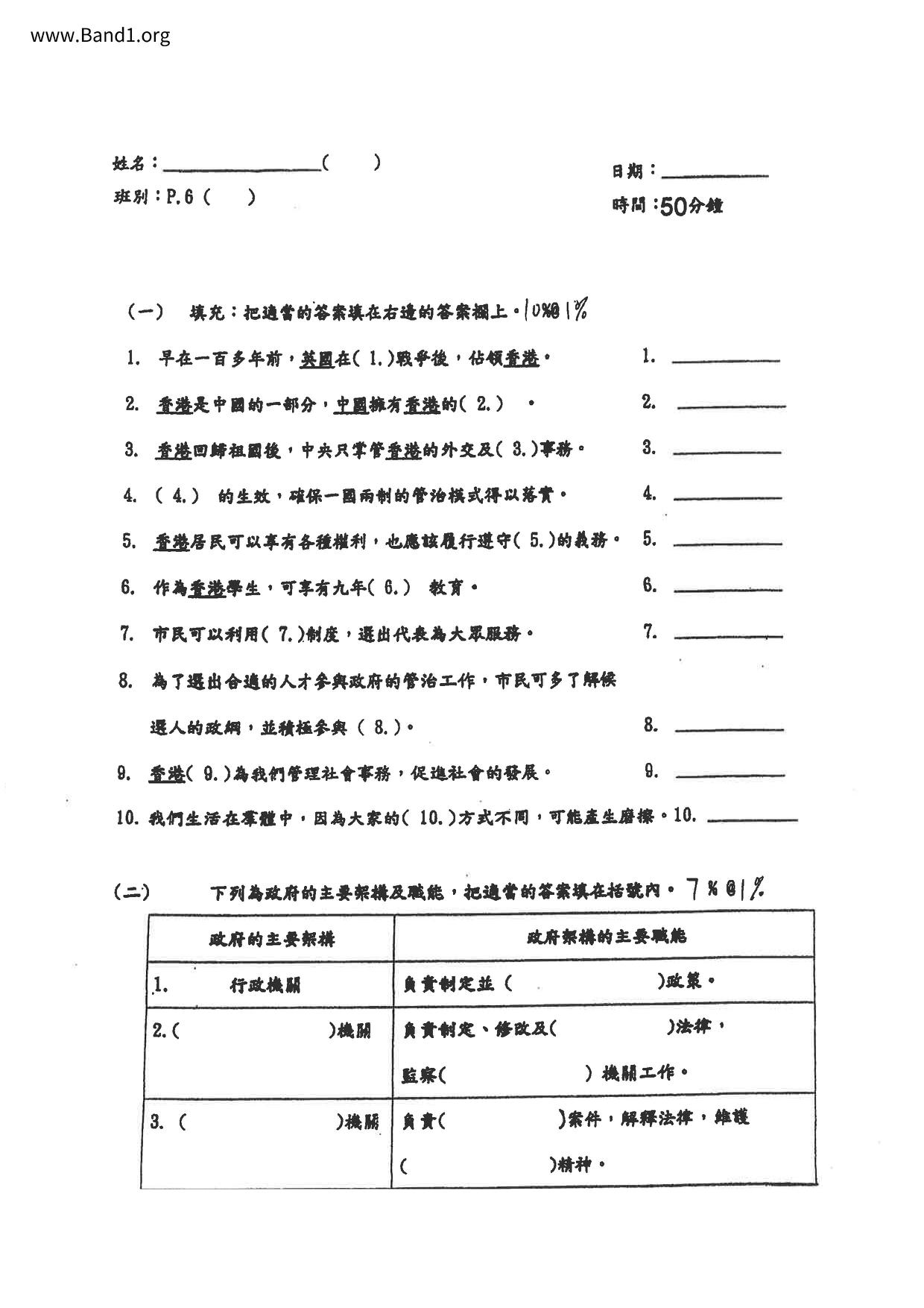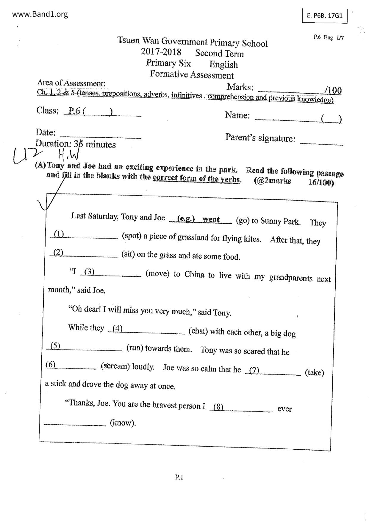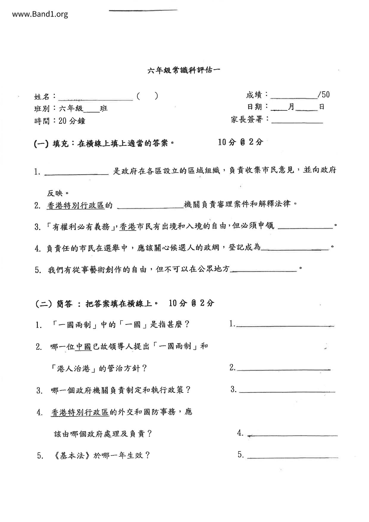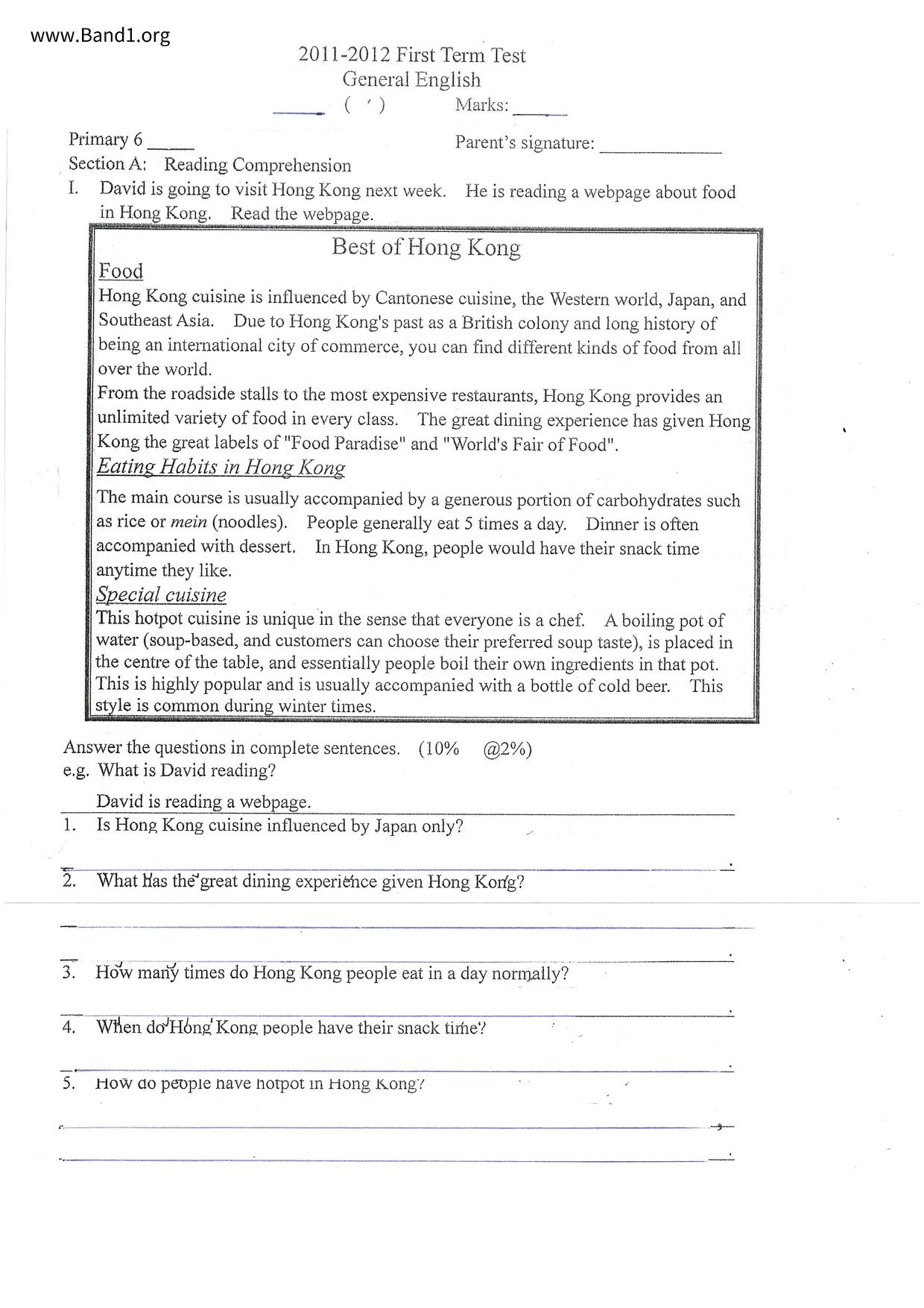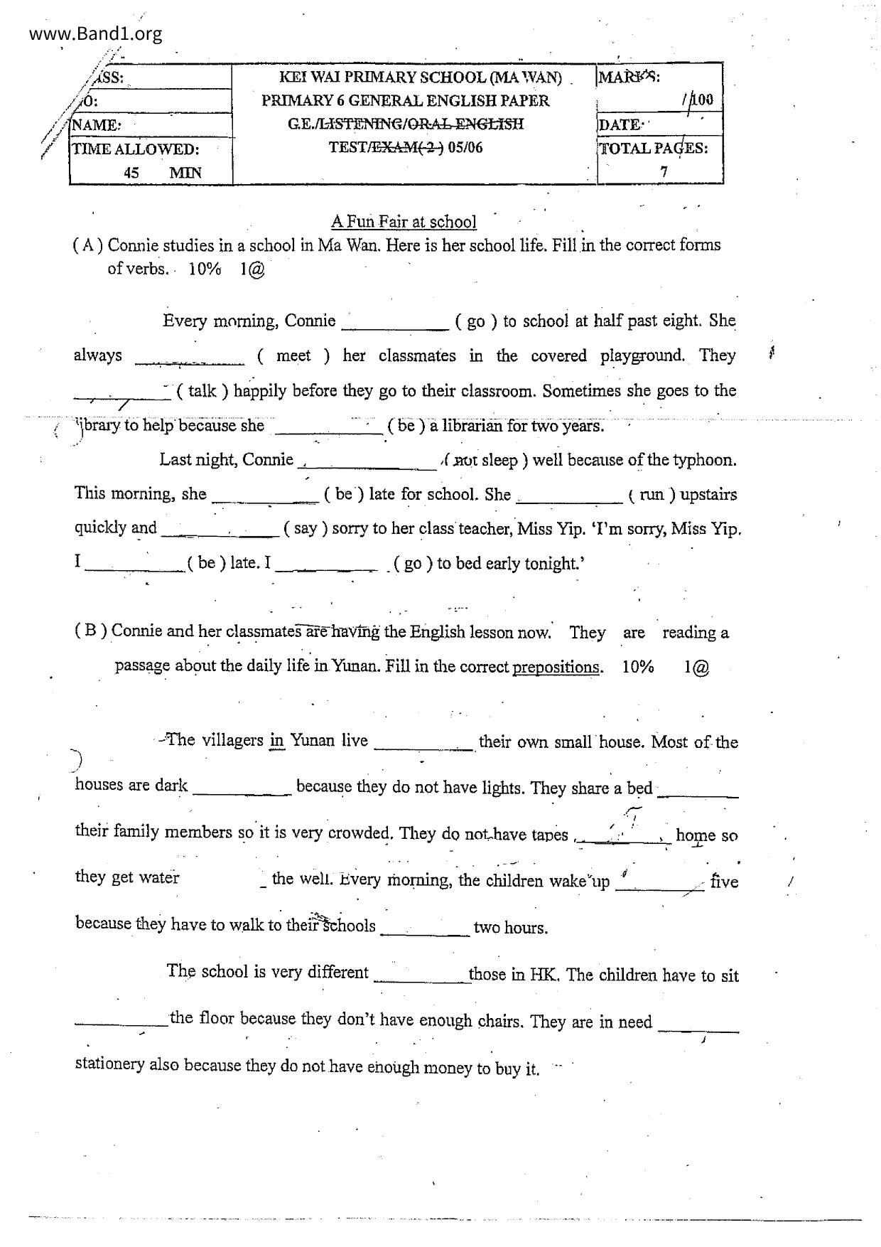 小六 英文 軒尼詩道官立小學(銅鑼灣)