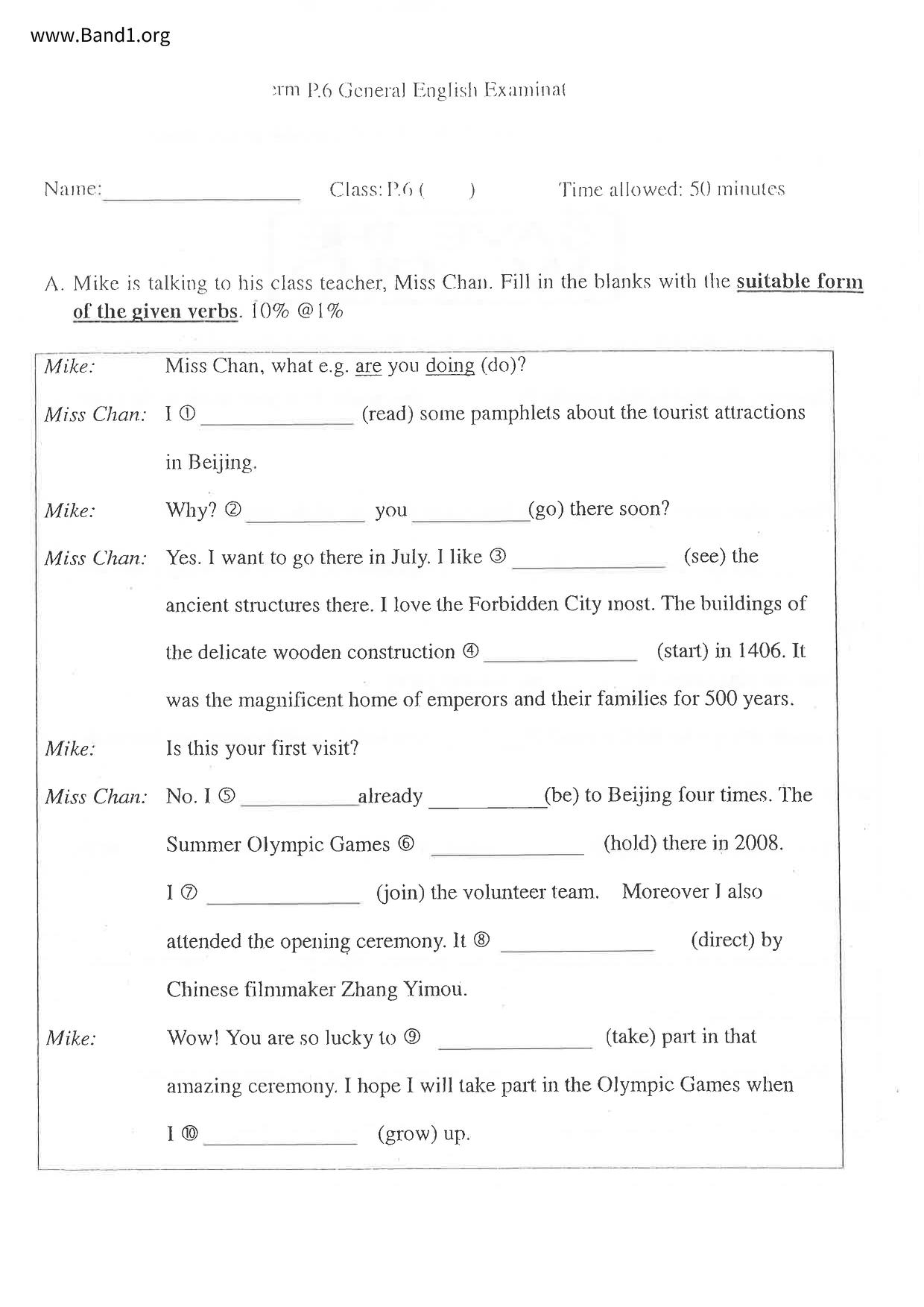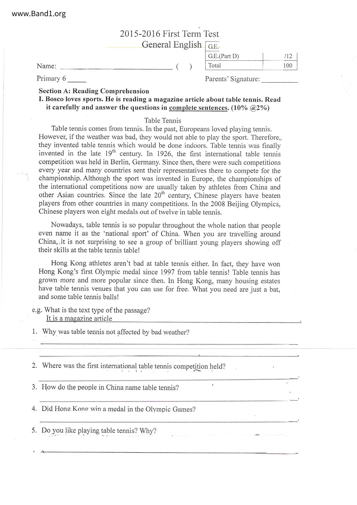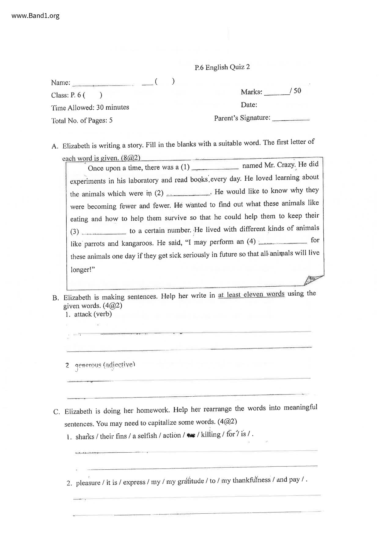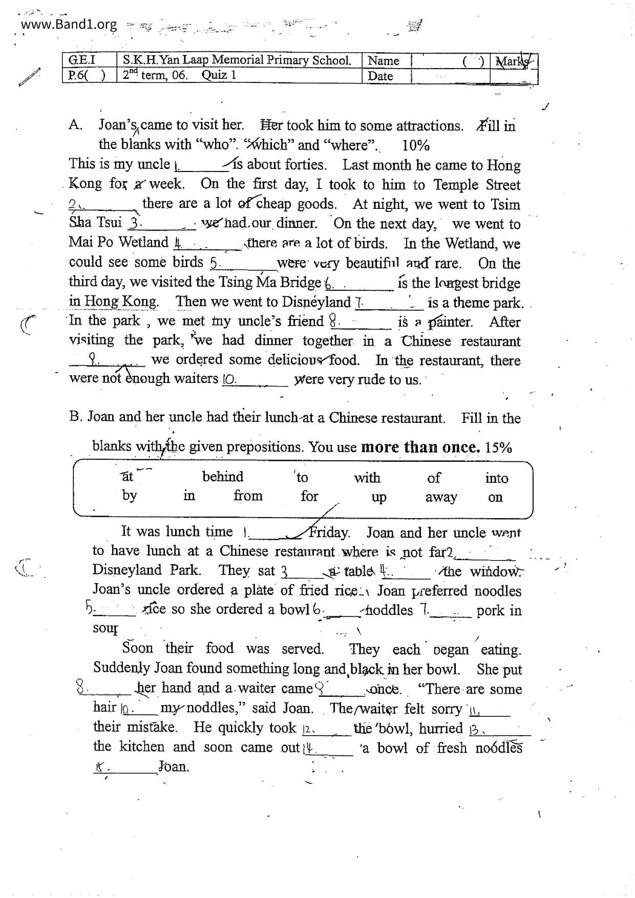 小六 英文 軒尼詩道官立小學(銅鑼灣)