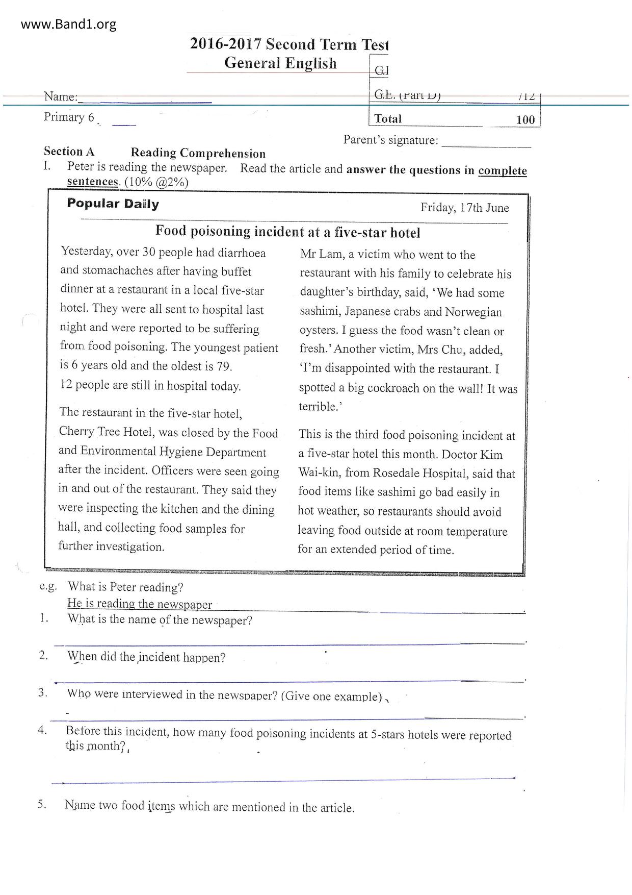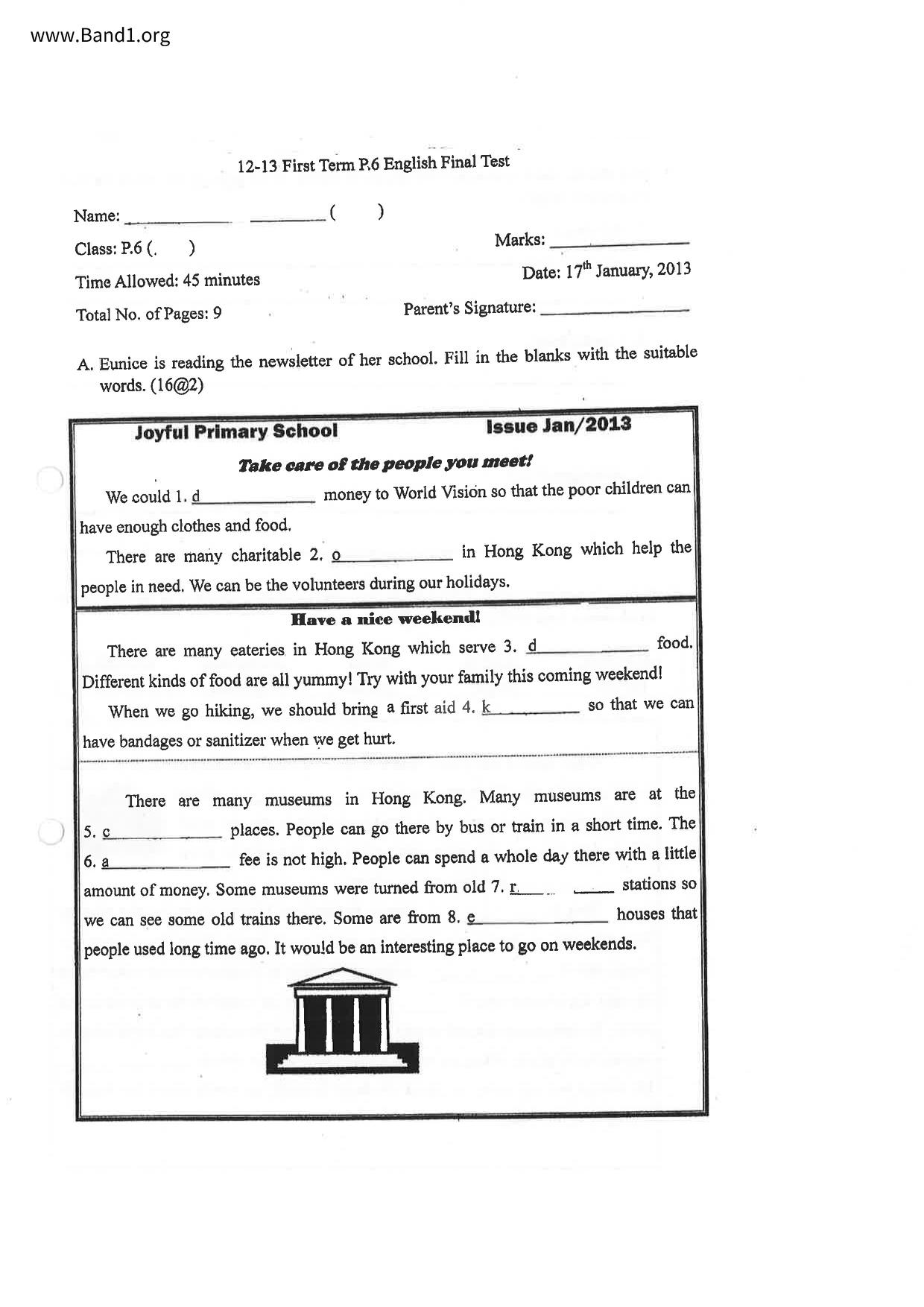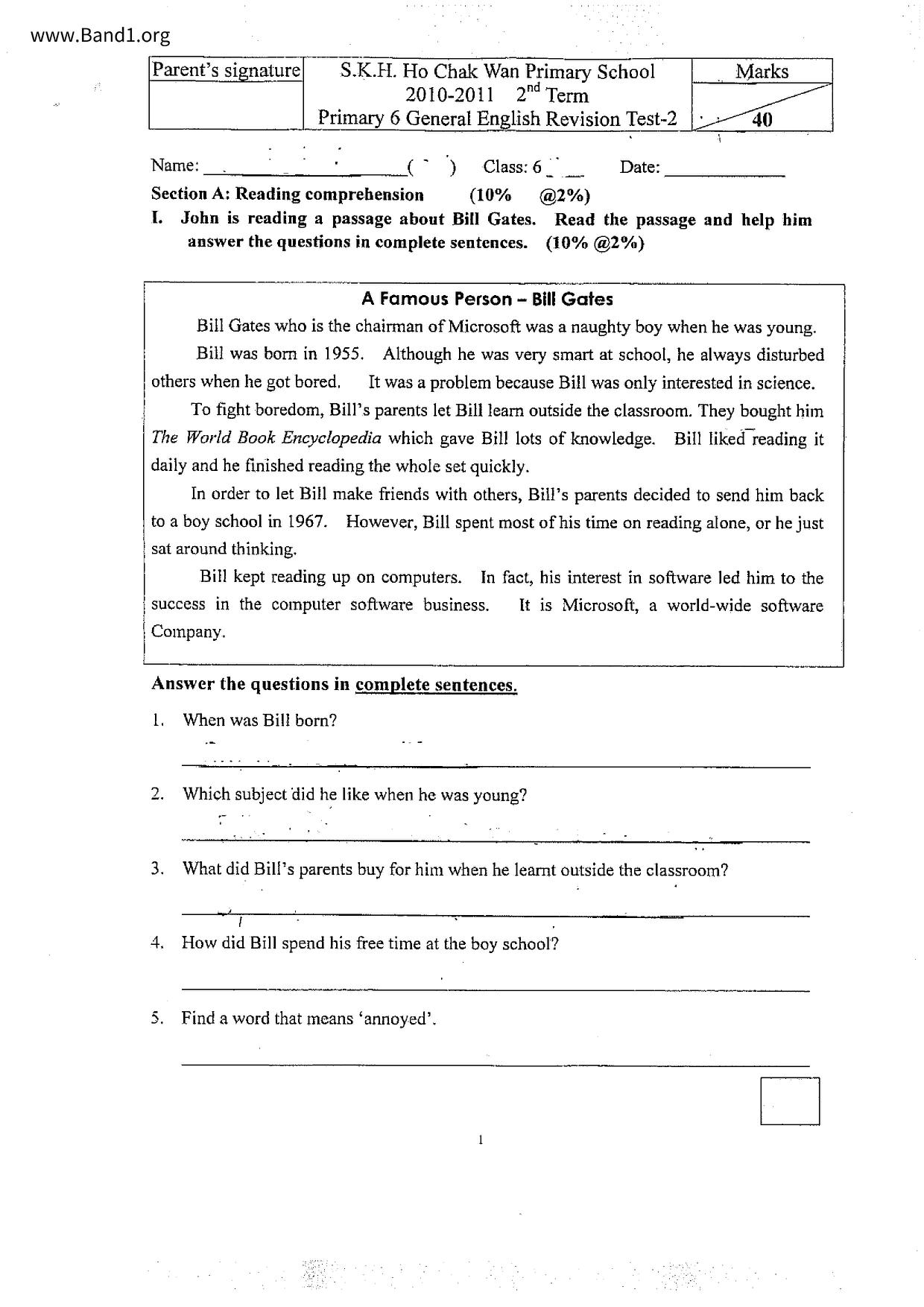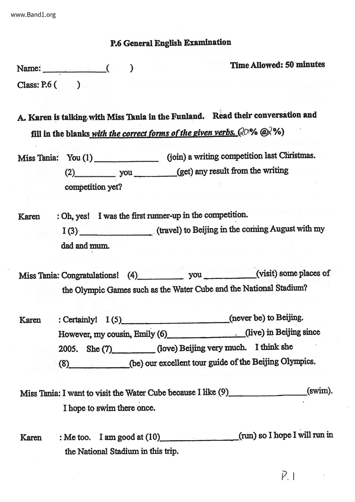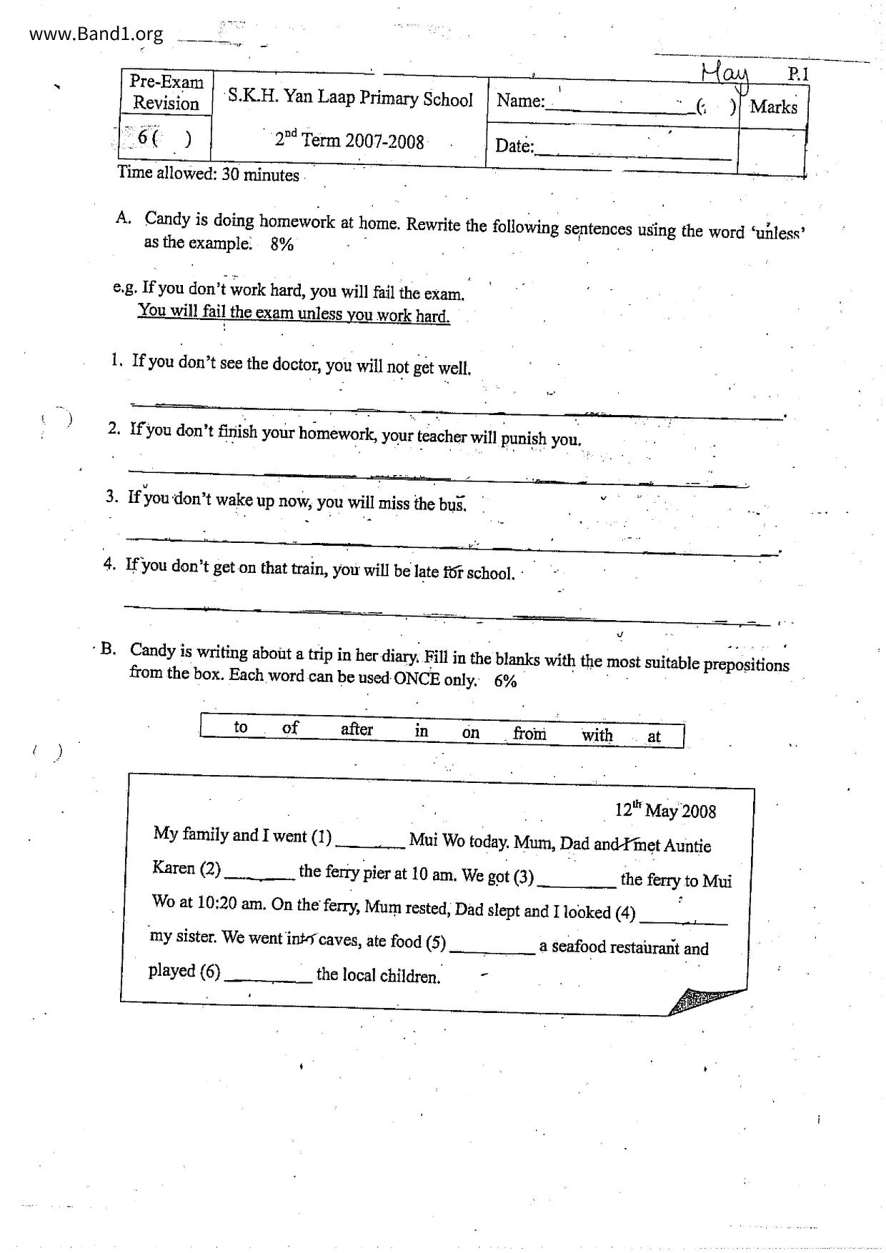 小六 英文 軒尼詩道官立小學(銅鑼灣)
