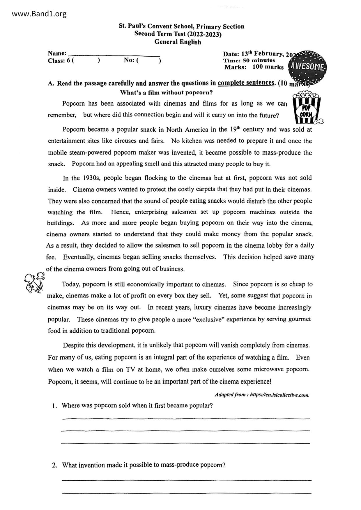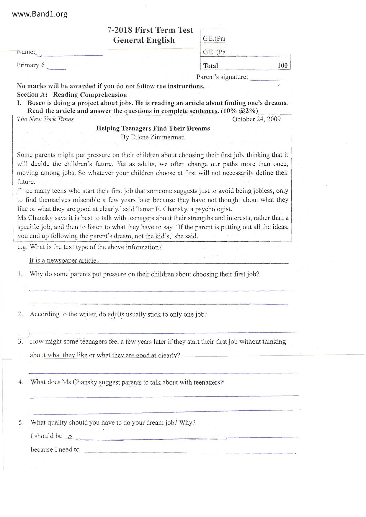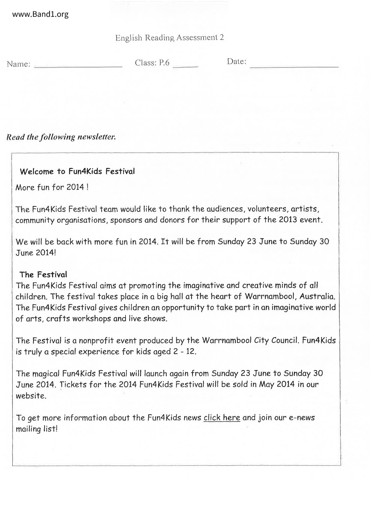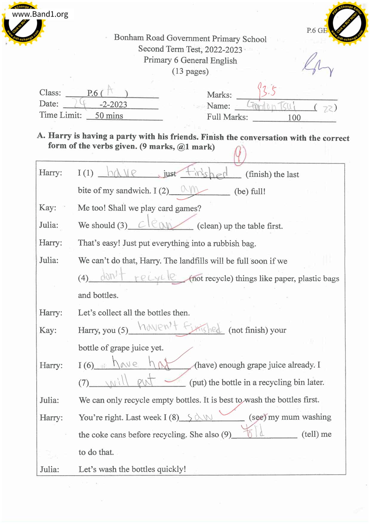 小六 英文 軒尼詩道官立小學(銅鑼灣)