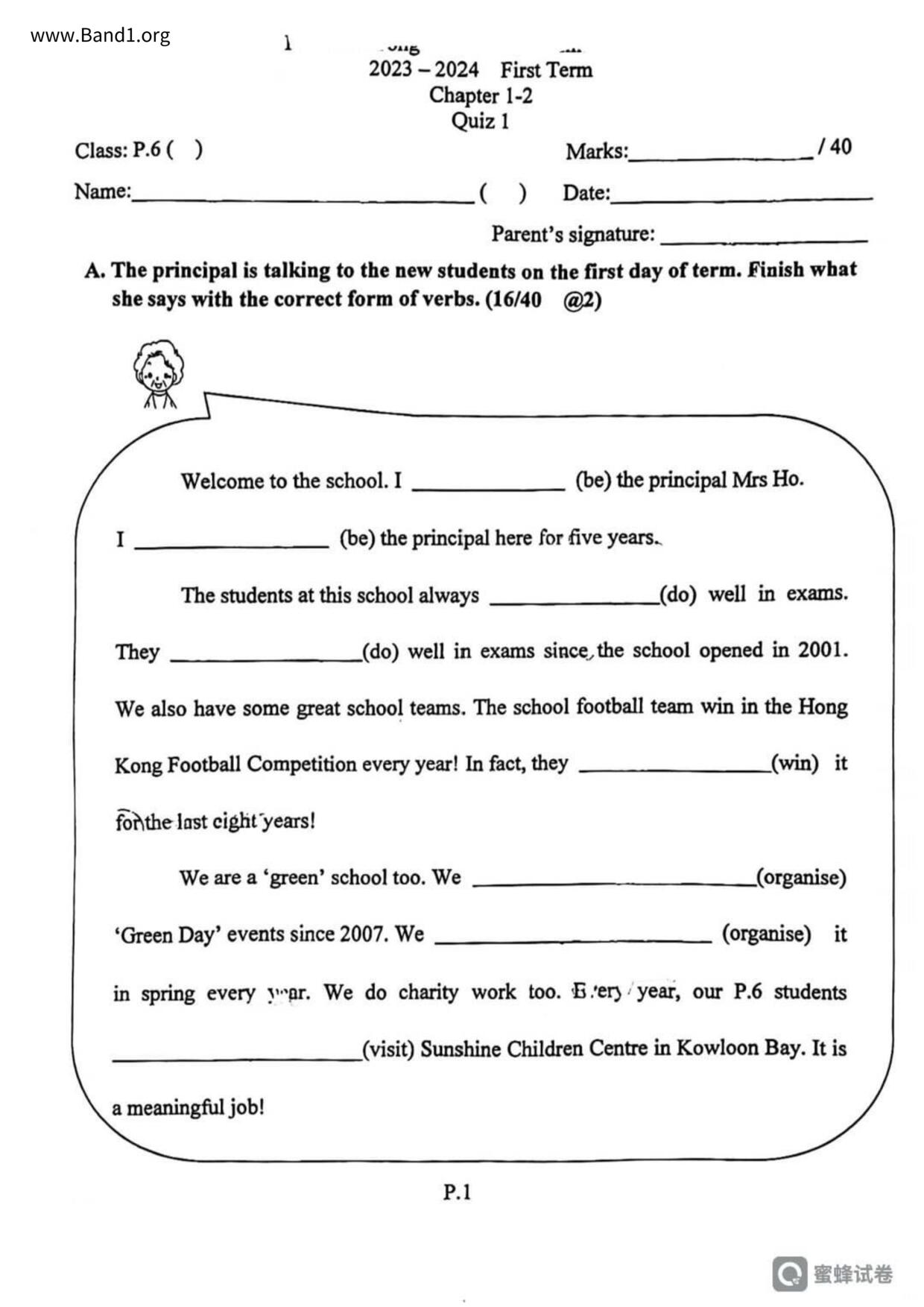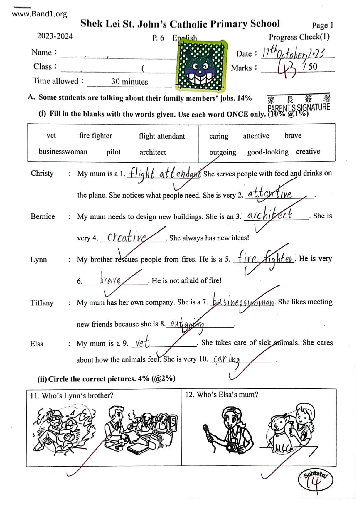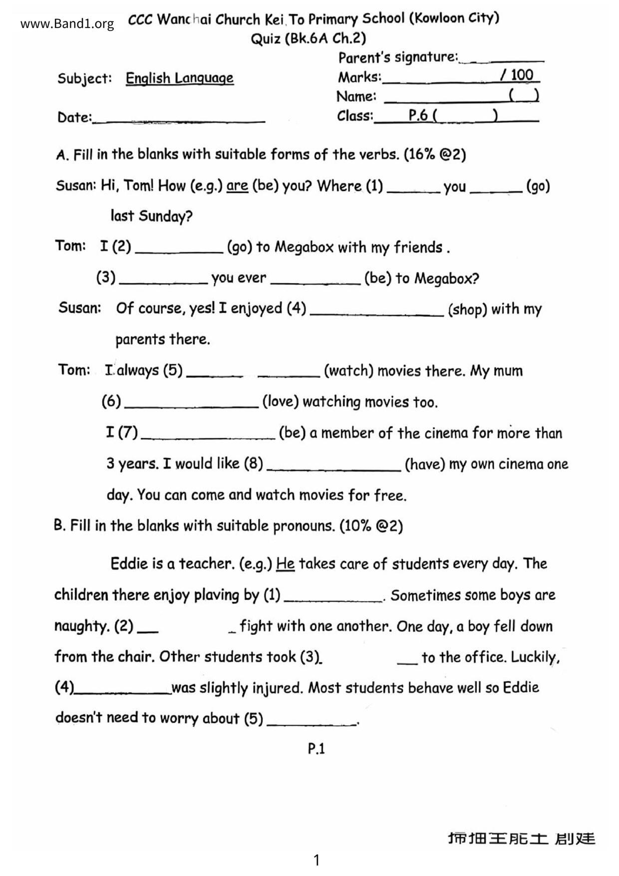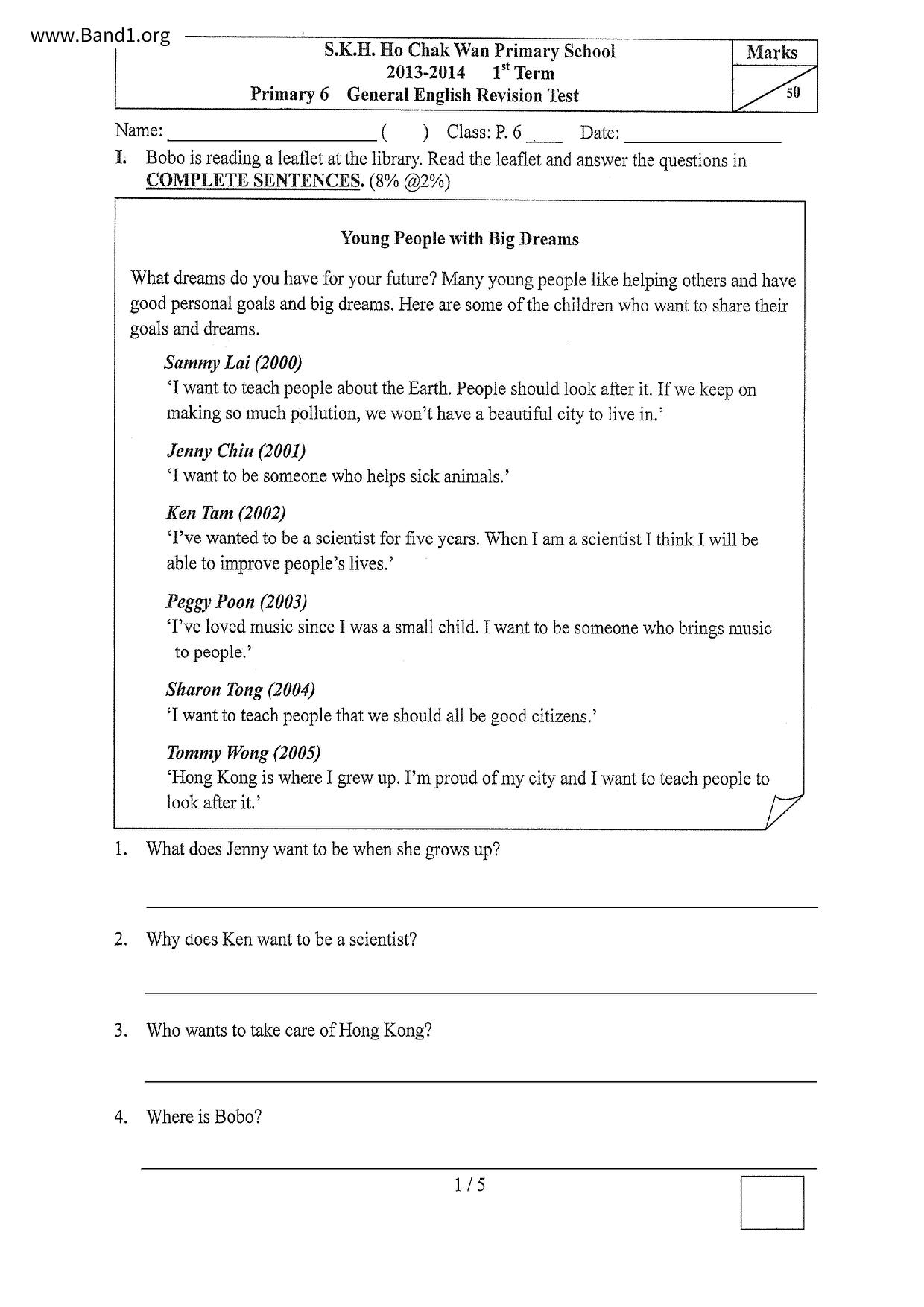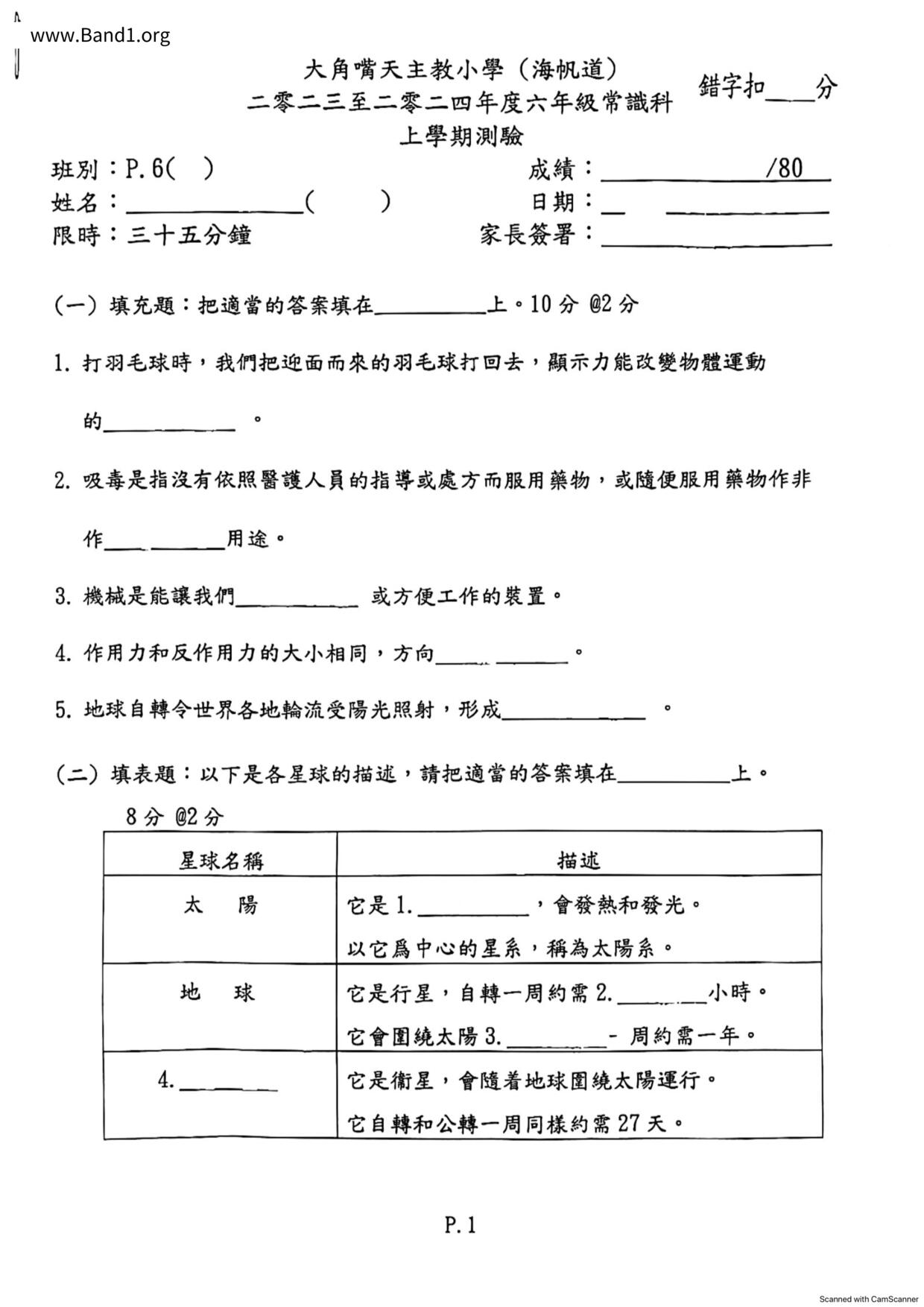 小六 英文 聖博德天主教小學(蒲崗村道)