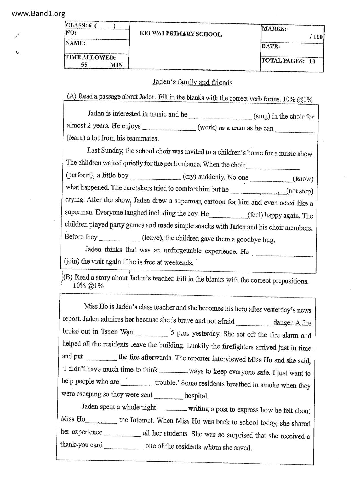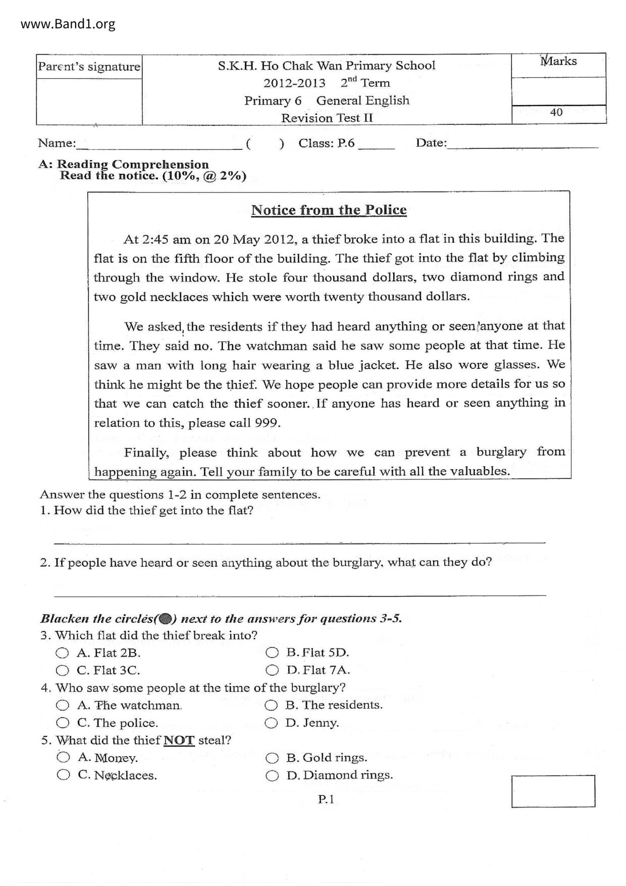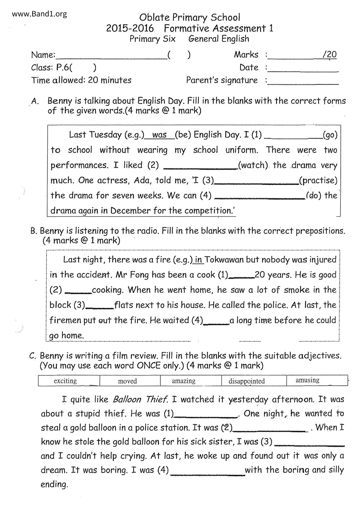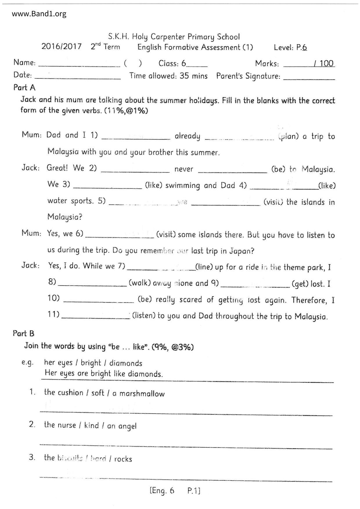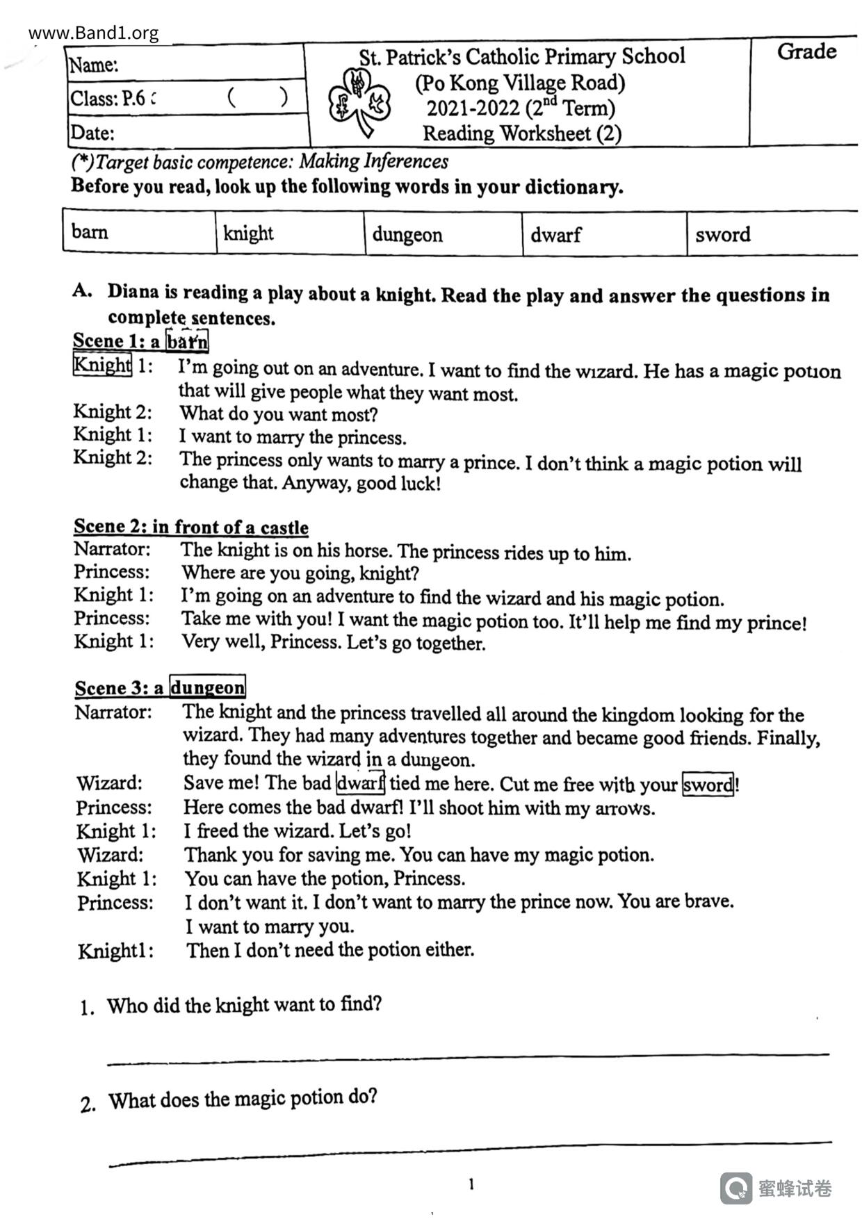小六 英文 聖博德天主教小學(蒲崗村道)