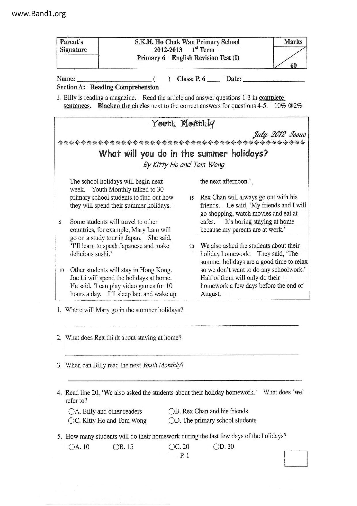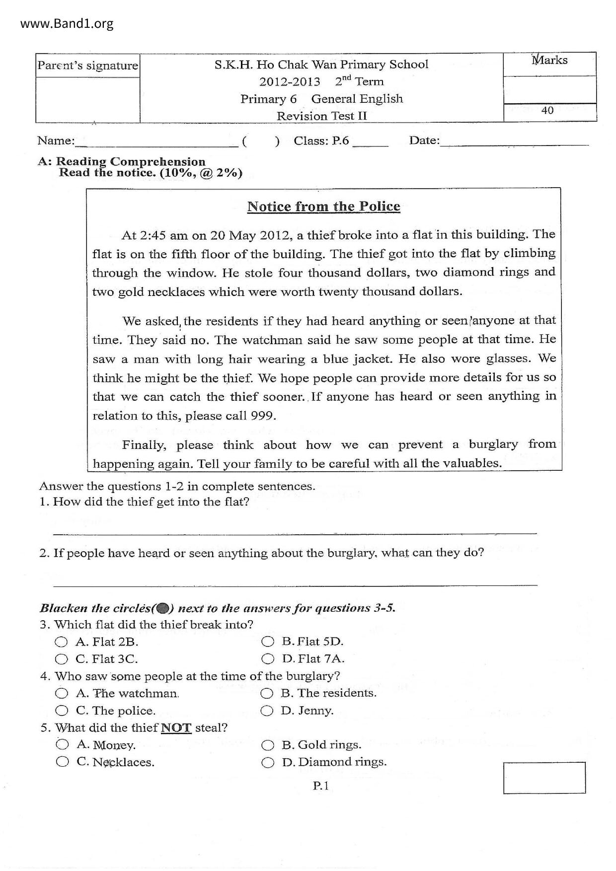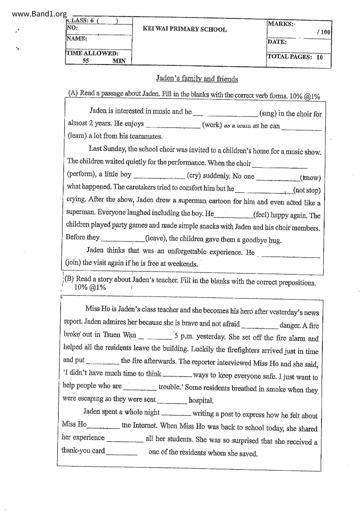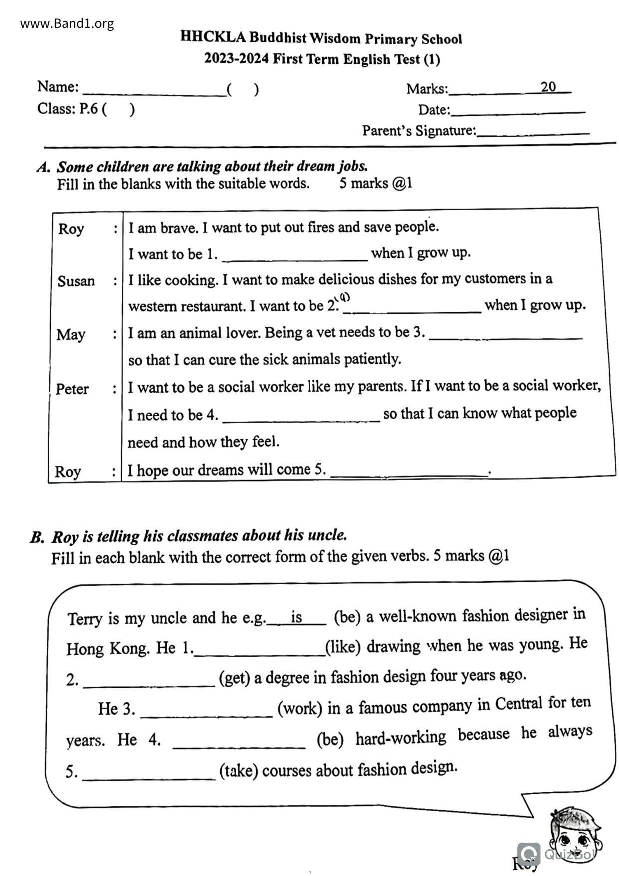 小六 英文 聖博德天主教小學(蒲崗村道)