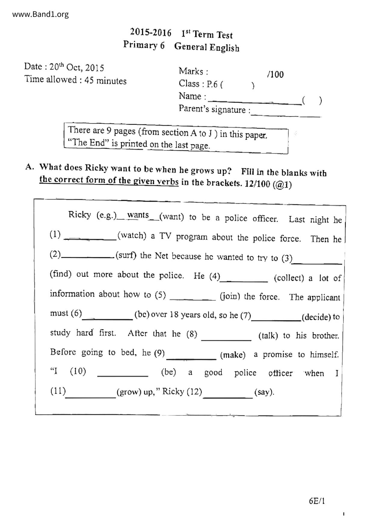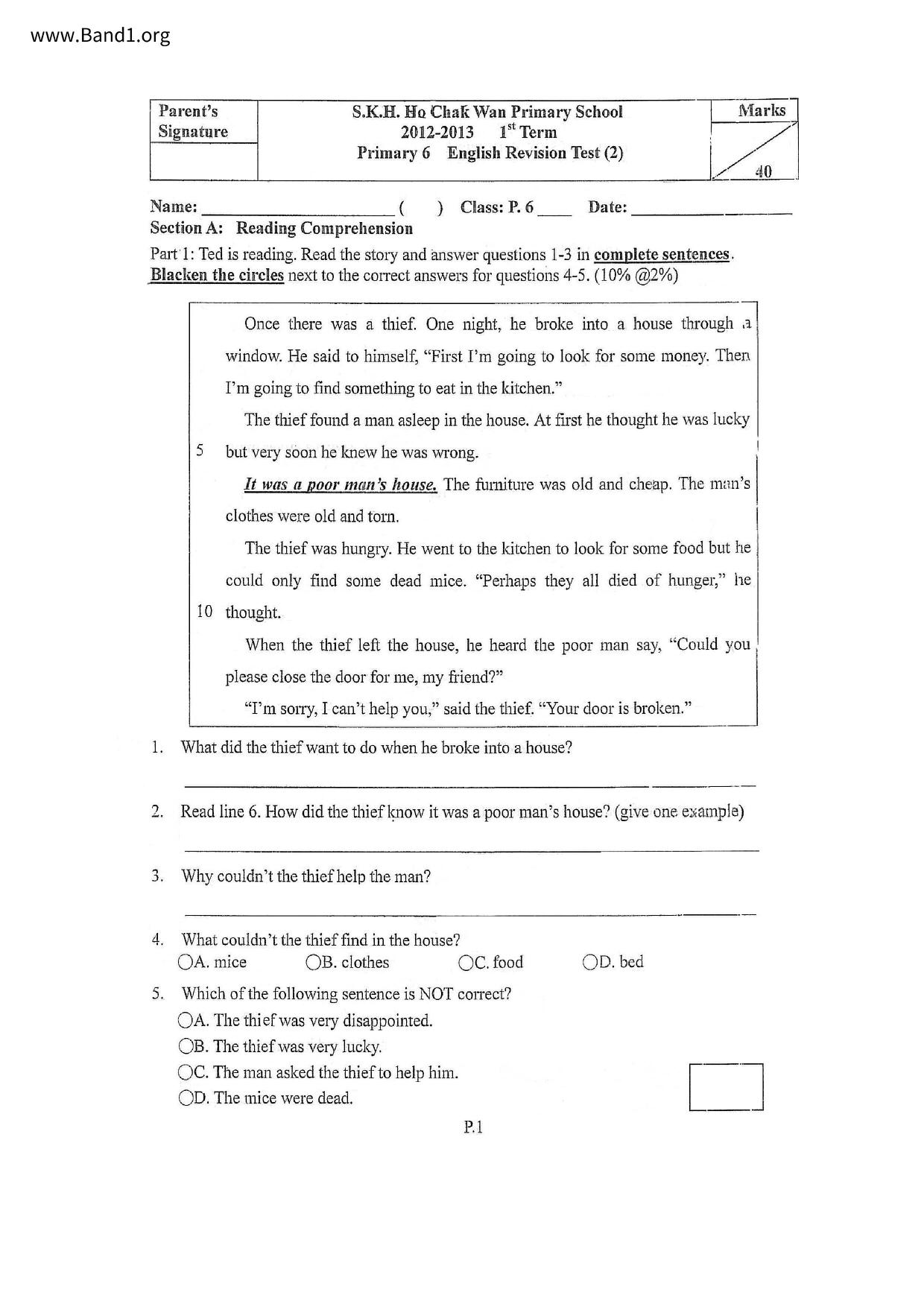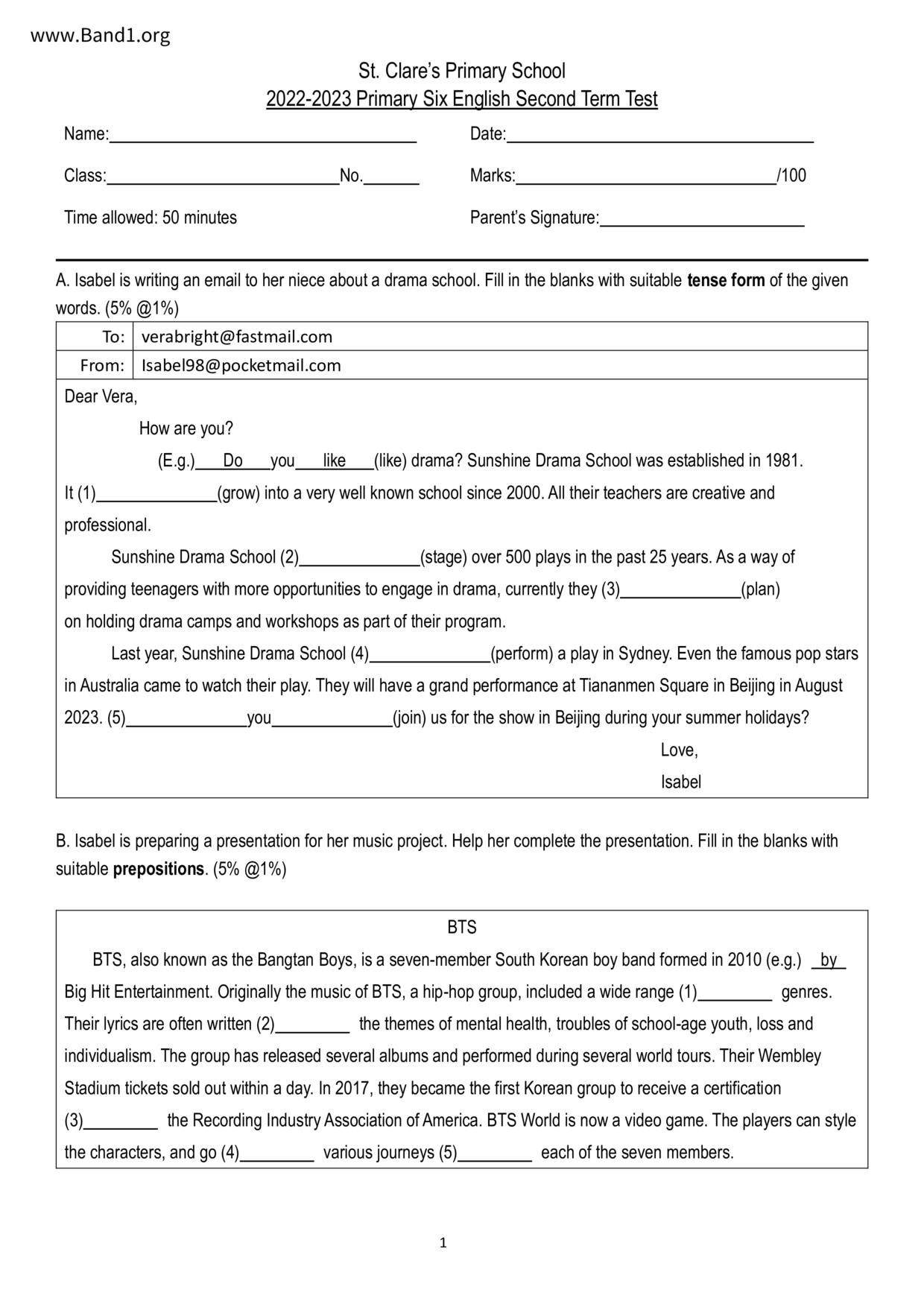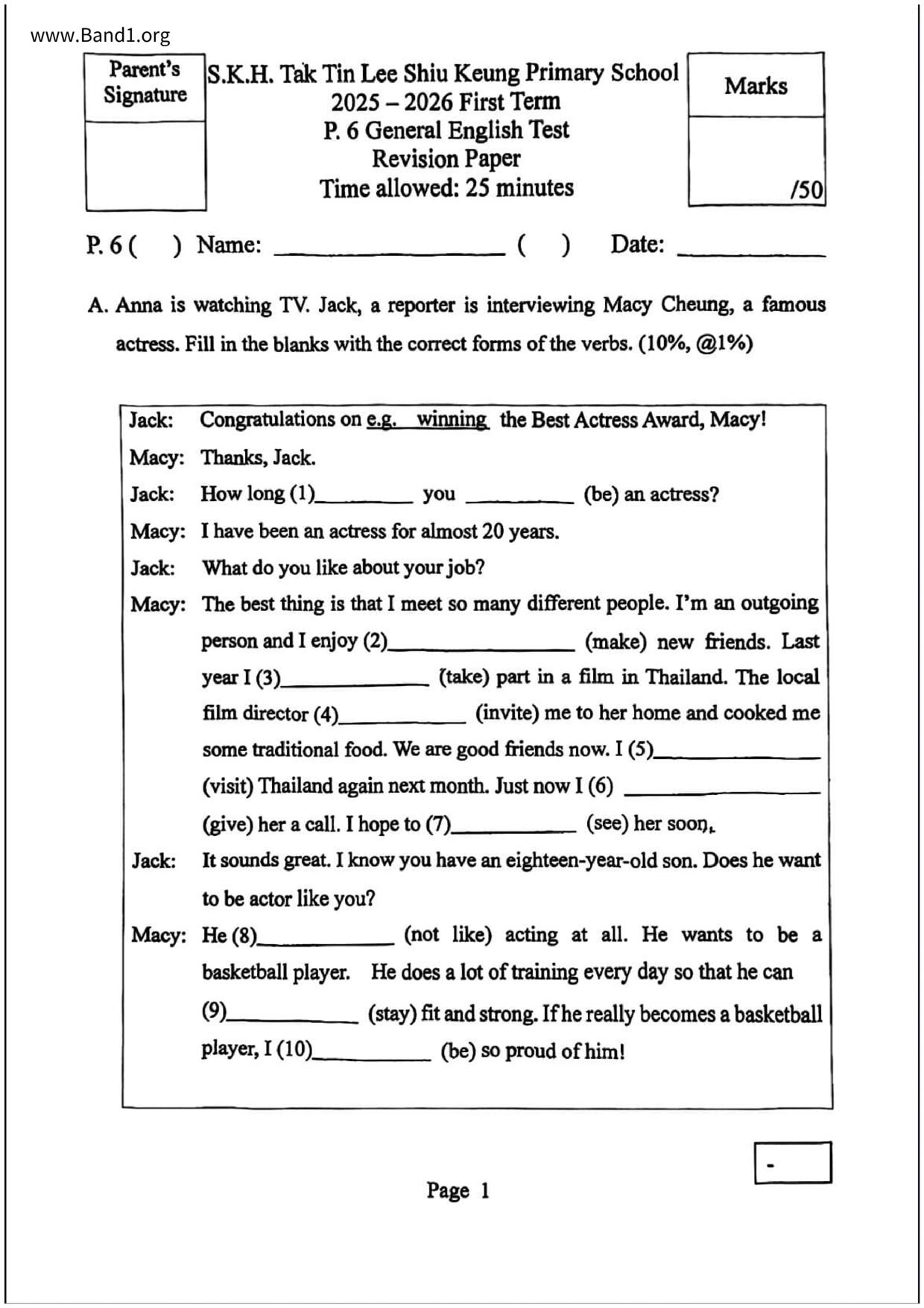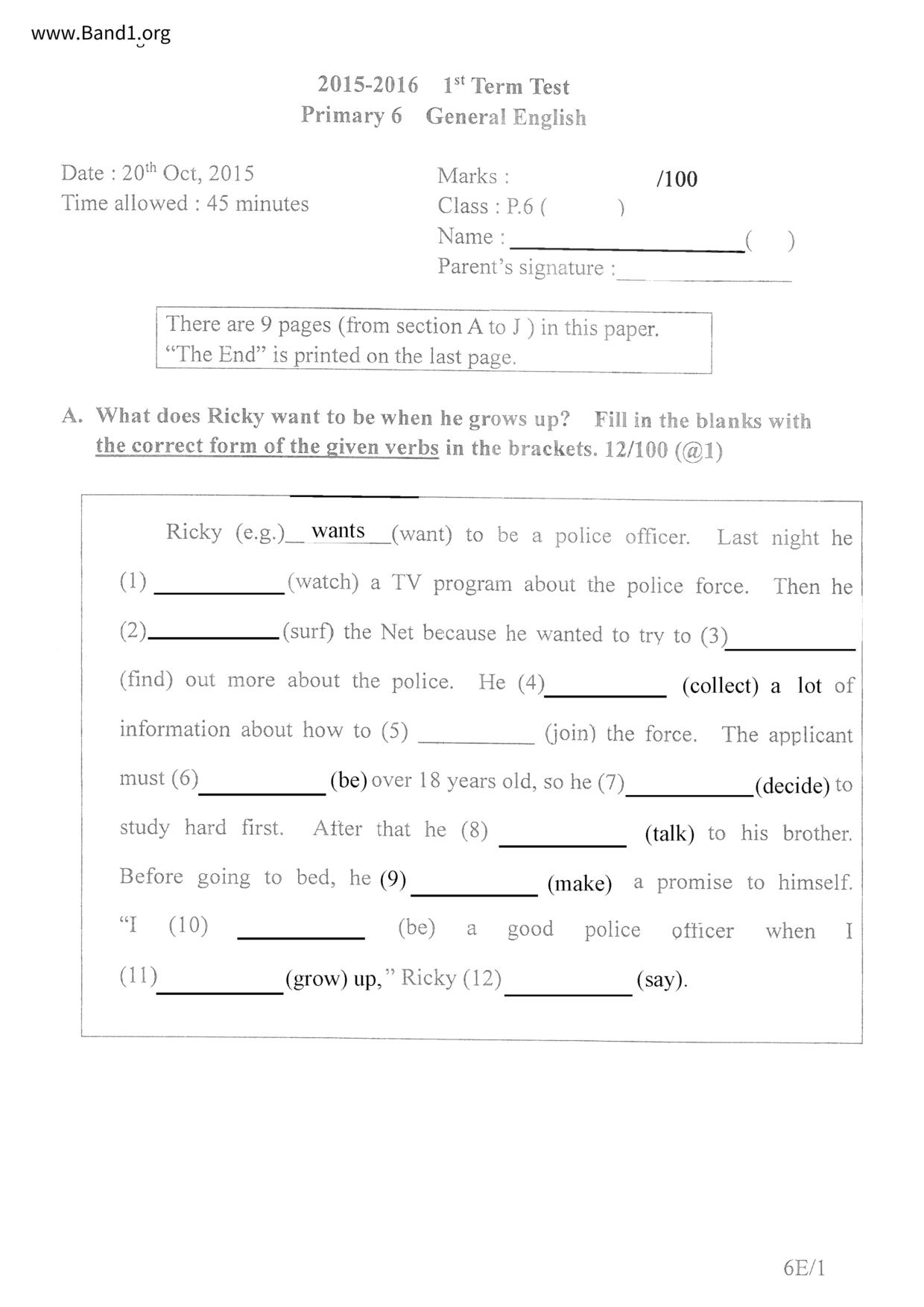 小六 英文 聖博德天主教小學(蒲崗村道)