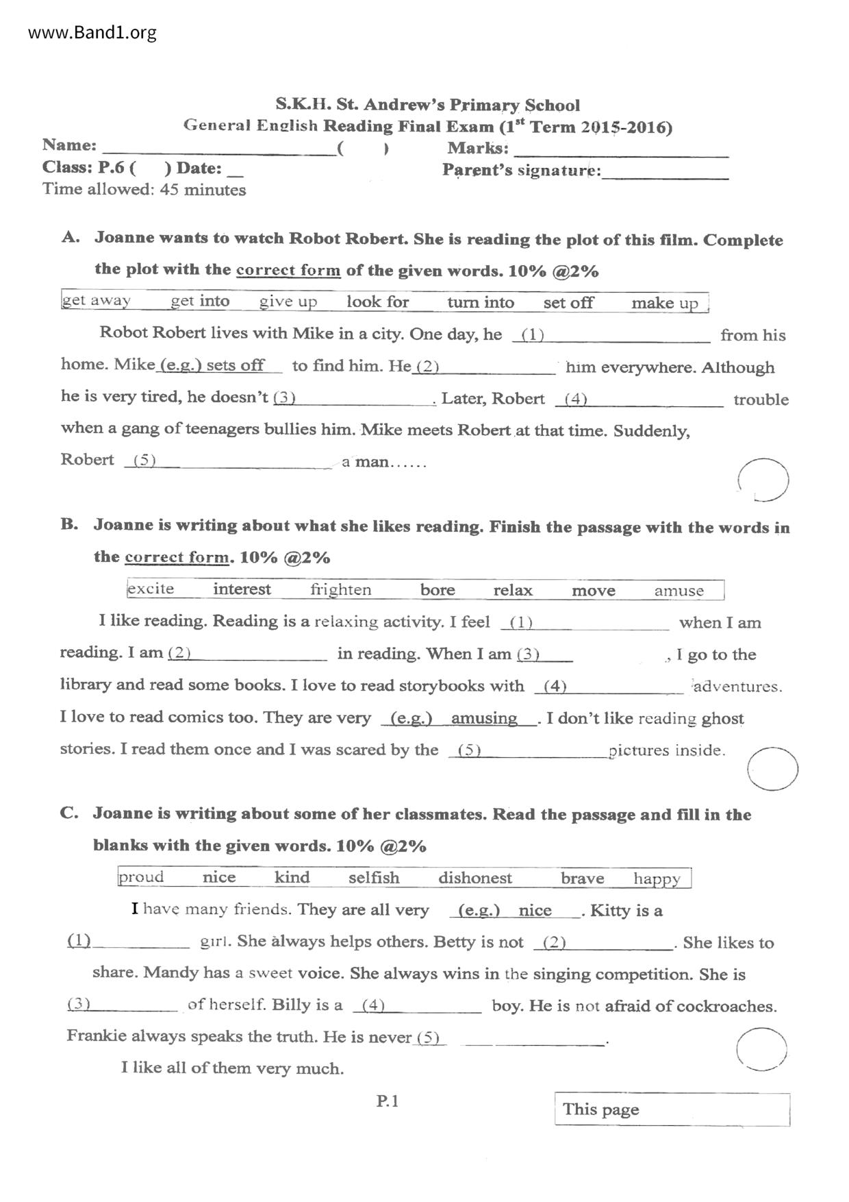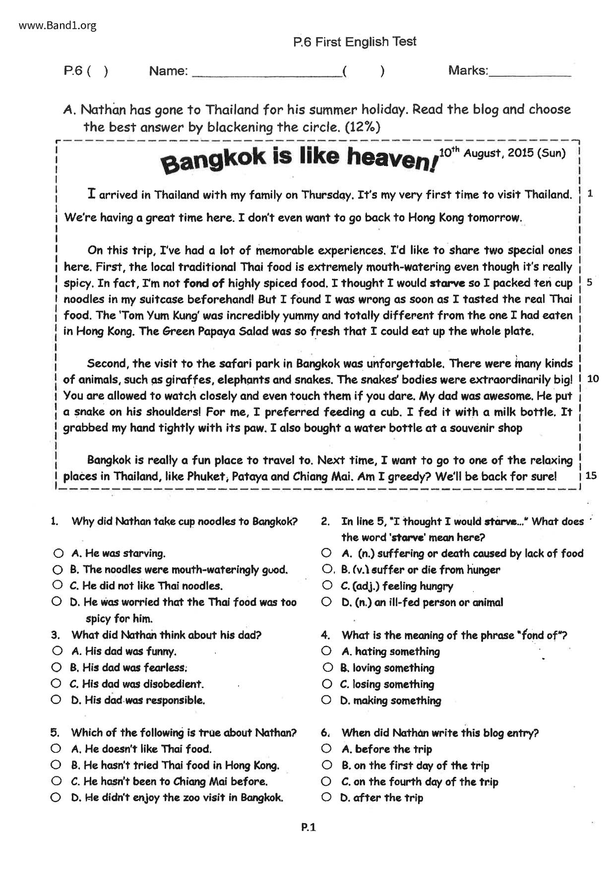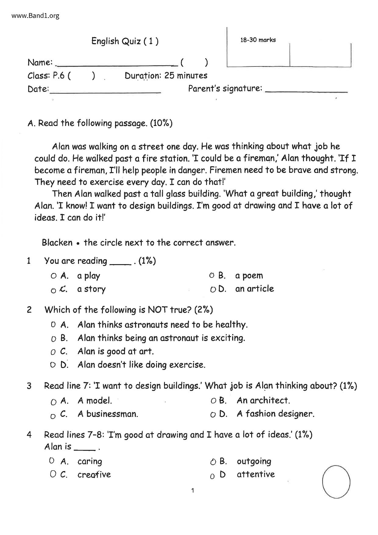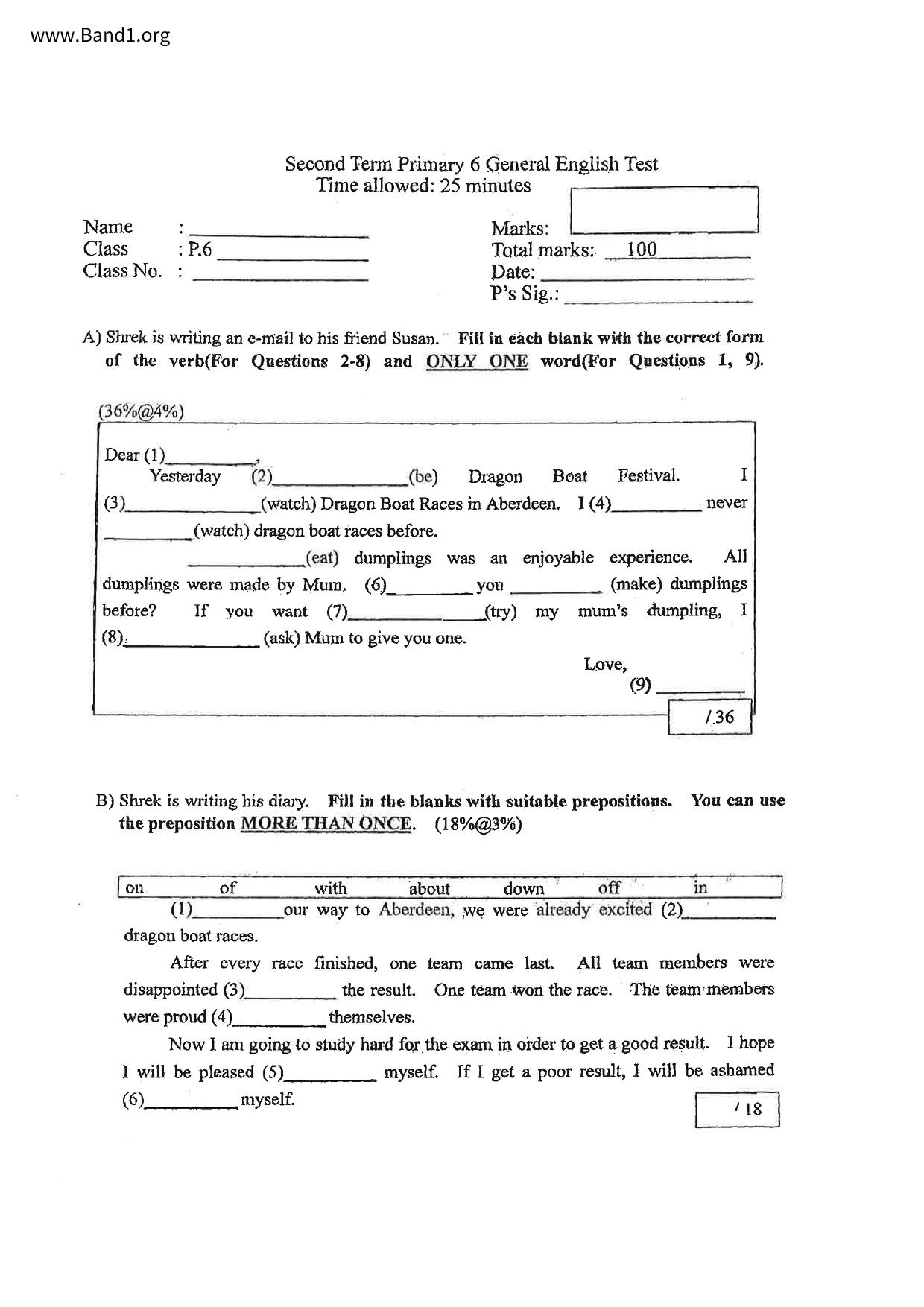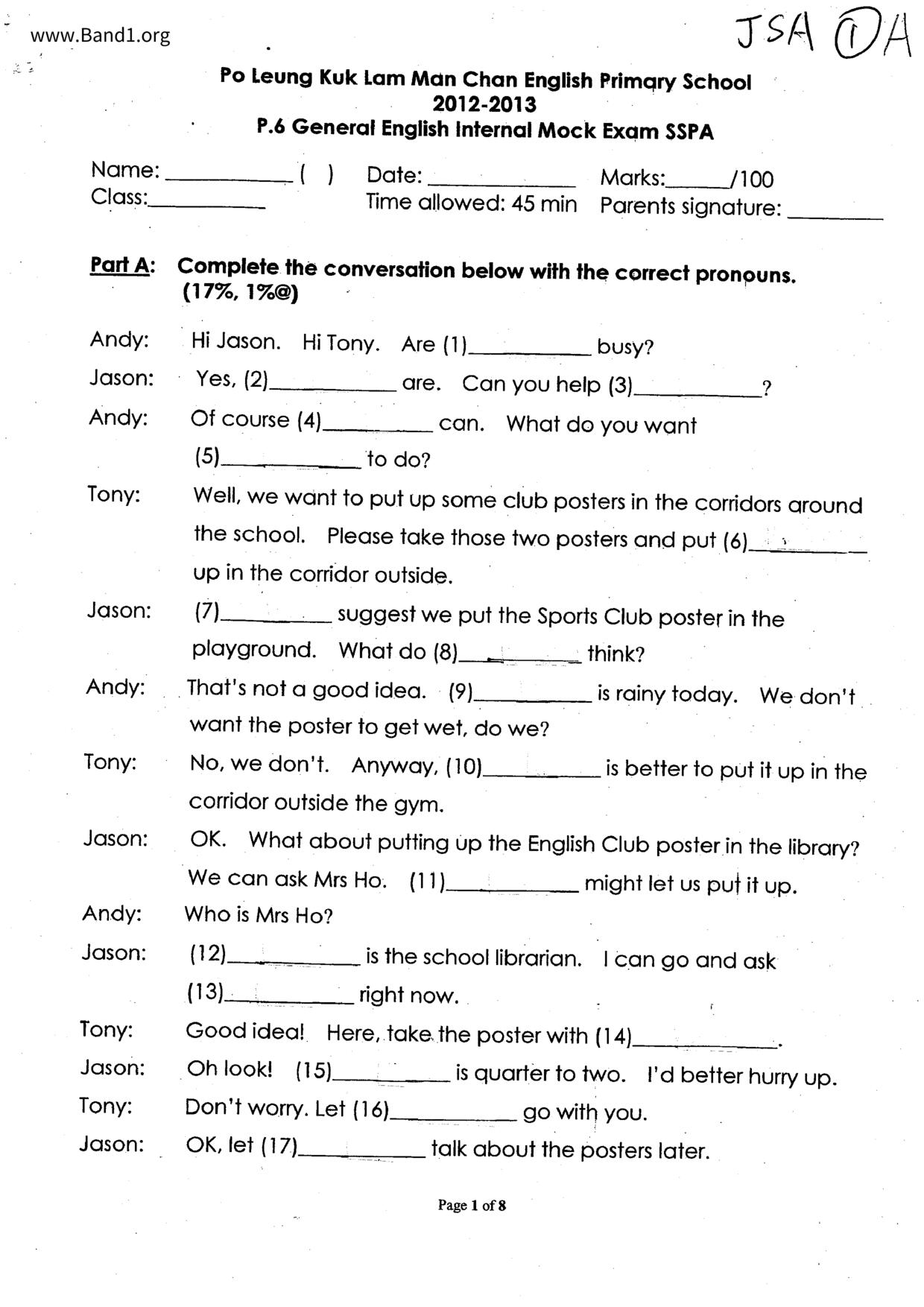小六 英文 聖博德天主教小學(蒲崗村道)