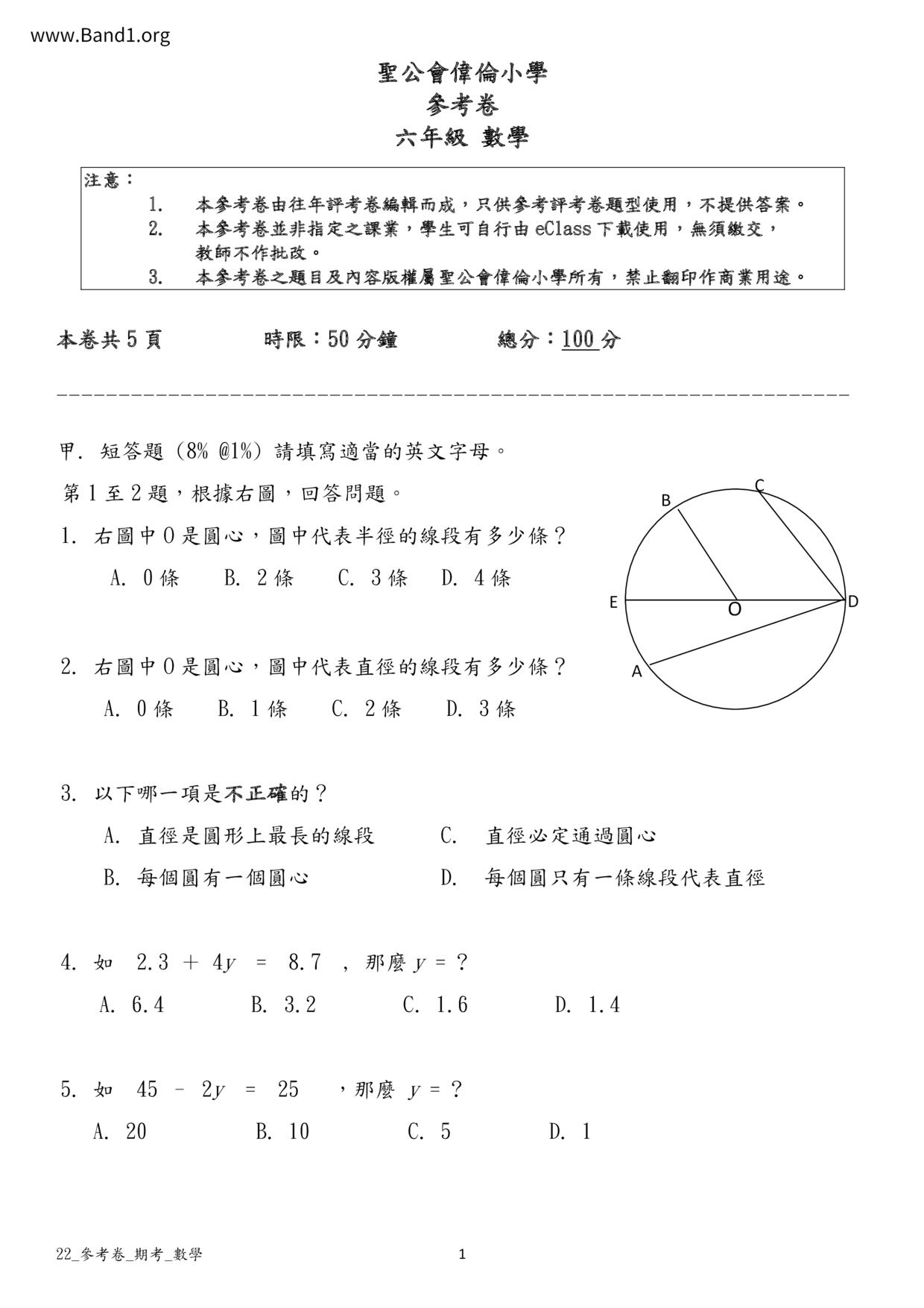 小六 數學 九龍城浸信會禧年(恩平)小學