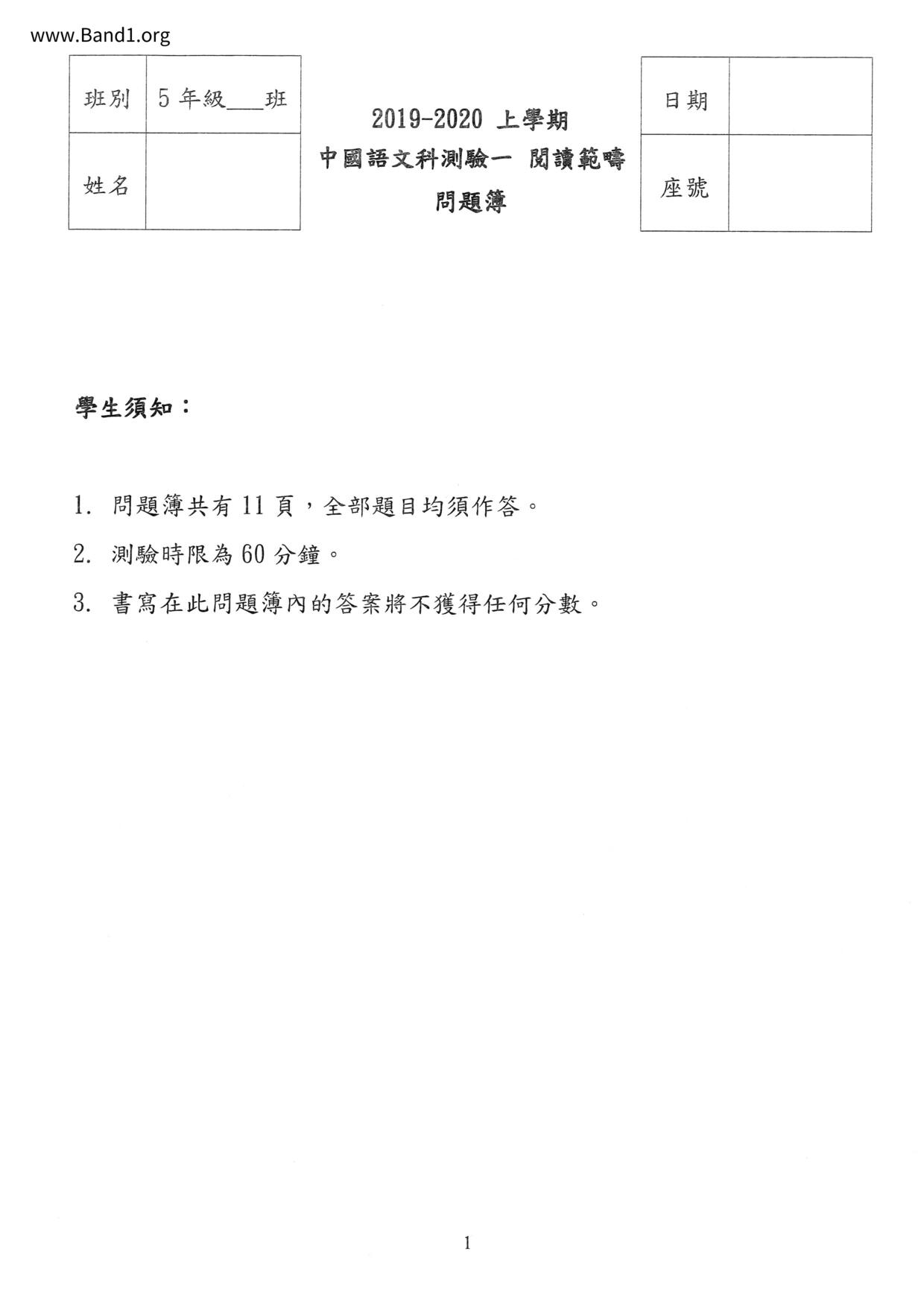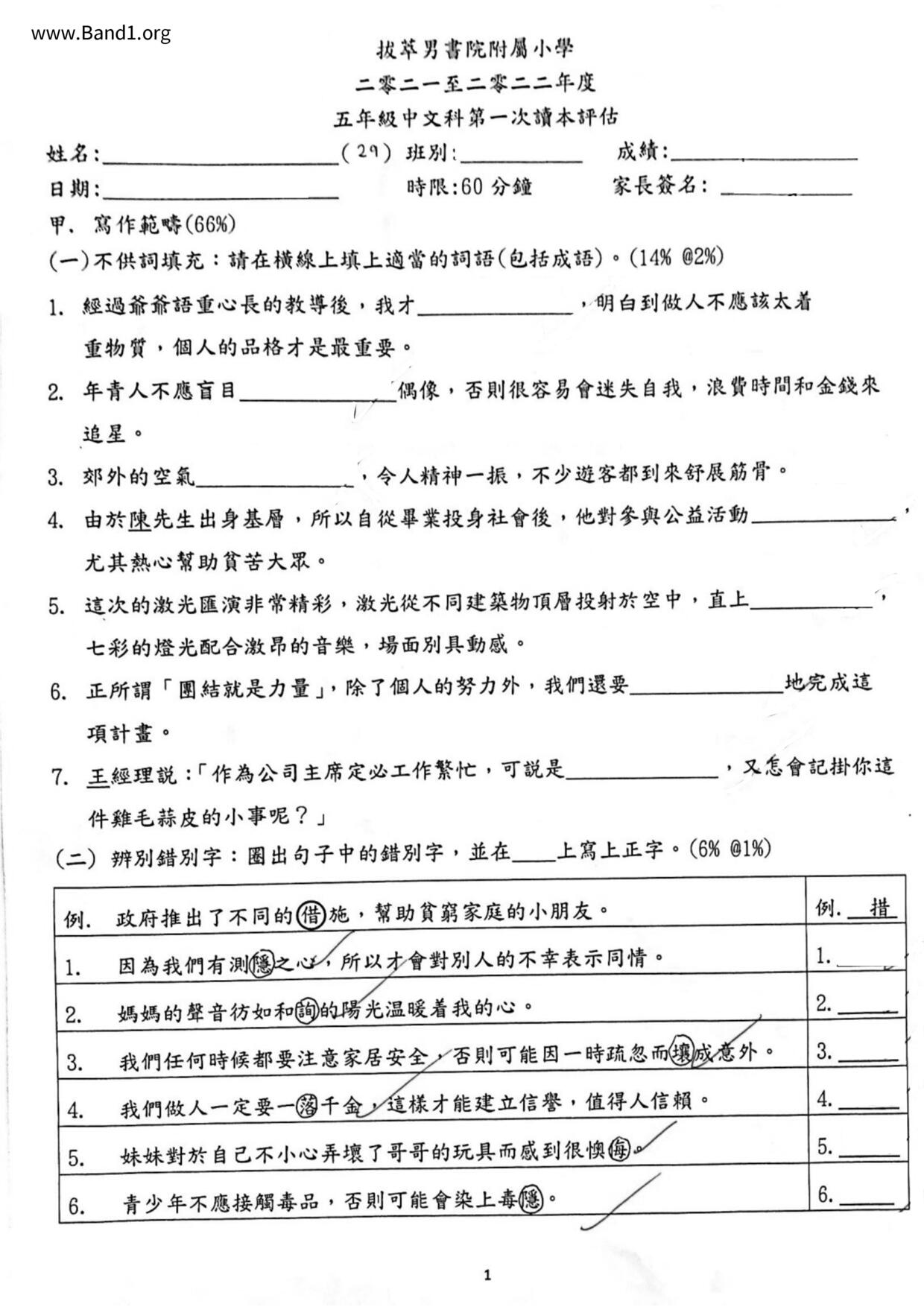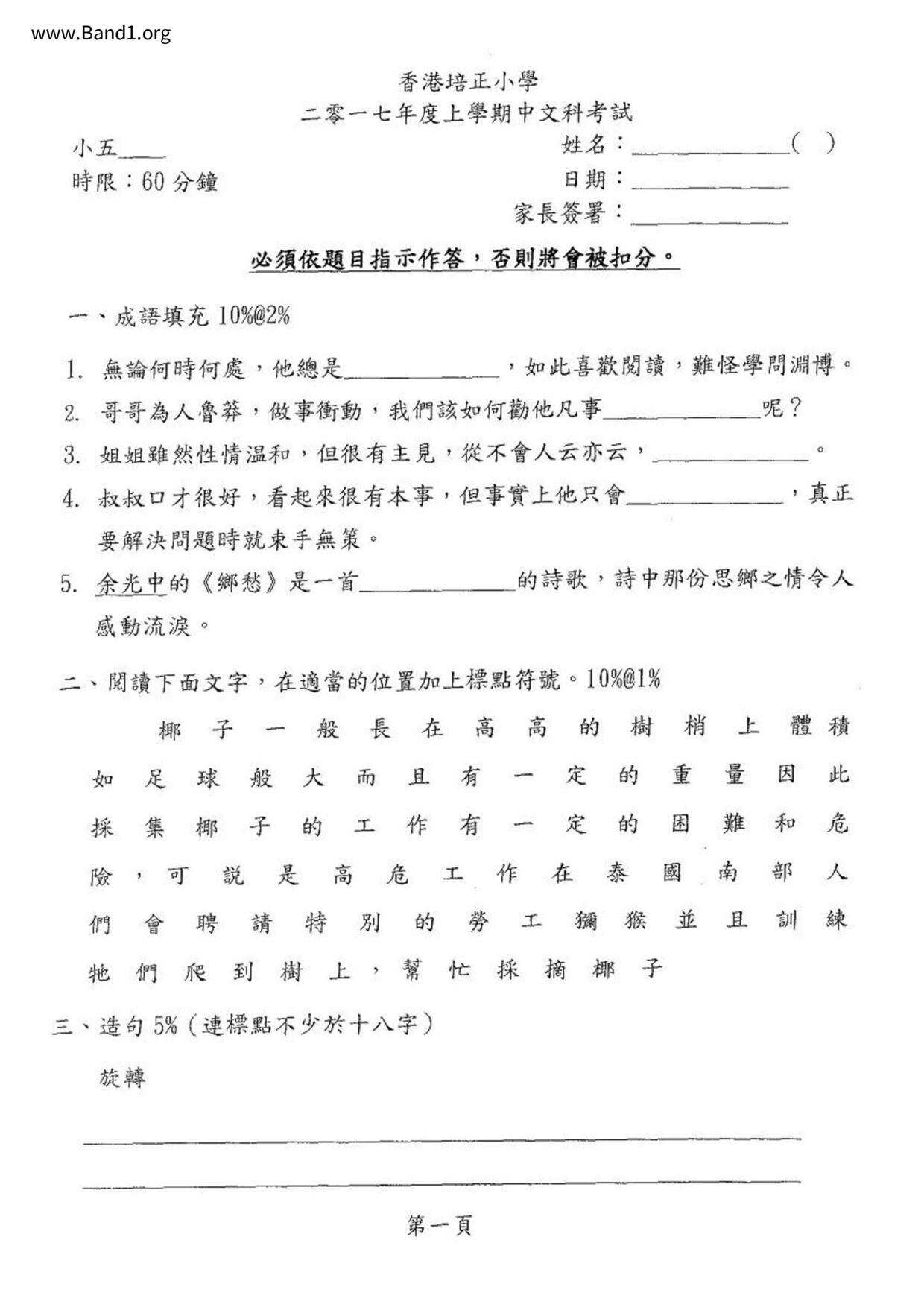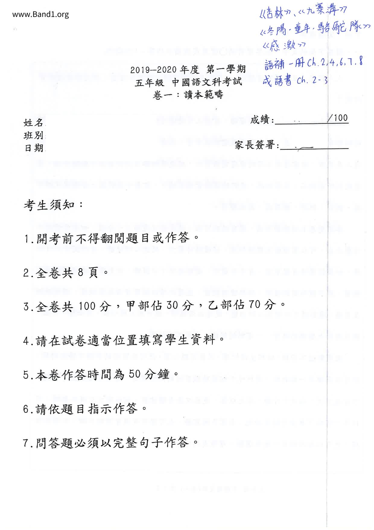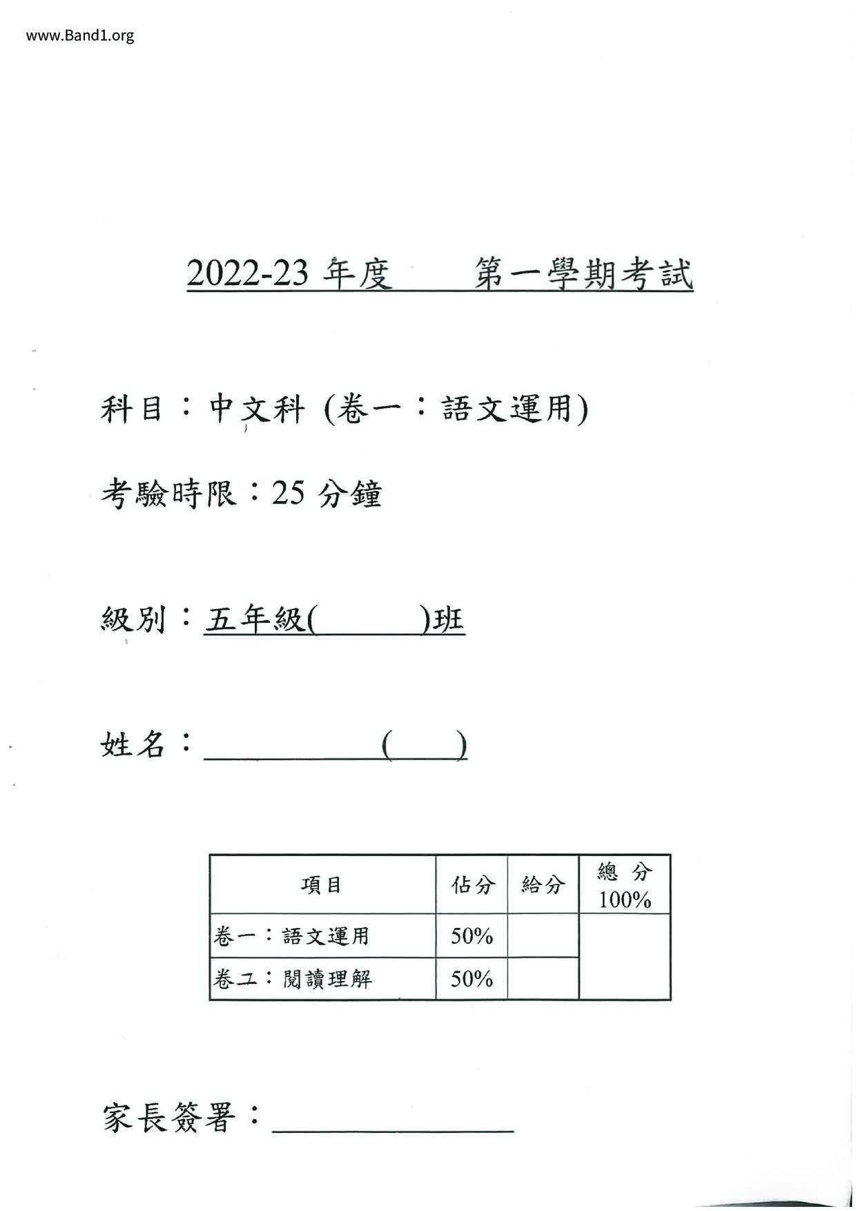 香港 中小學 中文 (HK Chinese) 試卷 pdf