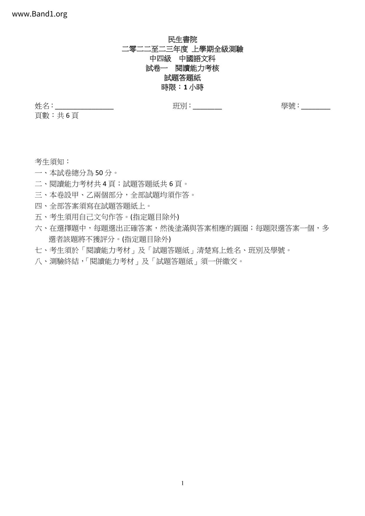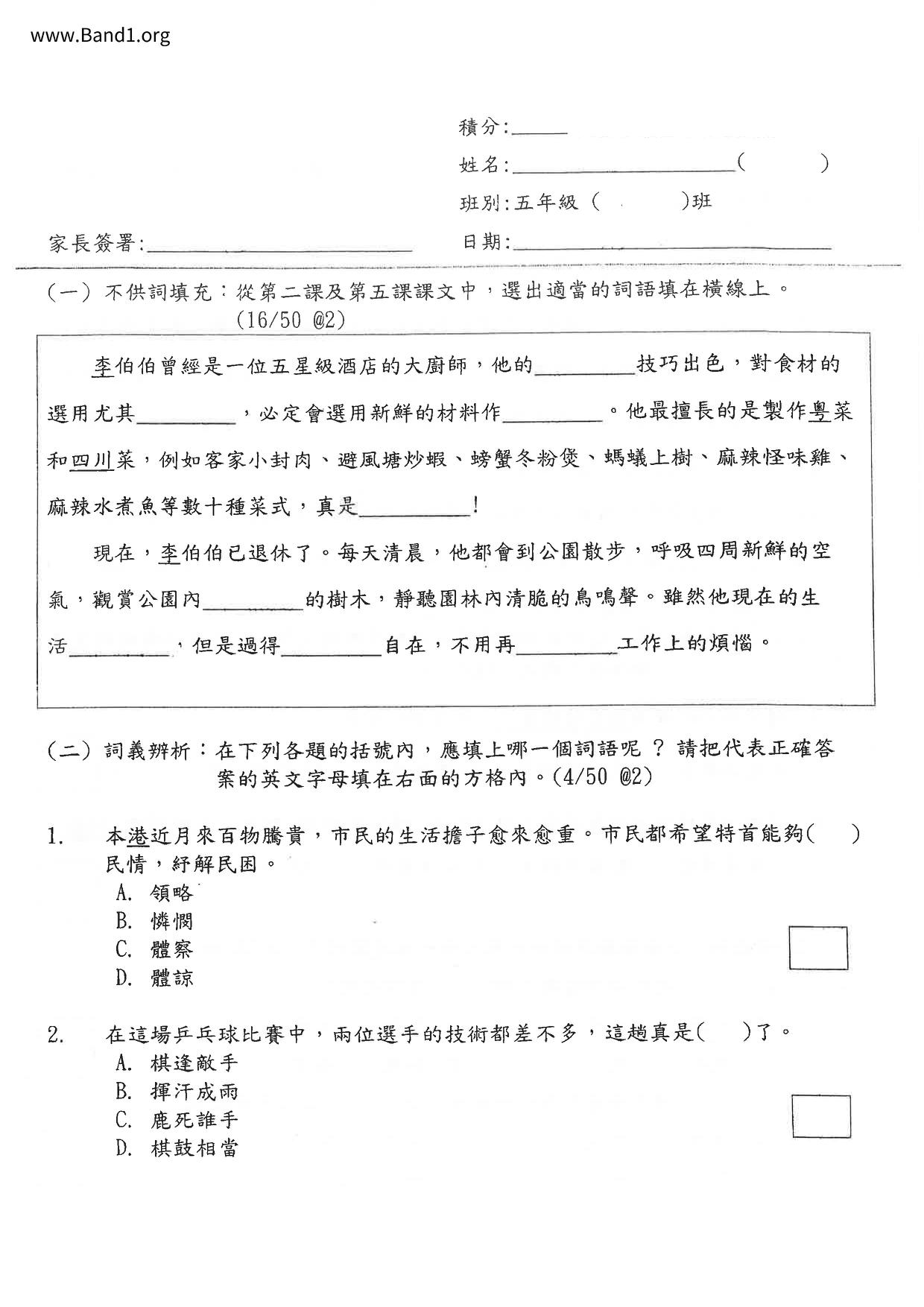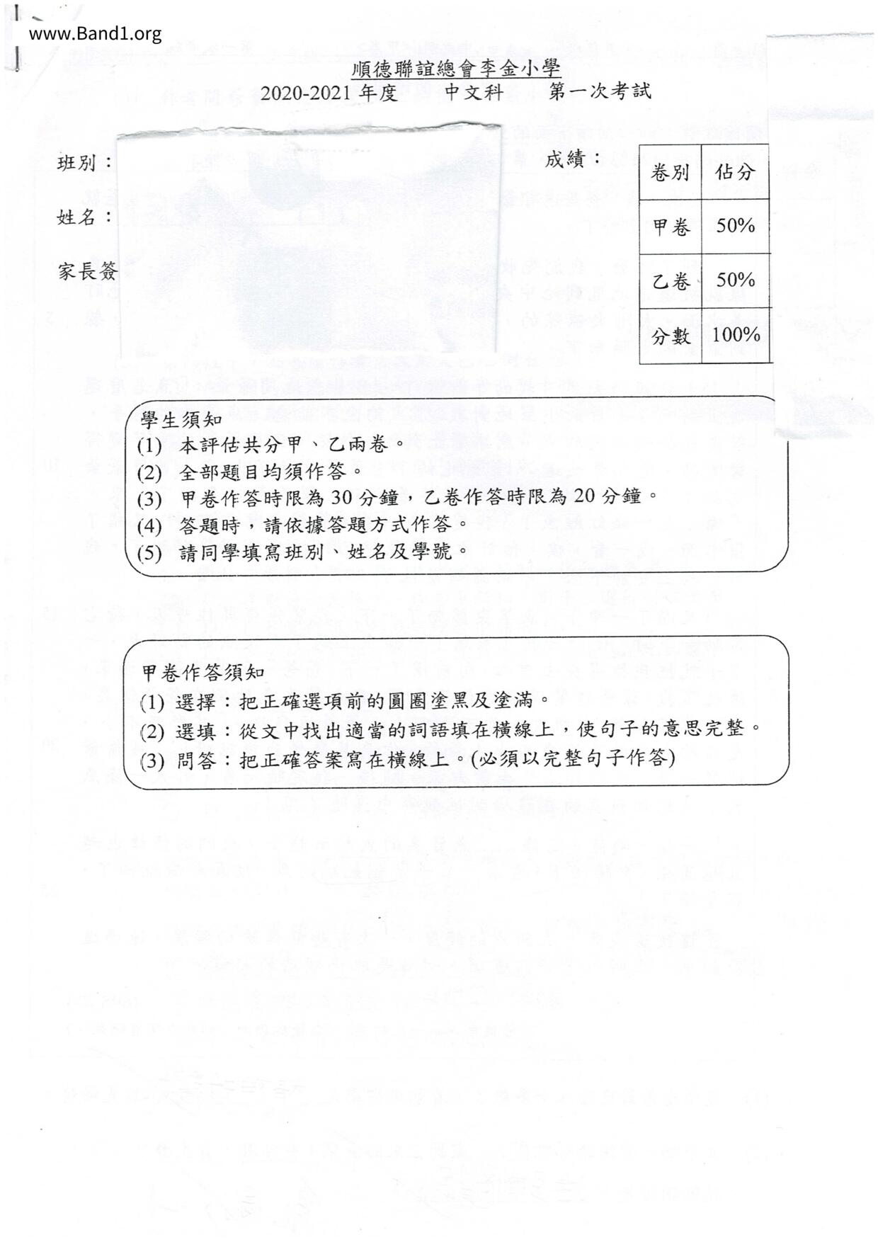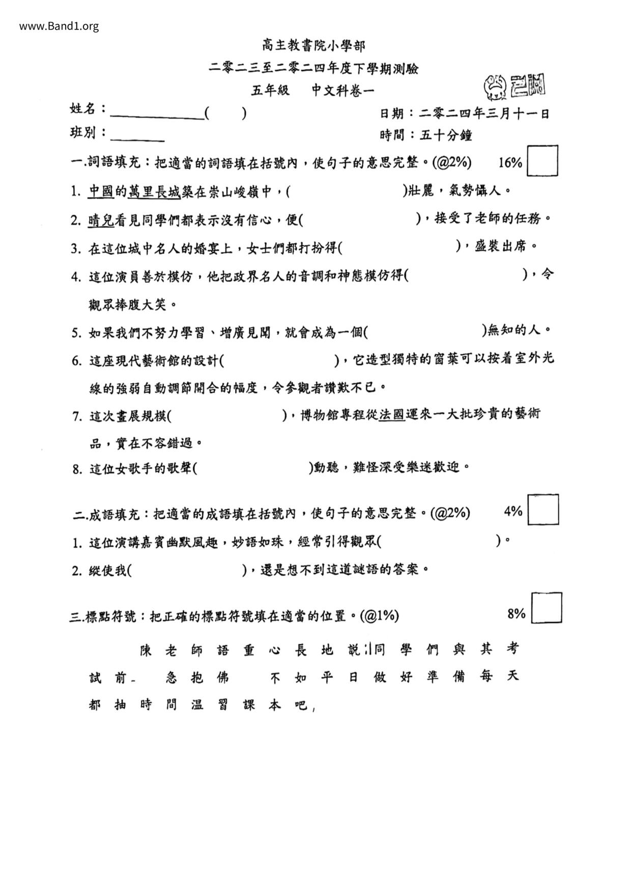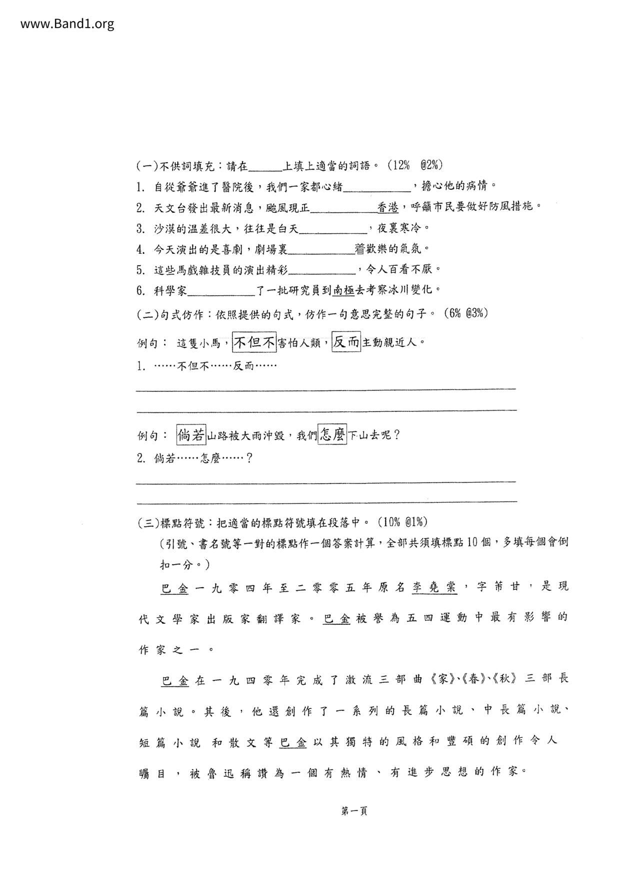 香港 中小學 中文 (HK Chinese) 試卷 pdf