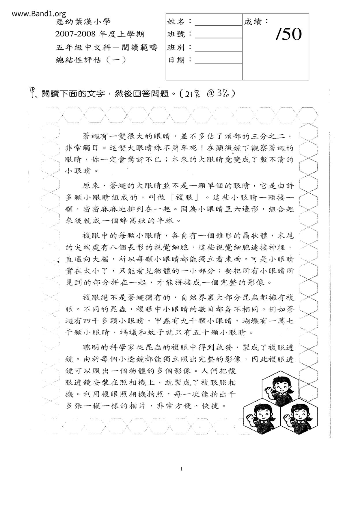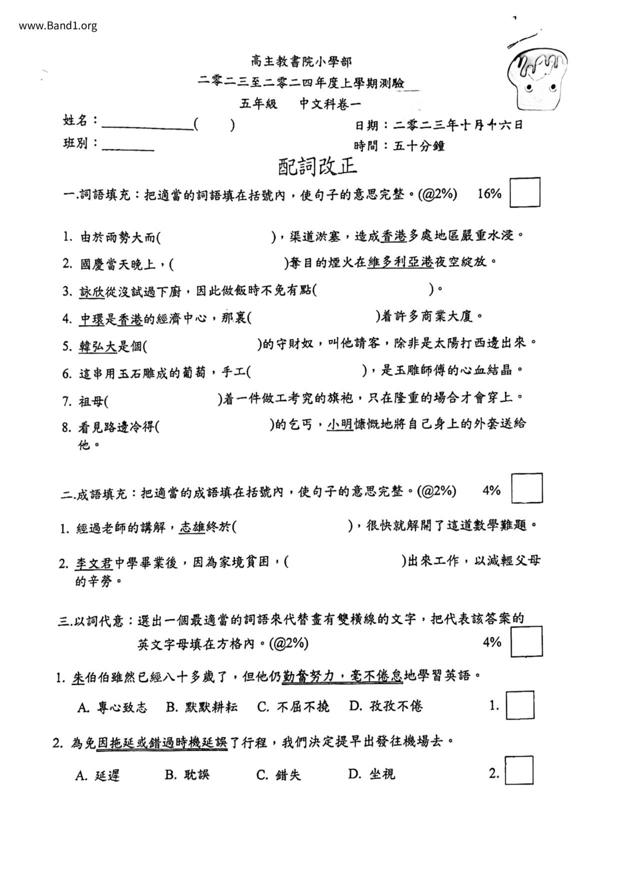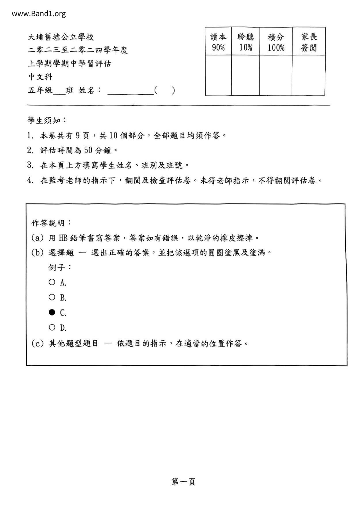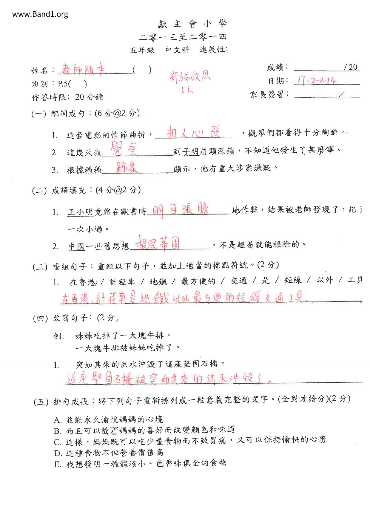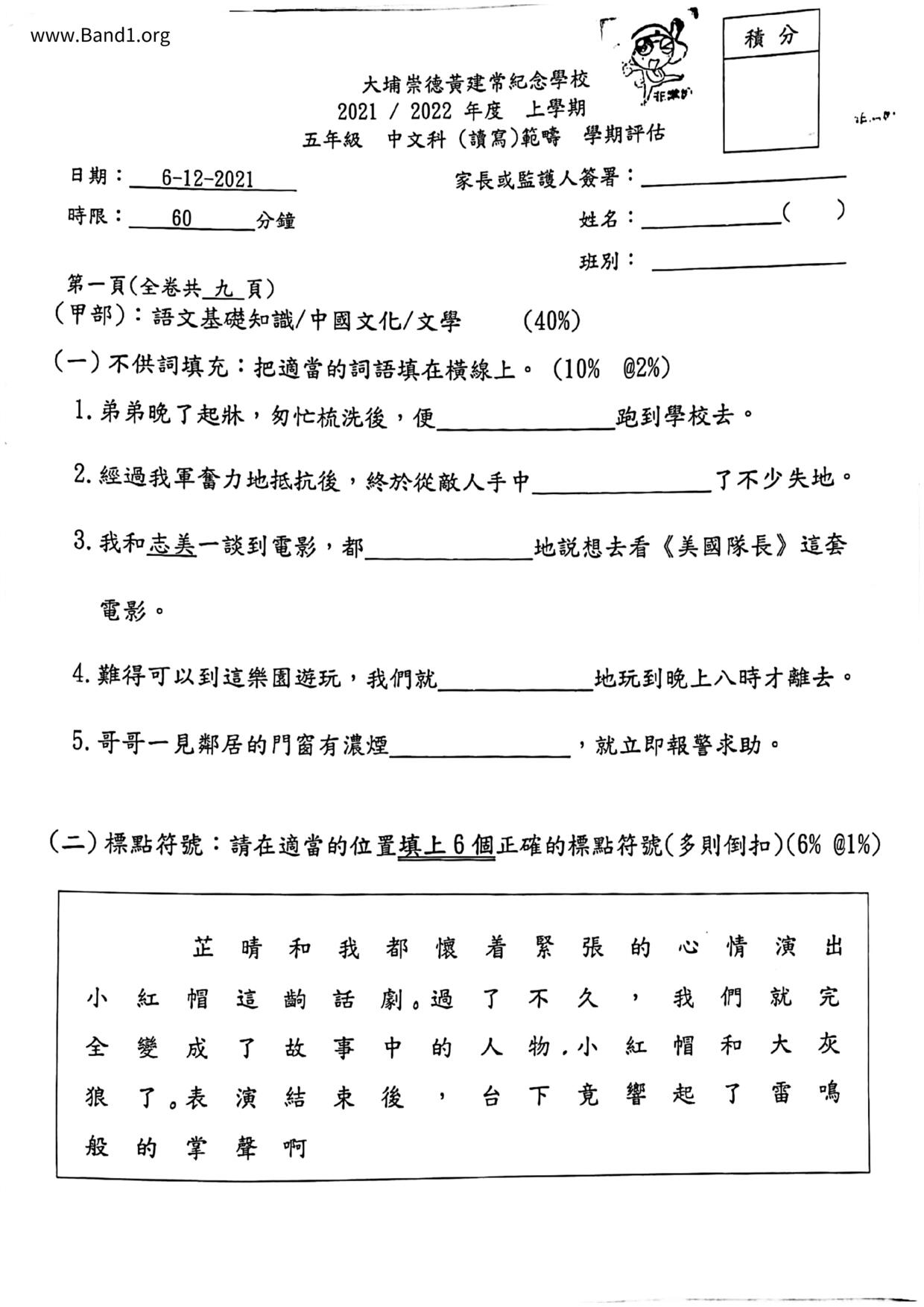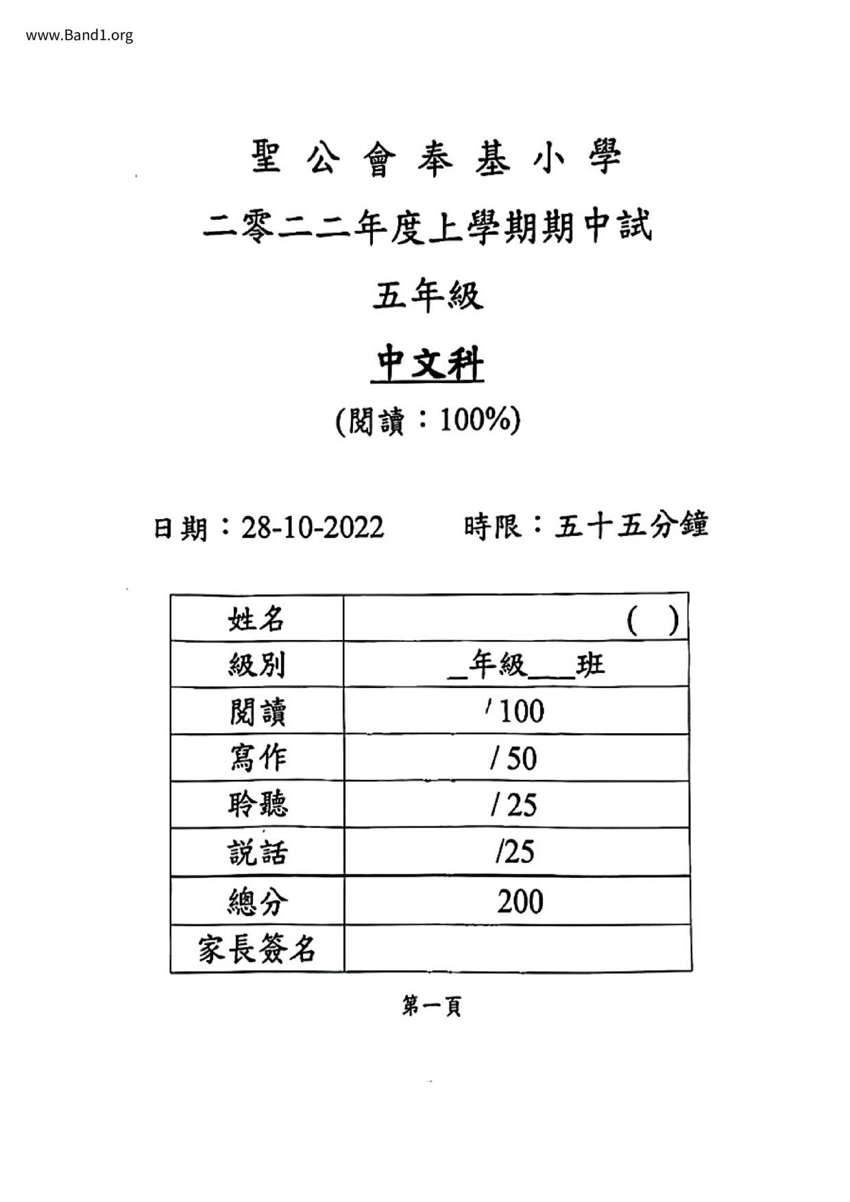 香港 中小學 中文 (HK Chinese) 試卷 pdf