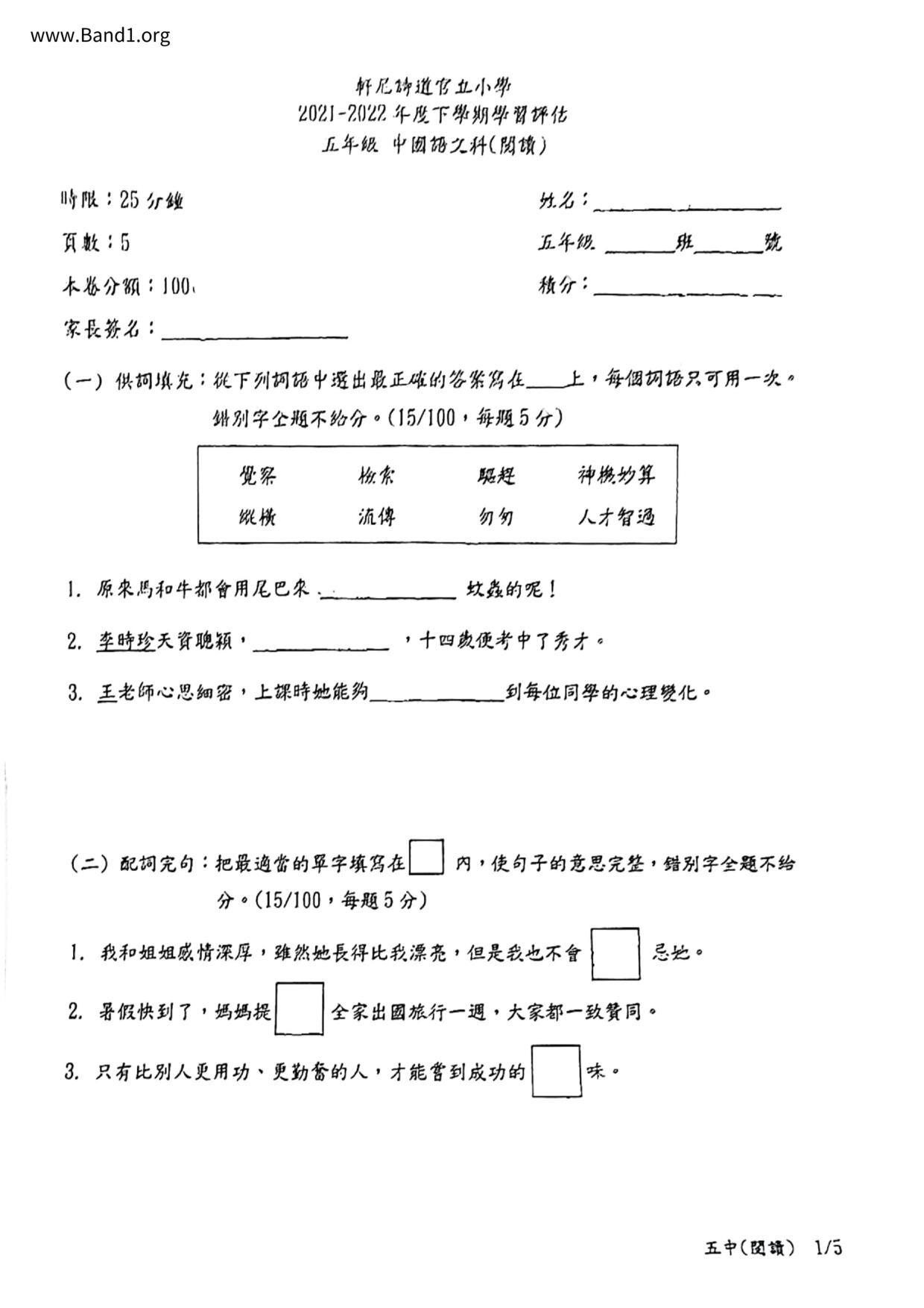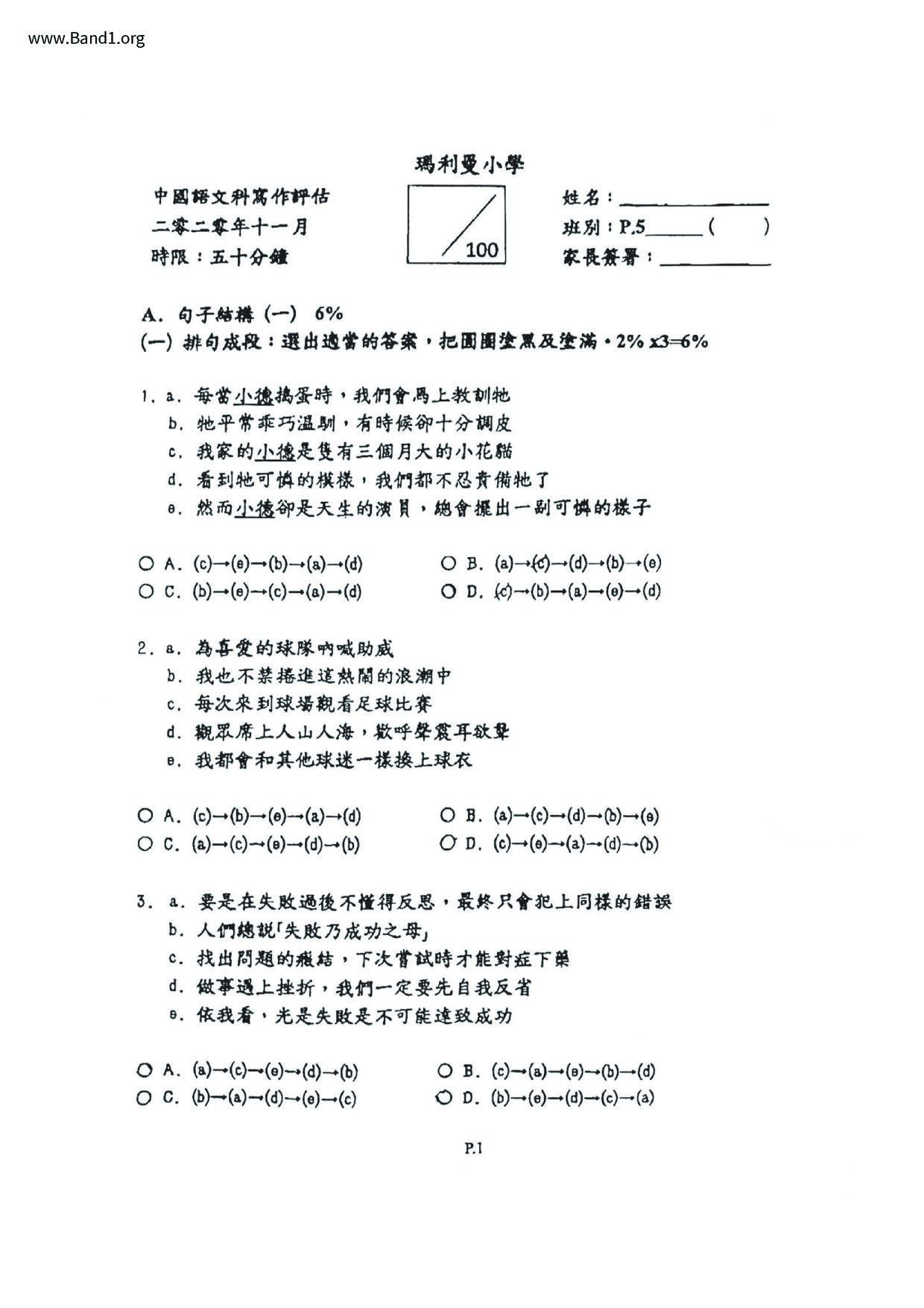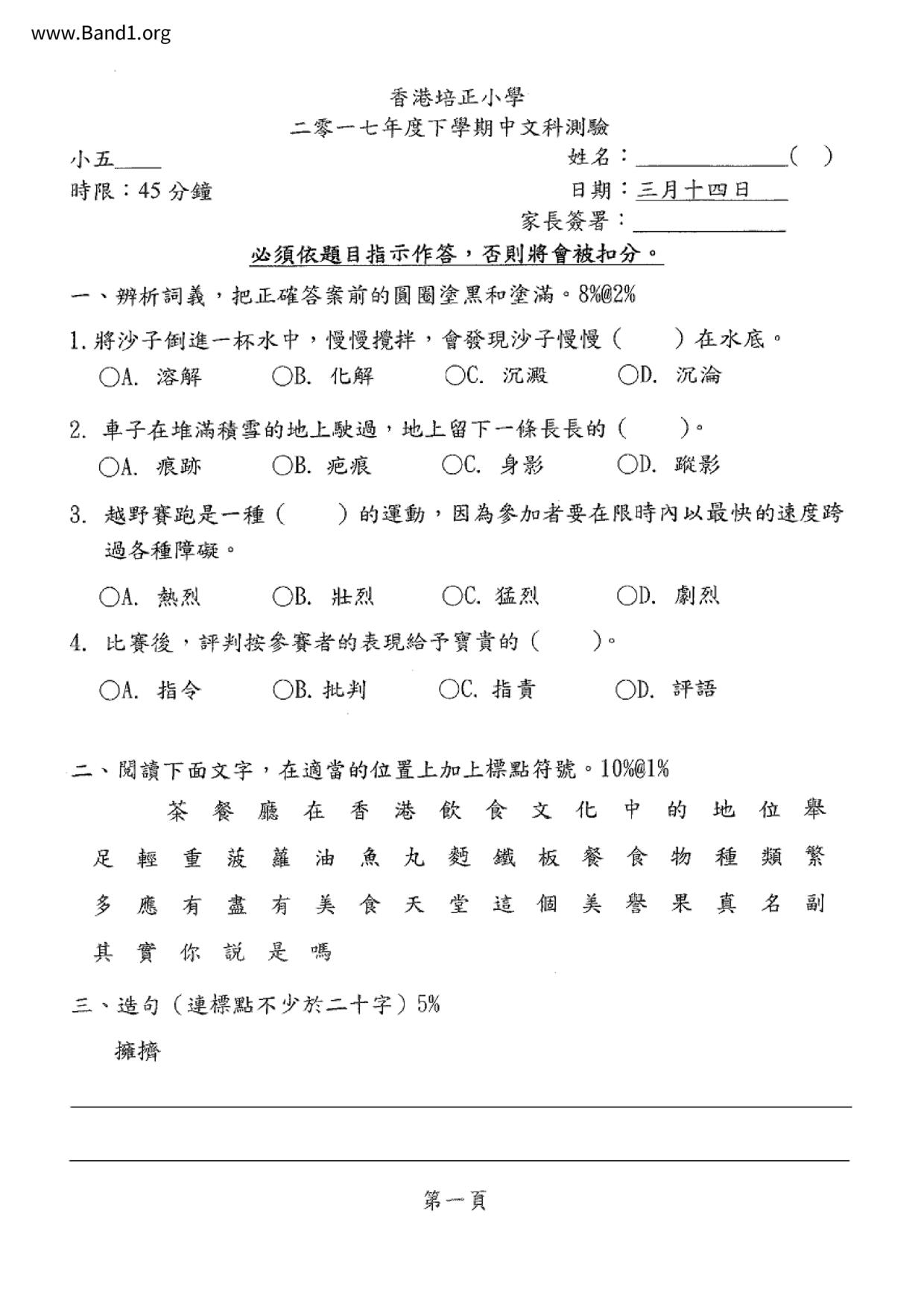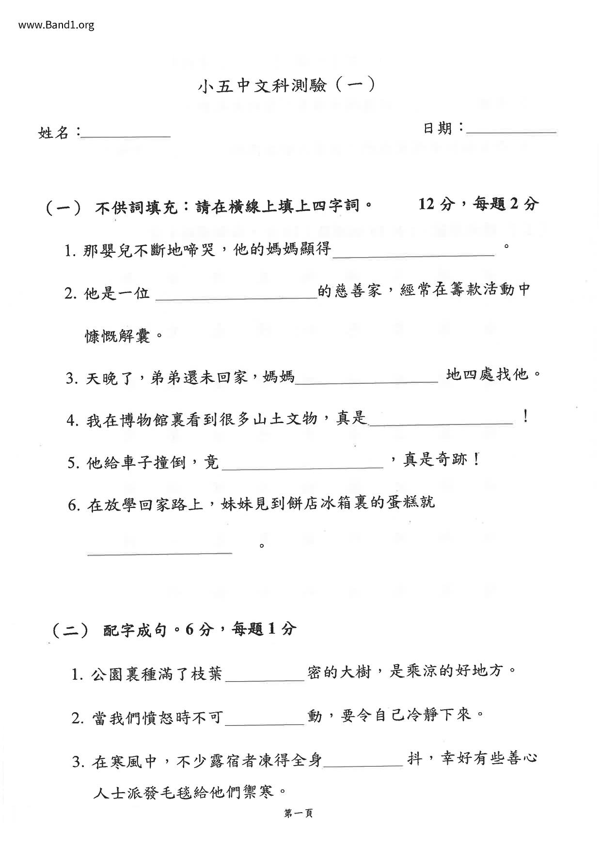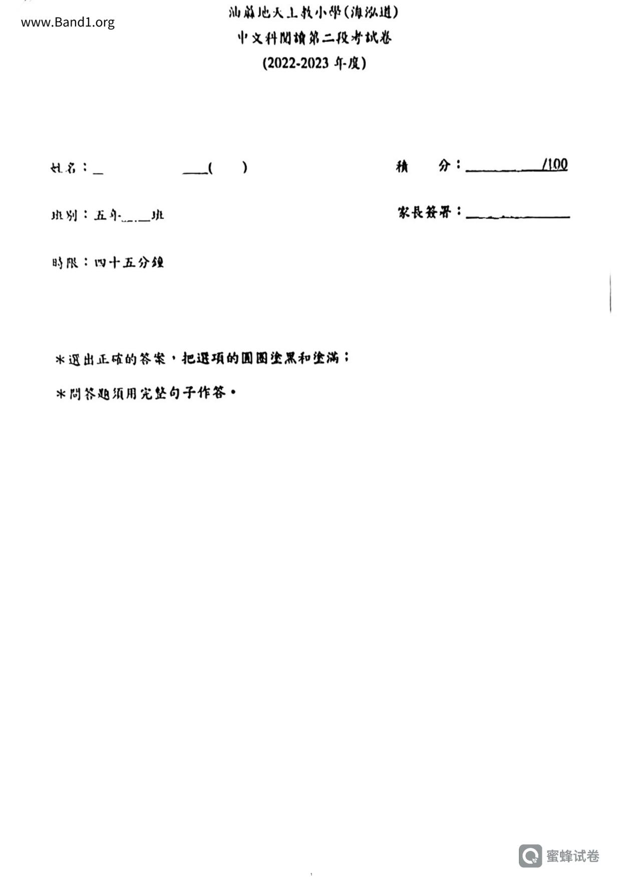 香港 中小學 中文 (HK Chinese) 試卷 pdf